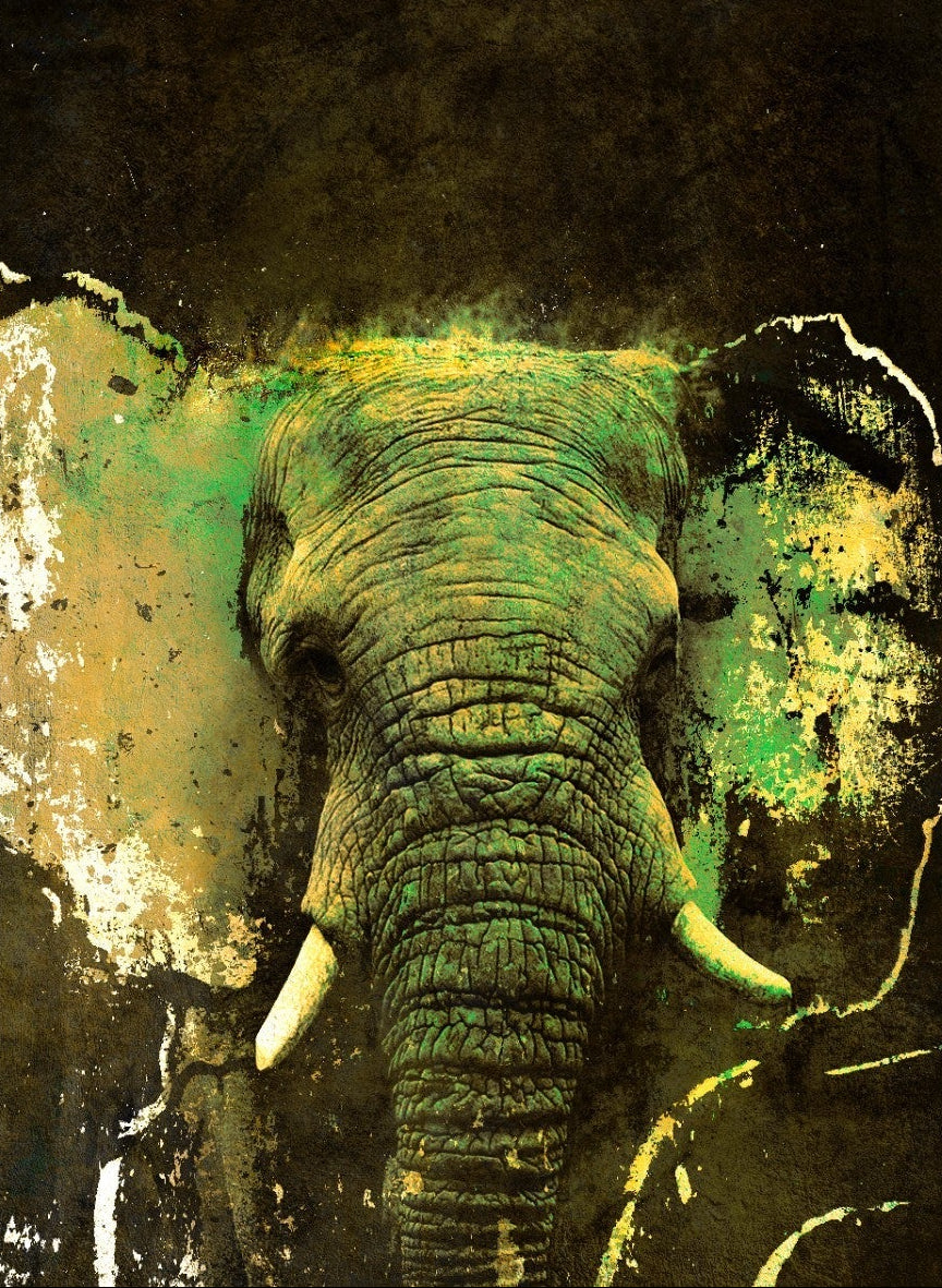 Gaja by Linnea Frank – Majestic Elephant Wall Art in Earthy Green and Ochre