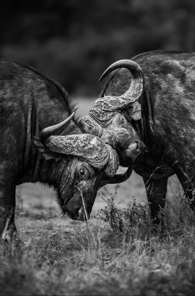 A pair of buffalo bulls test each other's resolve. Photo by Johan Enslin.