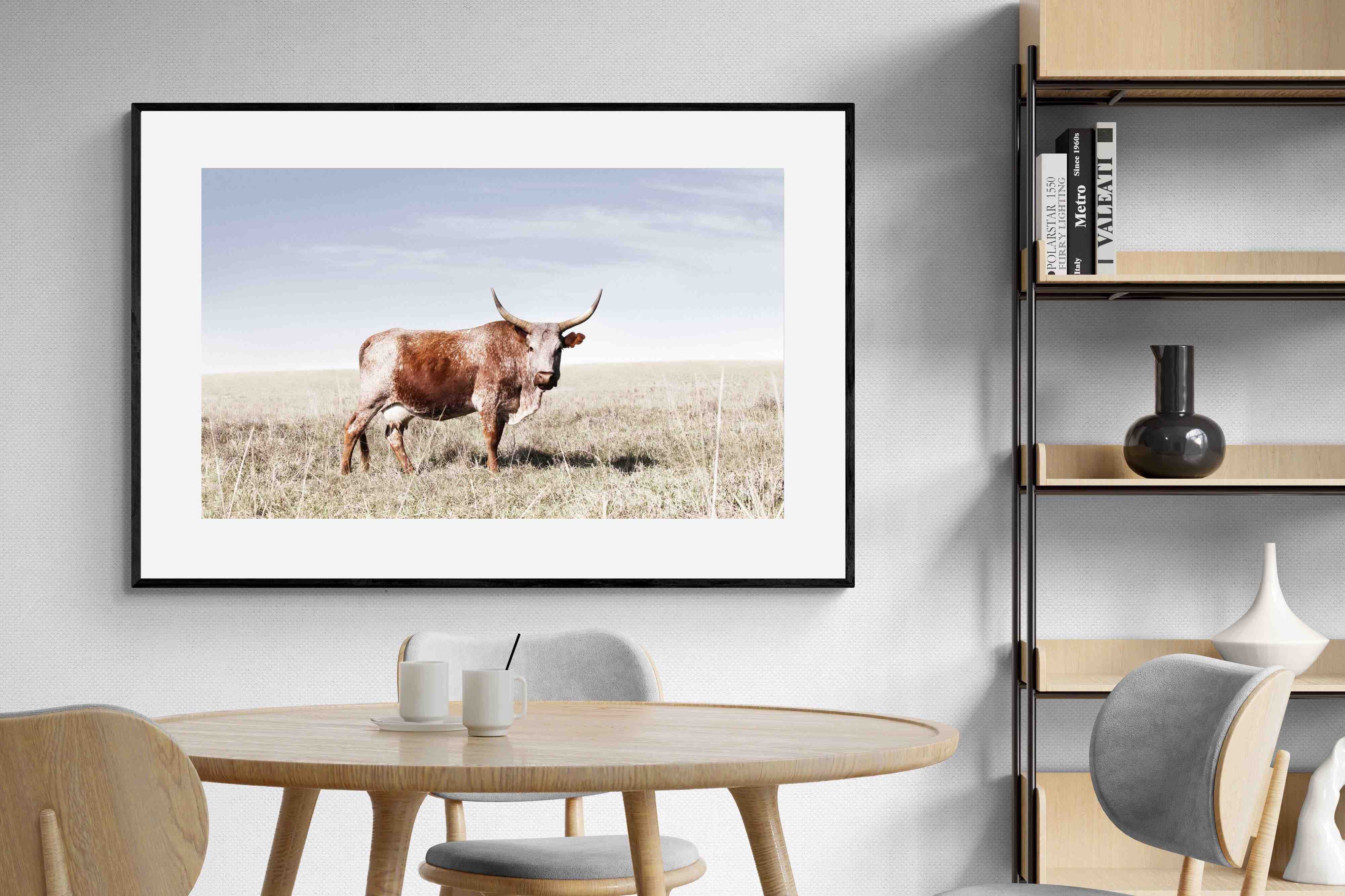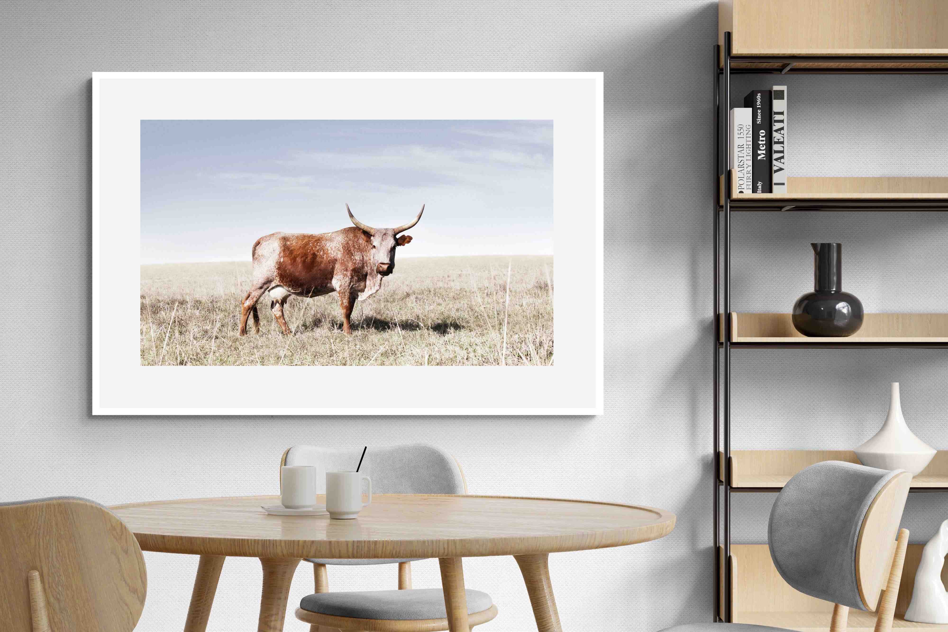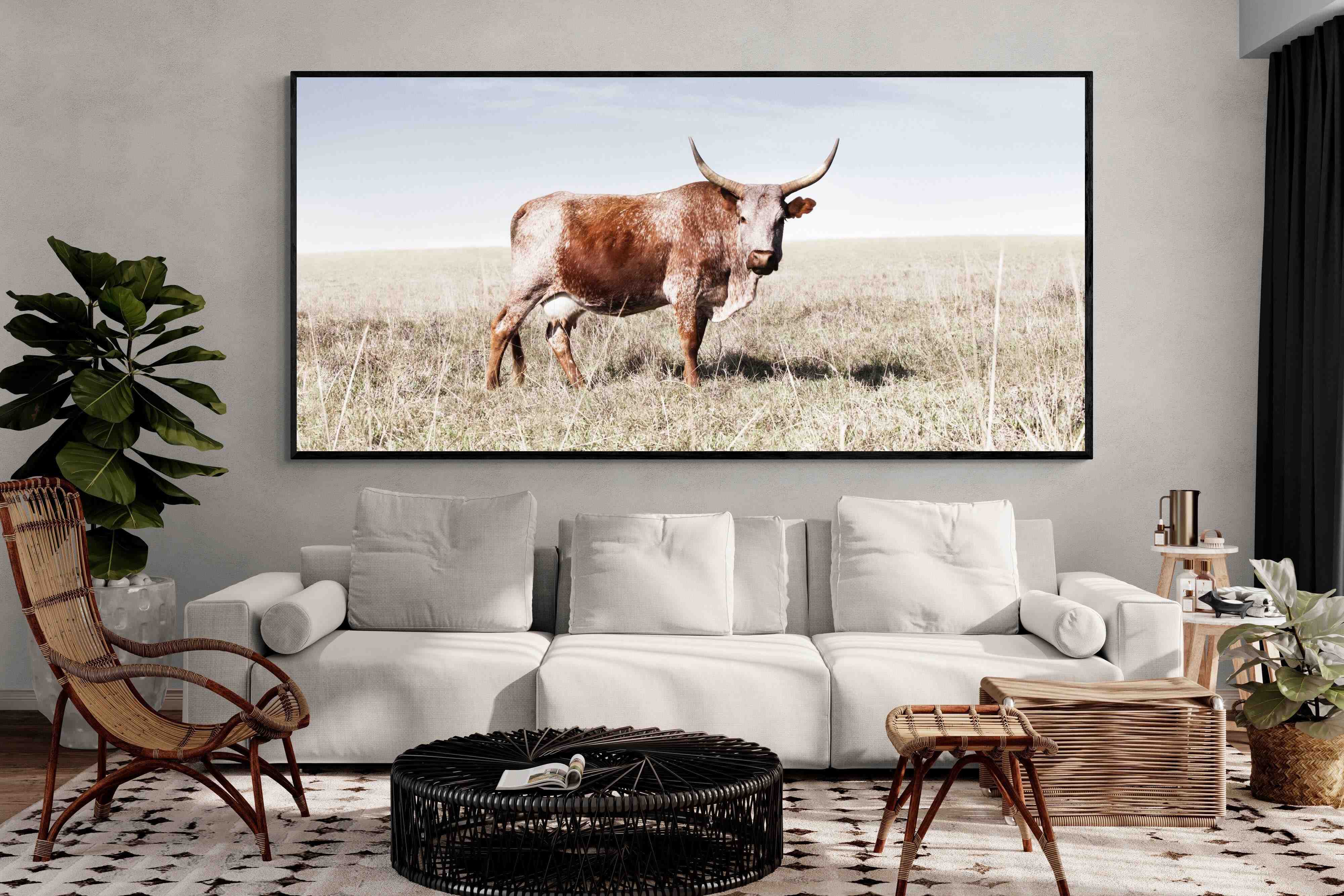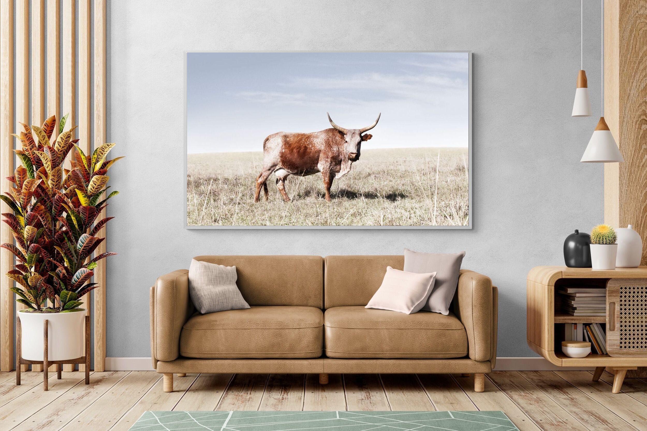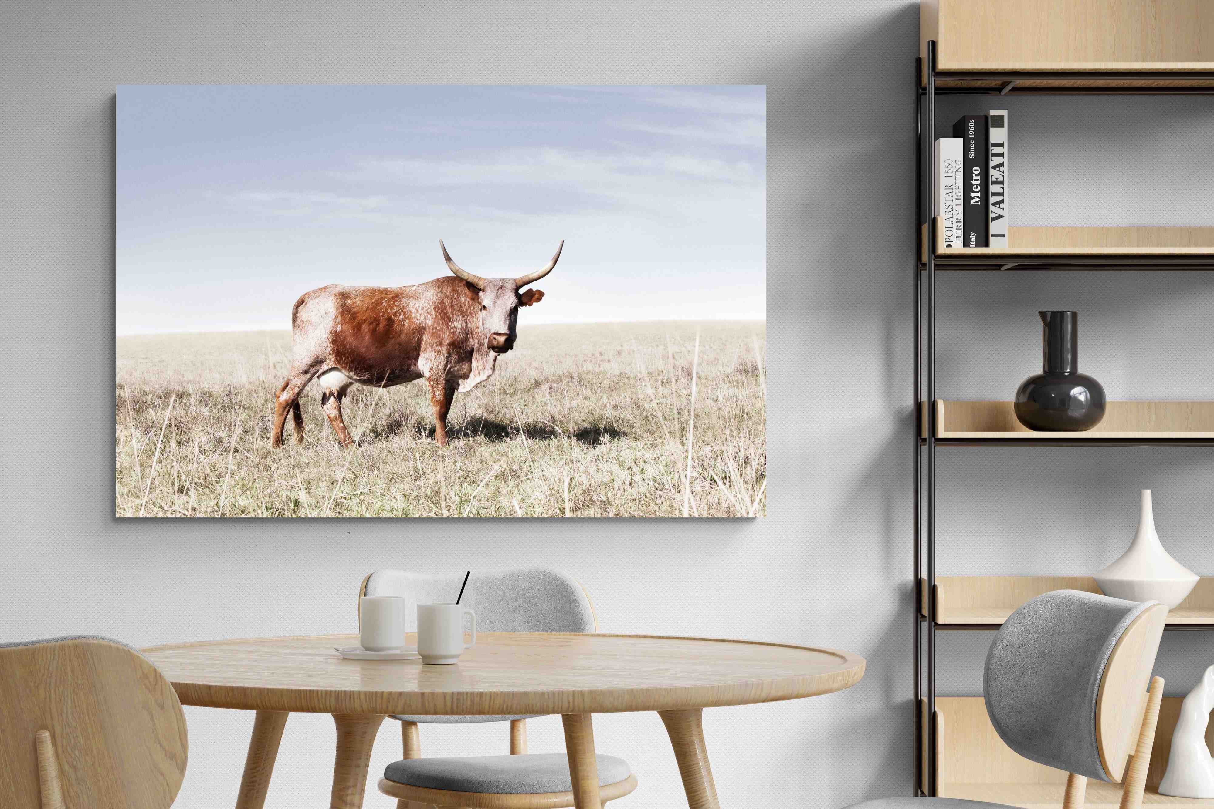 Introducing "Tan Nguni," an exquisitely detailed and mood-capturing photograph of an Nguni cow, by esteemed wildlife photographer Klaus Tiedge.