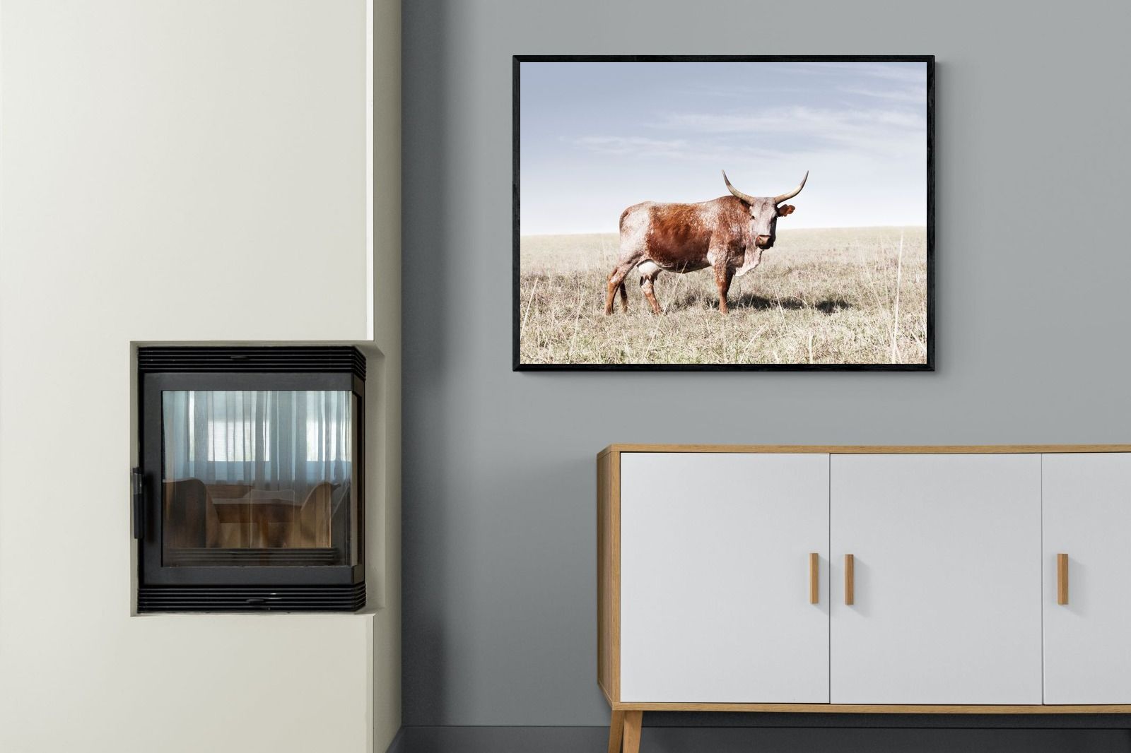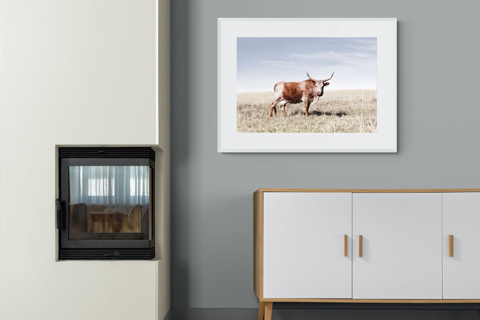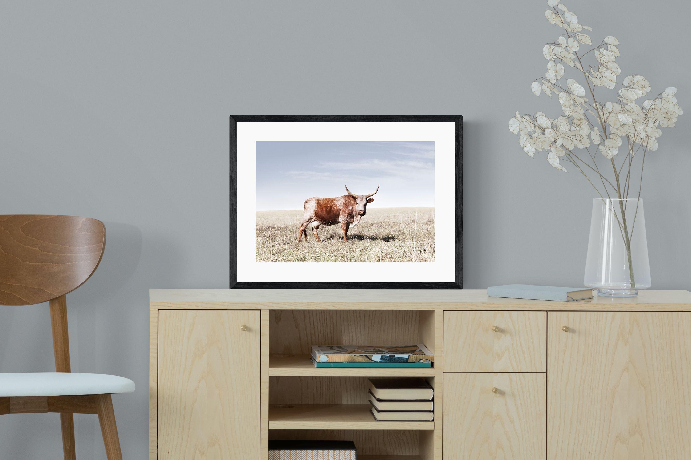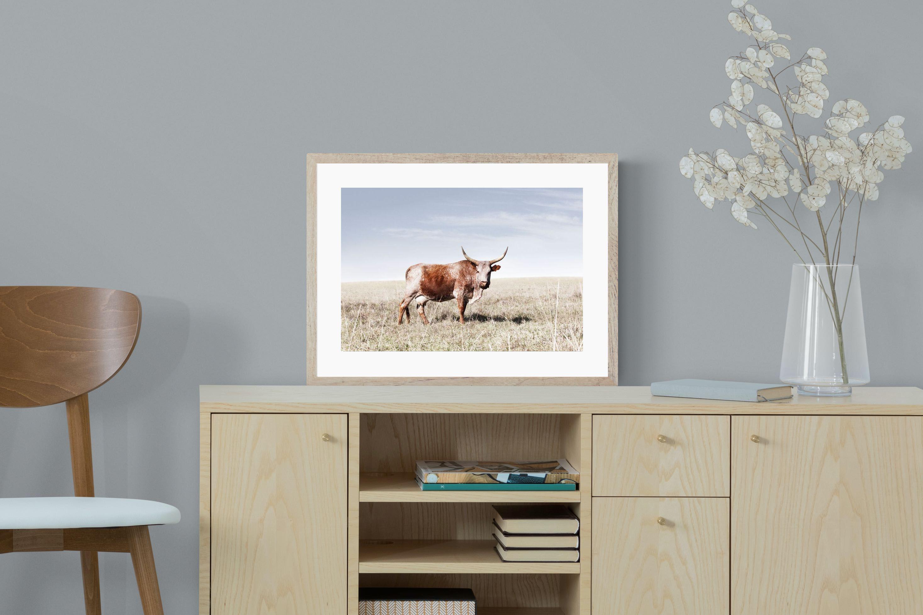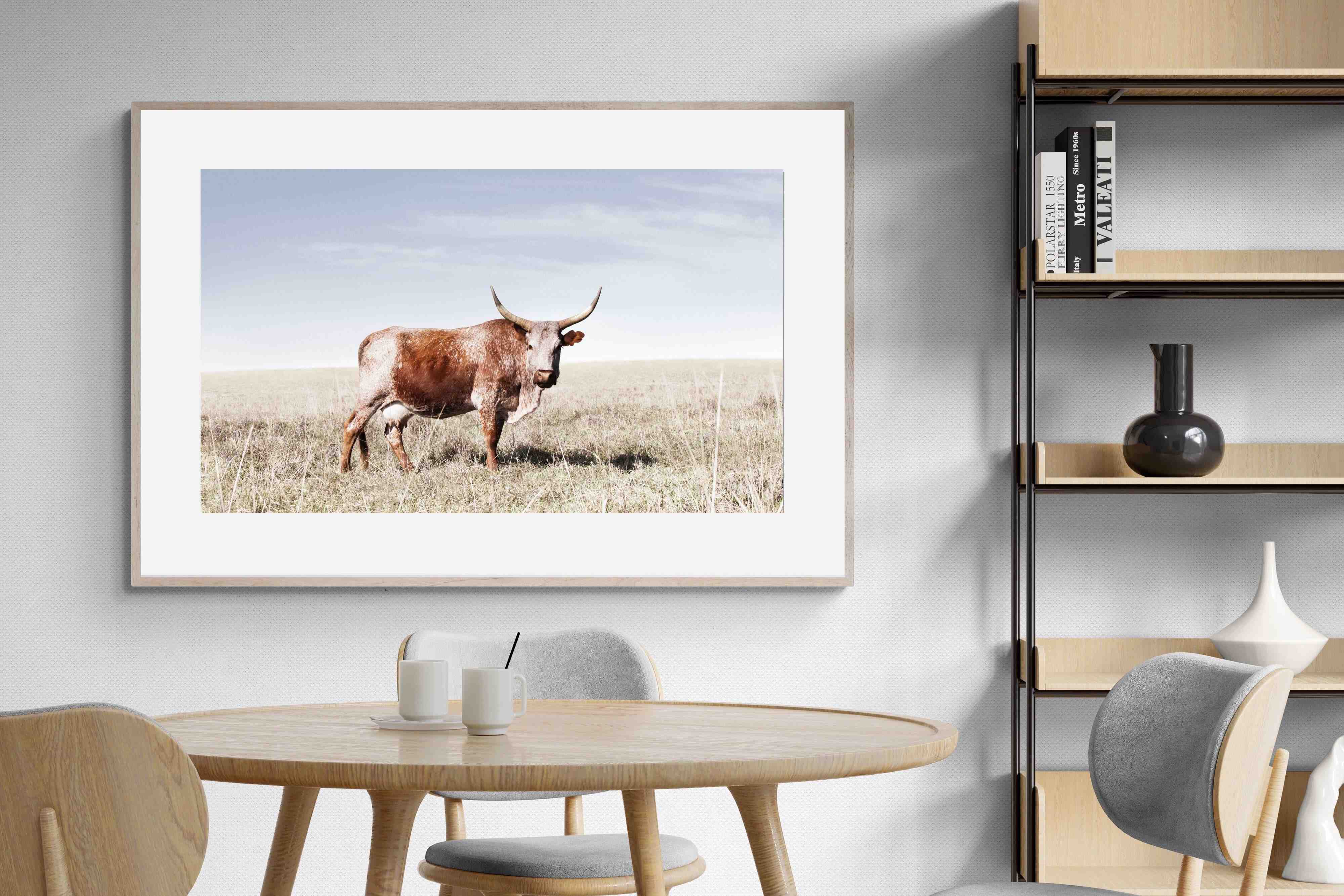Introducing "Tan Nguni," an exquisitely detailed and mood-capturing photograph of an Nguni cow, by esteemed wildlife photographer Klaus Tiedge.
