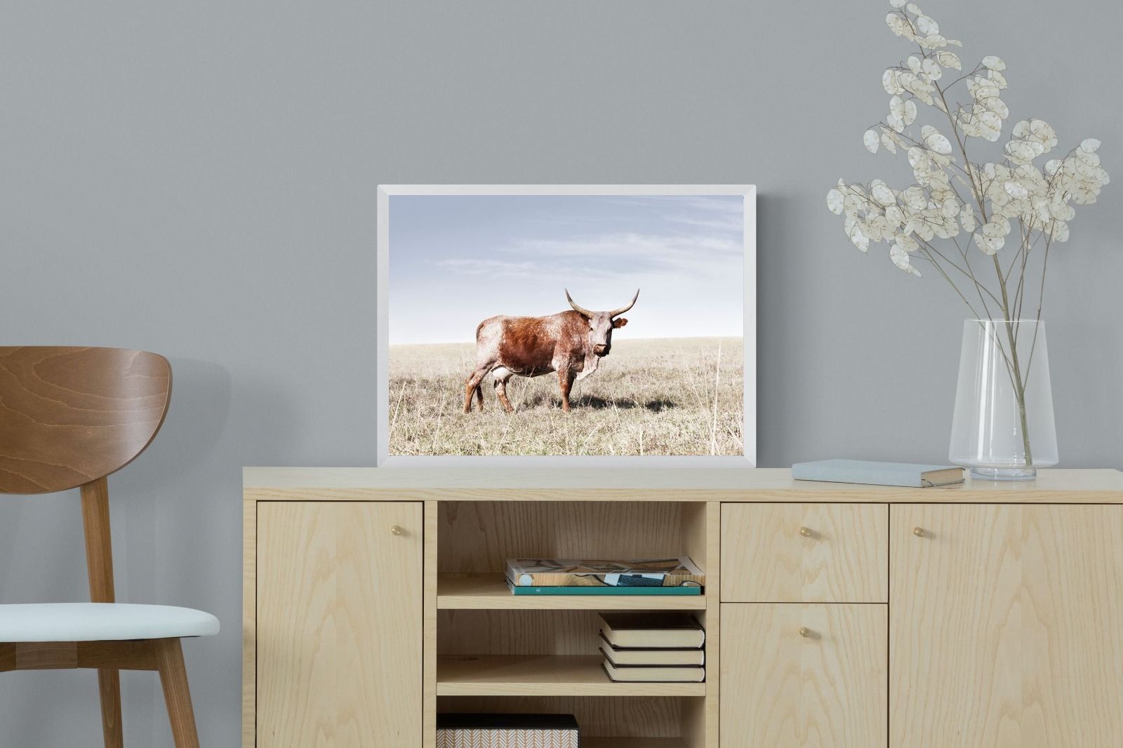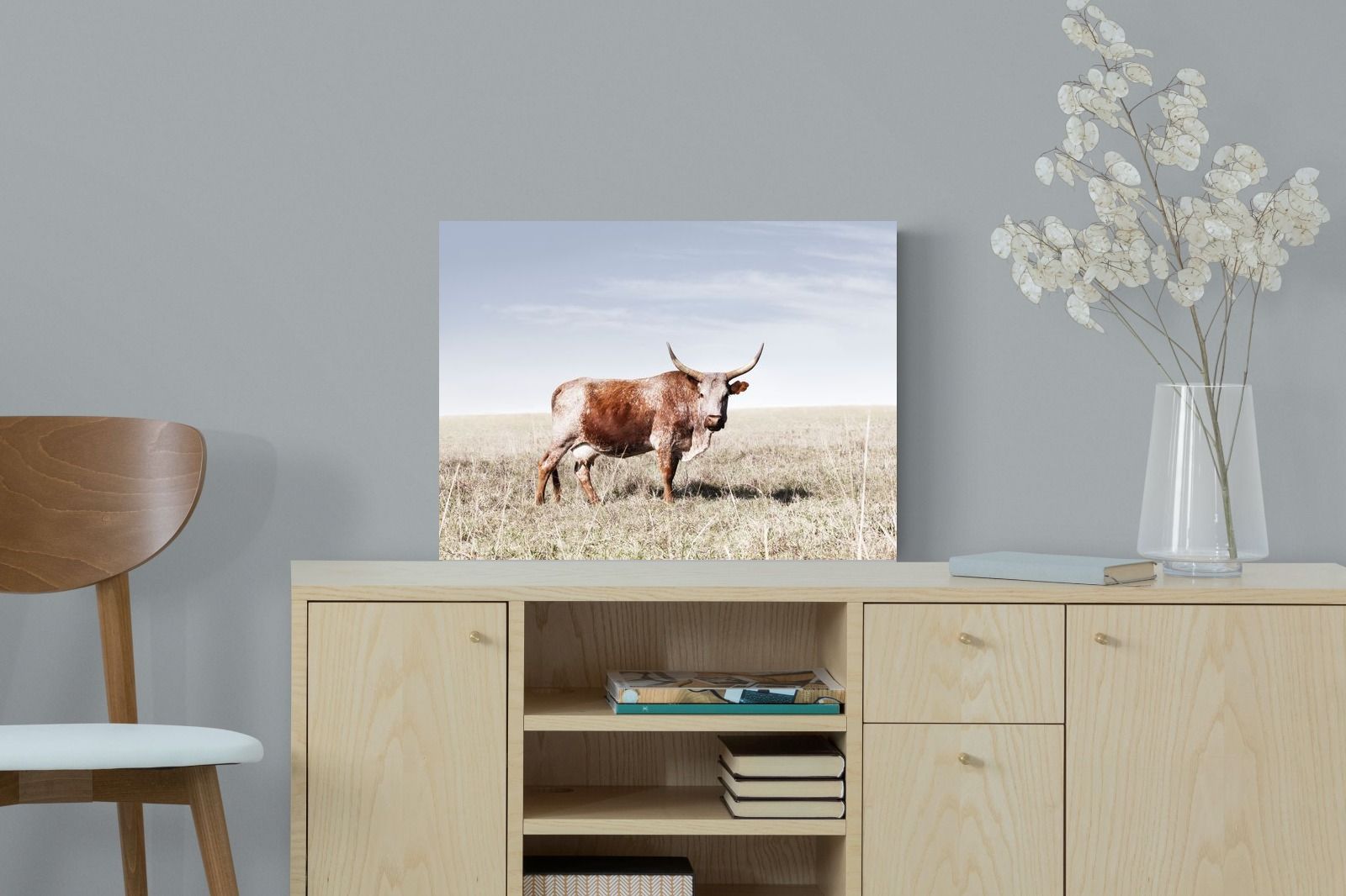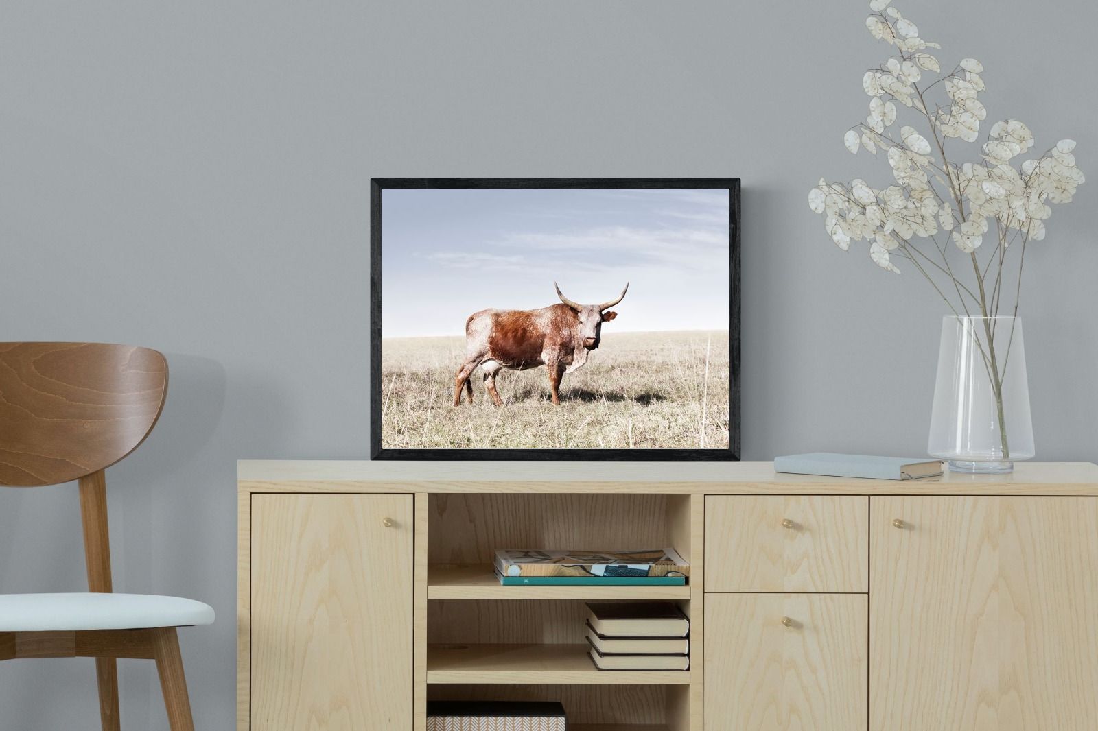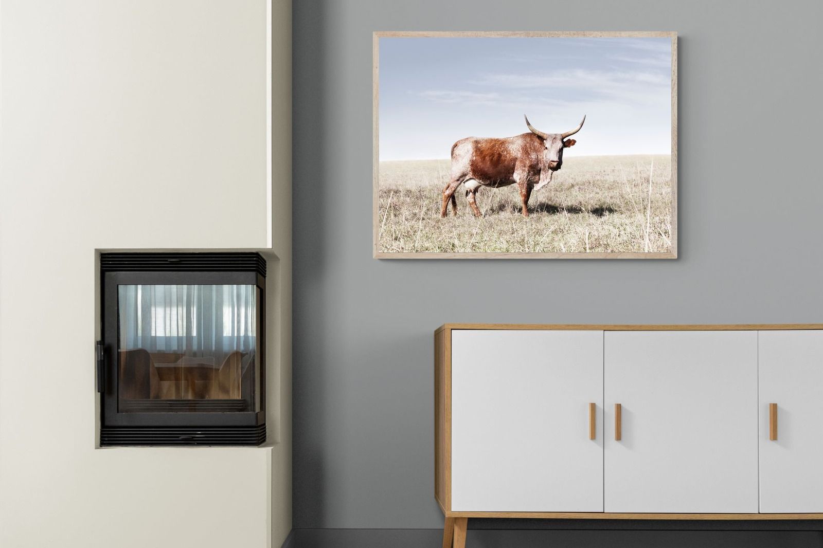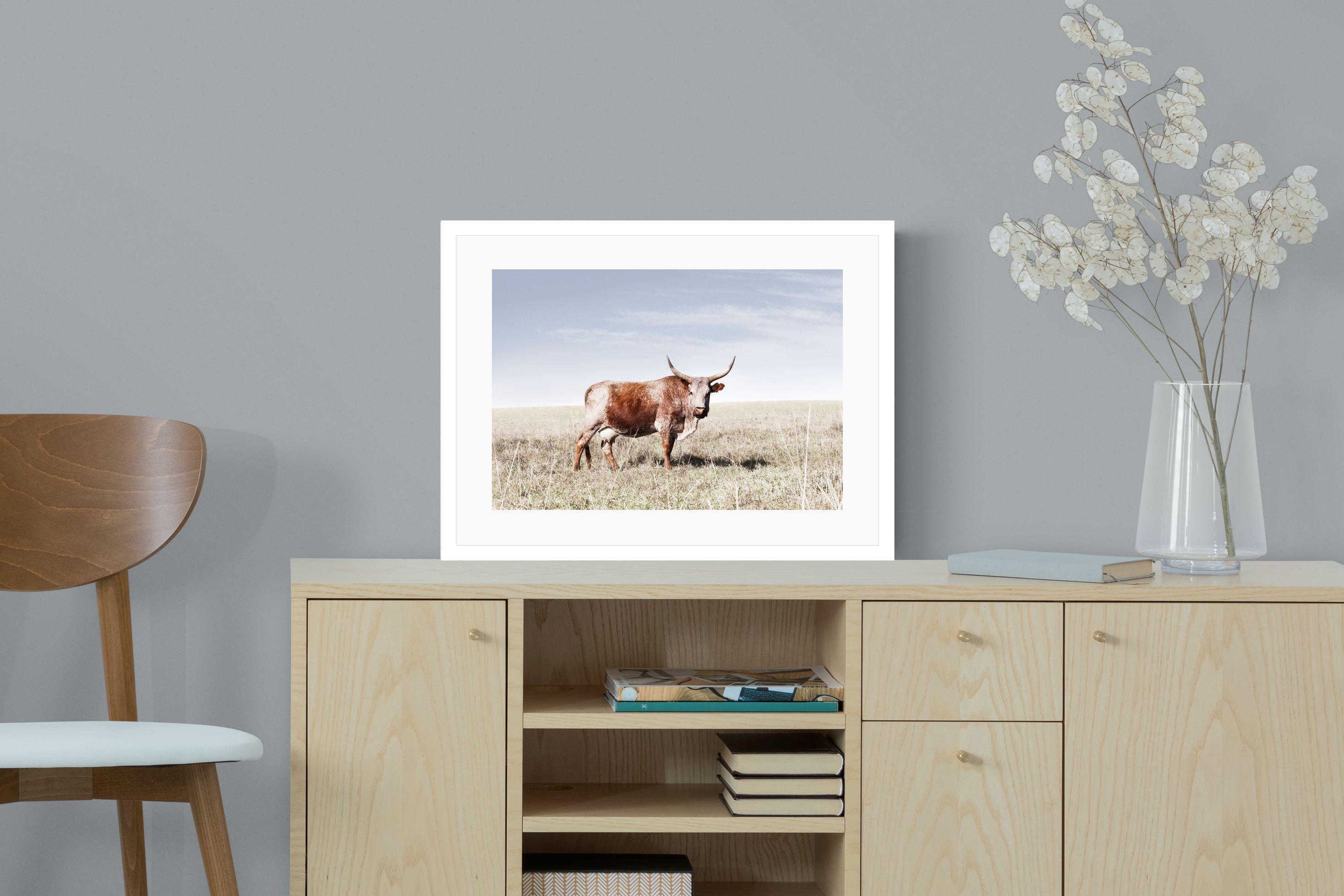 Introducing "Tan Nguni," an exquisitely detailed and mood-capturing photograph of an Nguni cow, by esteemed wildlife photographer Klaus Tiedge.