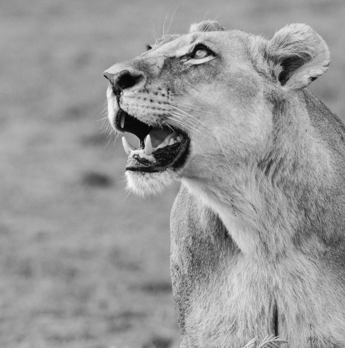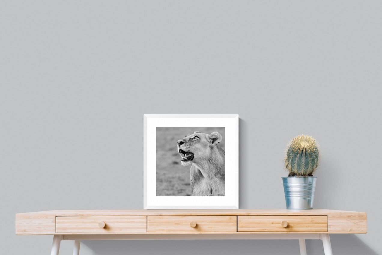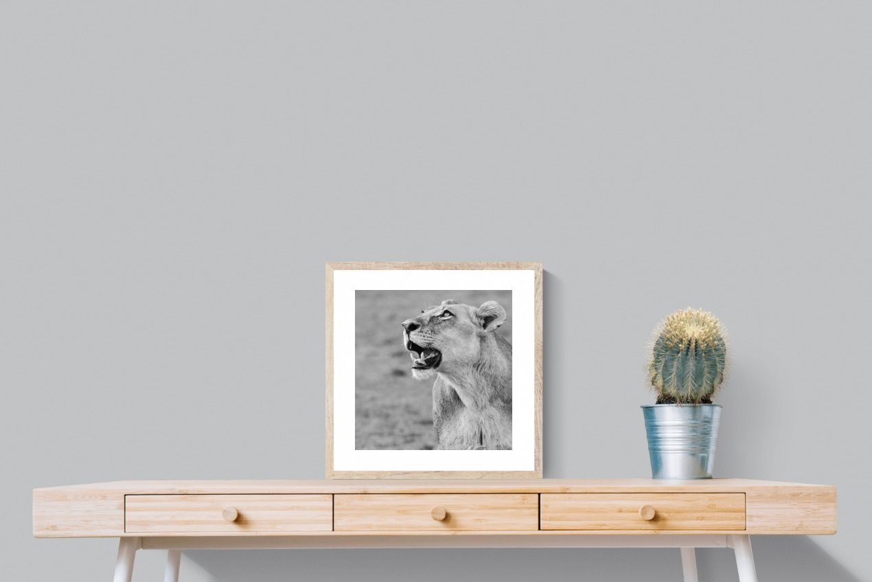 "Lioness Glance" freezes a fleeting moment of grace and alertness, as a lioness looks skyward with quiet strength. Captured in crisp black and white, this fine art wildlife photograph exudes power, poise, and untamed beauty. Ideal for contemporary homes, it pairs beautifully with minimalist or neutral décor, adding a focal point that is both elegant and expressive. The portrait’s clean composition and tonal depth make it a timeless piece, evoking wonder and admiration for the wild world beyond our walls.