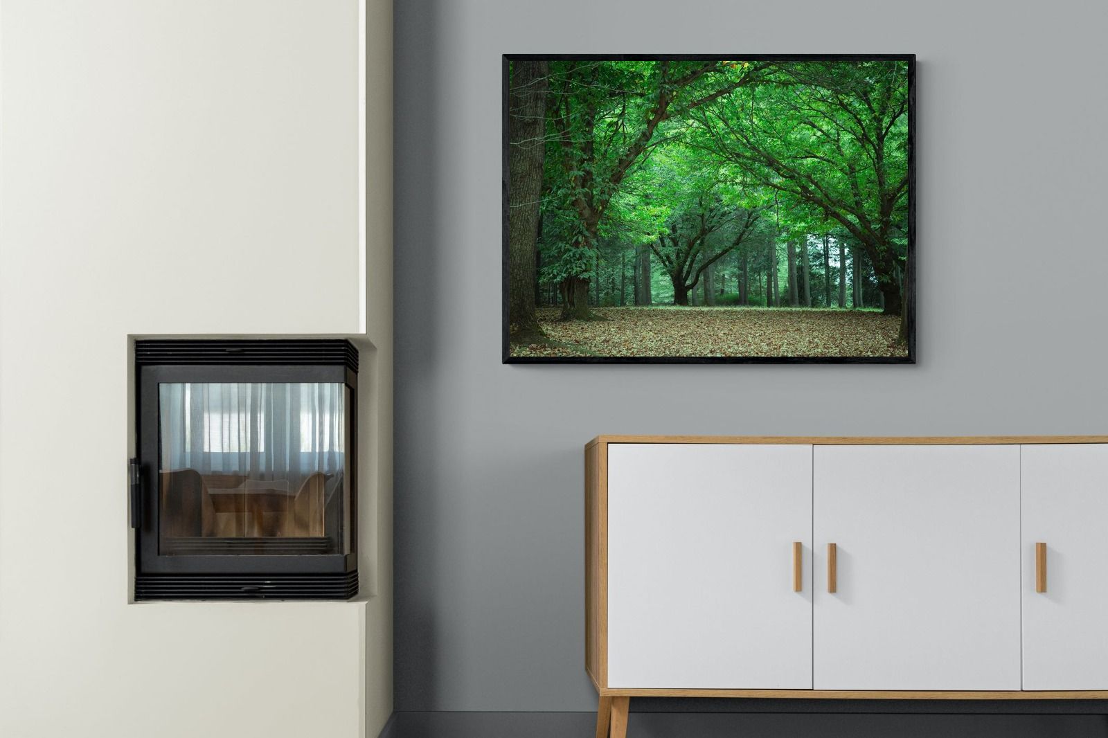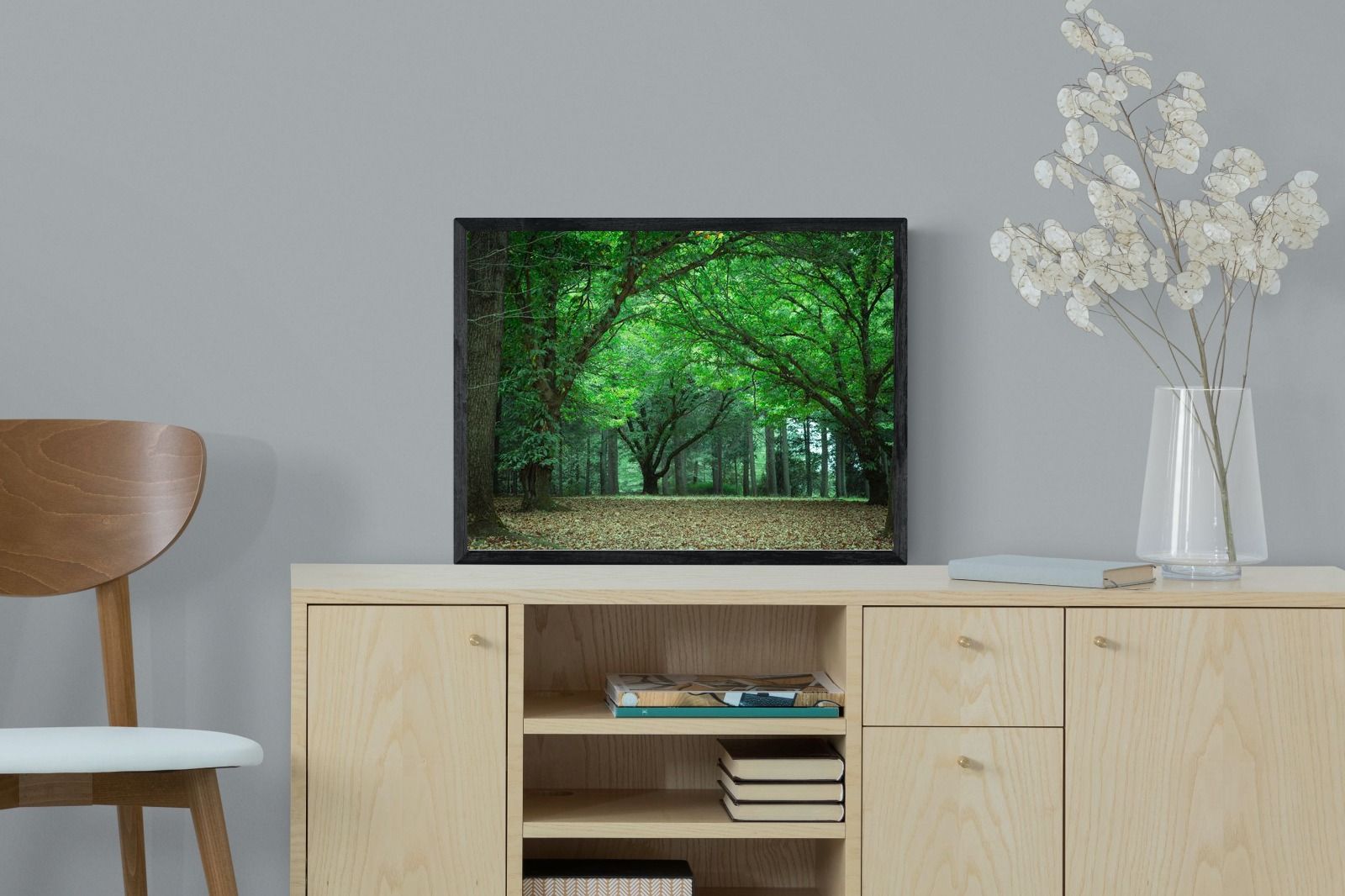 "Summer Trees" invites calm with its lush canopy of green leaves arching over a forest floor blanketed in fallen foliage. The soft natural light and harmonious tones evoke a quiet, almost meditative mood. Perfect for contemporary homes, this fine art photograph introduces a refreshing sense of balance and connection to nature. Ideal for minimalist, biophilic, or Scandinavian-inspired spaces, it brings the outdoors in—creating a soothing backdrop that encourages stillness, mindfulness, and visual breathing space in any room.