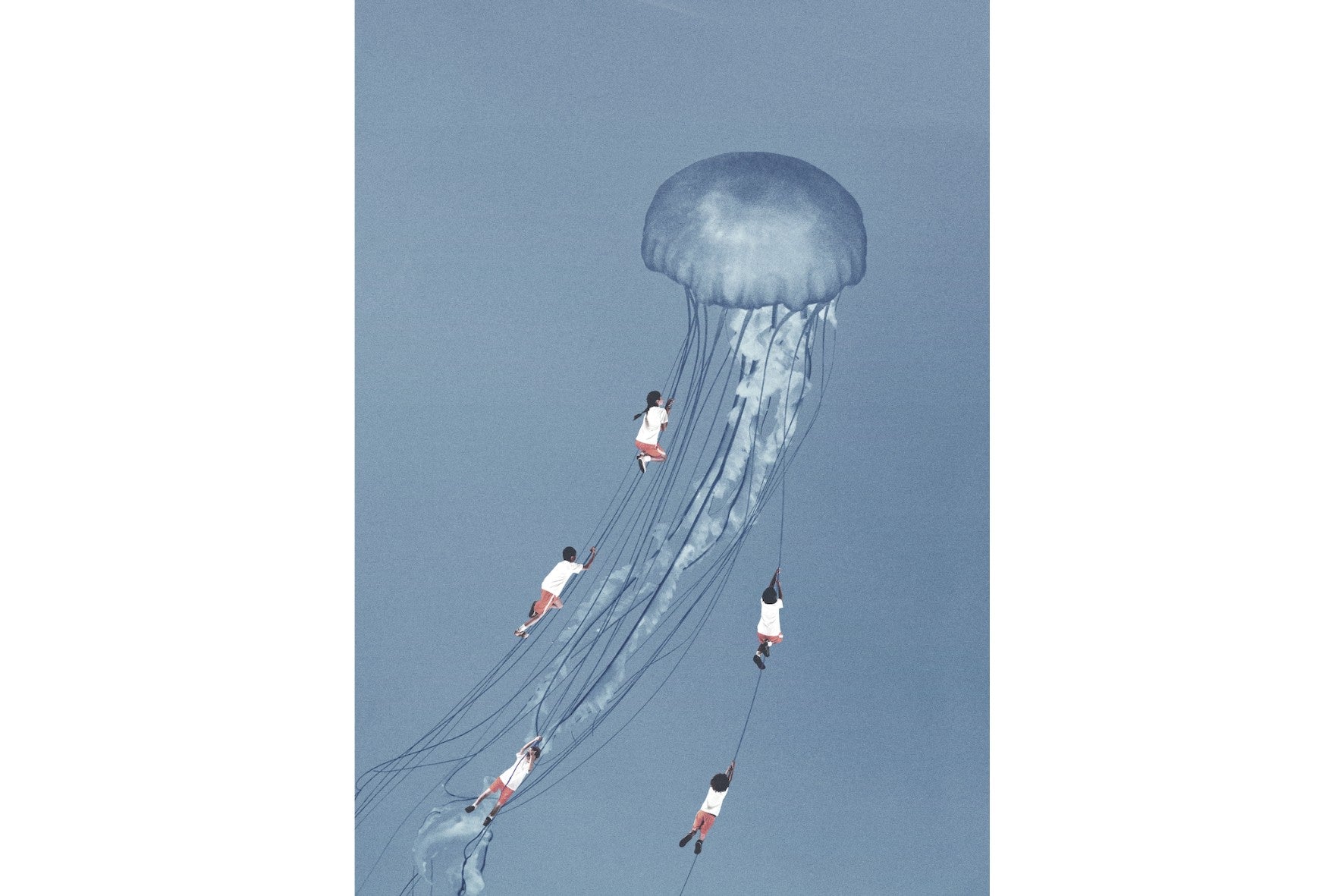Surreal Artwork of Children Climbing a Jellyfish