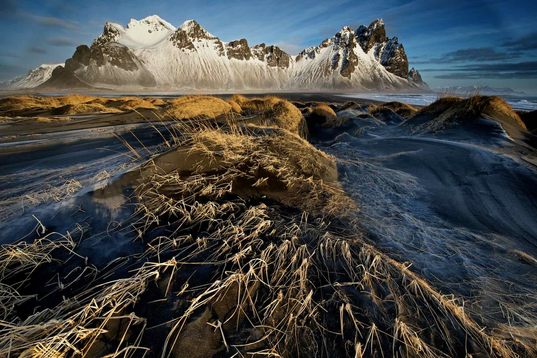 Shot by Trevor Cole, Stokksnes, also known as Vestrahorn, is a dramatic promontory in southeast Iceland, marked by steep cliffs and black sandy beaches. Its wild, unspoiled landscape, with the majestic Vestrahorn mountain as a backdrop, offers stunning views, especially during golden hour, making it a photographer's paradise and a bucket-list destination for nature enthusiasts.