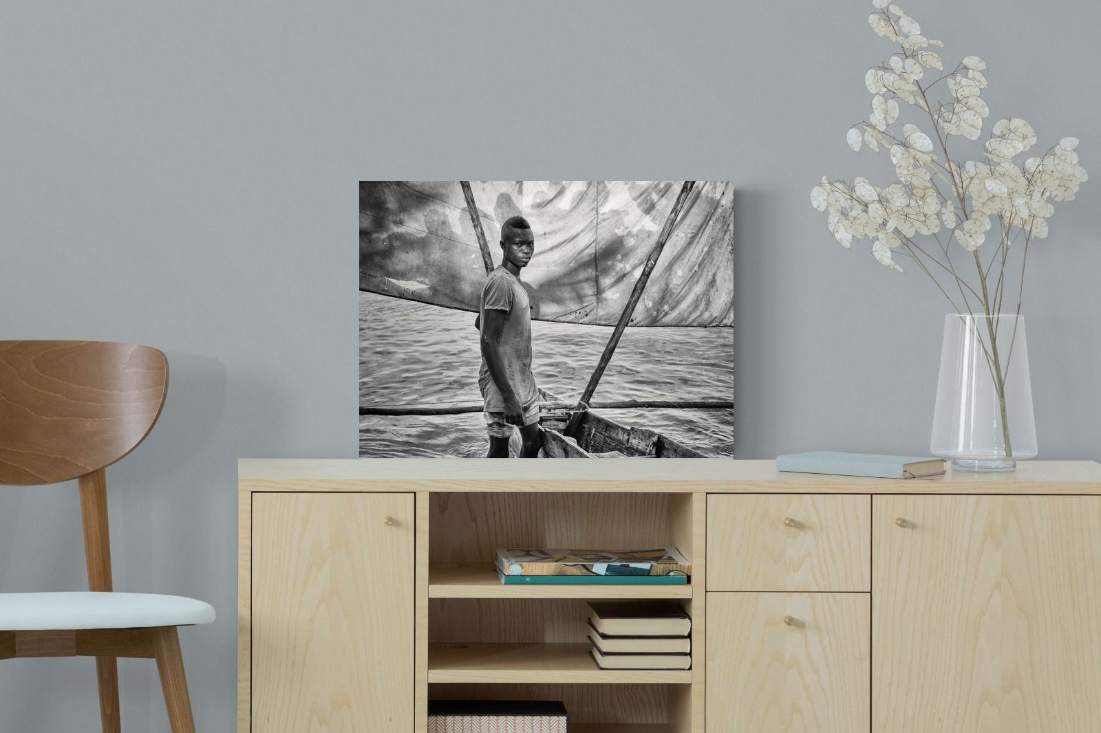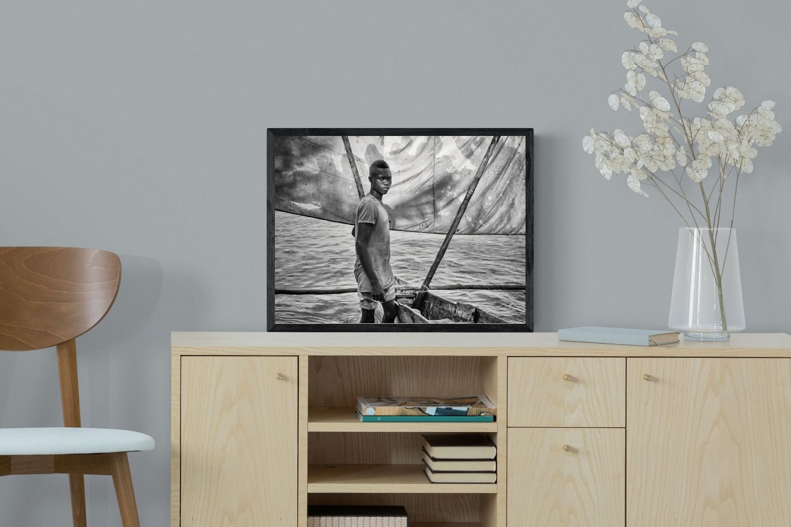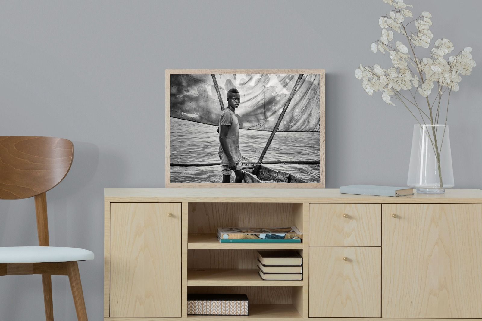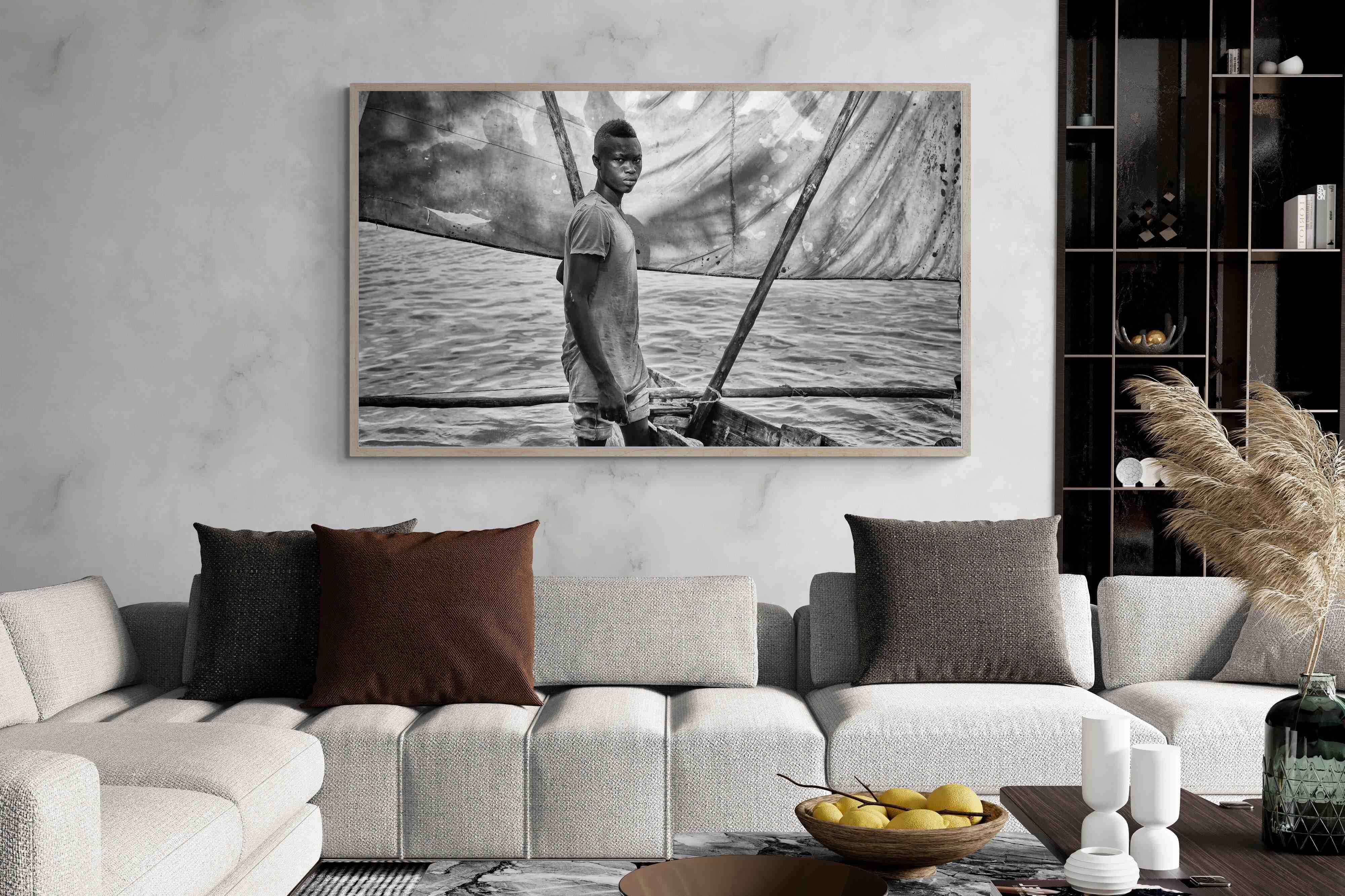 Those who appreciate the intricate details in photography might prefer framing behind glass, accentuating the contrasts and textures of "Fisherboy". Explore all three framing options in this short video.