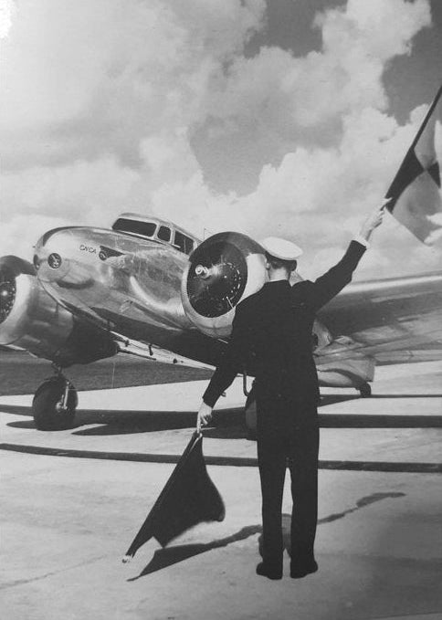 A timeless black and white scene captures a ground crew member signalling beside a polished aircraft, embodying the precision and discipline of early aviation. The composition balances human presence with mechanical power, creating a strong sense of motion and anticipation. Ideal for offices, studies or industrial-style interiors, this artwork adds character and historical depth. Its monochrome palette ensures ver