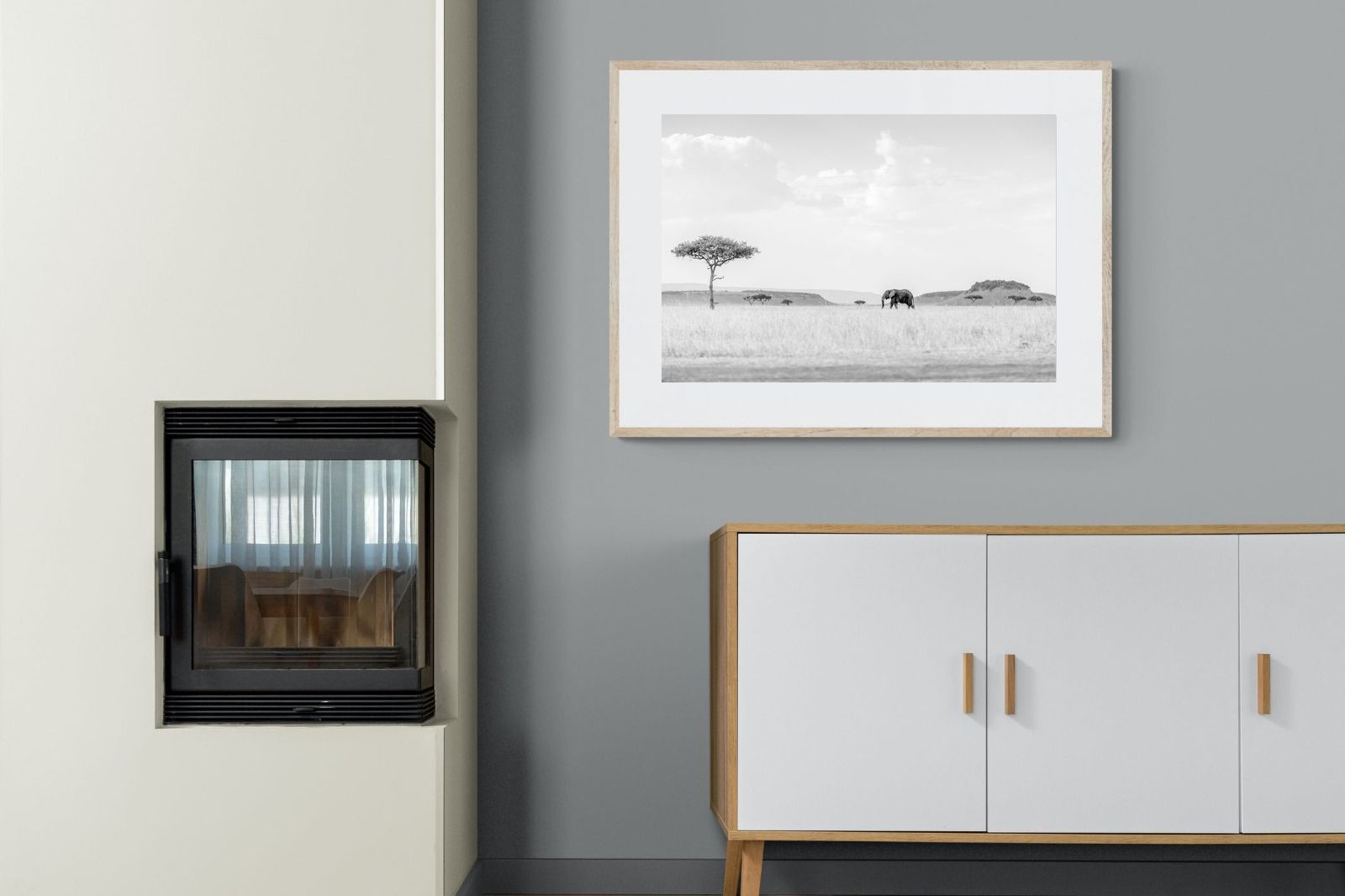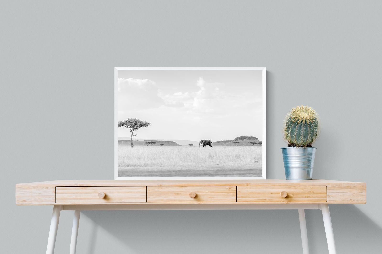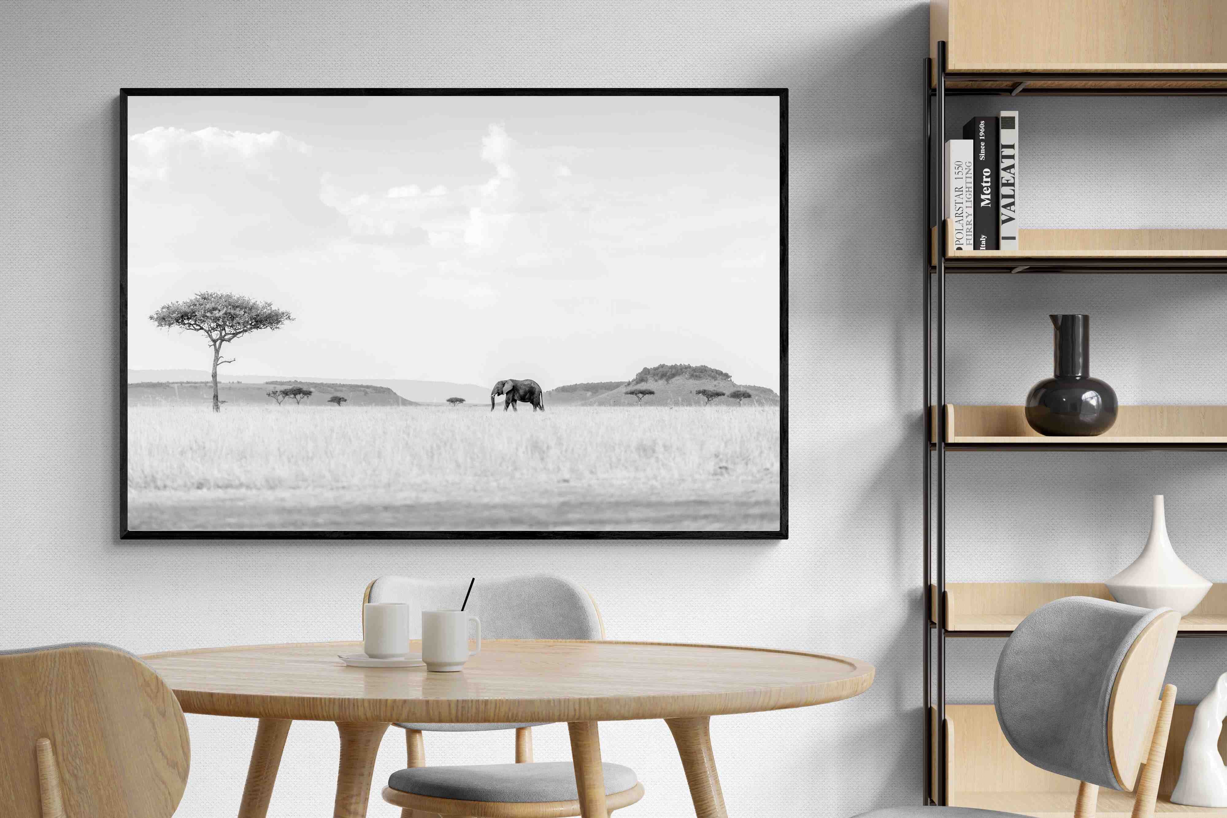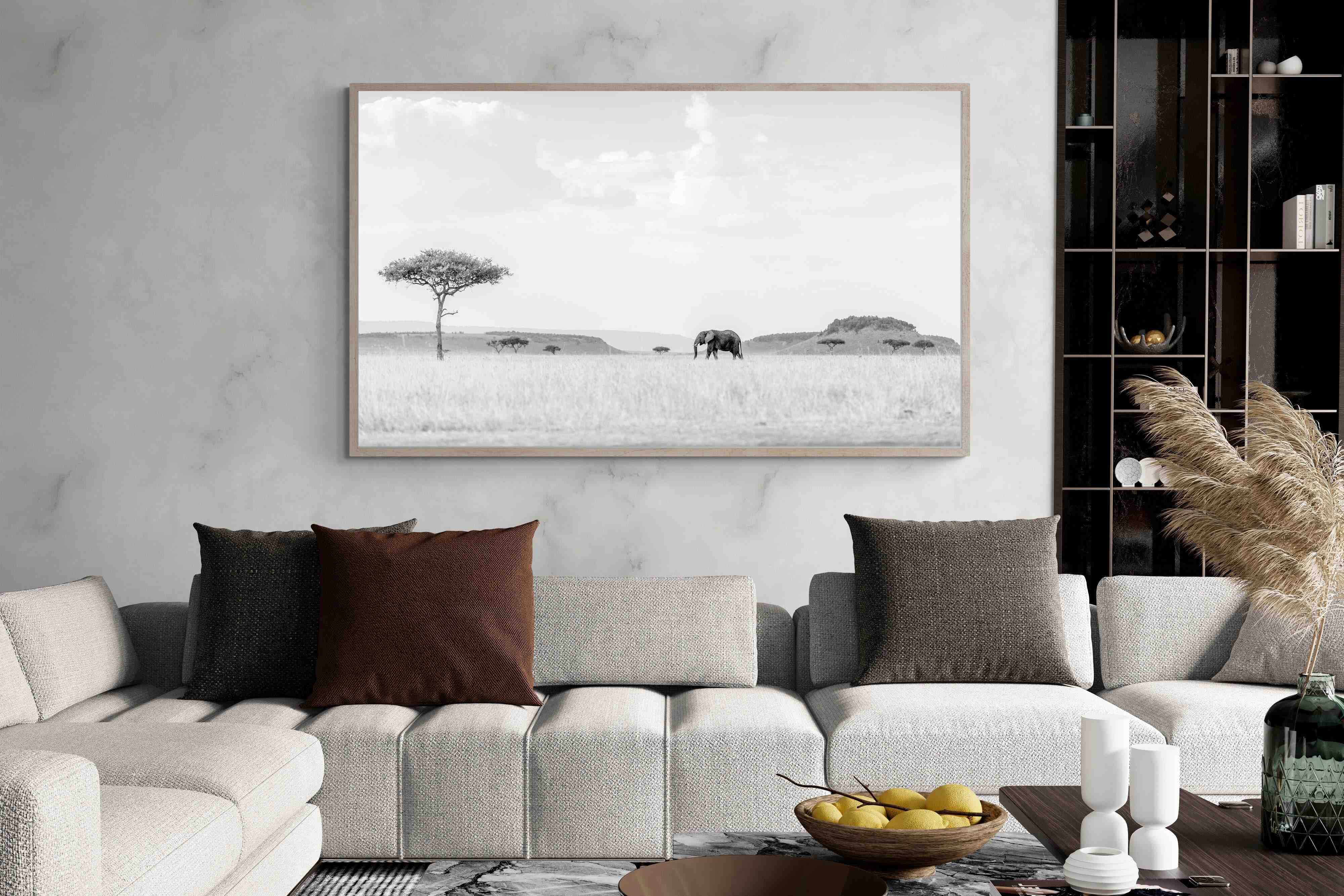 High Key Savannah Elephant Wall Art – Black and White African Landscape Print
