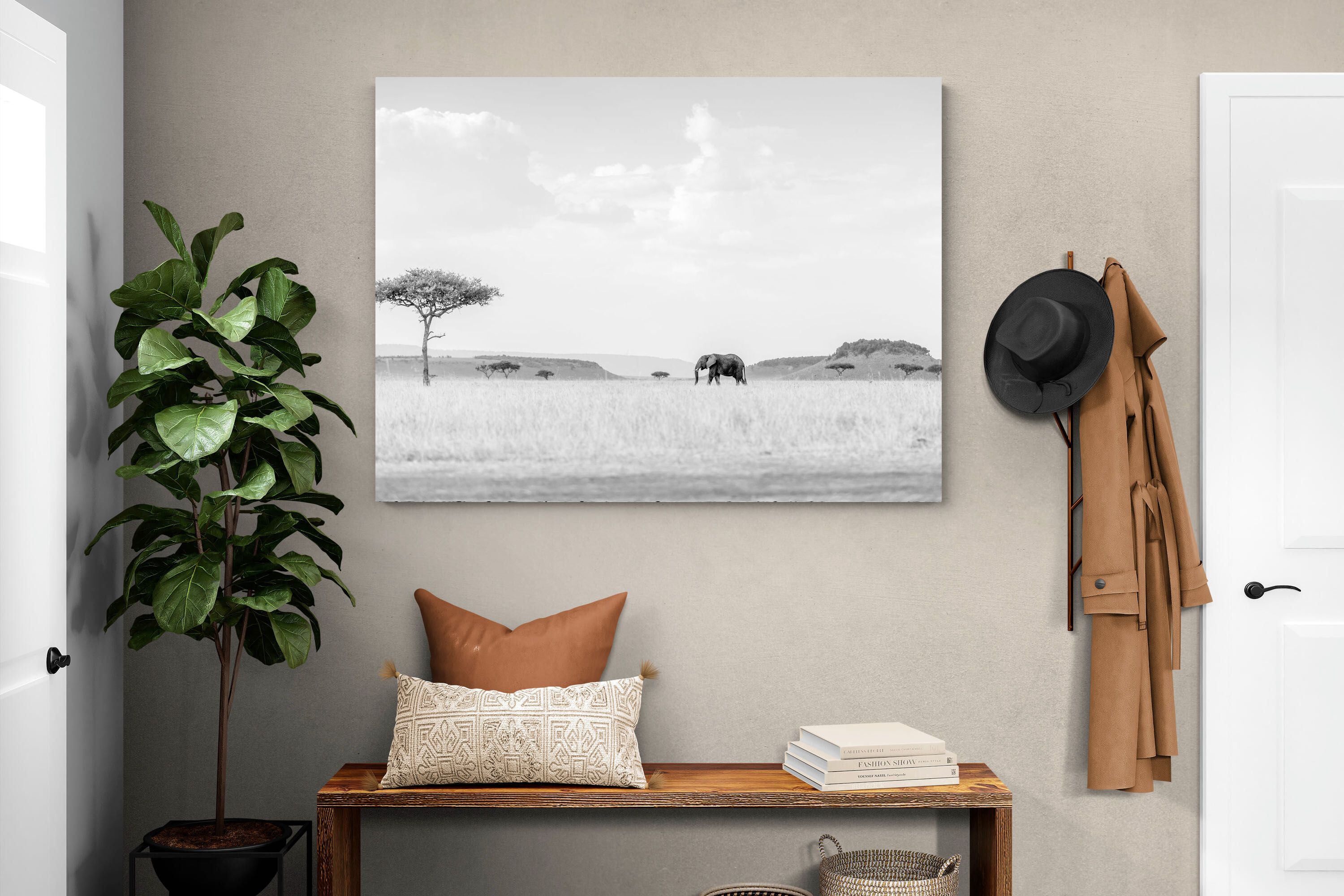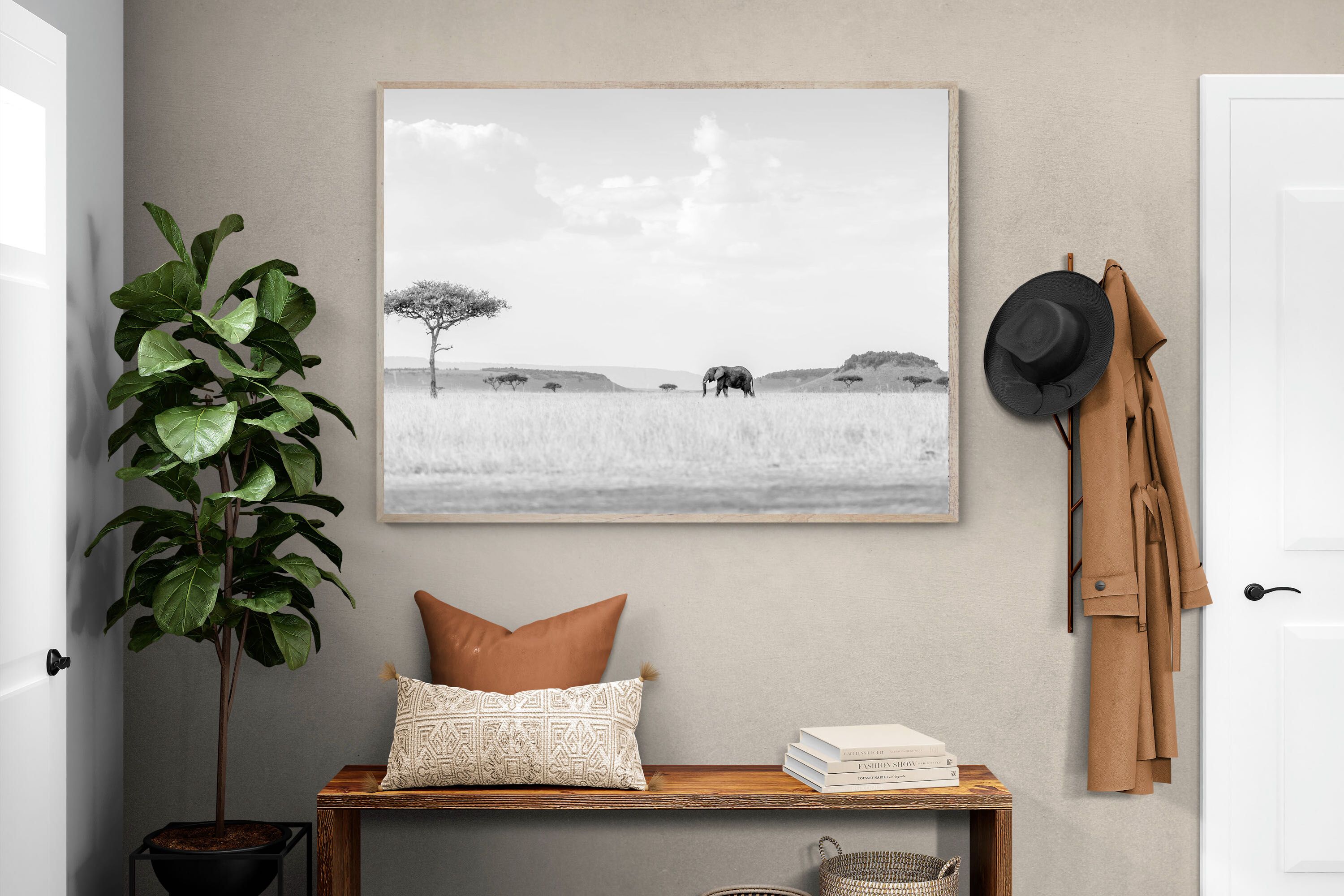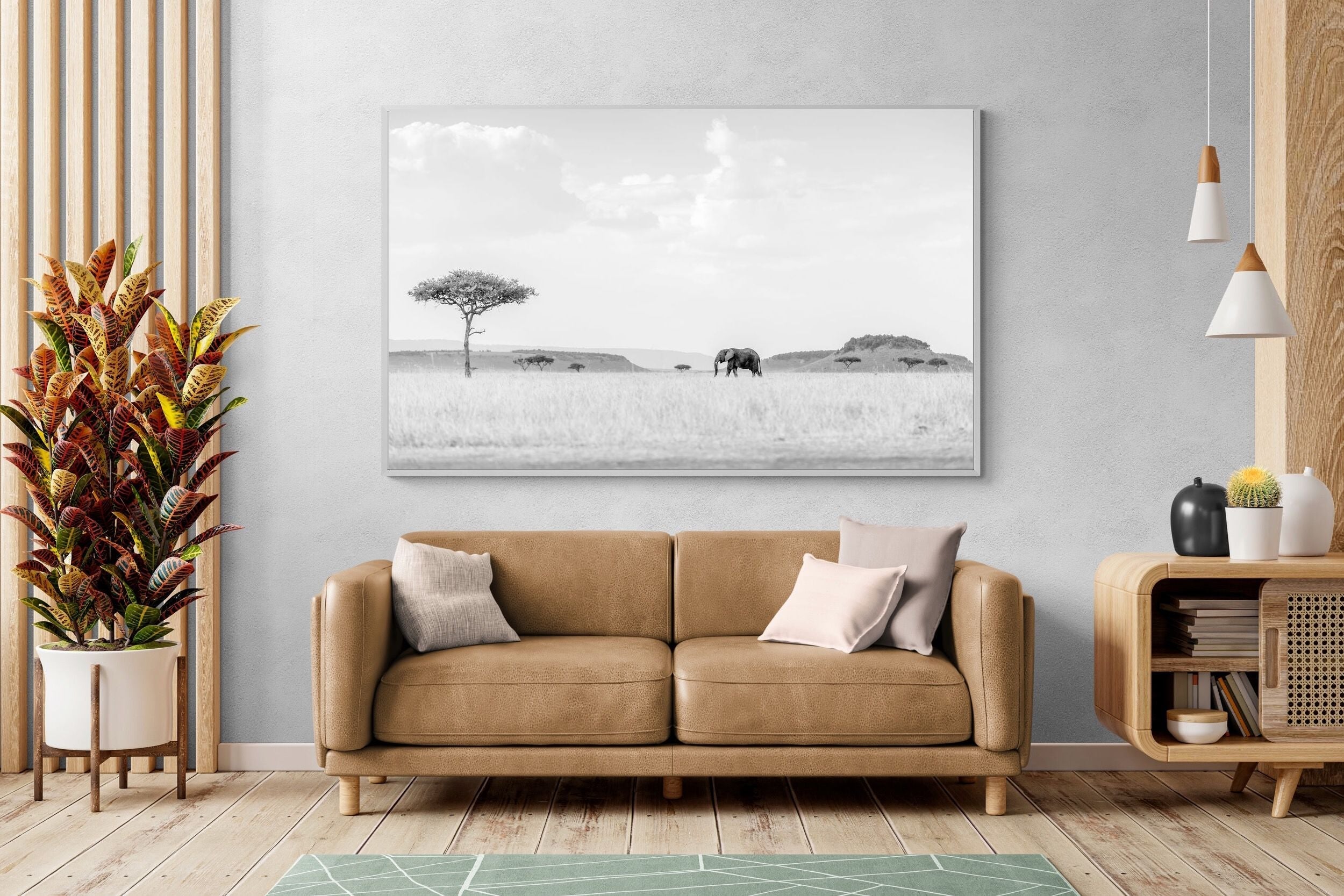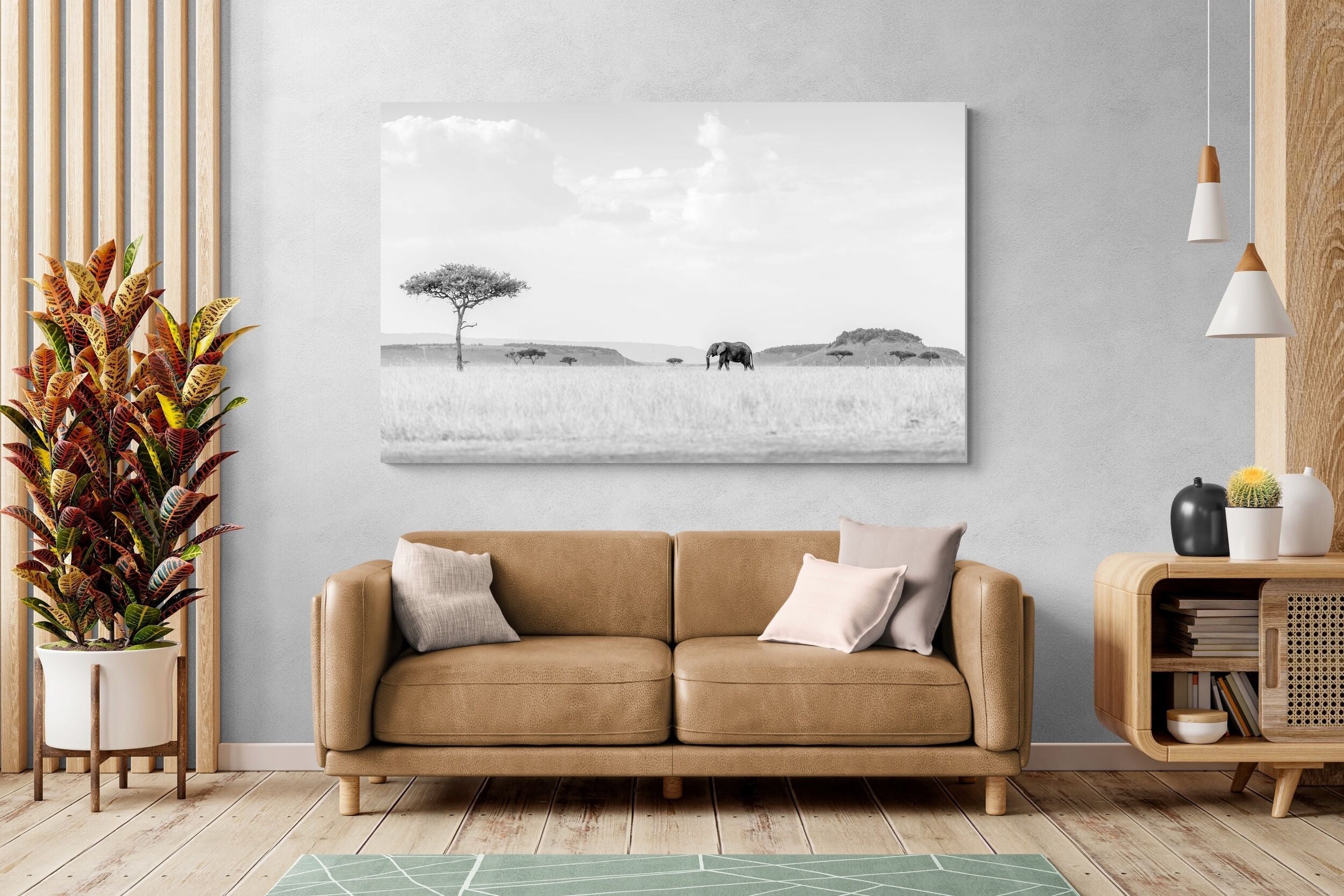 From striking animal portraits to atmospheric safari scenes, Jaco’s photography translates beautifully into large-format wall art for contemporary interiors.