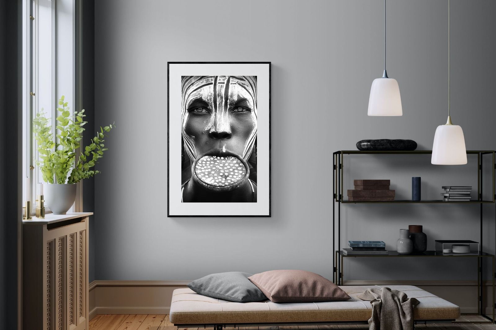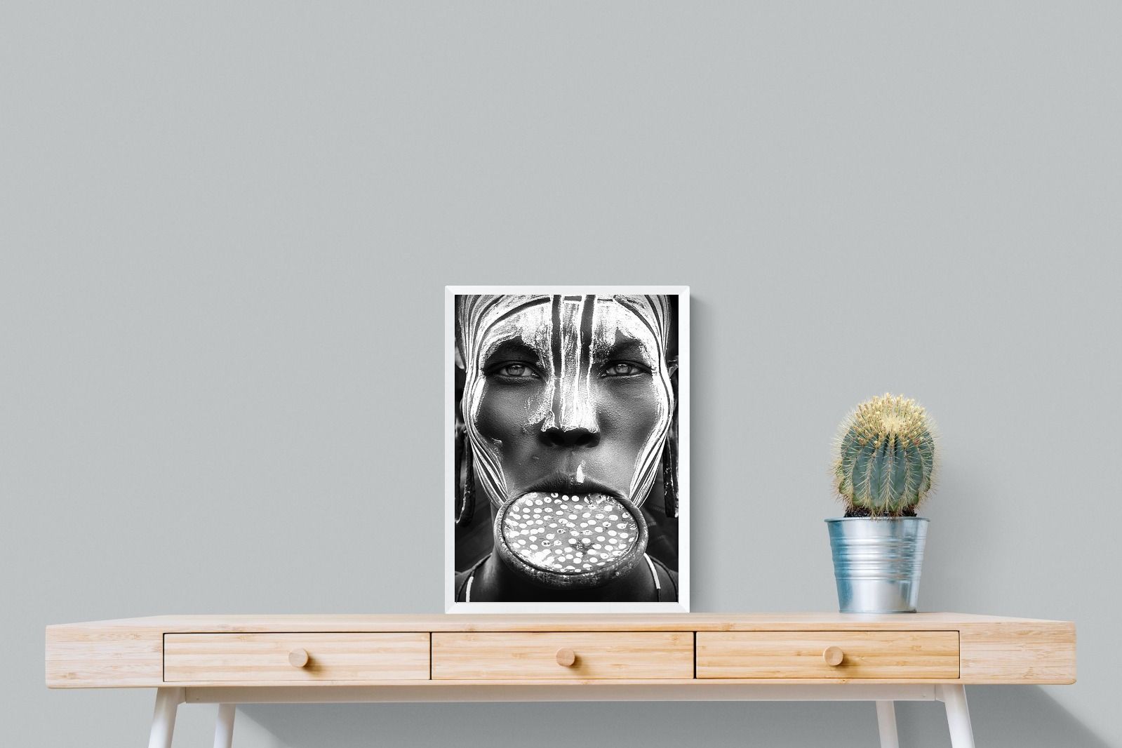 Mursi Lip Plate Portrait Wall Art – Bold Cultural Close-Up