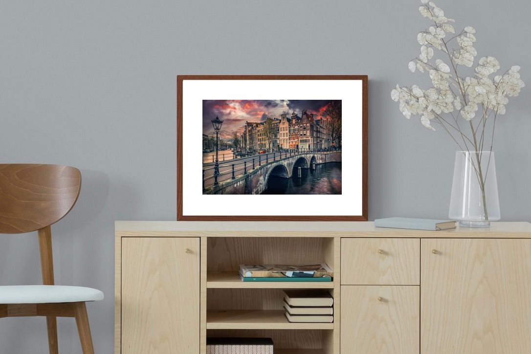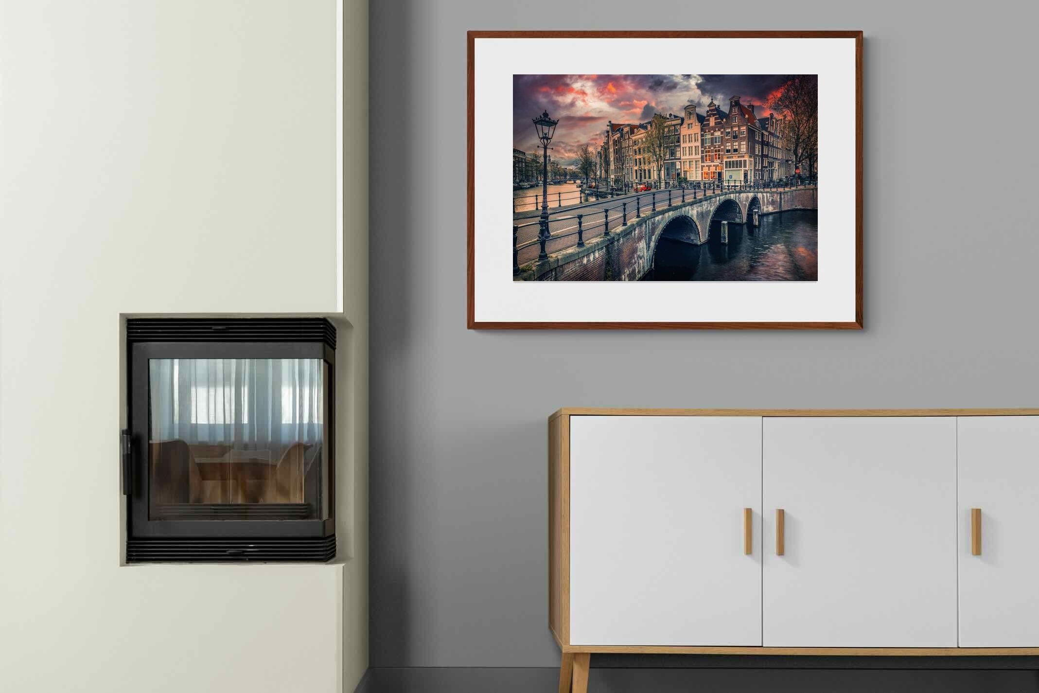 Amsterdam Canal Bridge Sunset Cityscape Wall Art