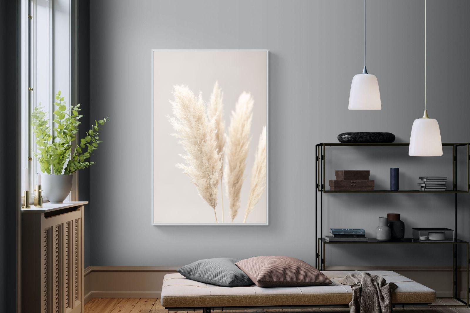 If you wish to make a significant statement in your room, consider our wallpaper option that tailors the artwork to your wall's dimensions. Regardless of your choice, "Pampas Quartet" Wall Art is certain to bring a serene elegance to any space.