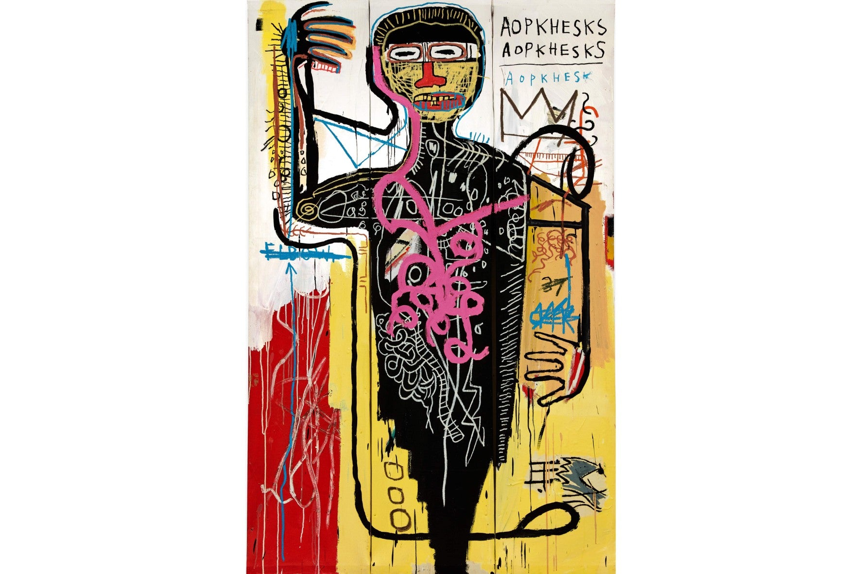 Jean-Michel Basquiat was a self-taught artist who burst onto the New York art scene in the late 1970s and gained international fame before his untimely death at the age of 27. His graffiti-influenced Neo-expressionist work is often characterised by their focus on dichotomies such as wealth versus poverty and integration versus segregation.