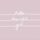 This charming artwork features a soft pink background with a handwritten-style message: "hello beautiful girl." Its simplicity and warmth make it a lovely addition to a child's room. The delicate script and gentle tone create an inviting, positive atmosphere. This piece adds a touch of kindness and affirmation to modern interiors, perfectly blending minimalism with a meaningful, uplifting message.