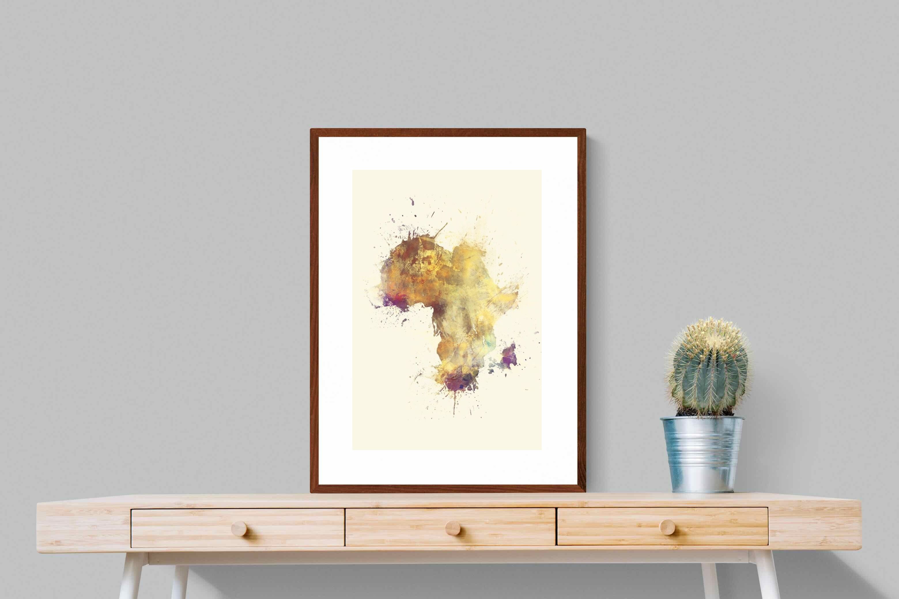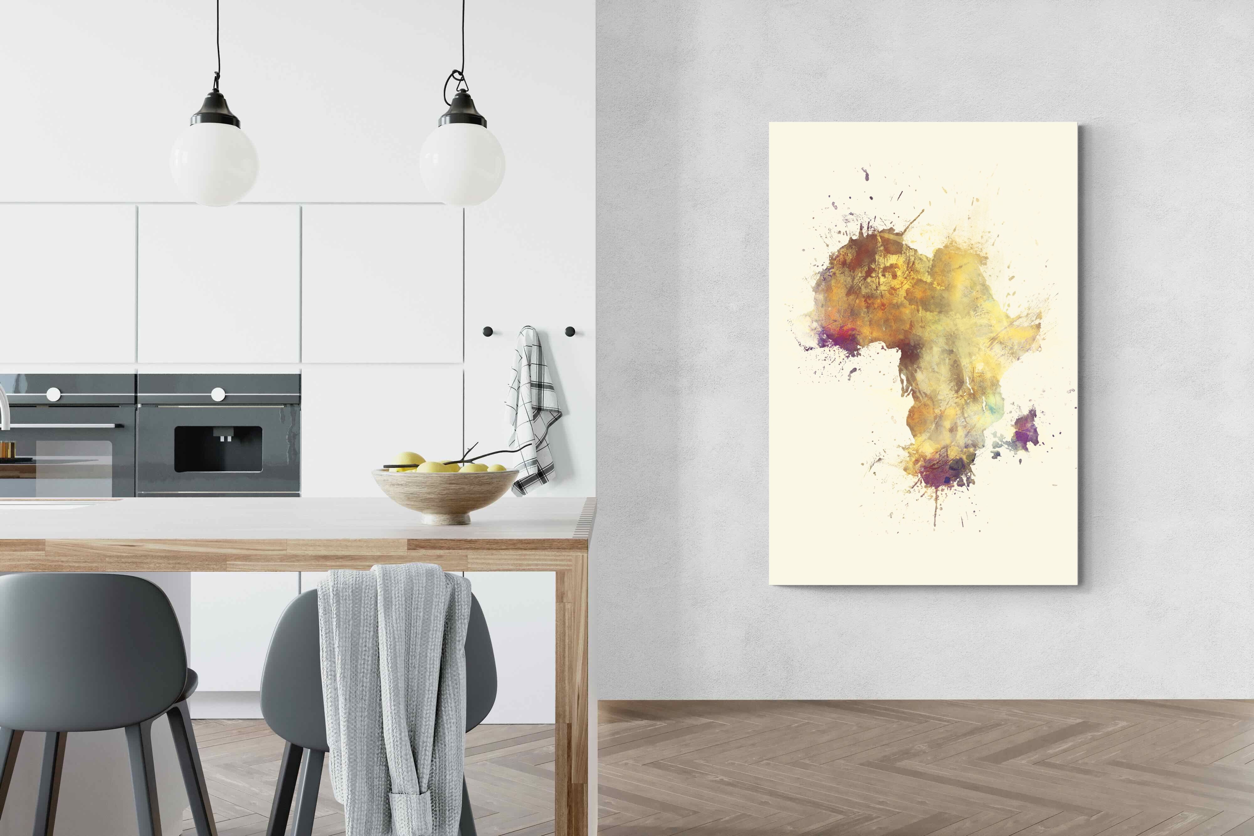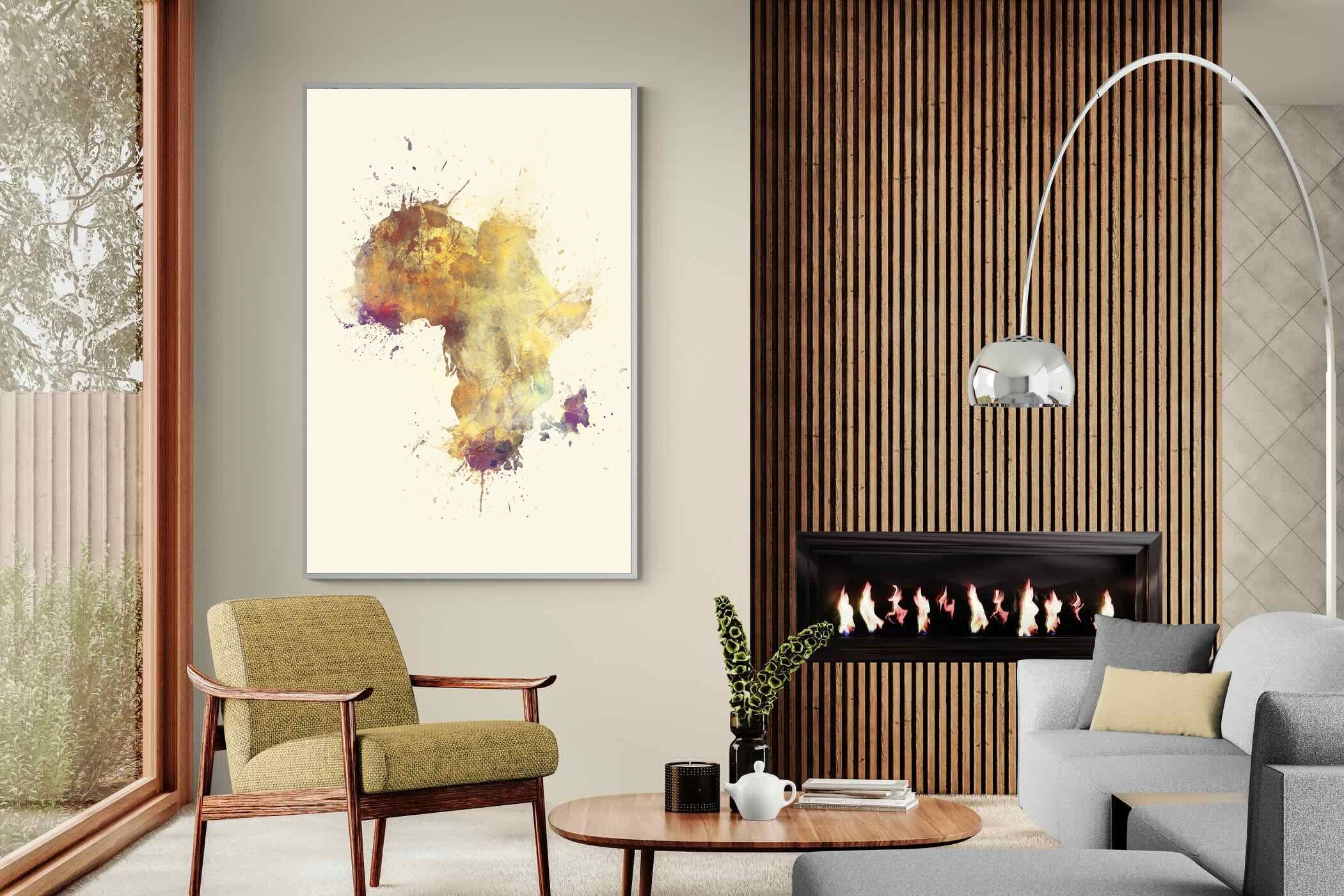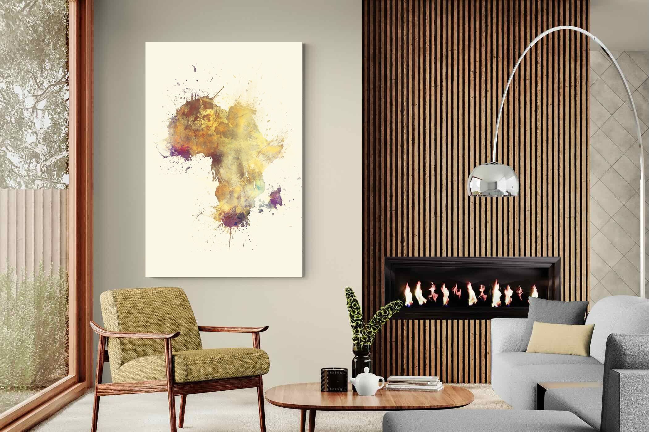 This striking watercolour artwork reimagines the African continent through abstract splashes of ochre, burnt sienna, and violet. The flowing textures and layered pigments evoke both earth and fire, capturing Africa’s raw energy and timeless soul. Ideal for modern interiors with neutral or natural palettes, this piece brings cultural depth and visual intrigue to your space. A bold tribute to heritage, identity, and the beauty of imperfection in motion.