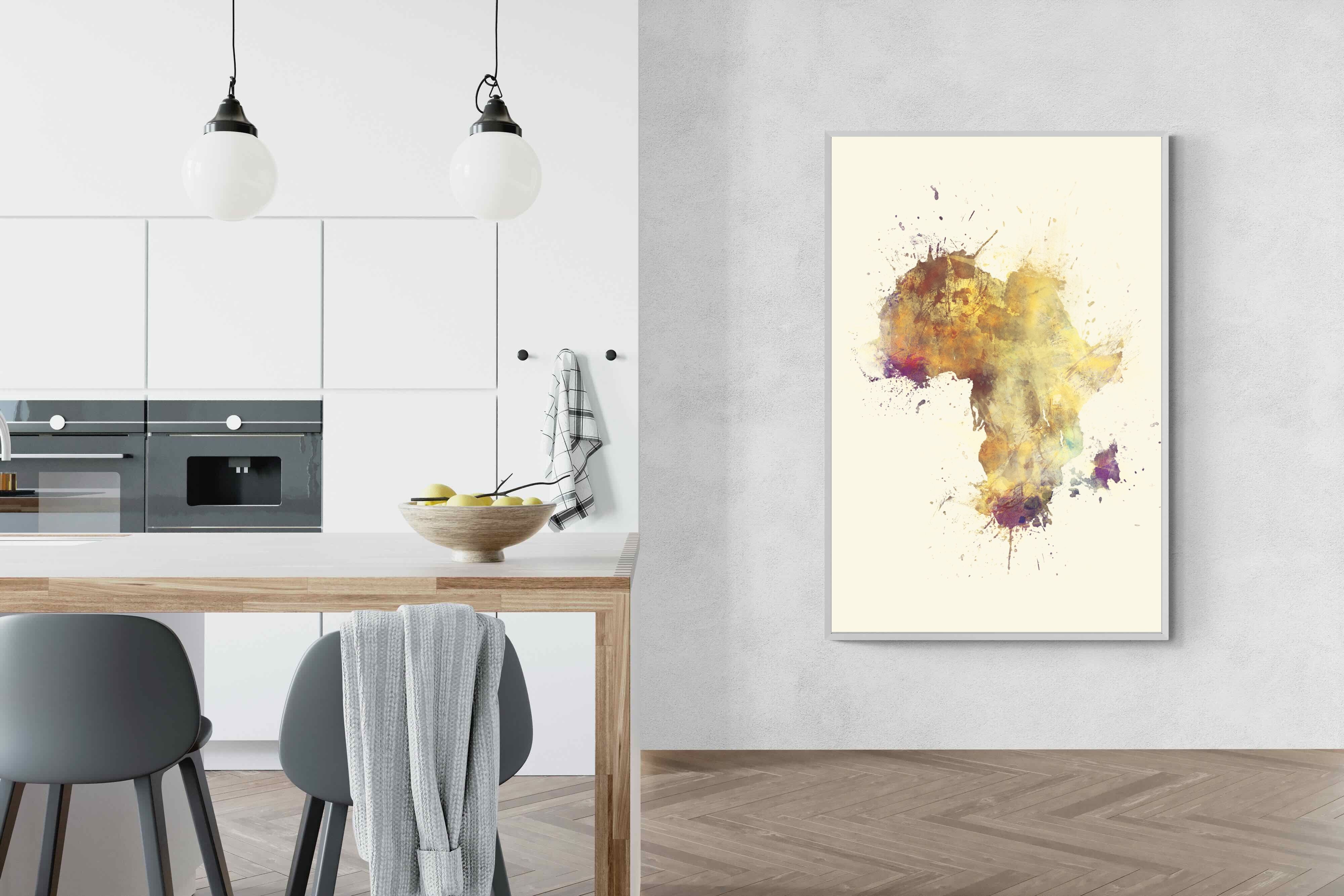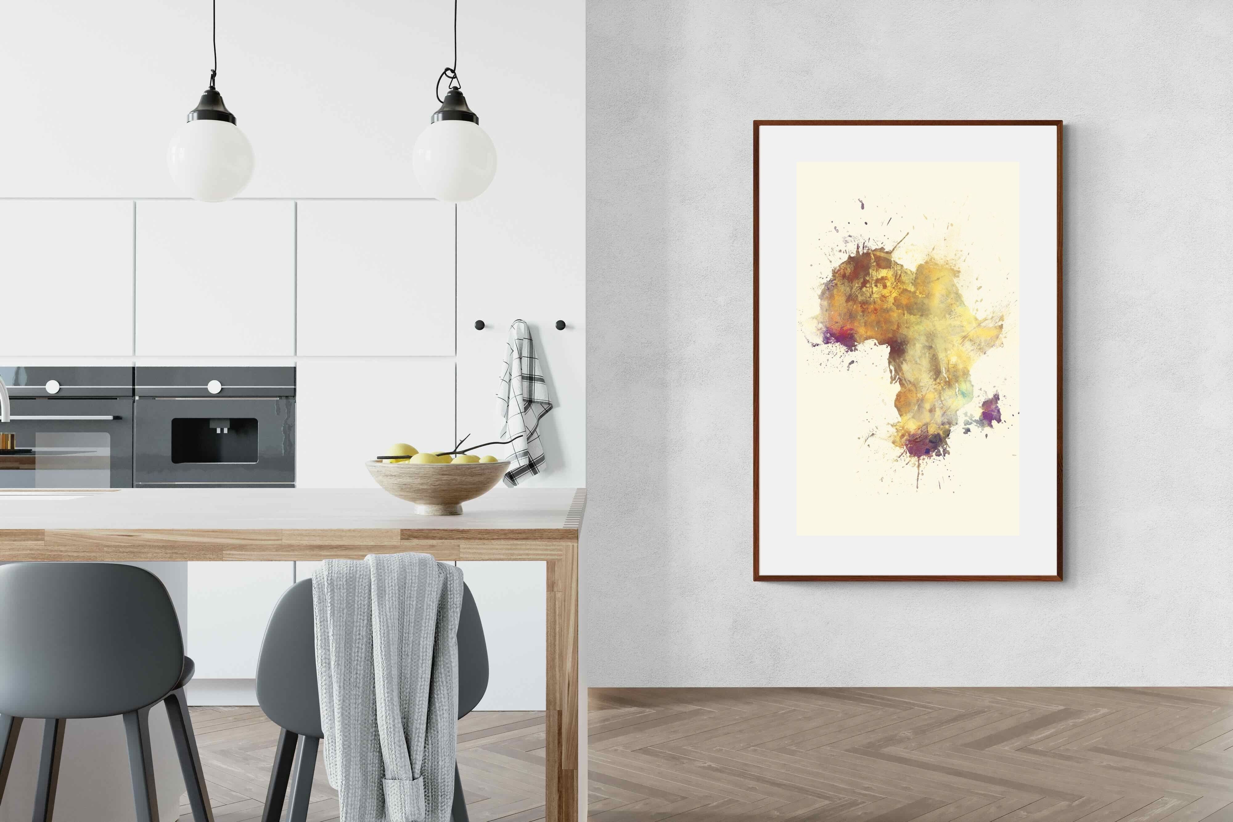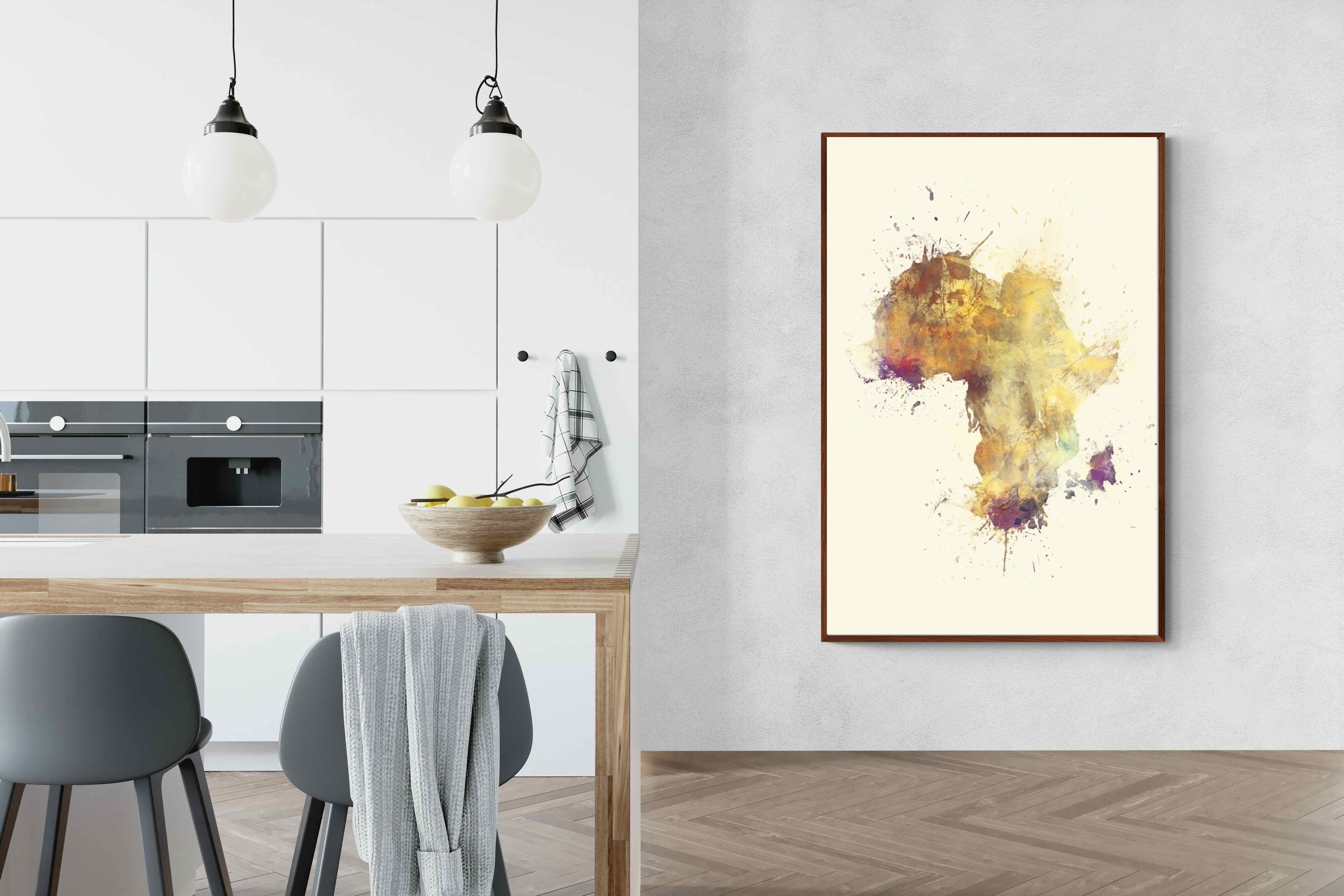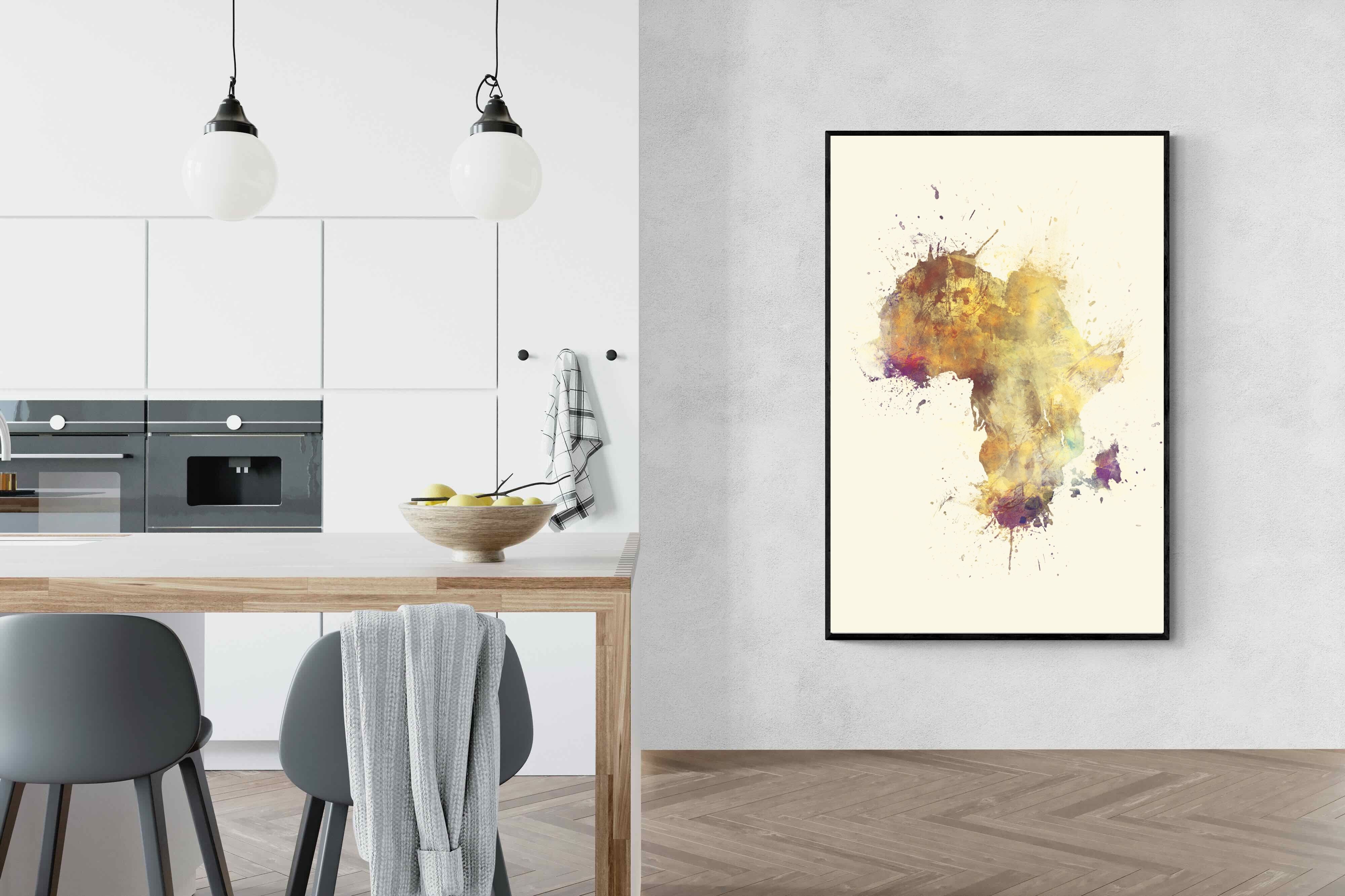 This striking watercolour artwork reimagines the African continent through abstract splashes of ochre, burnt sienna, and violet. The flowing textures and layered pigments evoke both earth and fire, capturing Africa’s raw energy and timeless soul. Ideal for modern interiors with neutral or natural palettes, this piece brings cultural depth and visual intrigue to your space. A bold tribute to heritage, identity, and the beauty of imperfection in motion.