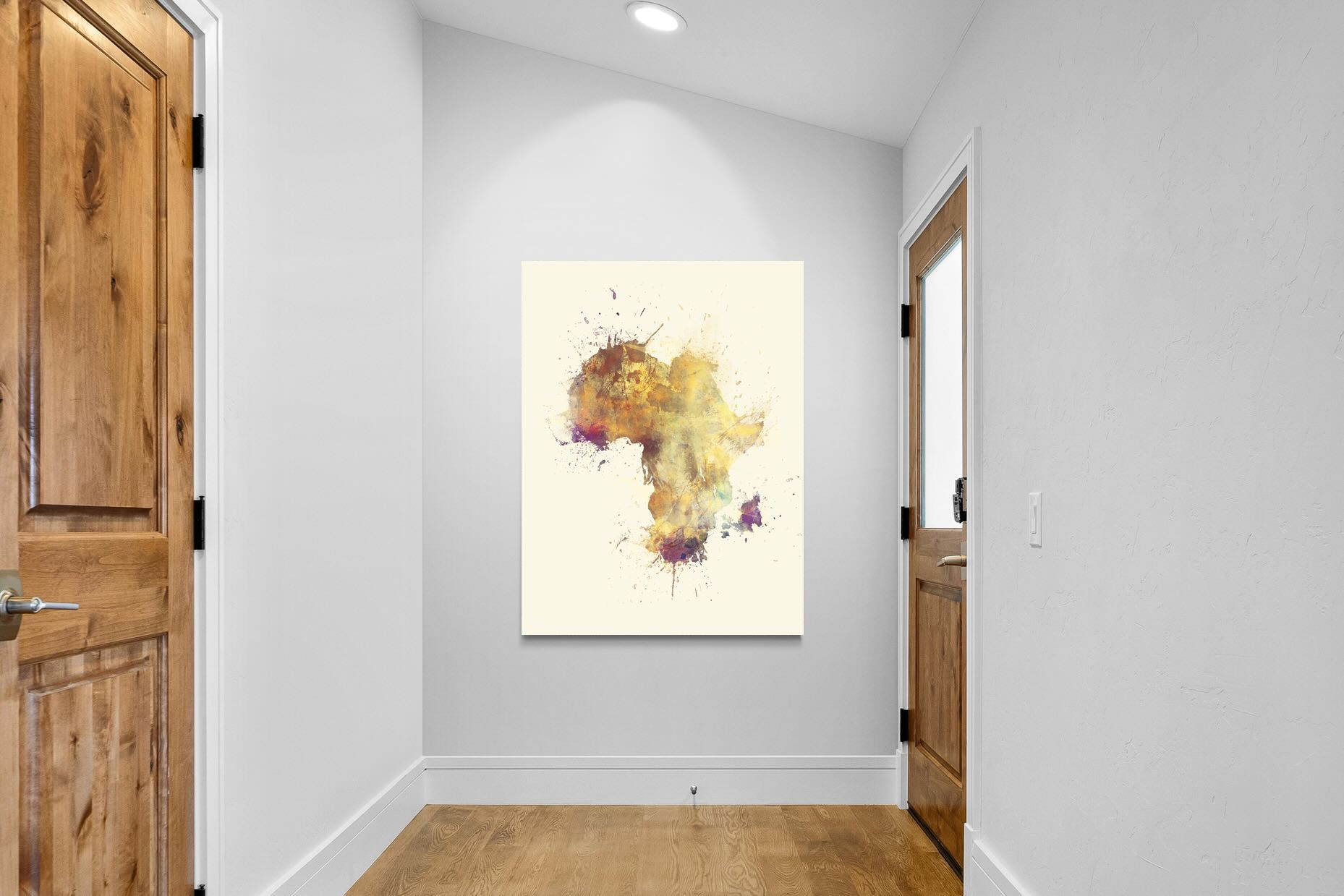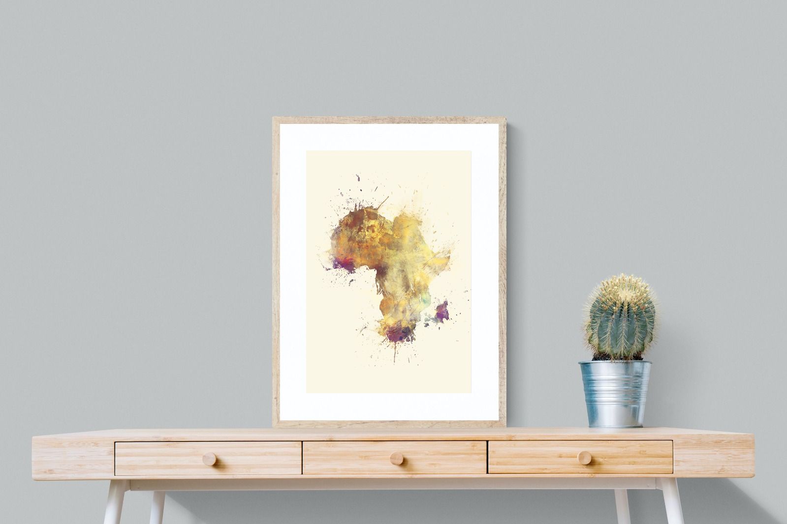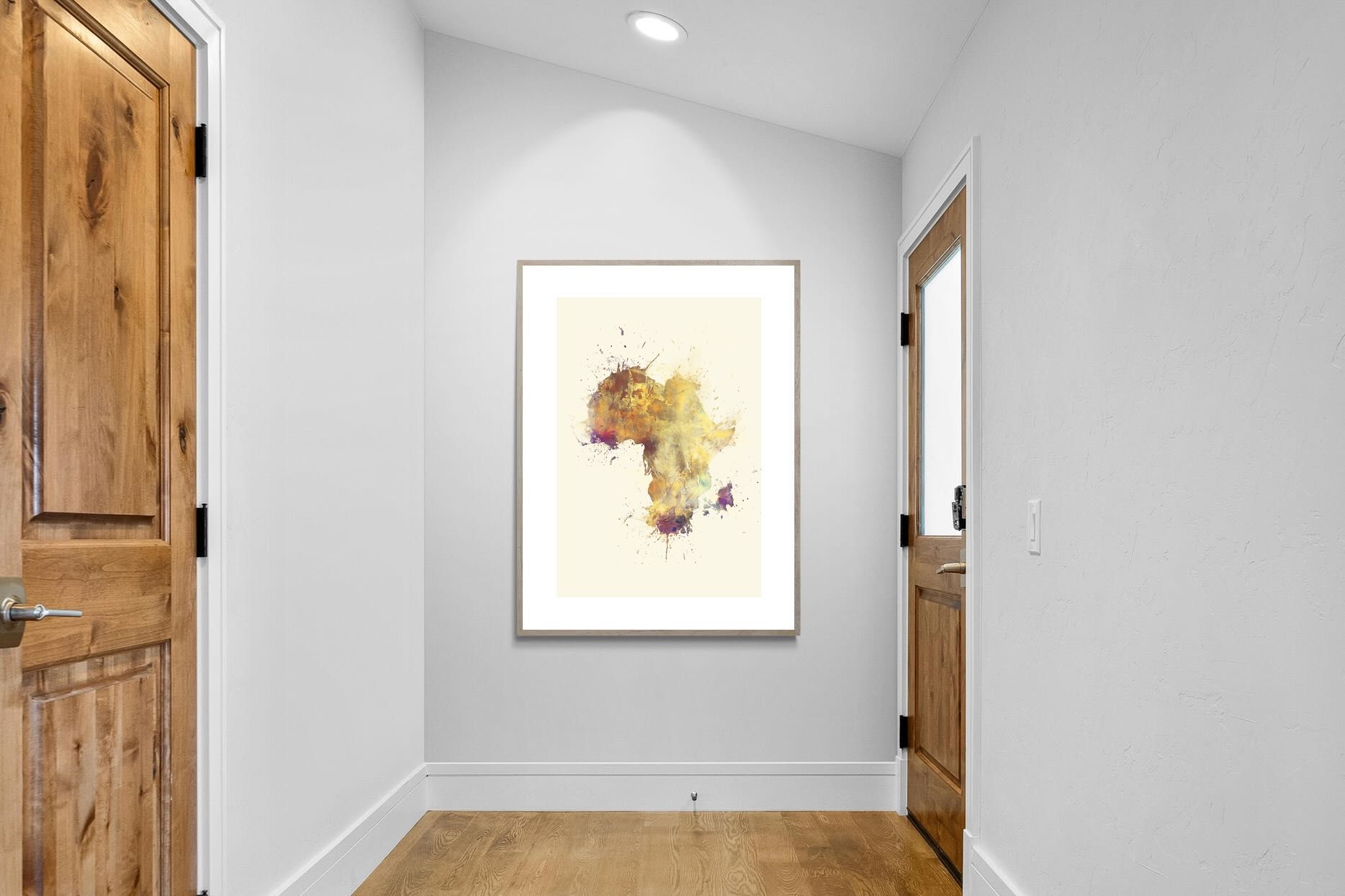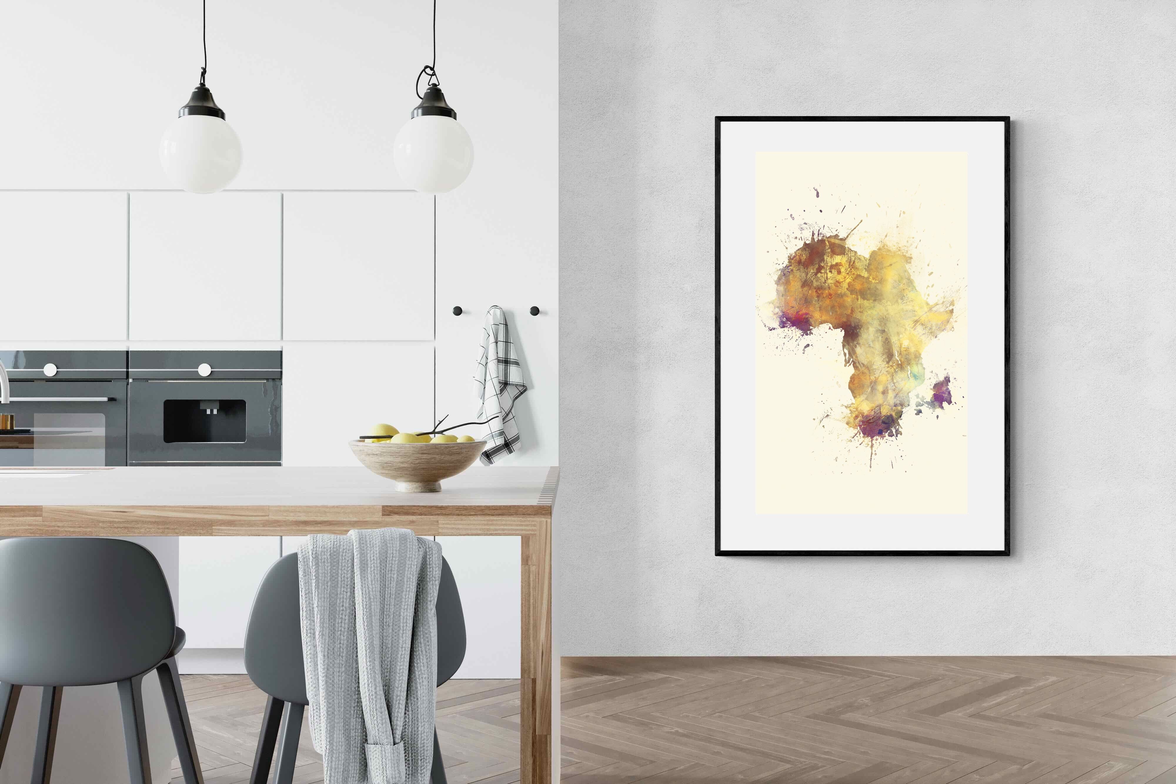 This striking watercolour artwork reimagines the African continent through abstract splashes of ochre, burnt sienna, and violet. The flowing textures and layered pigments evoke both earth and fire, capturing Africa’s raw energy and timeless soul. Ideal for modern interiors with neutral or natural palettes, this piece brings cultural depth and visual intrigue to your space. A bold tribute to heritage, identity, and the beauty of imperfection in motion.