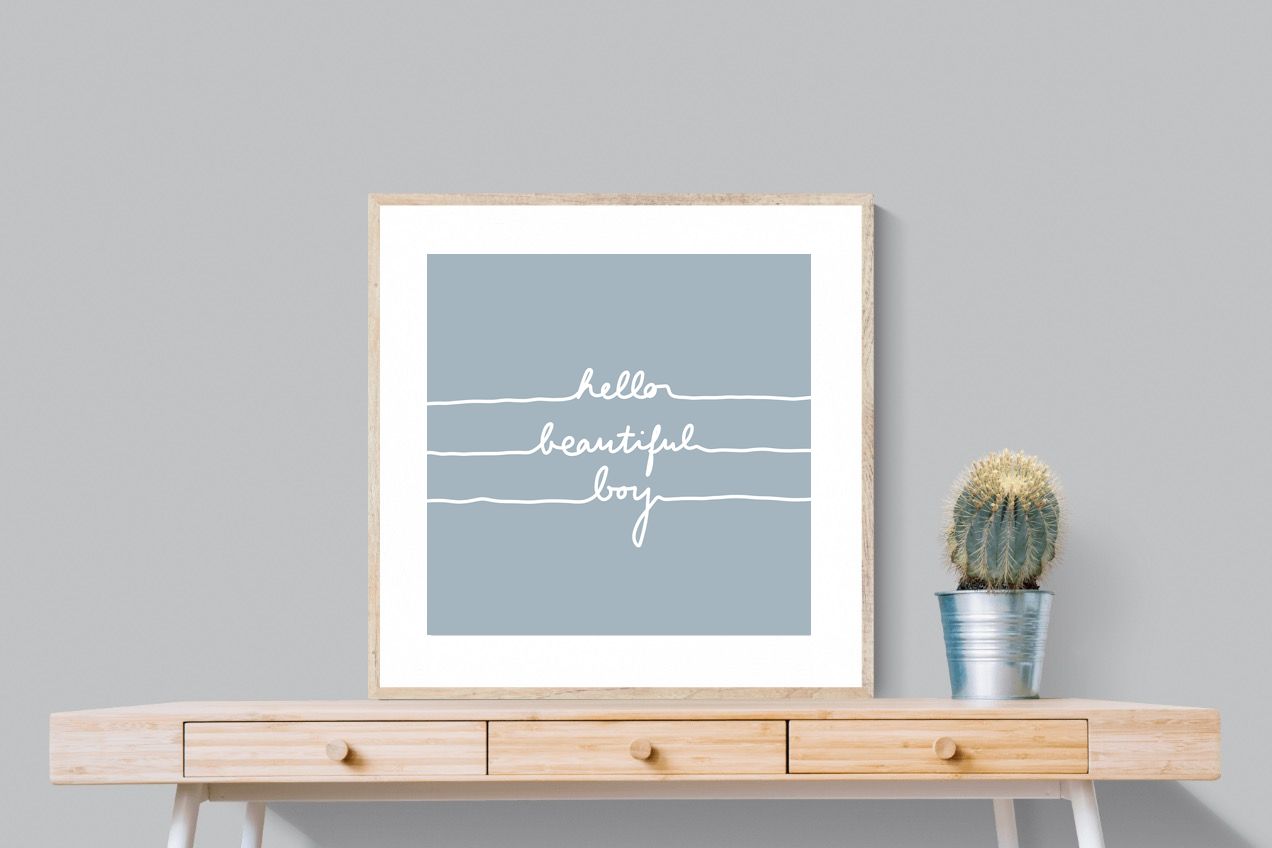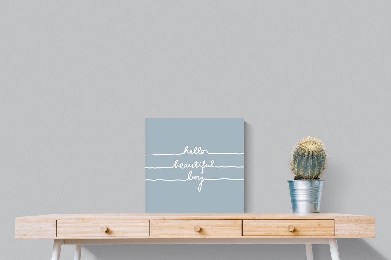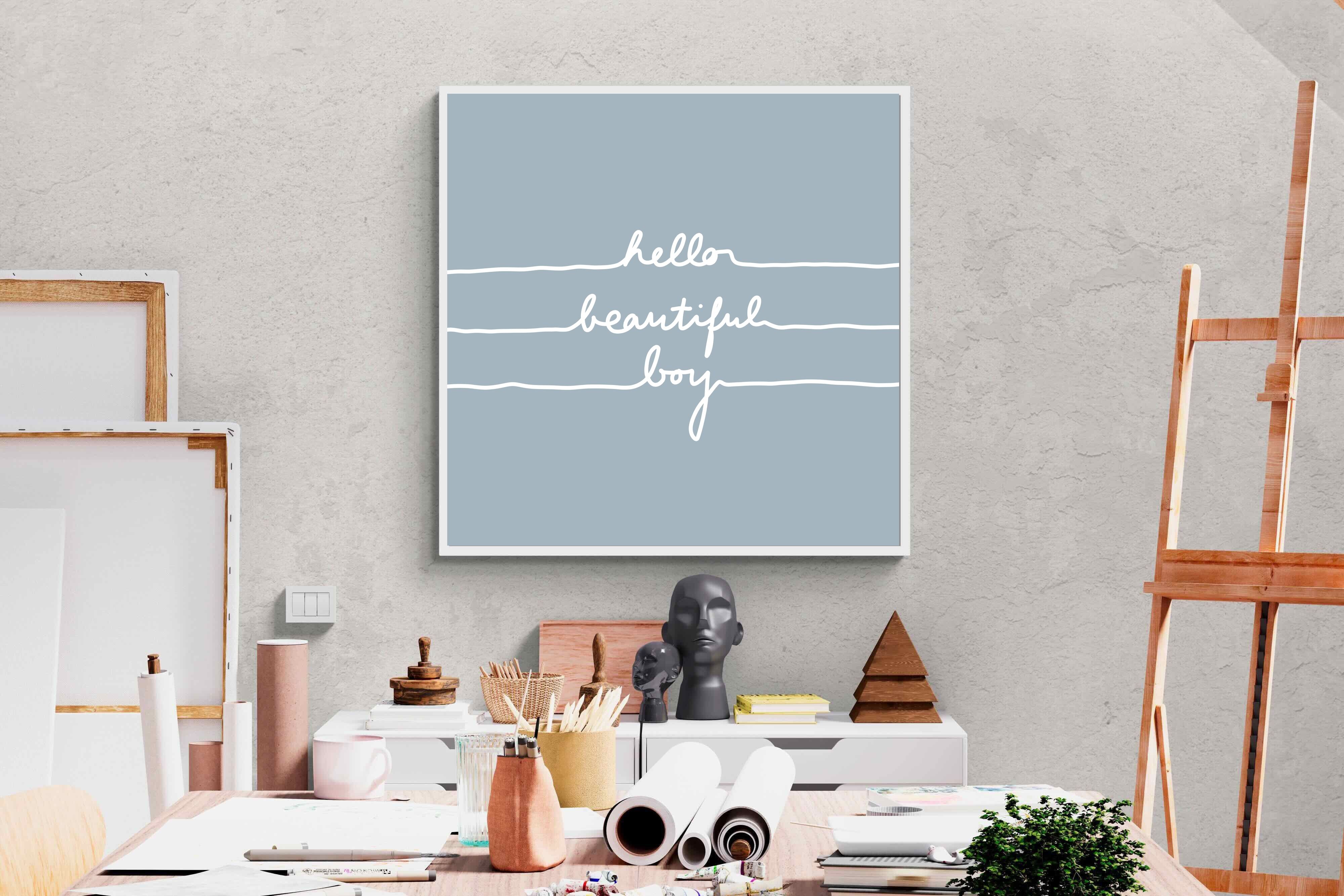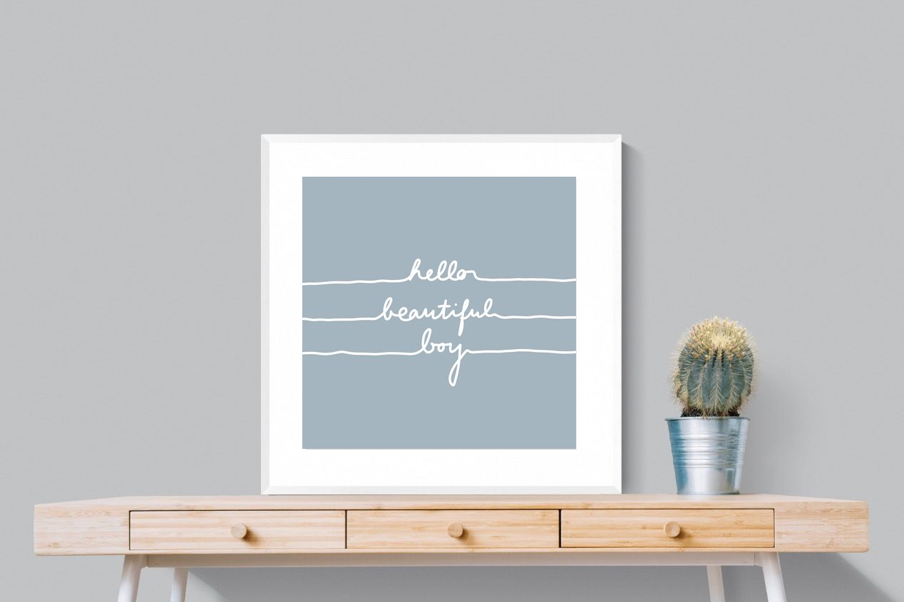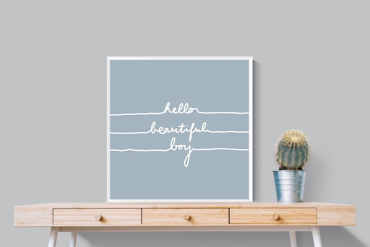 This charming artwork features a soft pink background with a handwritten-style message: "hello beautiful boy." Its simplicity and warmth make it a lovely addition to a child's room. The delicate script and gentle tone create an inviting, positive atmosphere. This piece adds a touch of kindness and affirmation to modern interiors, perfectly blending minimalism with a meaningful, uplifting message.