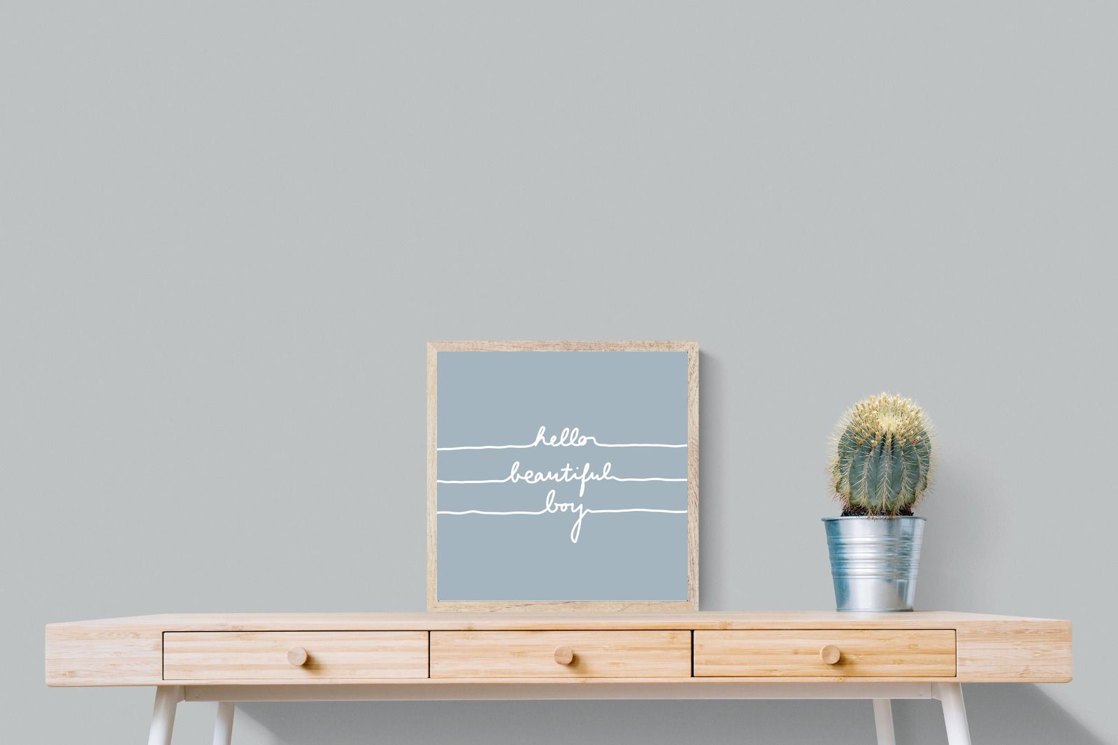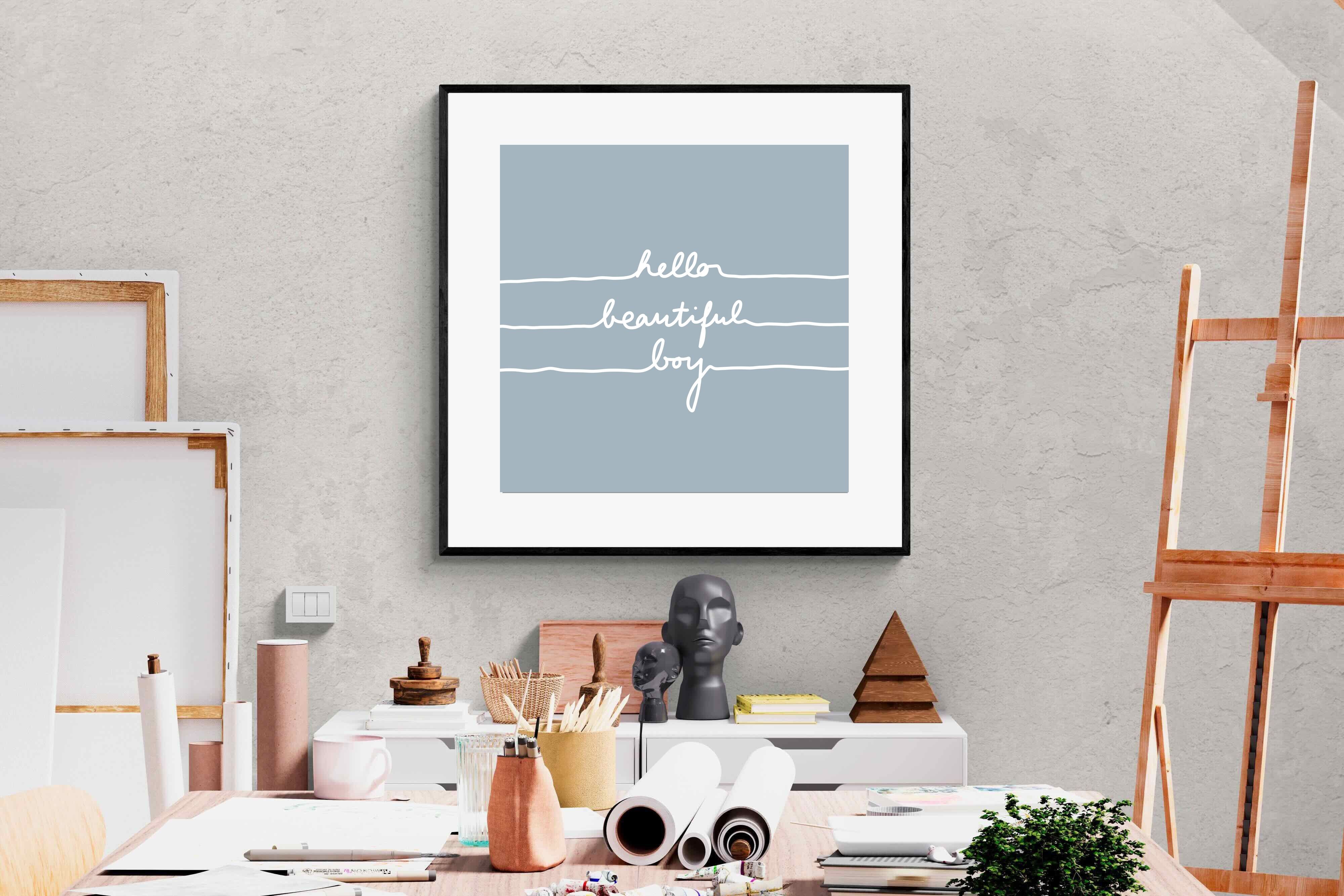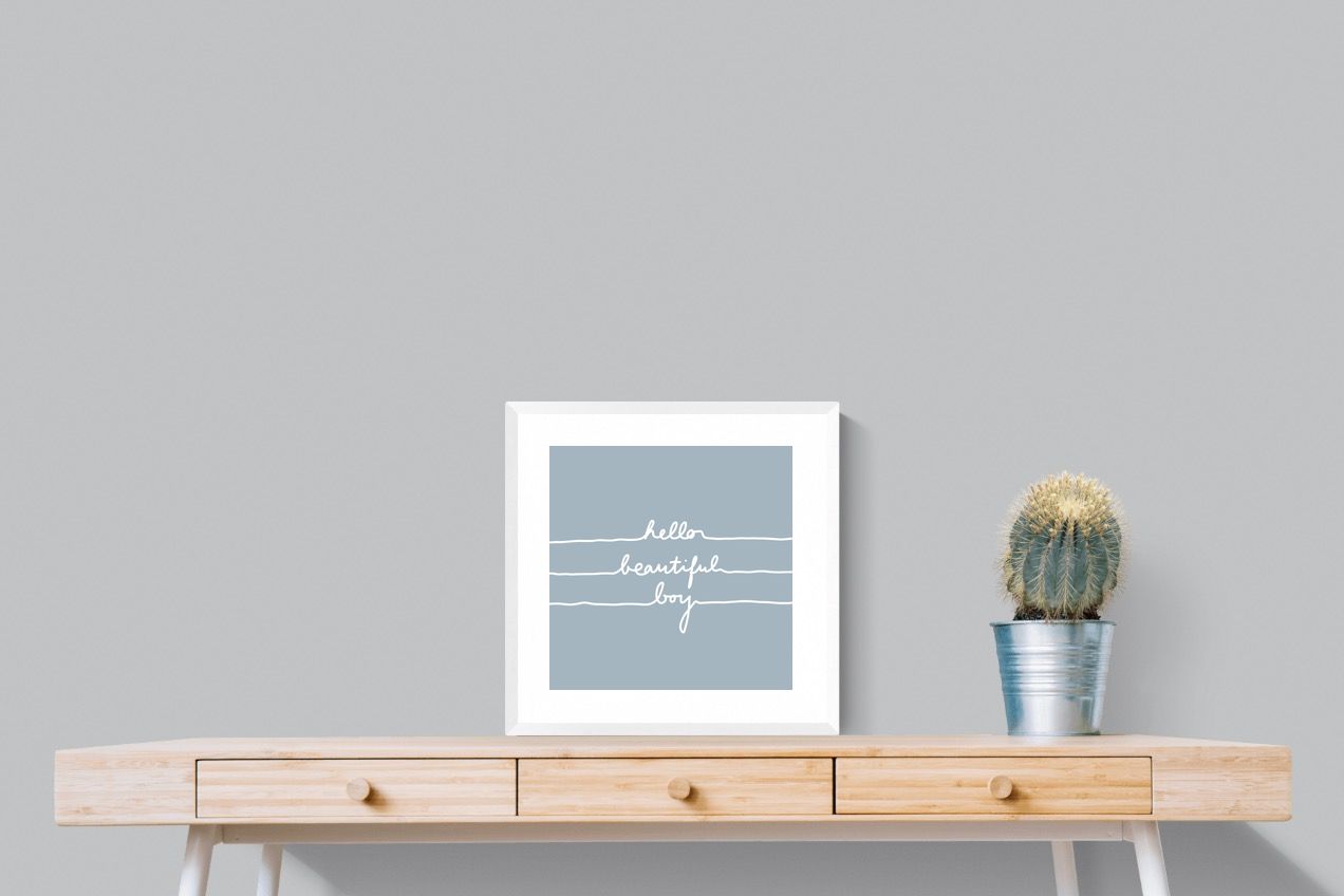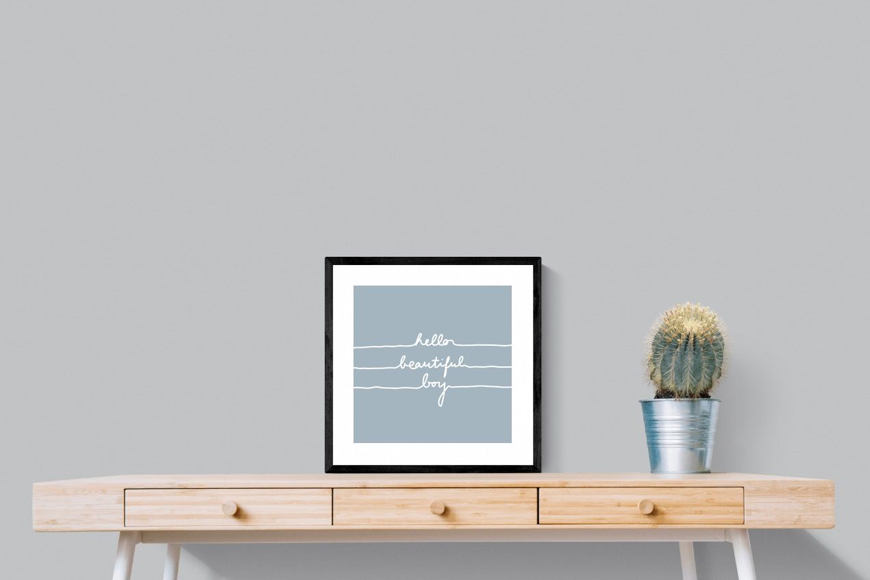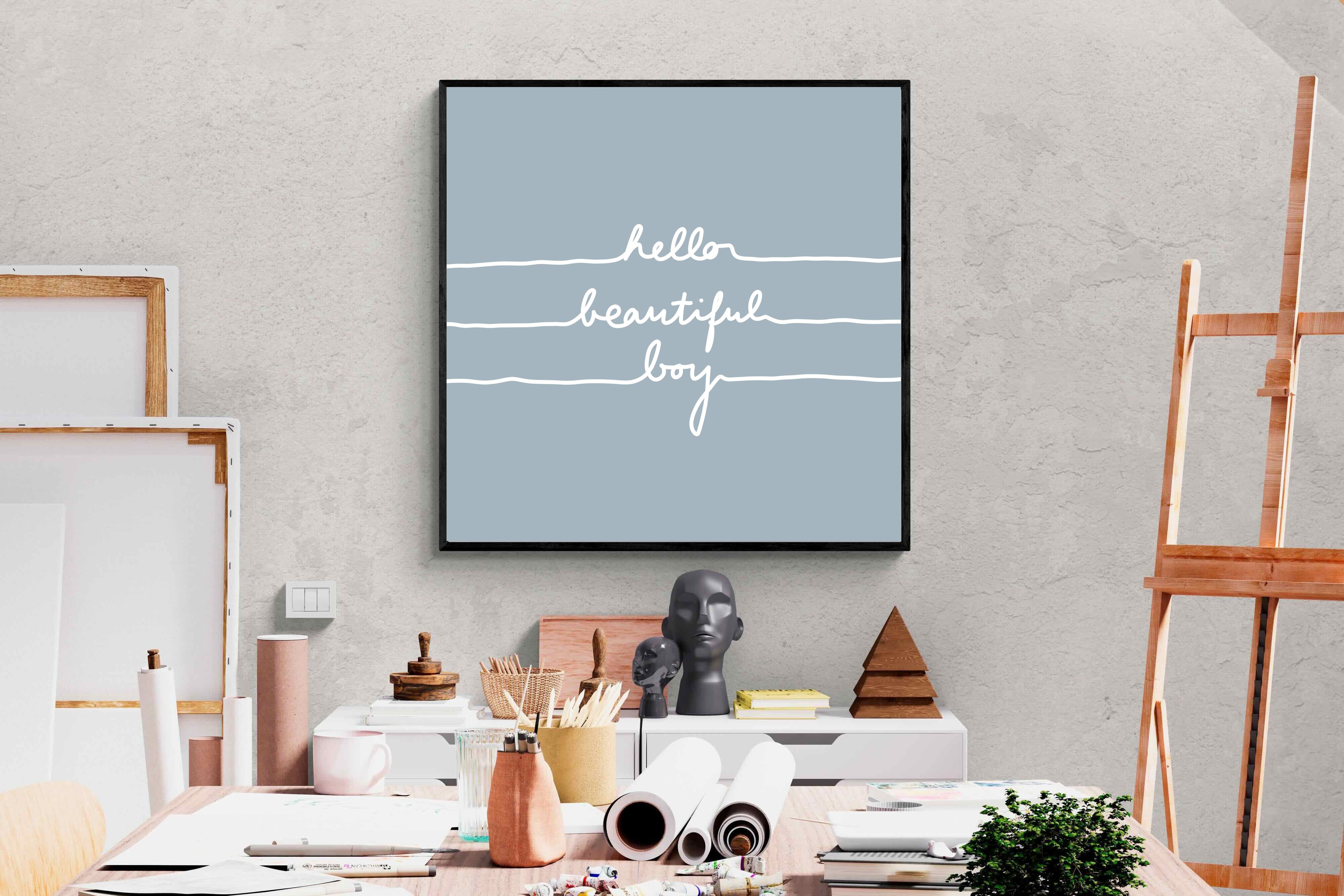 This charming artwork features a soft pink background with a handwritten-style message: "hello beautiful boy." Its simplicity and warmth make it a lovely addition to a child's room. The delicate script and gentle tone create an inviting, positive atmosphere. This piece adds a touch of kindness and affirmation to modern interiors, perfectly blending minimalism with a meaningful, uplifting message.