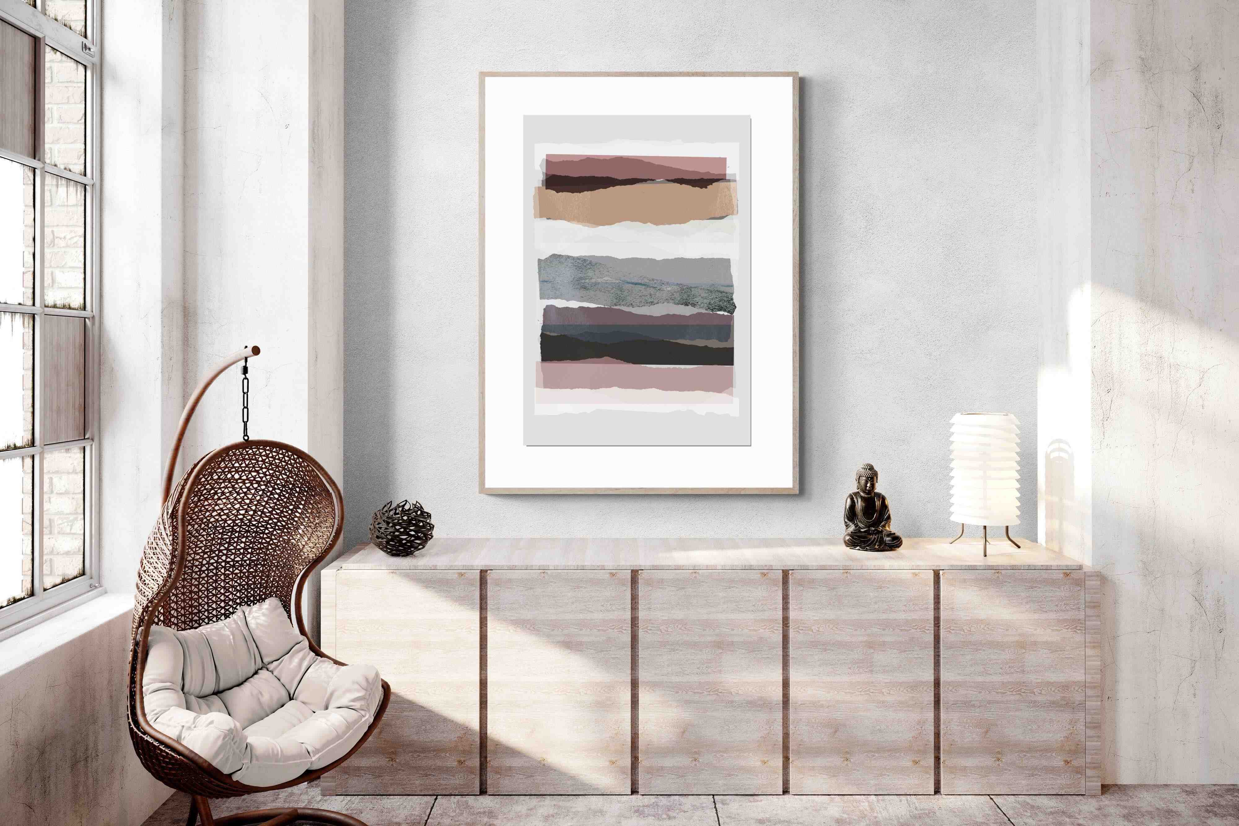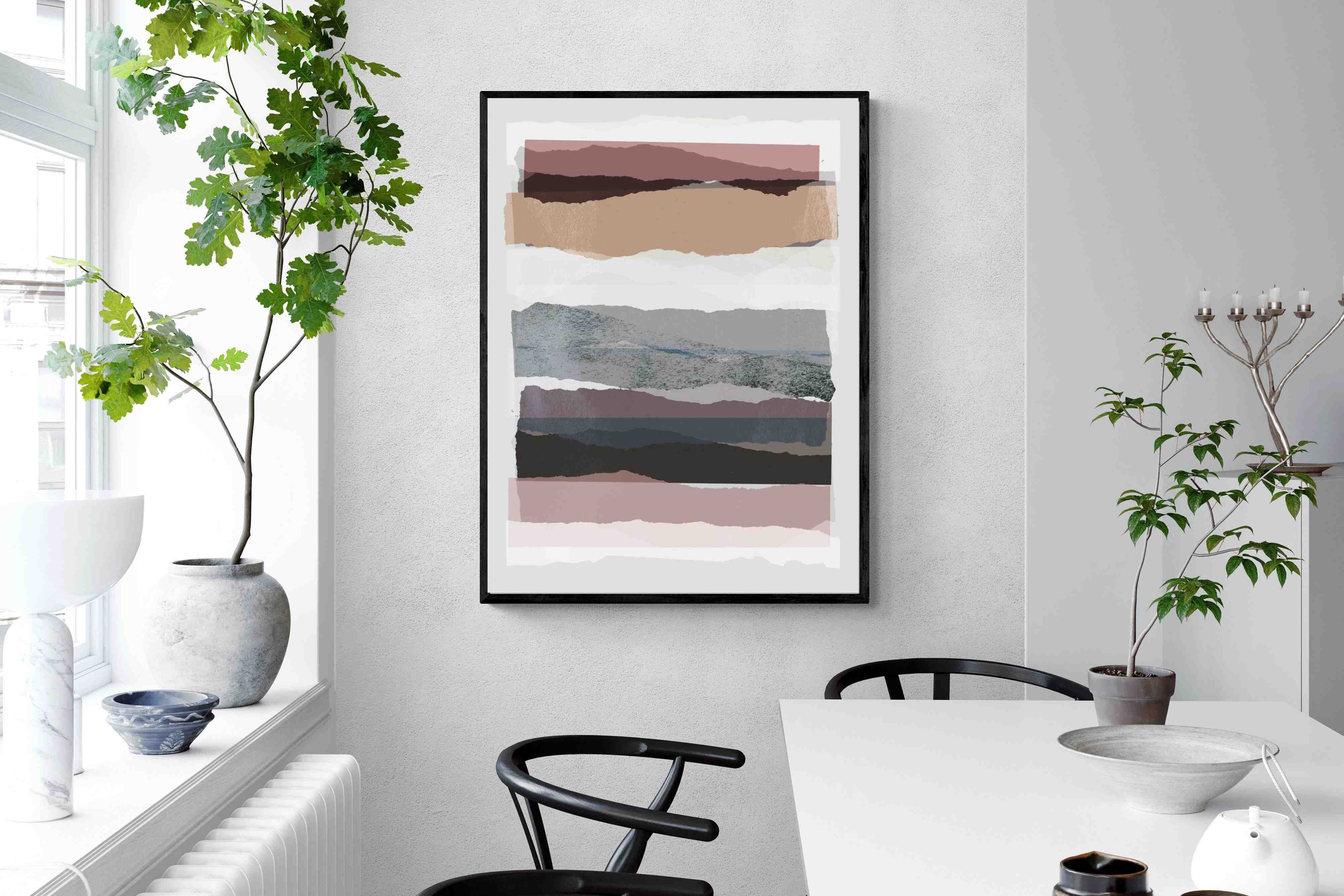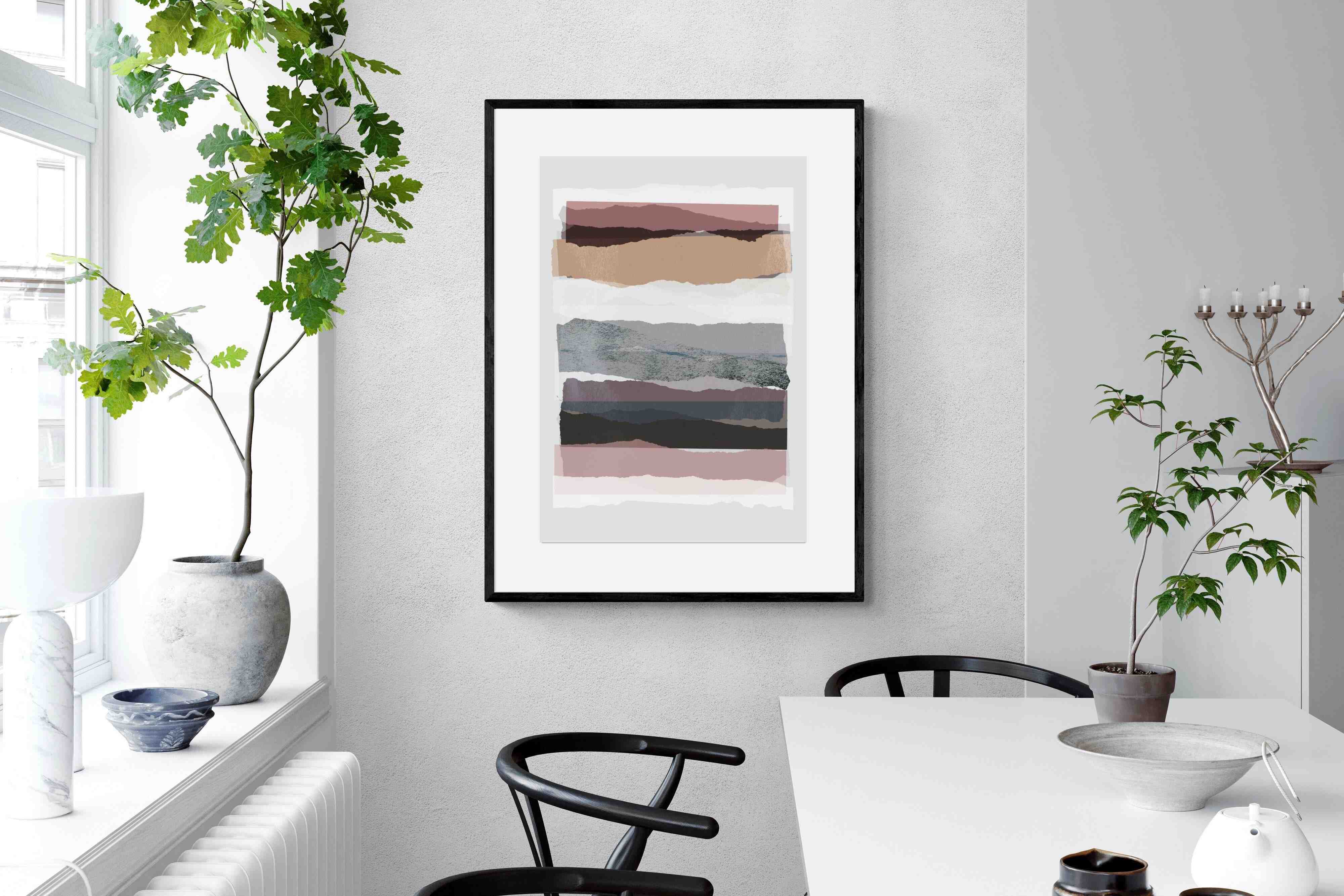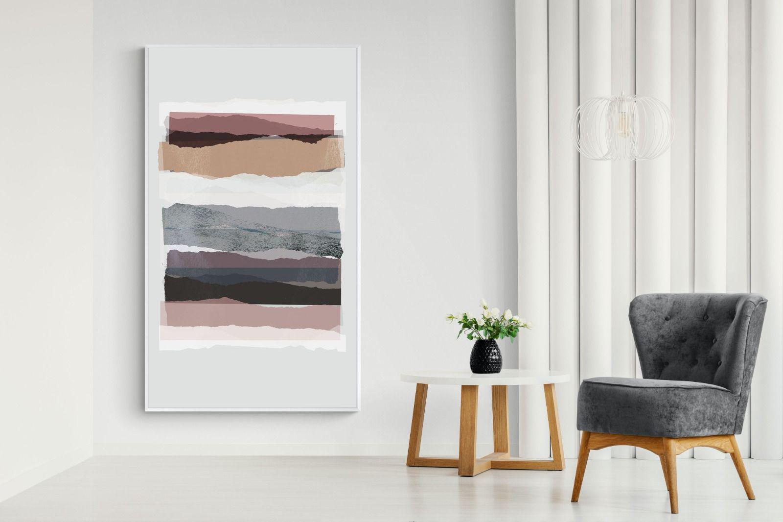 If you're after a gallery-style finish, our framed behind glass option is ideal, allowing the layers of "Pieces 16" to shine. To better understand these options, watch this short video.