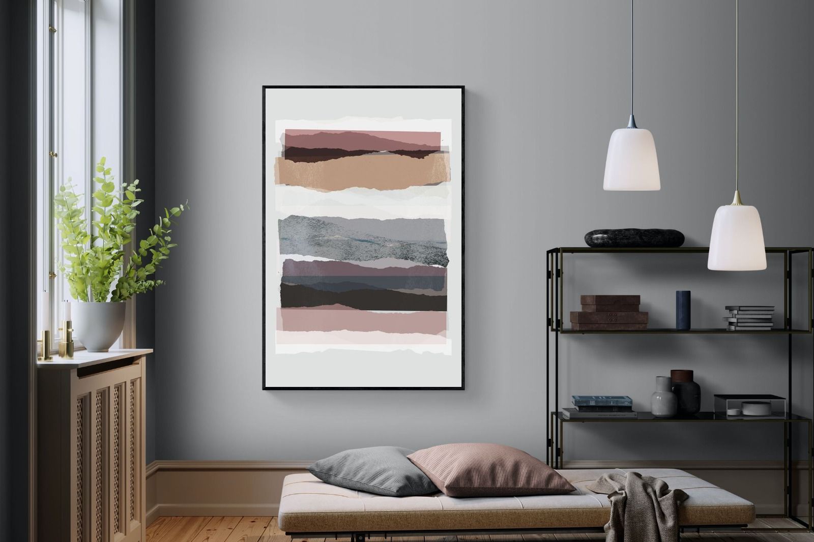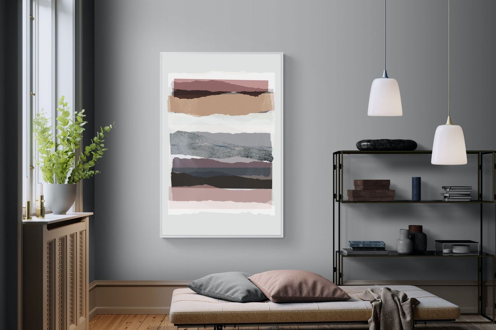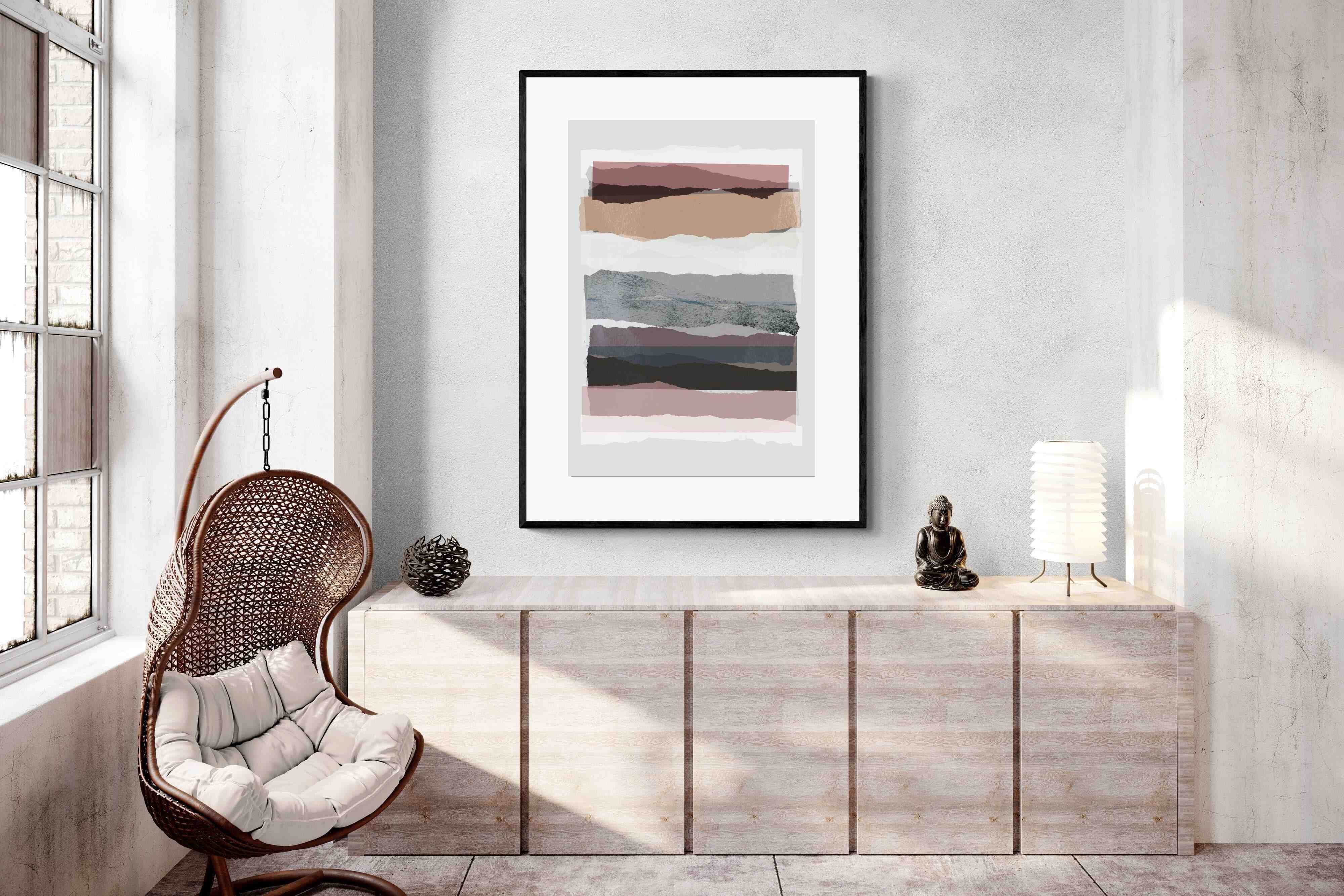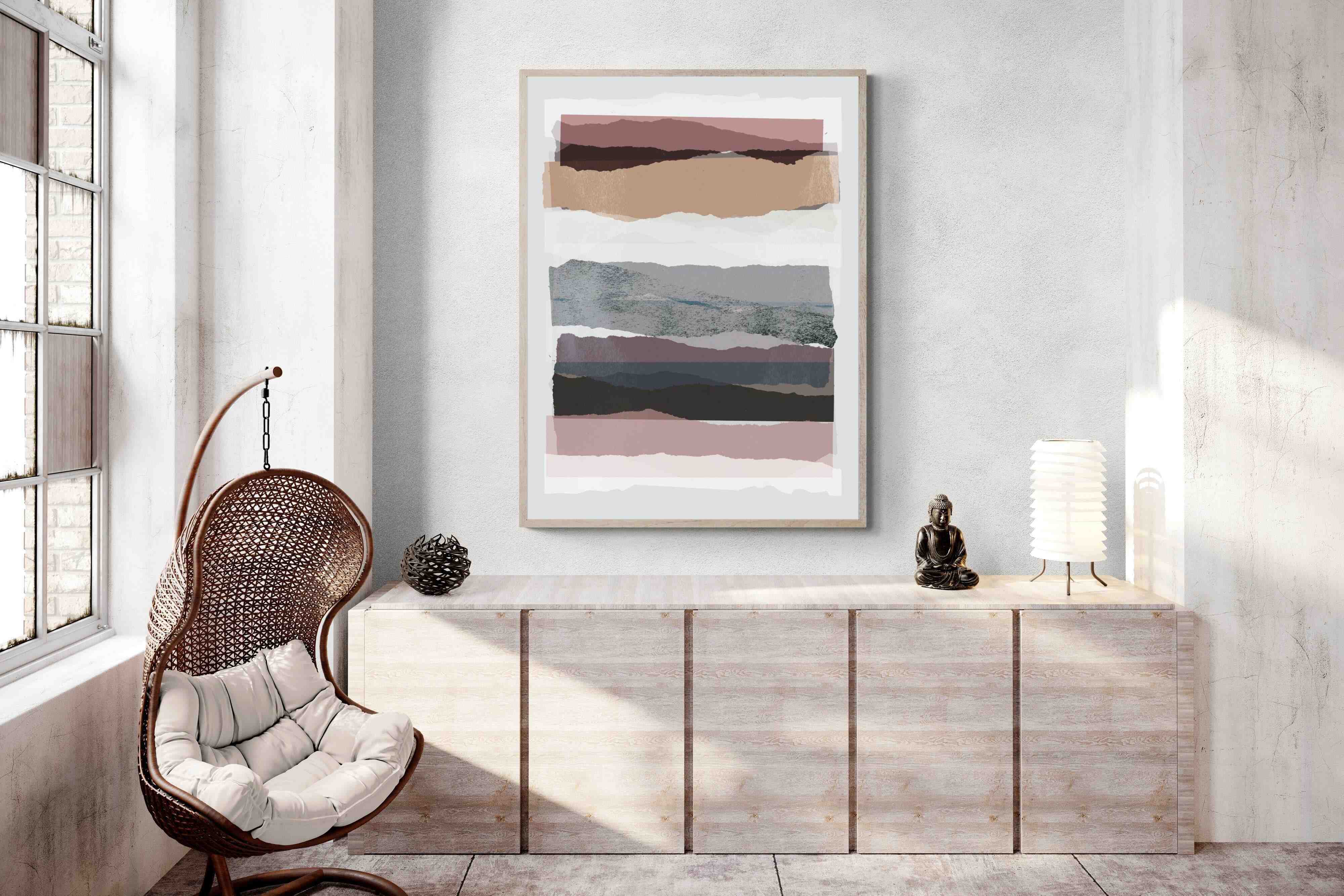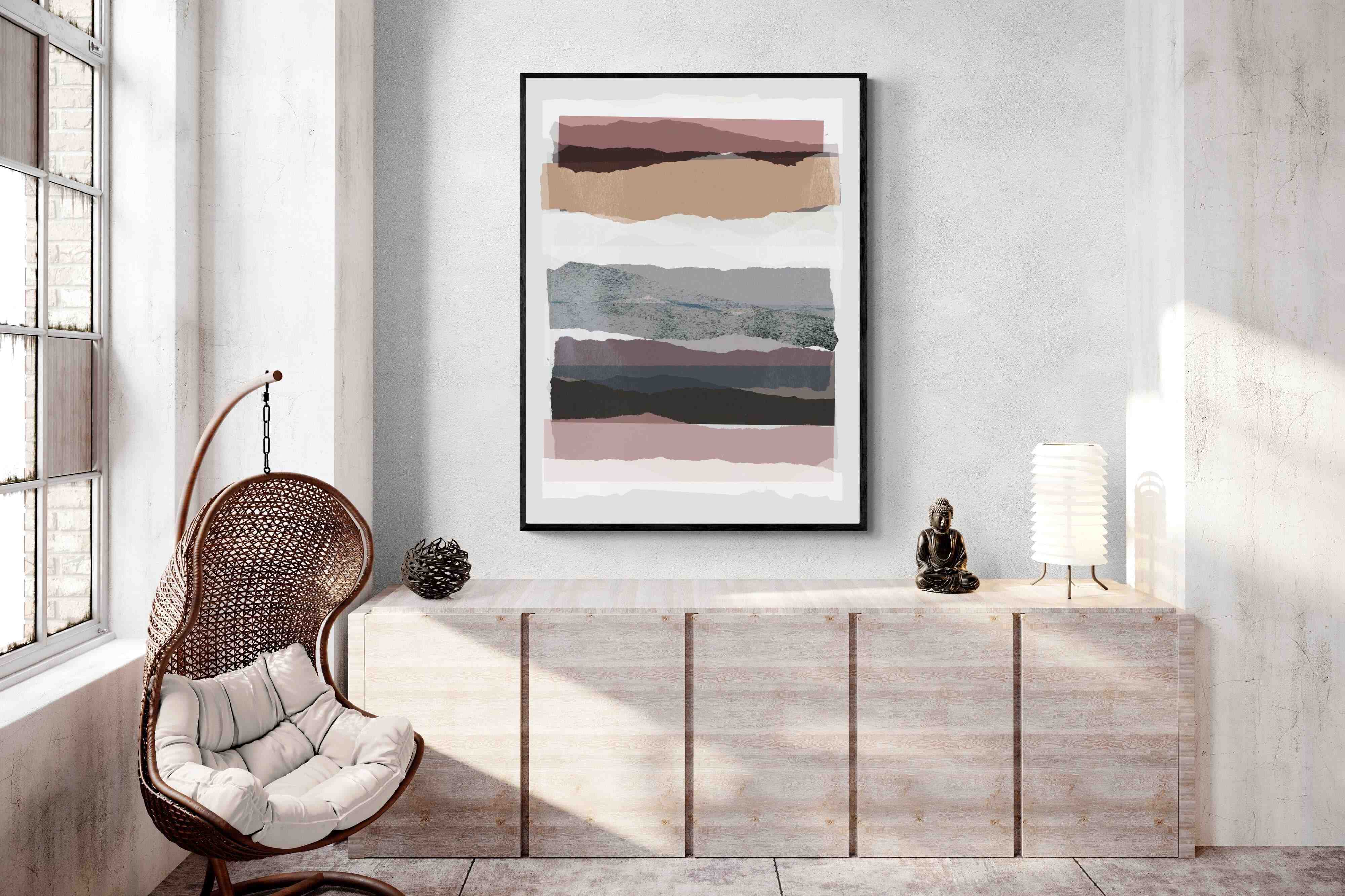 If you're after a gallery-style finish, our framed behind glass option is ideal, allowing the layers of "Pieces 16" to shine. To better understand these options, watch this short video.