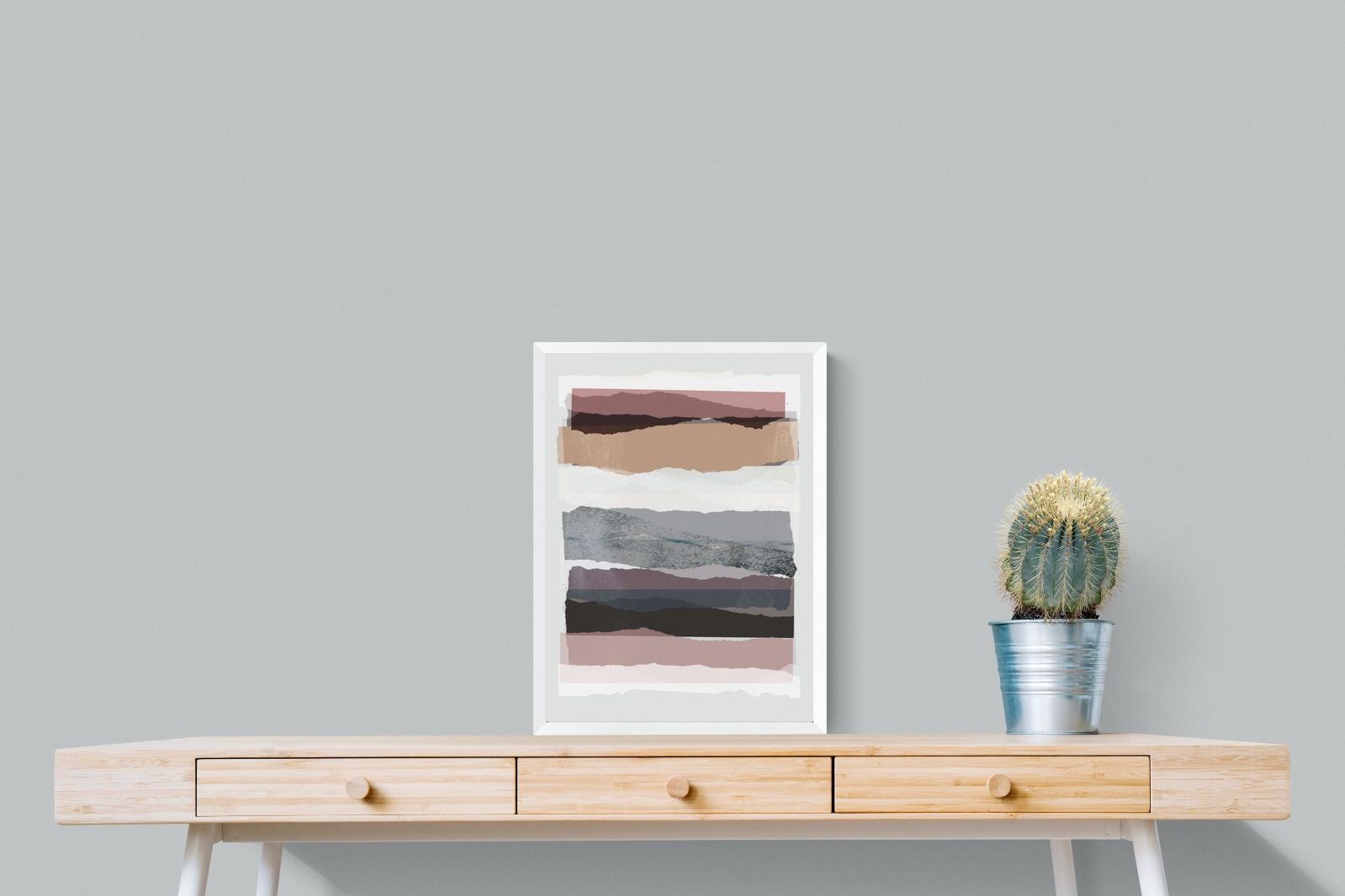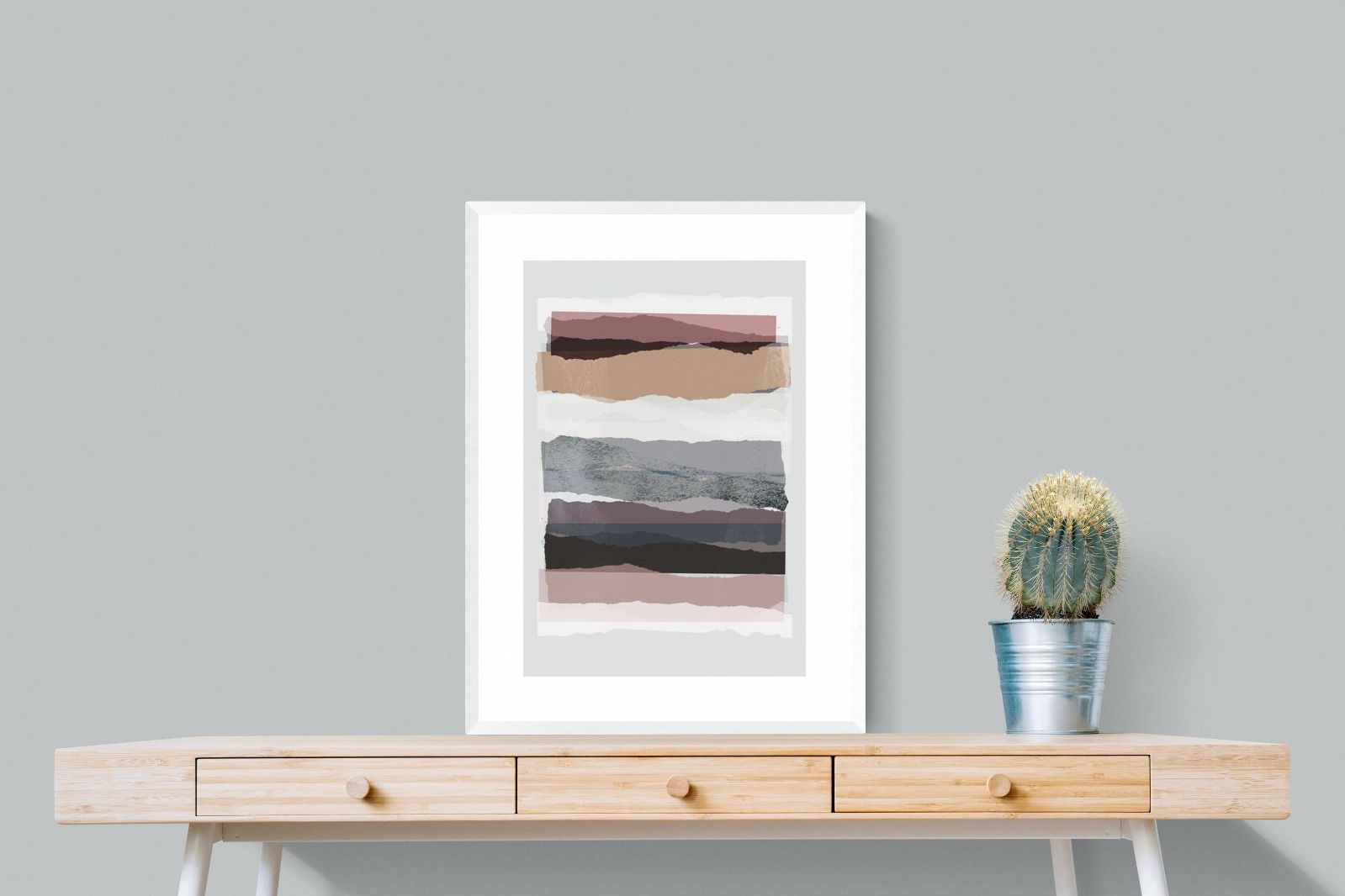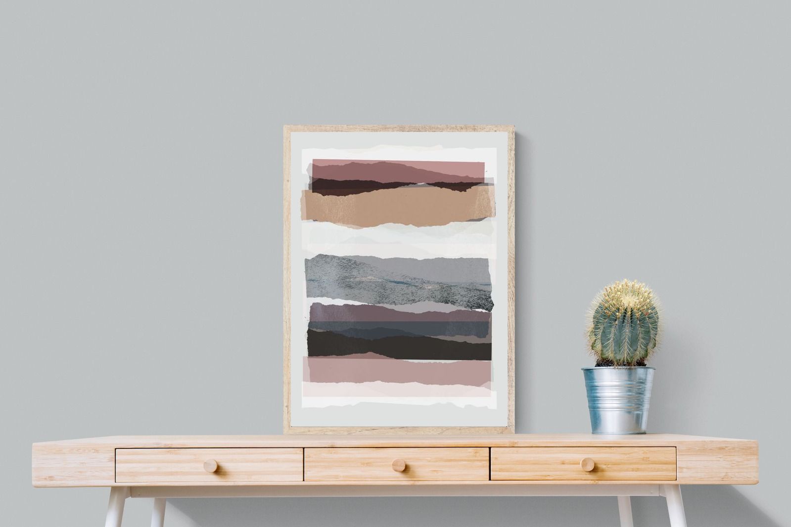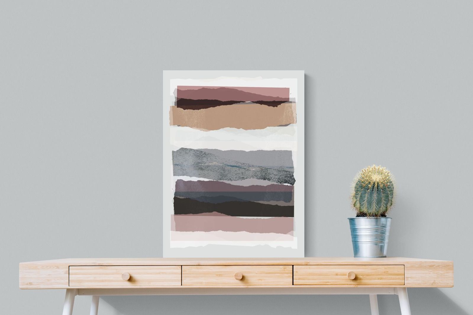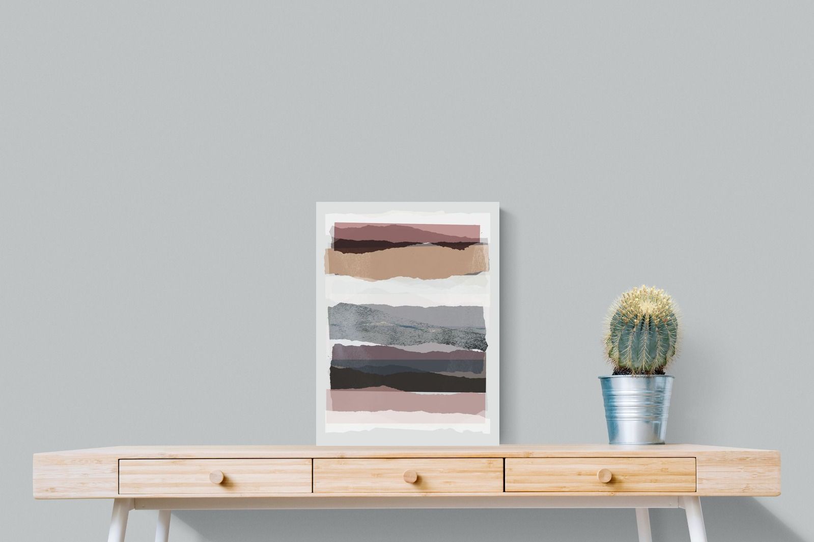 A visually intriguing assemblage of stacked abstract shapes, coloured in pastel shades of earthy browns, creams, and purples. This striking artwork invites viewers to lose themselves in its complex layers and soothing colour palette, making it a powerful focal point in any room. Available as a canvas, framed print, or wallpaper, "Pieces 16" infuses your space with a sophisticated touch of modernist design.