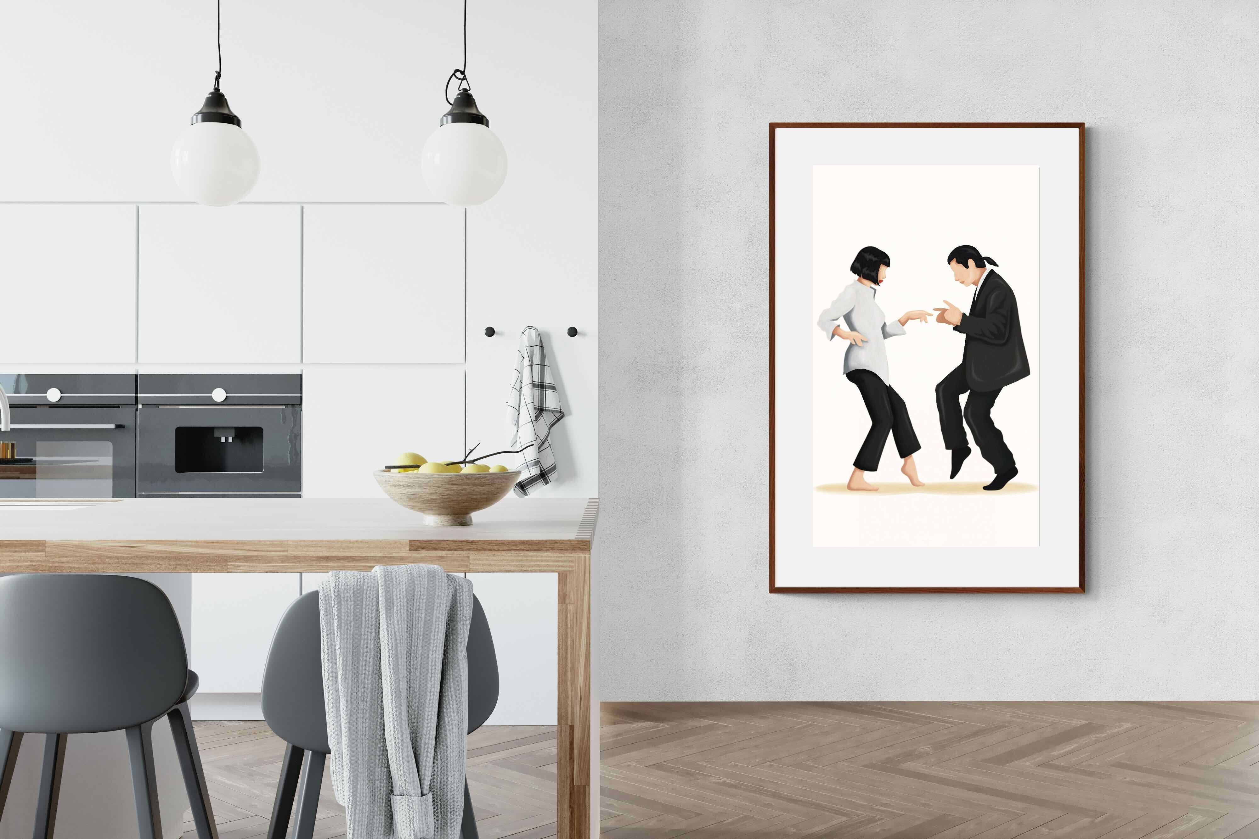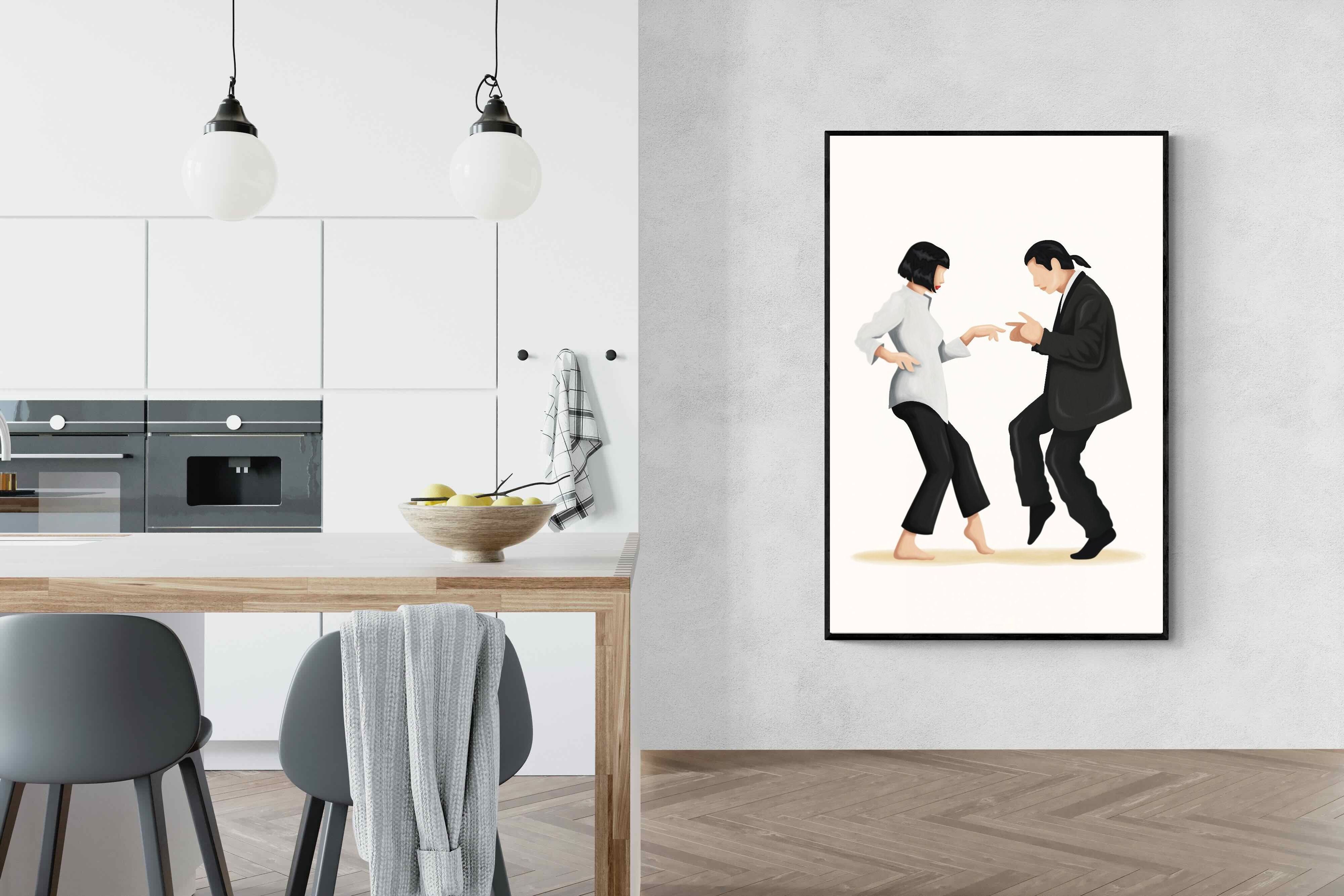 This artwork captures the iconic twist contest from Pulp Fiction, featuring Vincent Vega and Mia Wallace at Jack Rabbit Slim’s. Rendered in a minimalist, stylised form, it distils the cool, offbeat energy of the scene into a modern graphic composition. Perfect for contemporary interiors, film lovers’ spaces, home bars, or studios, it adds cult-cinema attitude without overpowering a room.