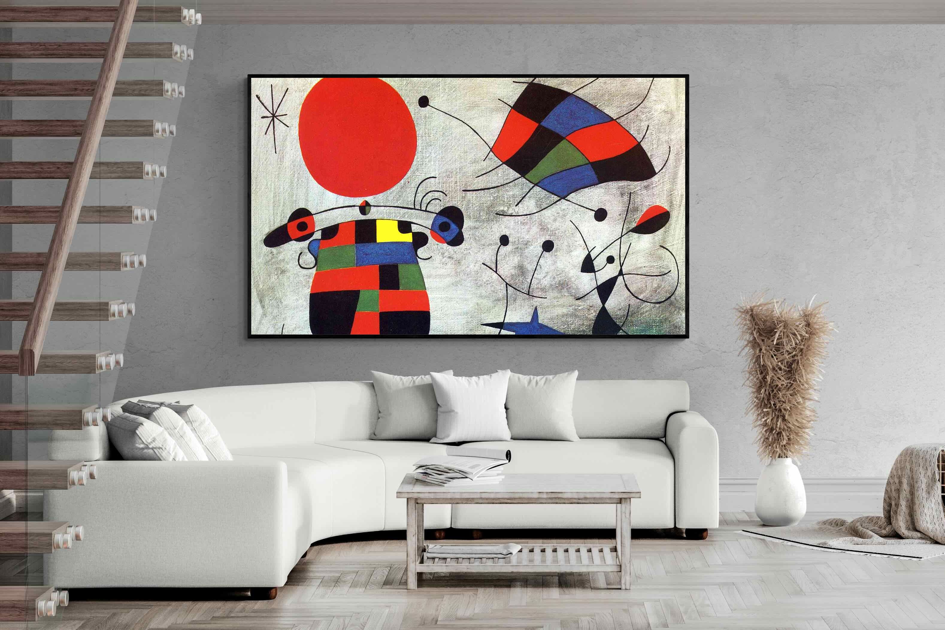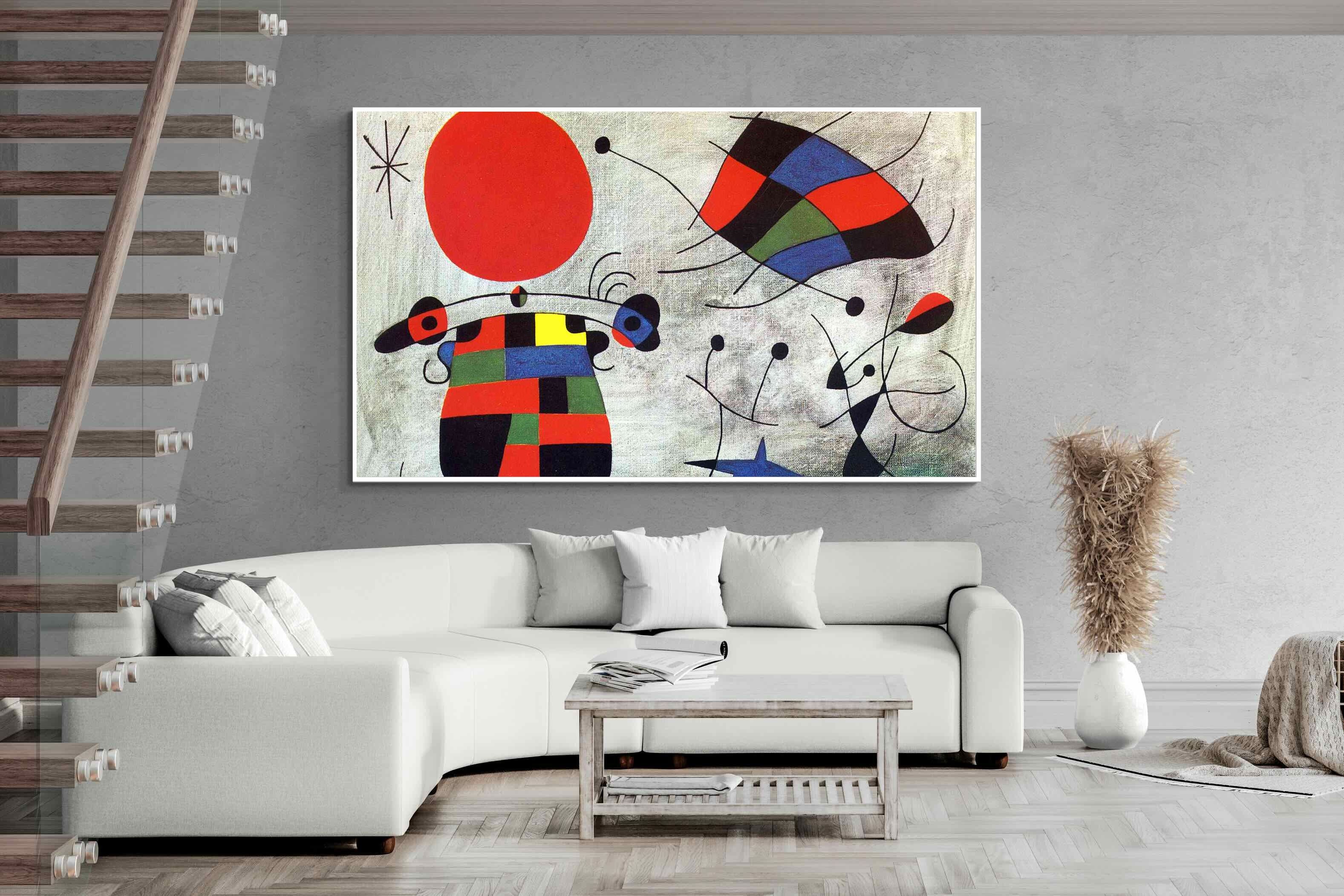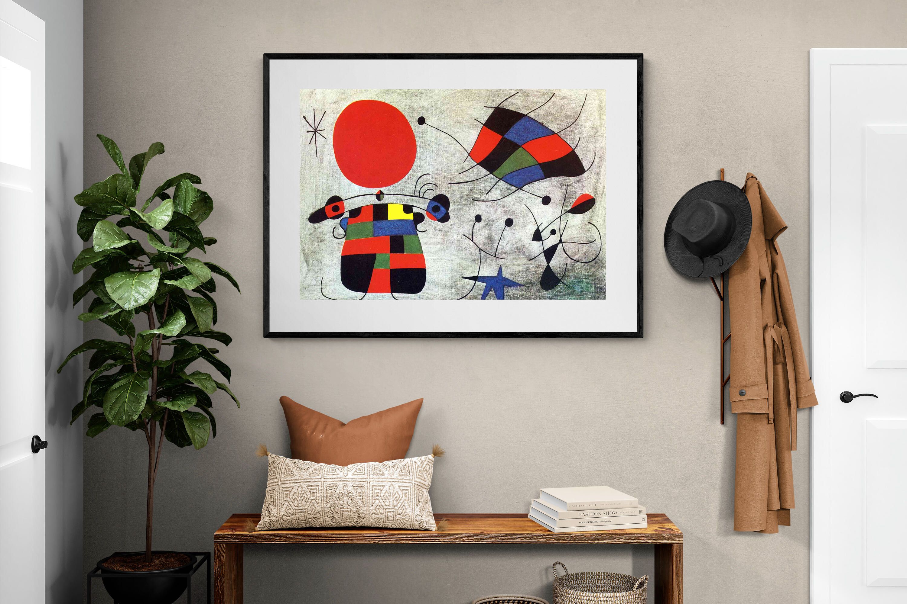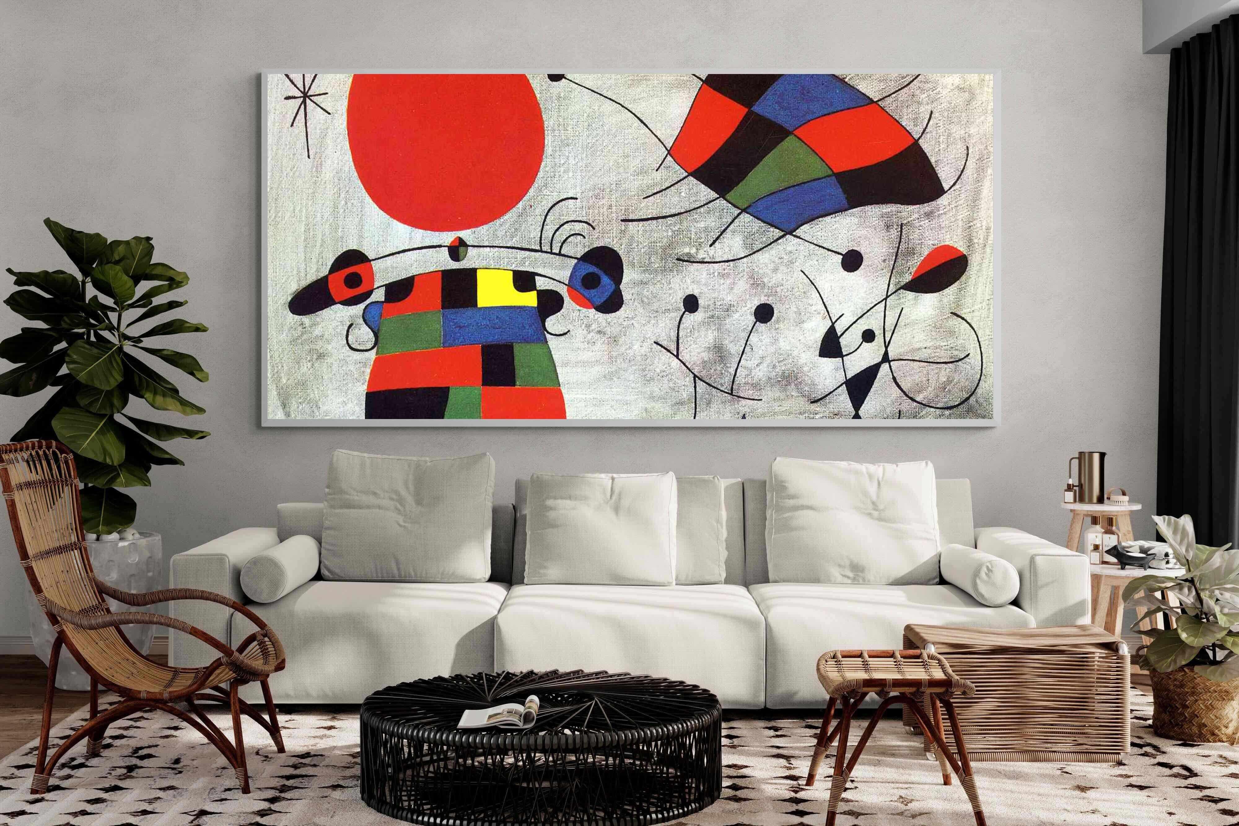 Created in the post-World War II era, a time when Miró had achieved significant recognition and had further developed his style, this painting, like much of his work, reflects his interest in the subconscious, the childlike, and the relationship between earthly and celestial elements.