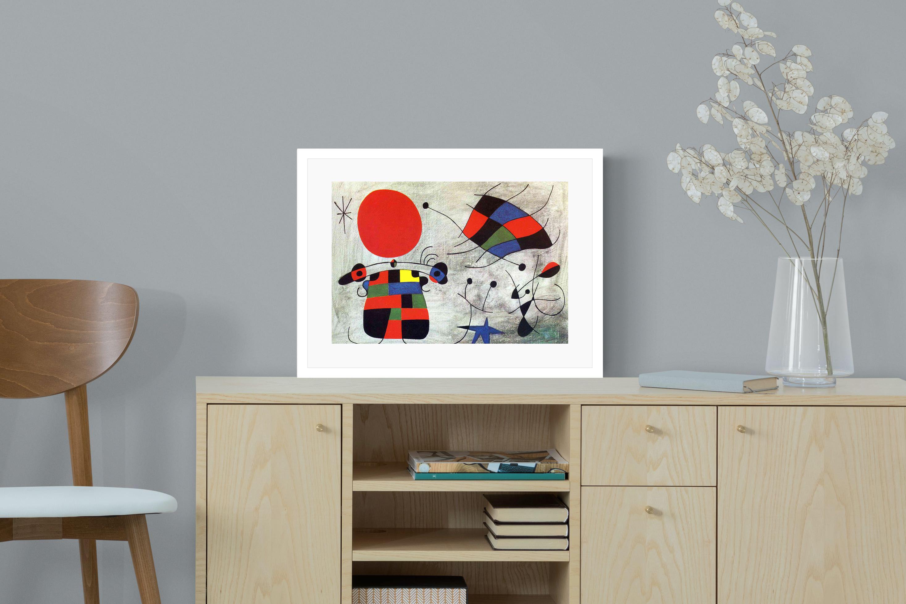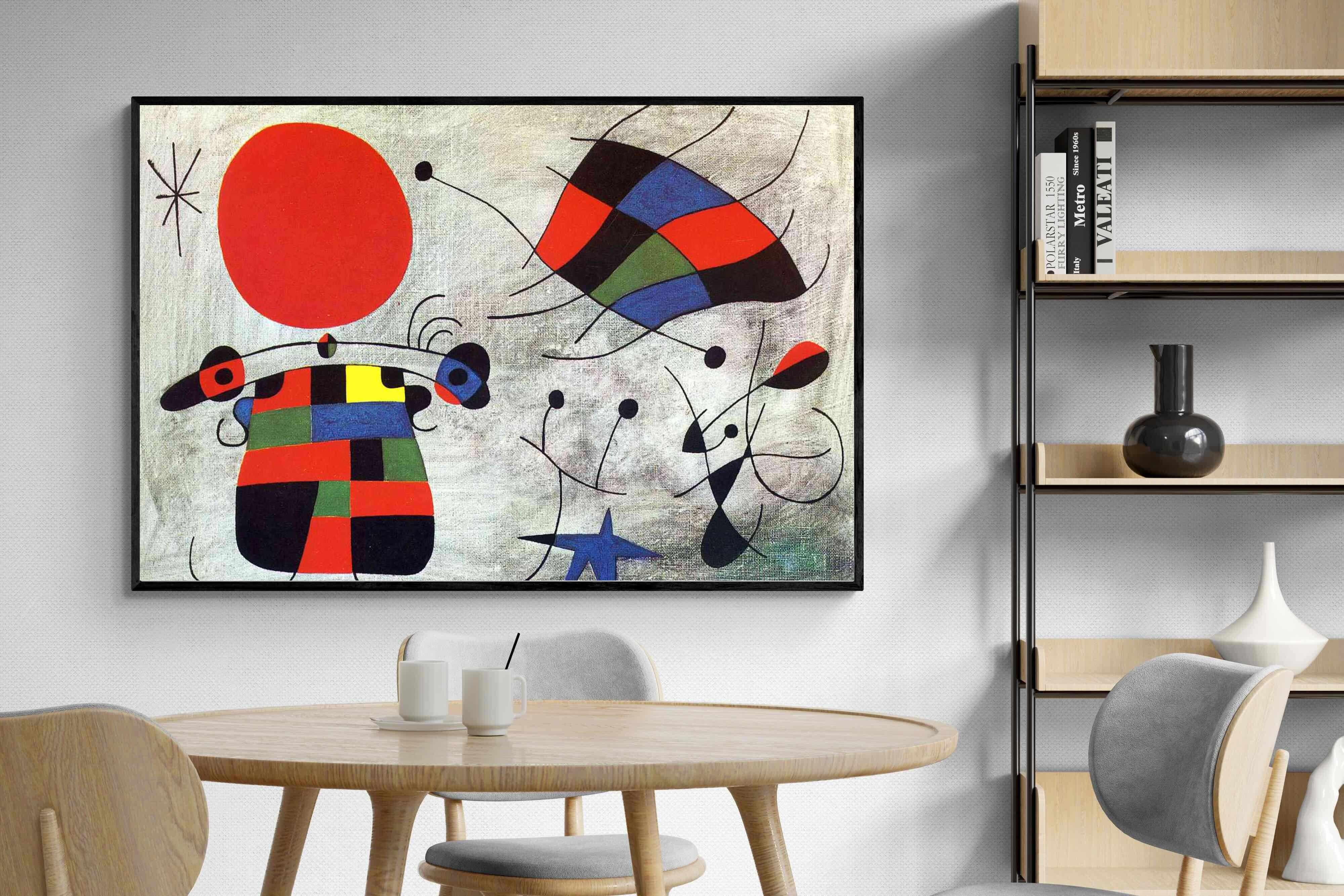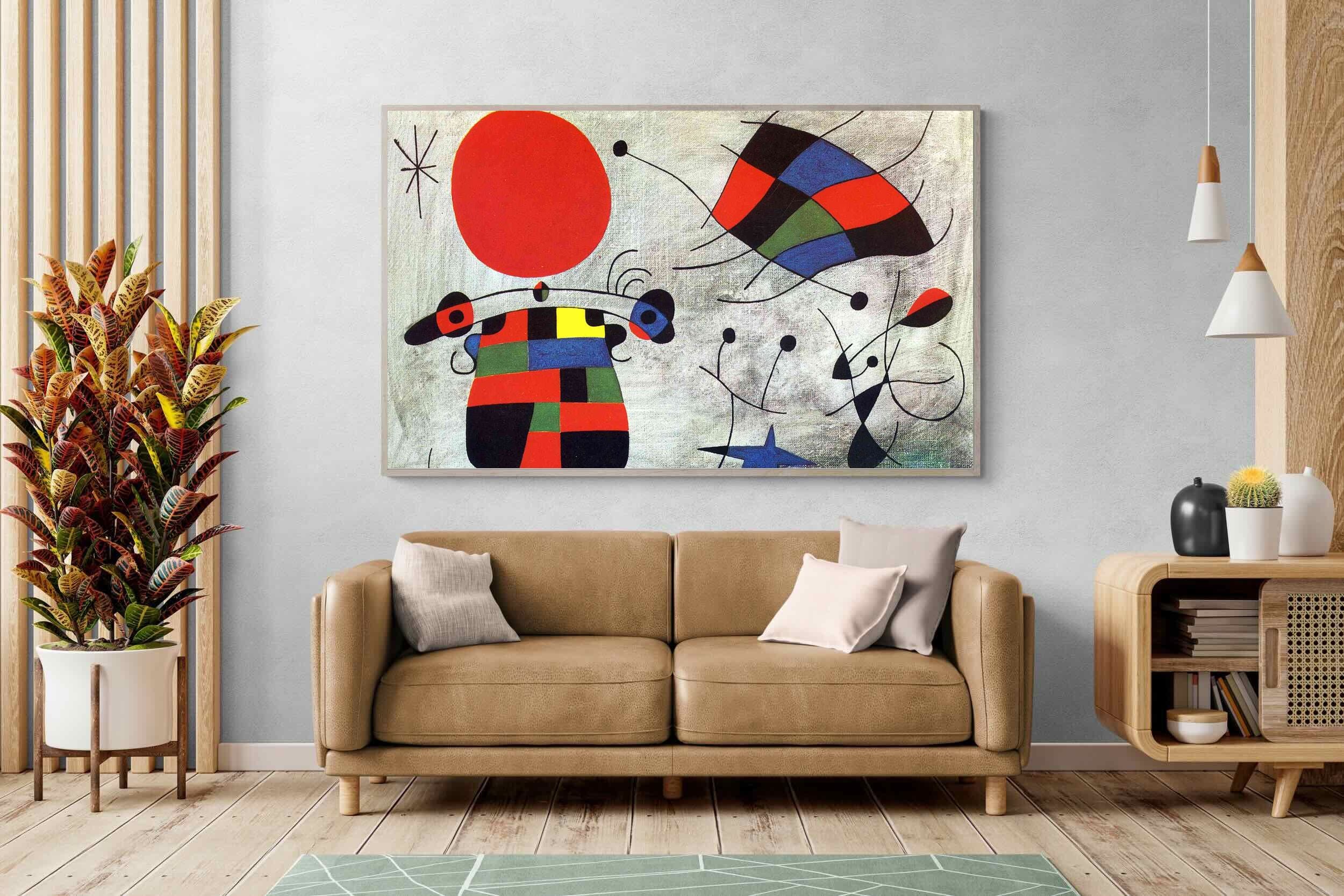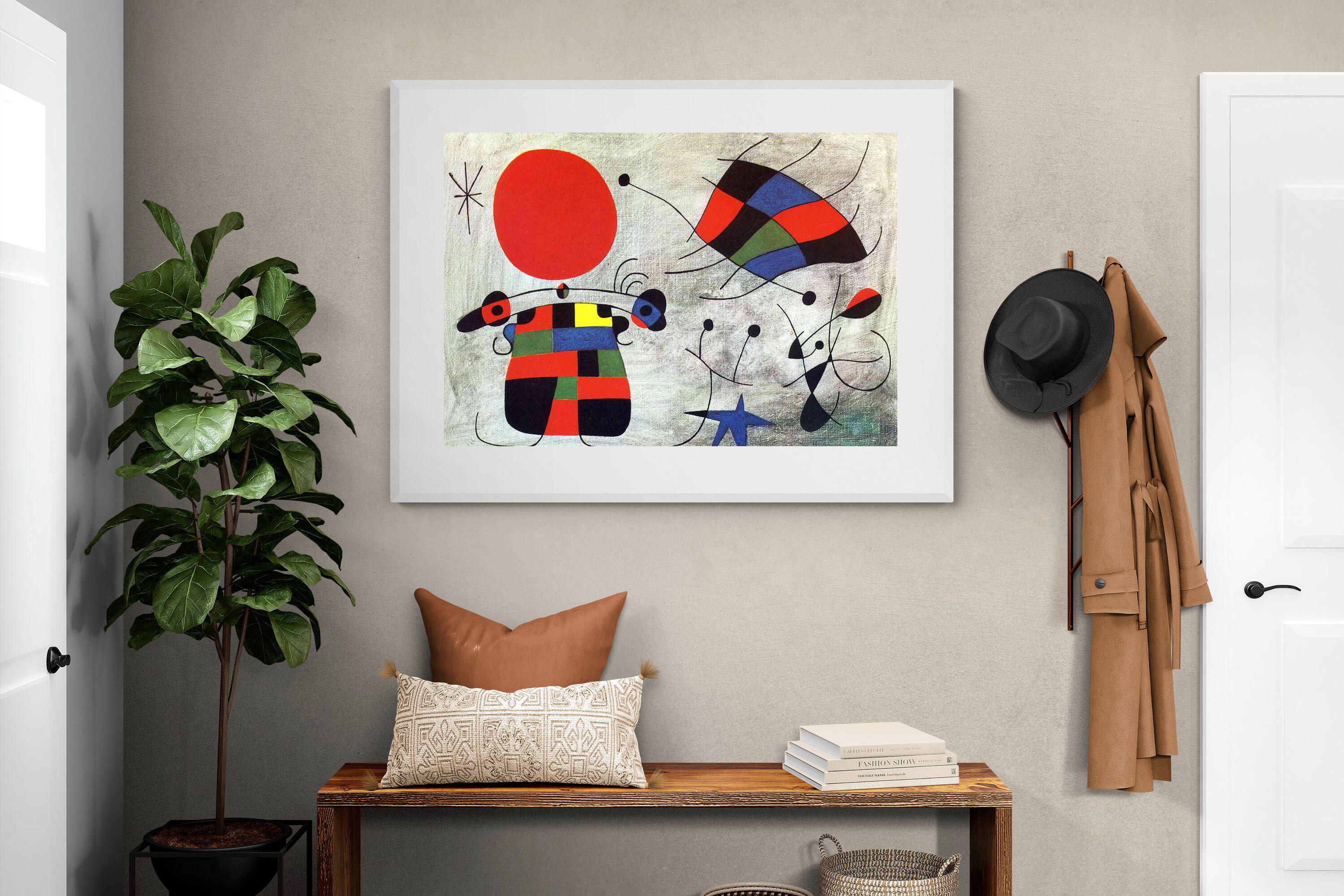 Created in the post-World War II era, a time when Miró had achieved significant recognition and had further developed his style, this painting, like much of his work, reflects his interest in the subconscious, the childlike, and the relationship between earthly and celestial elements.