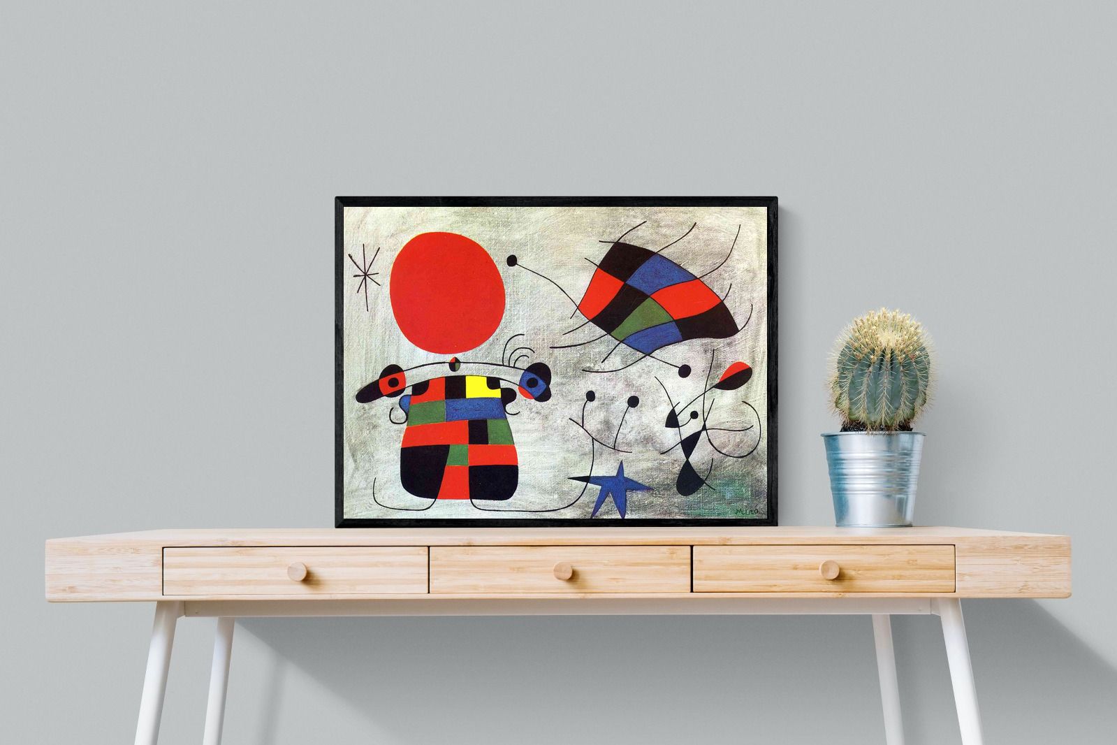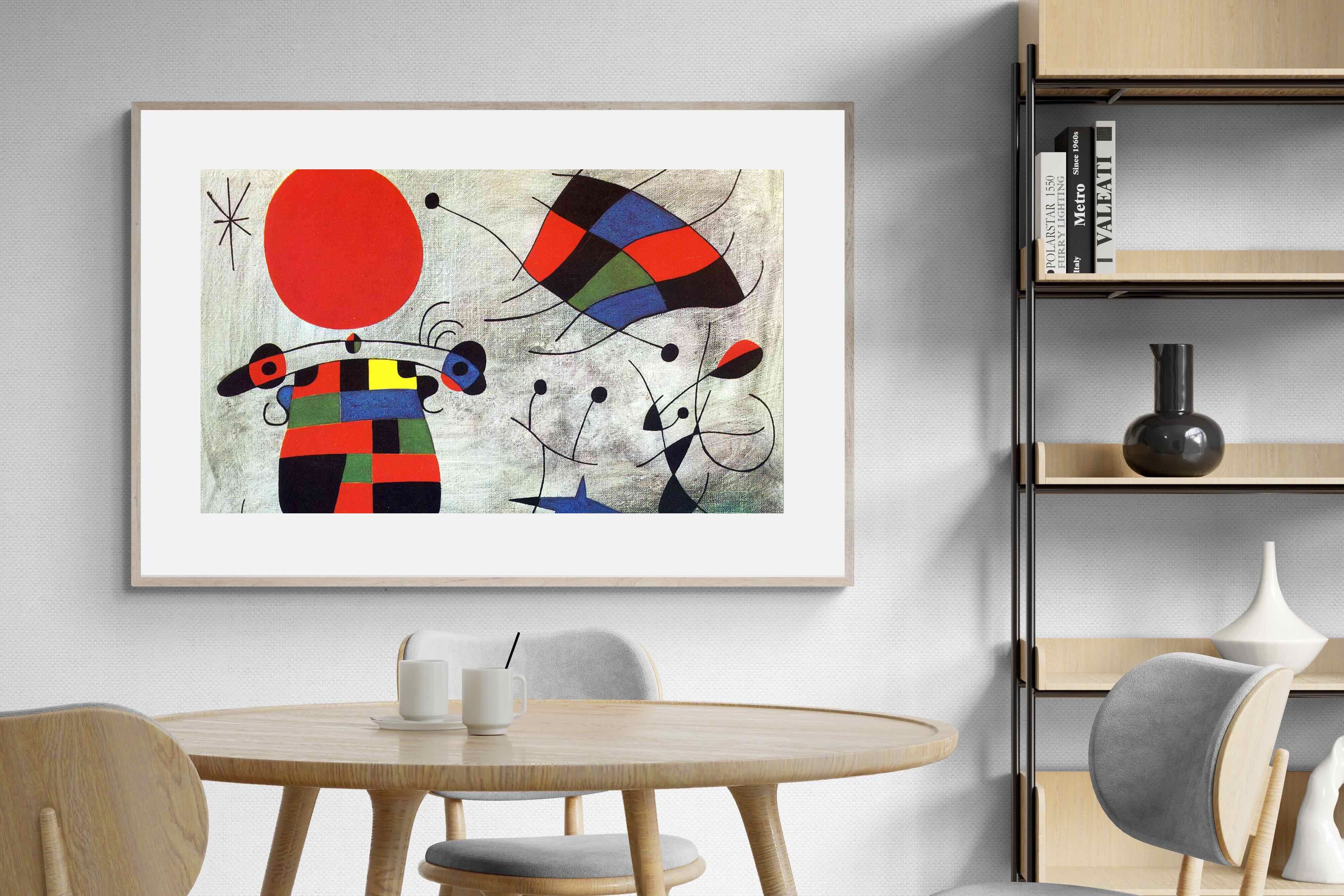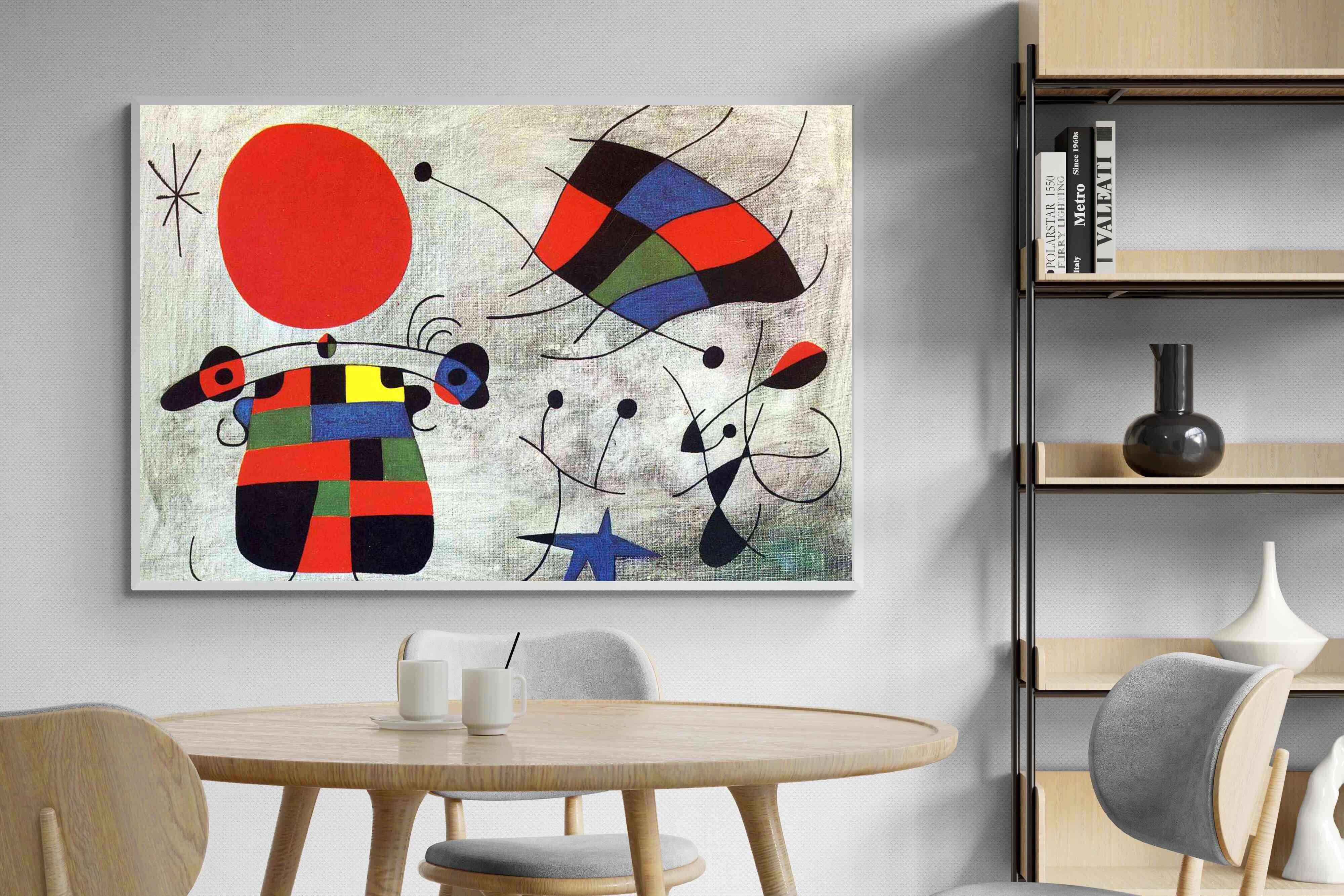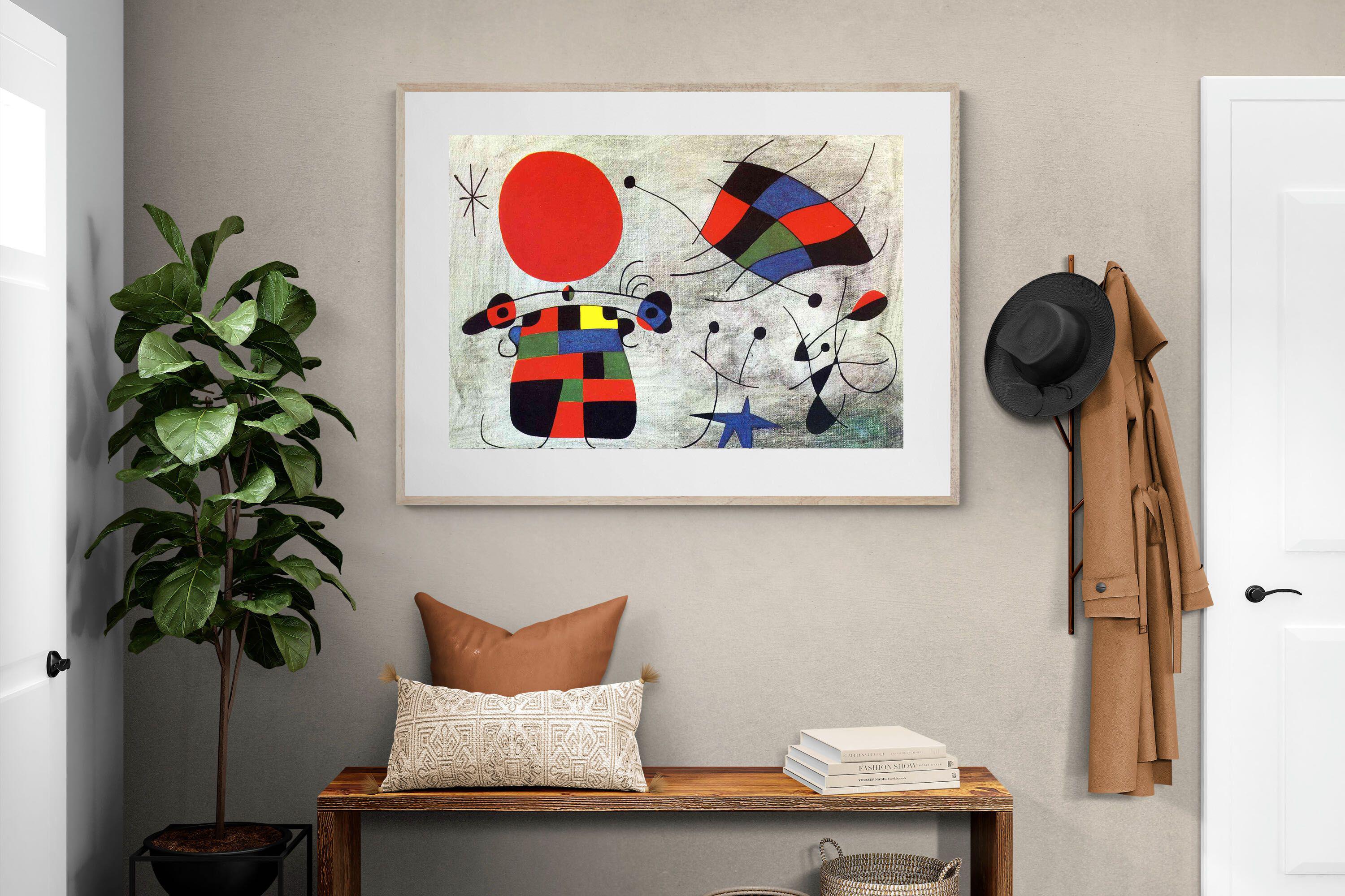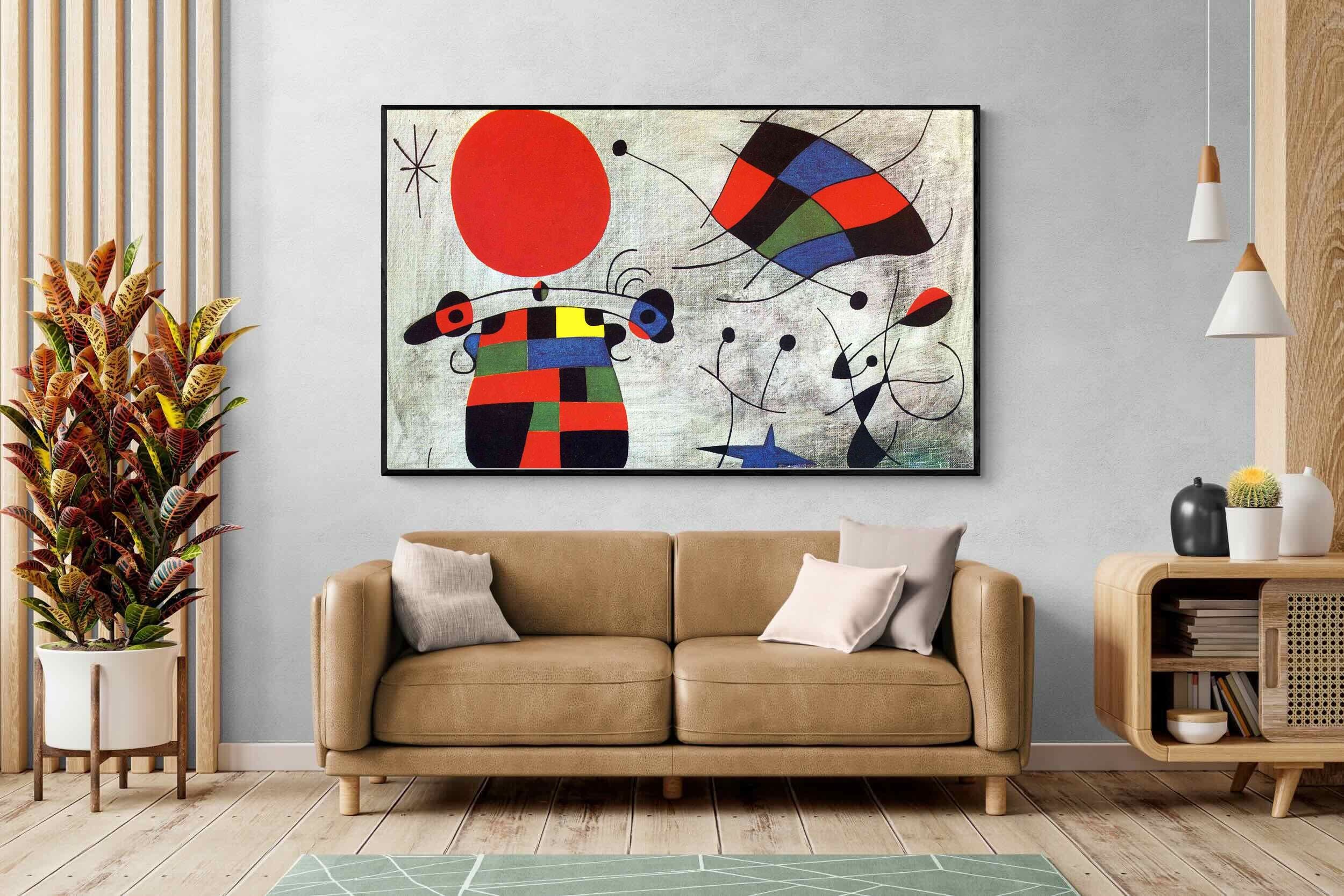 Created in the post-World War II era, a time when Miró had achieved significant recognition and had further developed his style, this painting, like much of his work, reflects his interest in the subconscious, the childlike, and the relationship between earthly and celestial elements.