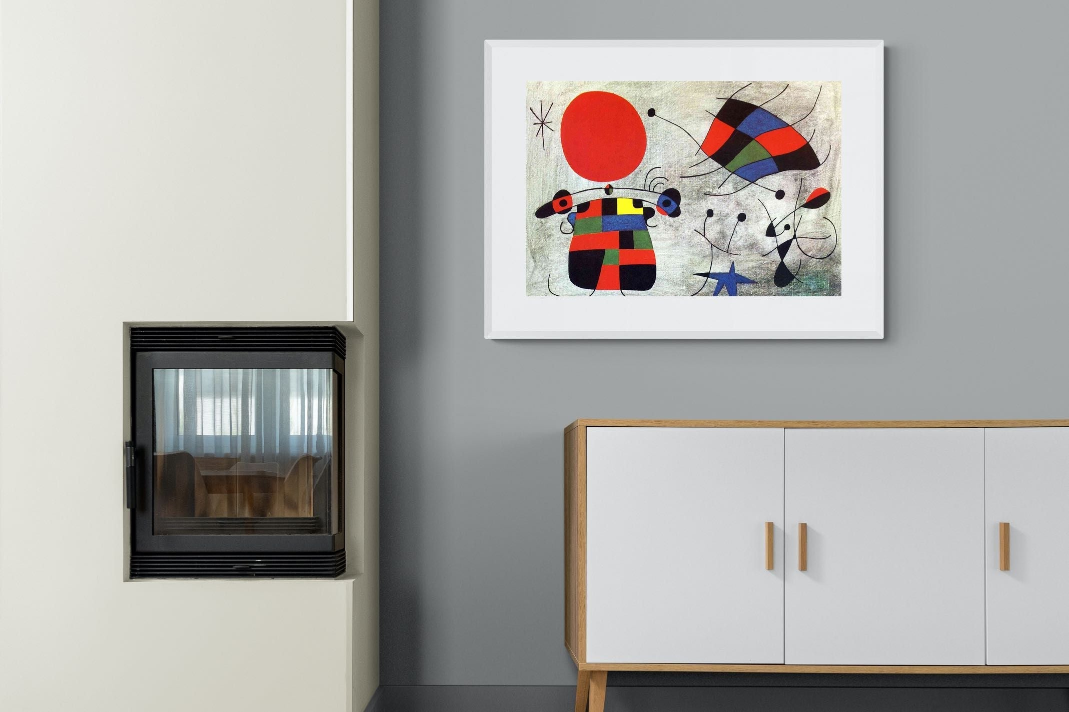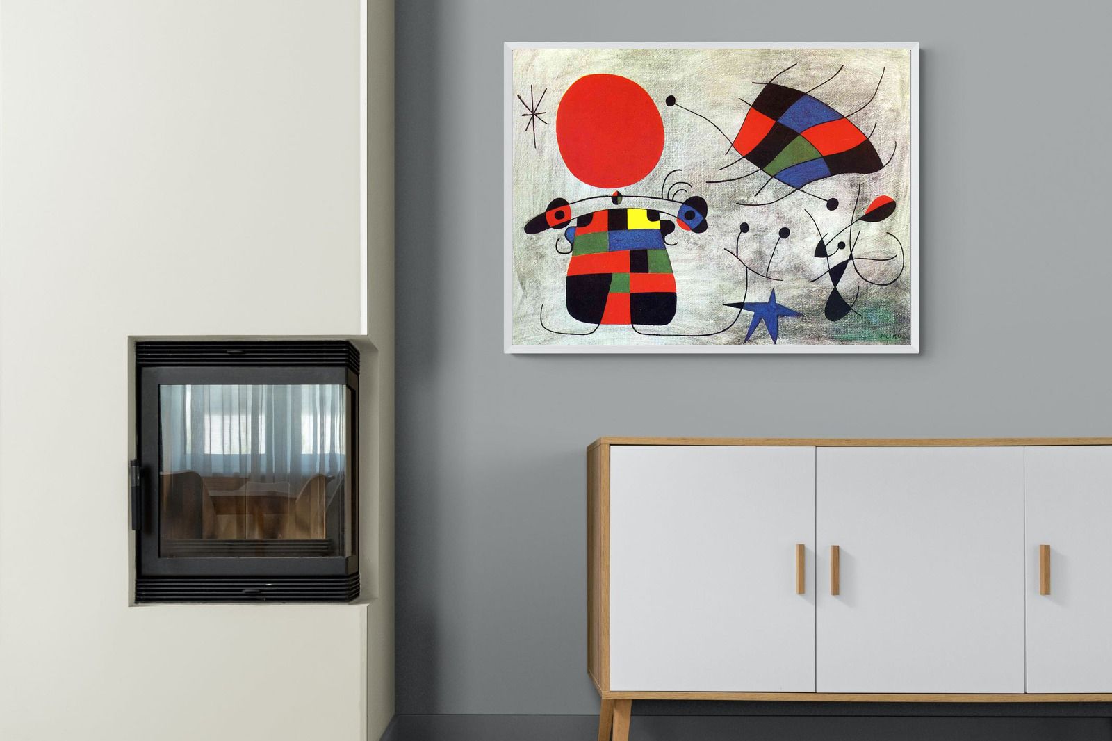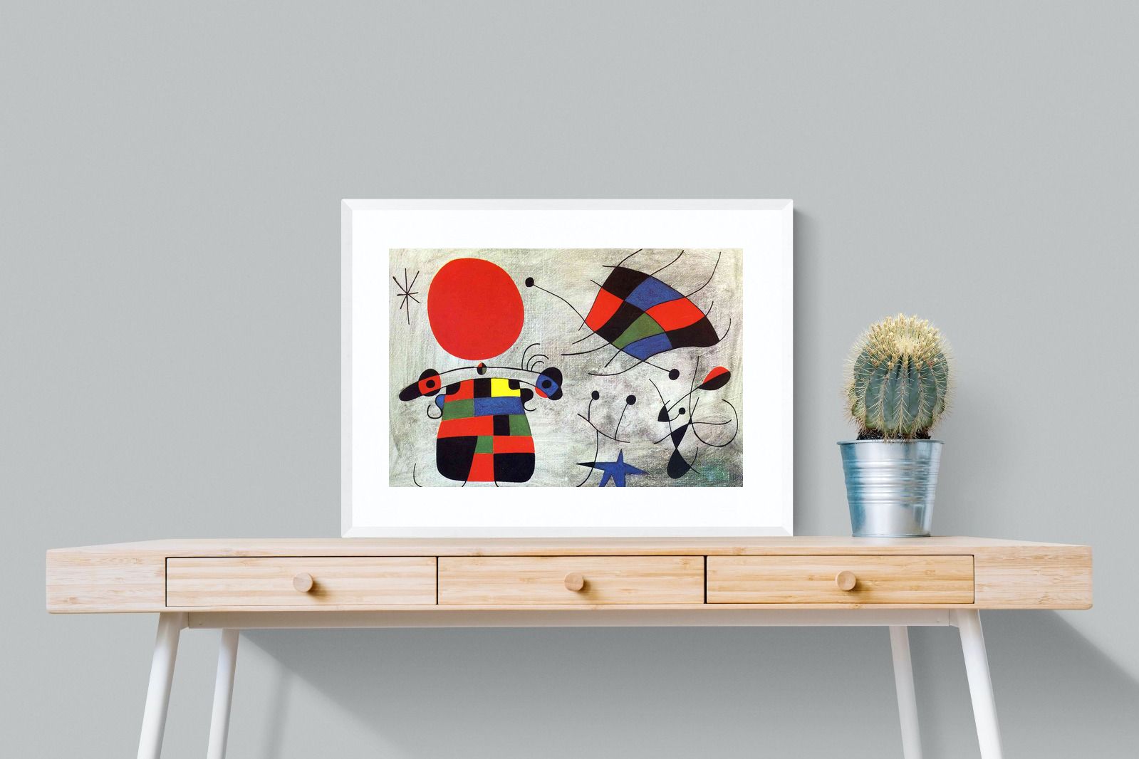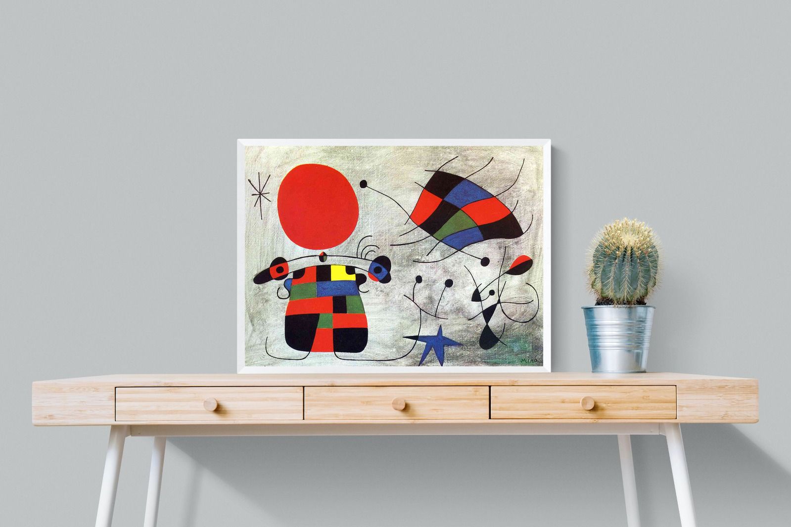Created in the post-World War II era, a time when Miró had achieved significant recognition and had further developed his style, this painting, like much of his work, reflects his interest in the subconscious, the childlike, and the relationship between earthly and celestial elements.