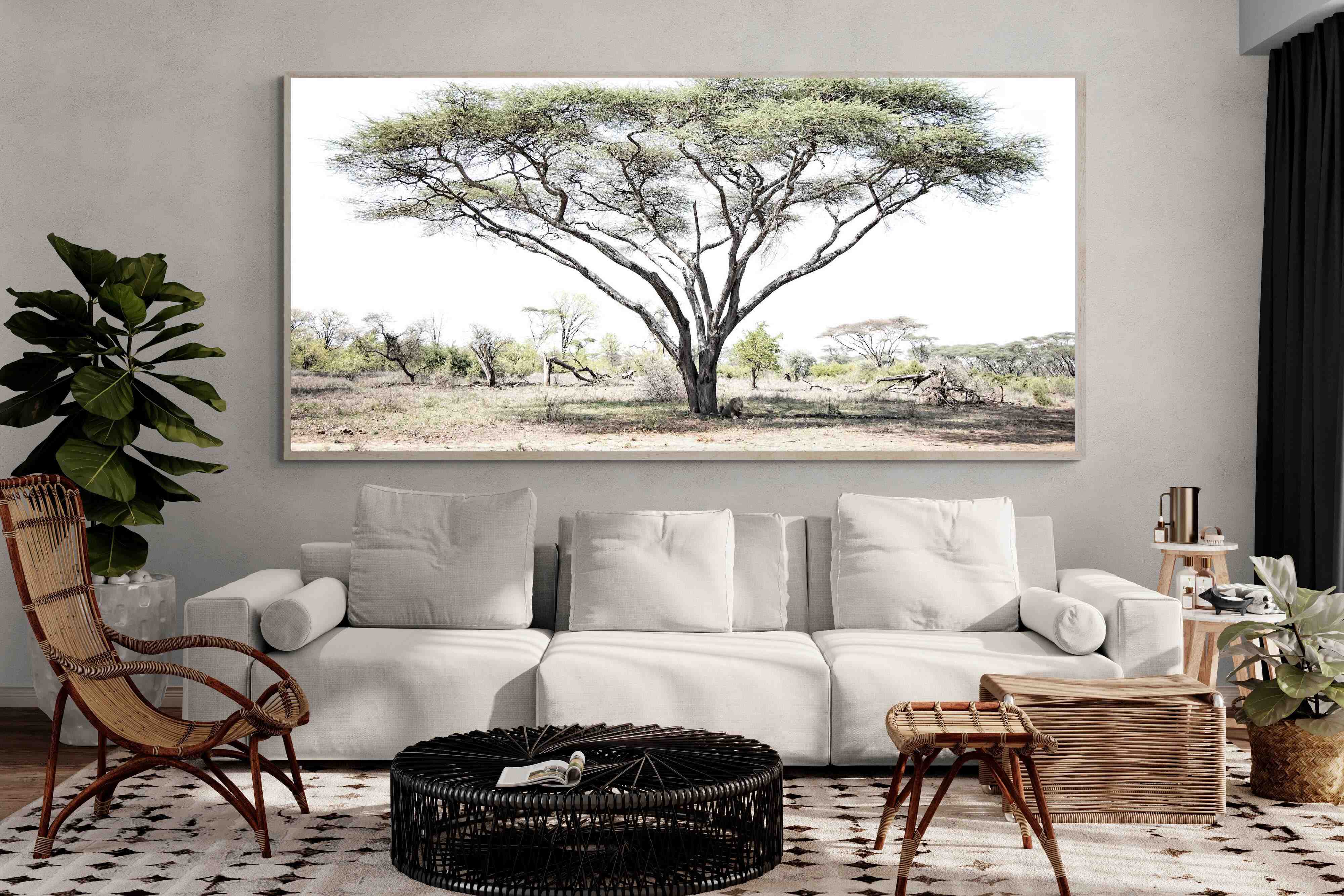 We make-to-order in our studio in Cape Town, using the highest quality materials and most skilled local craftsmen. We use only the finest wood frames (in black, white, oak, walnut) canvas, mounting card and glass available, and whereas most retailers use 25mm subframes, we stretch the canvas over 50mm subframes, which gives it gravitas on the wall.