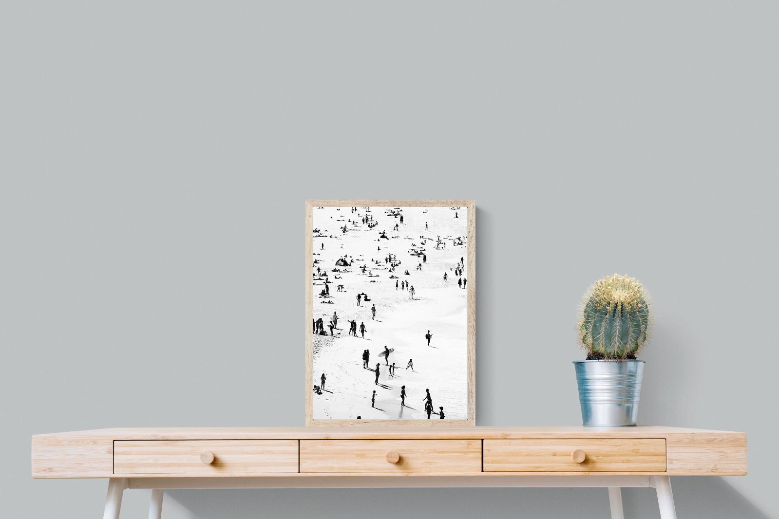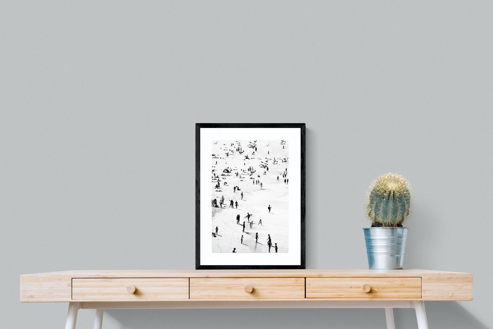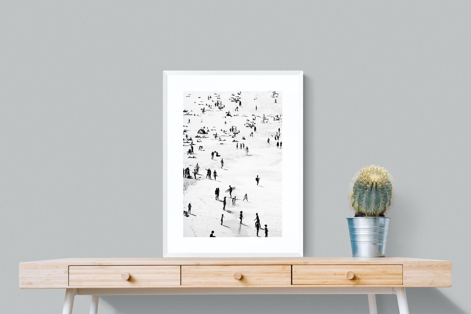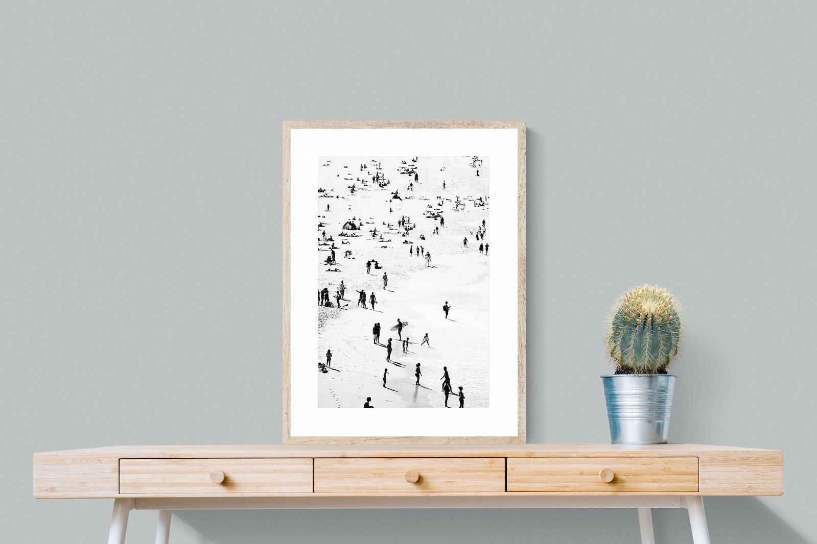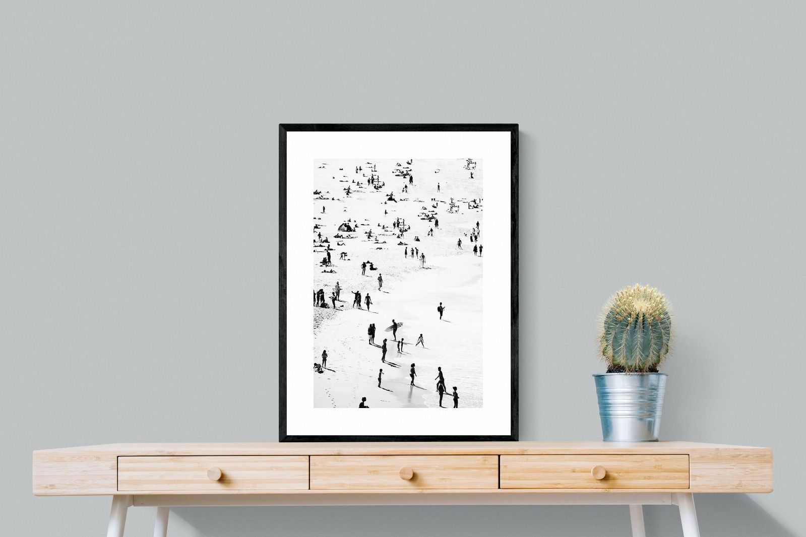 A striking black and white shoreline scene captures scattered figures, long shadows and gentle surf in a beautifully abstract composition. The high-contrast treatment transforms everyday beach life into graphic art, where movement and negative space create rhythm across the sand. This contemporary coastal piece works effortlessly in modern, minimalist, monochrome or seaside-inspired interiors. Ideal for living rooms, hallways, offices or holiday homes, it adds depth, atmosphere and timeless coastal character without overwhelming a space.