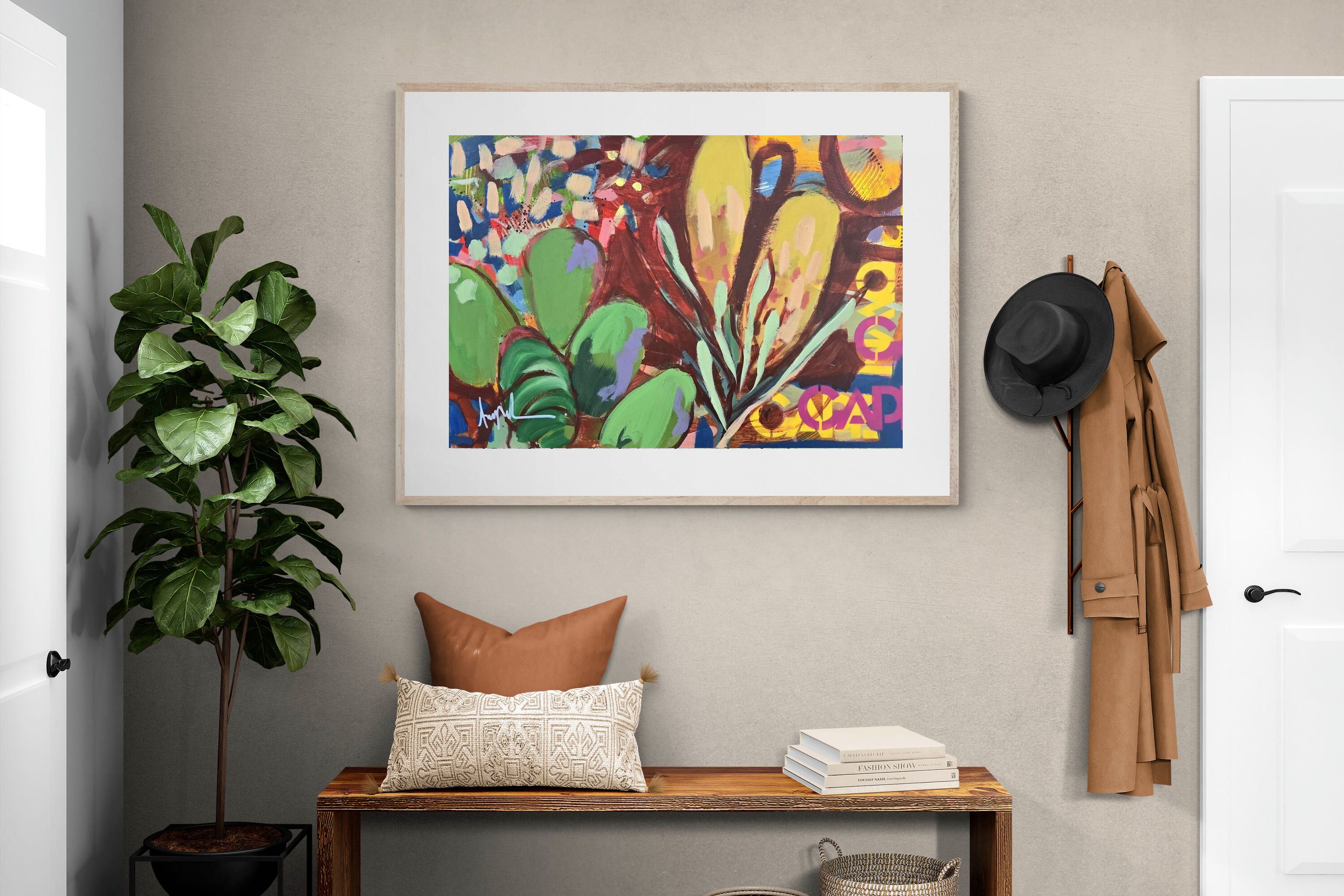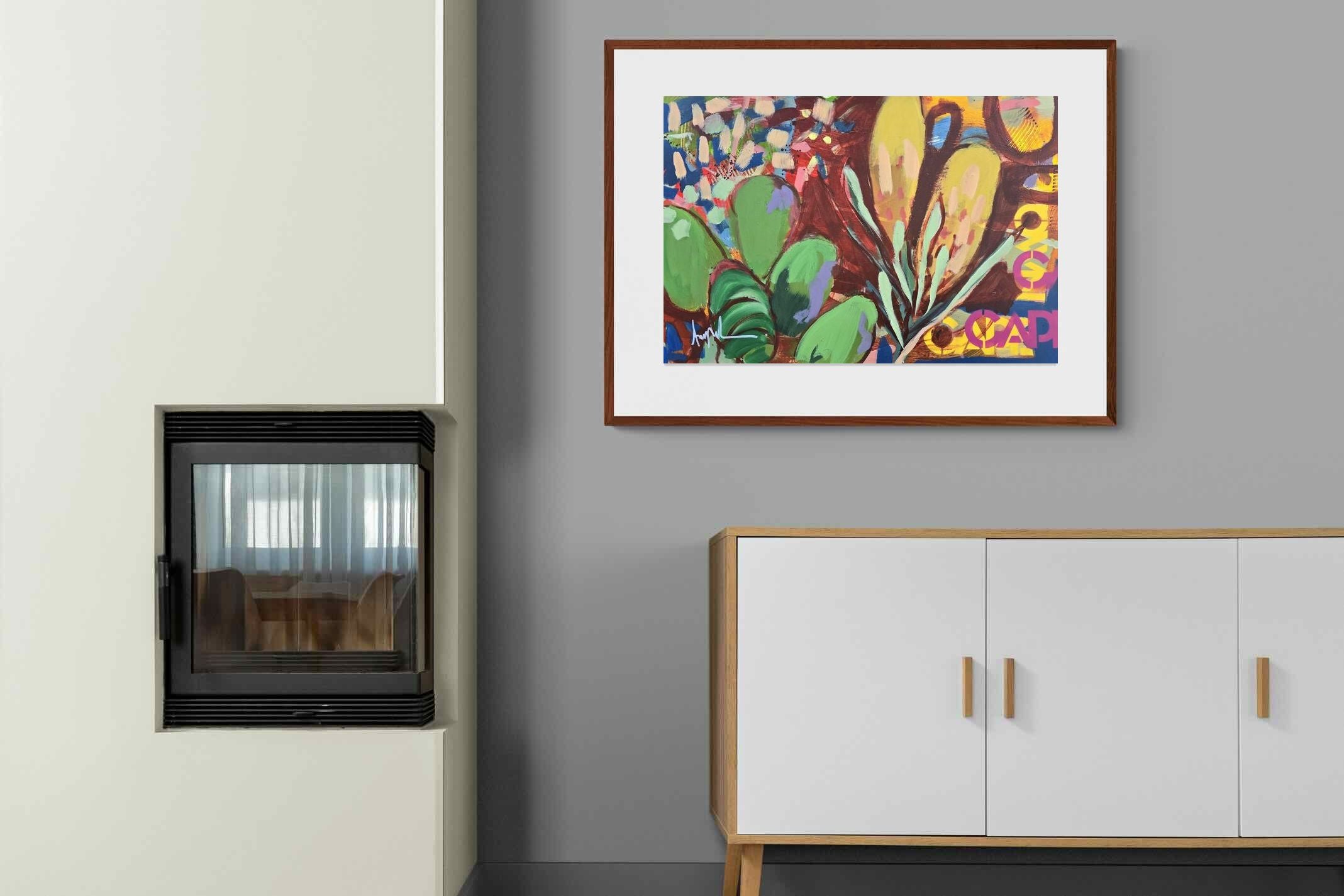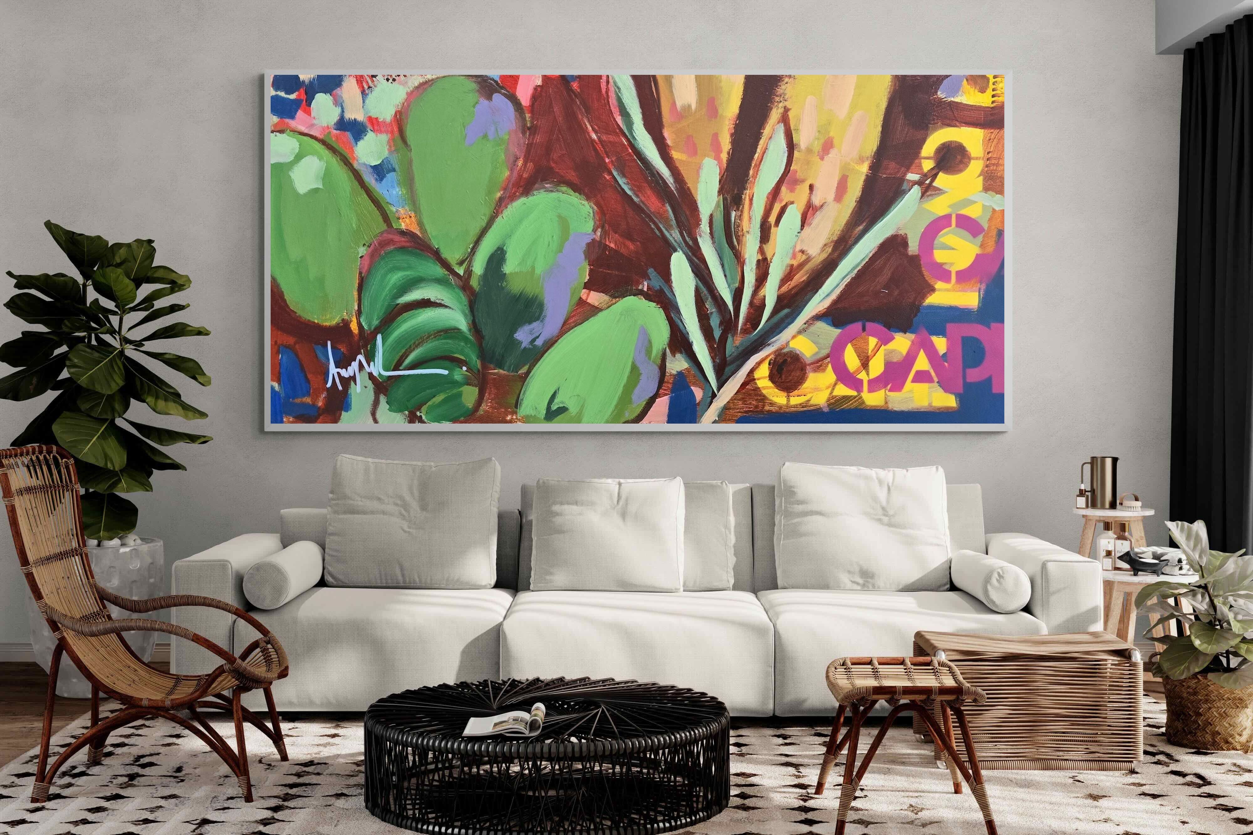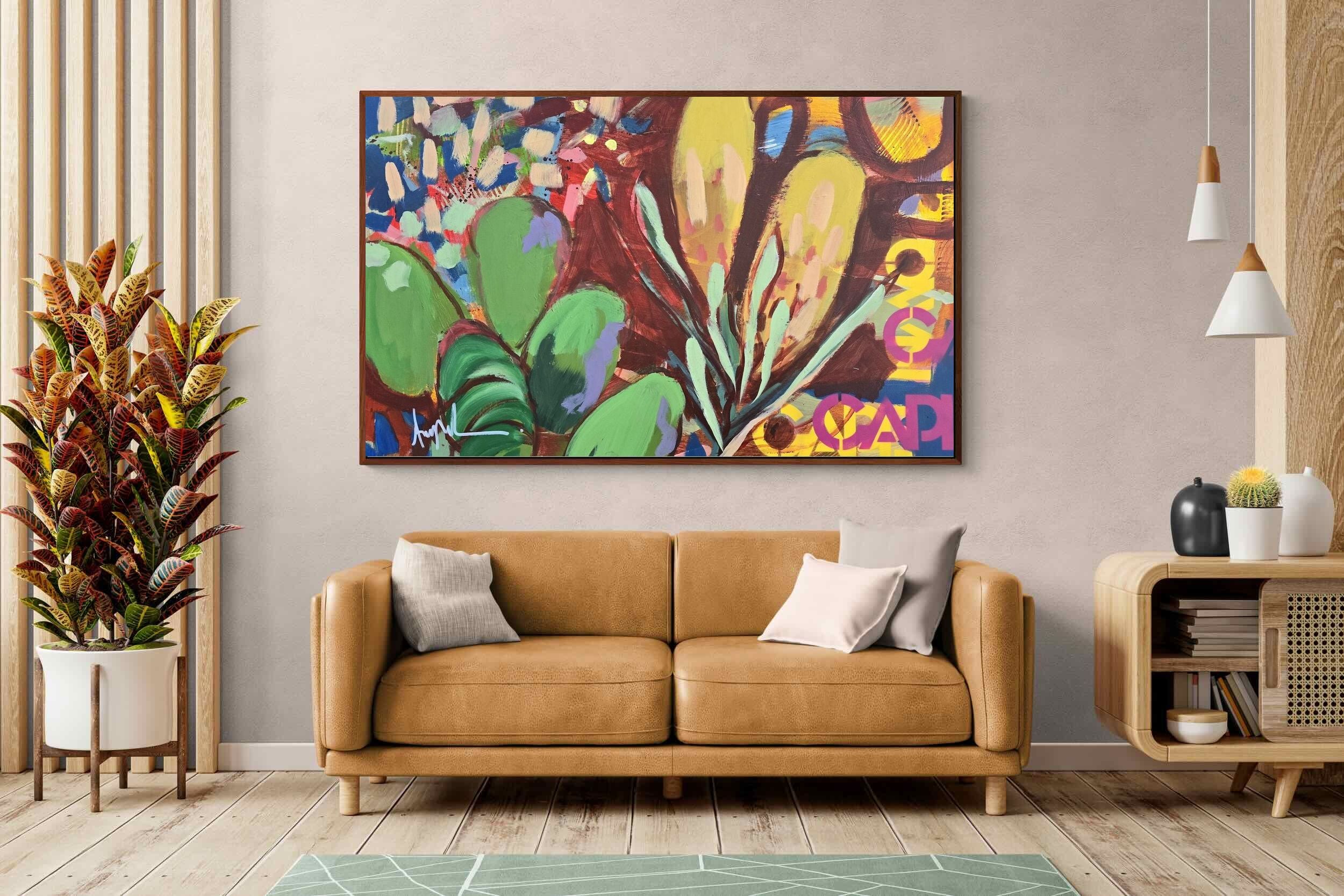 Inspired by the diverse plant life surrounding Cape Town, this energetic abstract painting celebrates the vivid colours and forms of the Cape’s unique flora. Loose brushwork, layered shapes and playful textures create a lively composition filled with movement and warmth. Hints of protea-like blooms and foliage evoke the wild landscapes of the Western Cape. This expressive artwork makes uplifting wall art for modern interiors and creative spaces.