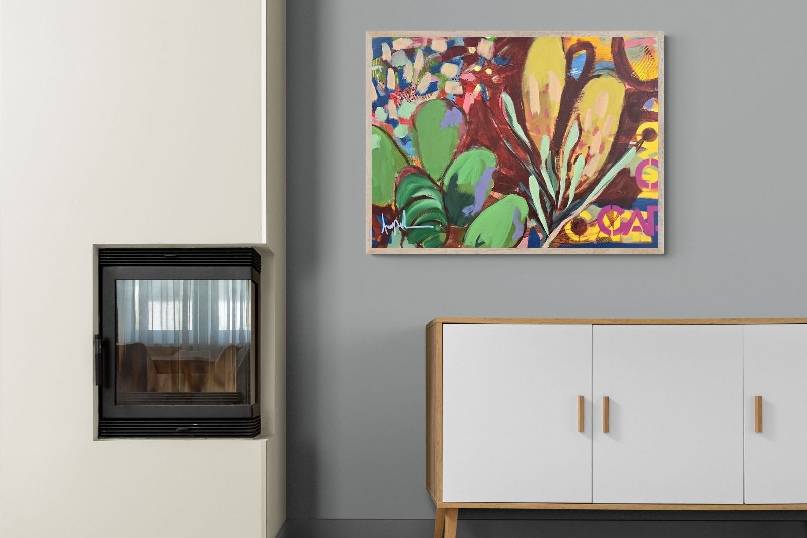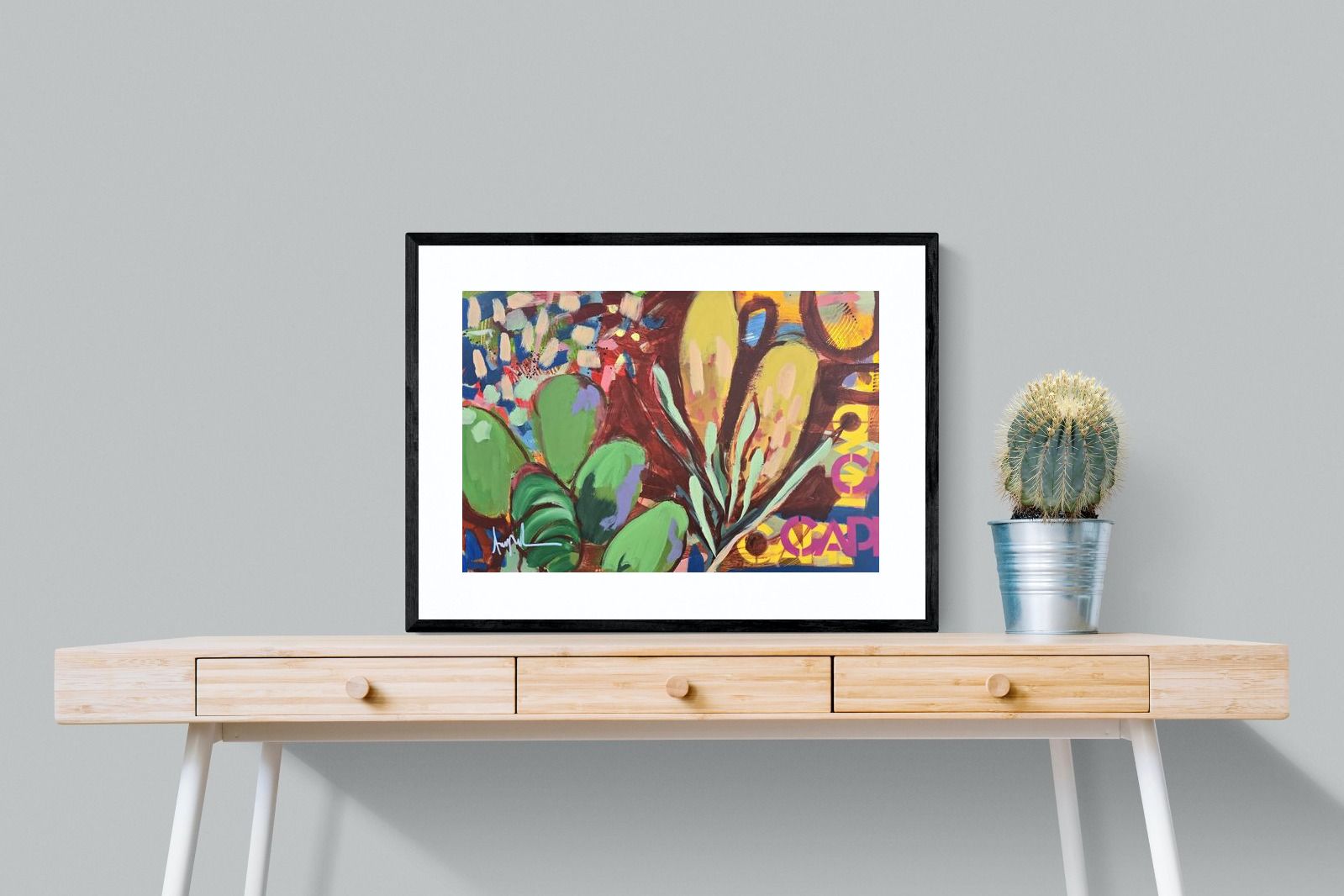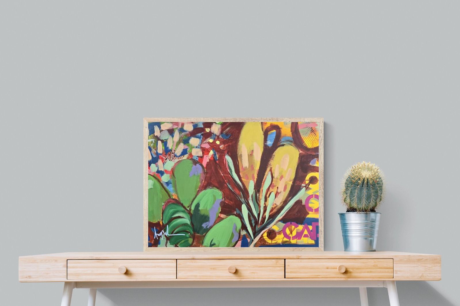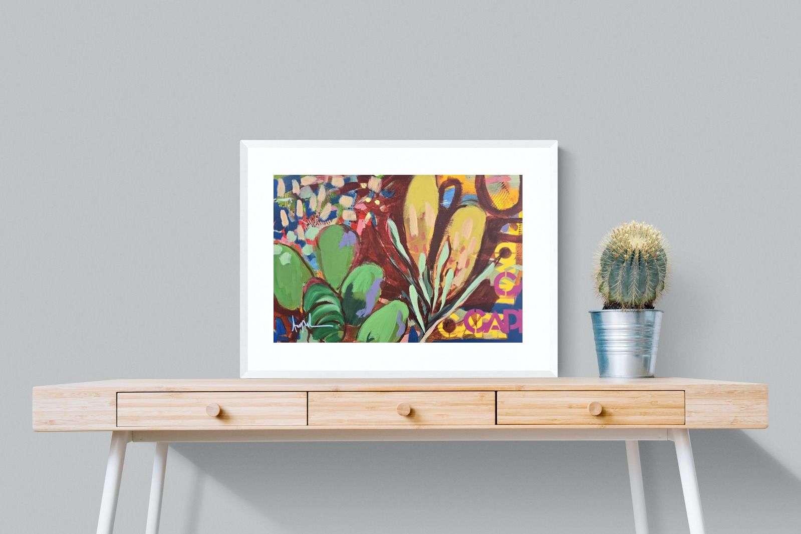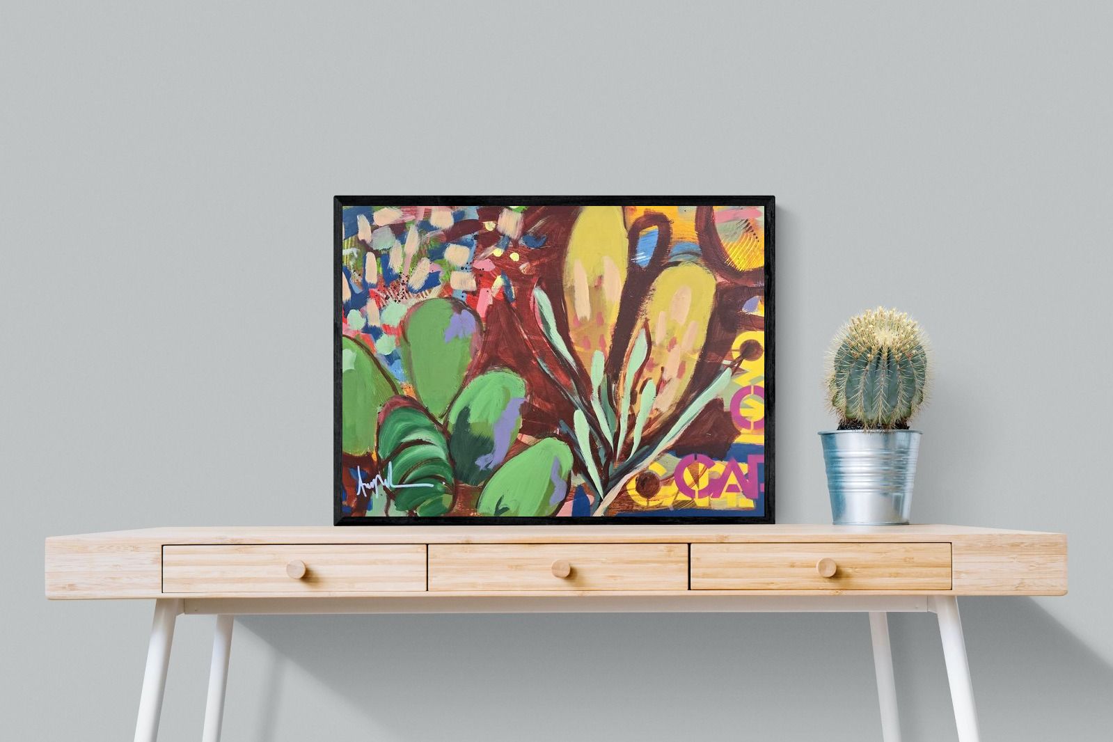 Inspired by the diverse plant life surrounding Cape Town, this energetic abstract painting celebrates the vivid colours and forms of the Cape’s unique flora. Loose brushwork, layered shapes and playful textures create a lively composition filled with movement and warmth. Hints of protea-like blooms and foliage evoke the wild landscapes of the Western Cape. This expressive artwork makes uplifting wall art for modern interiors and creative spaces.