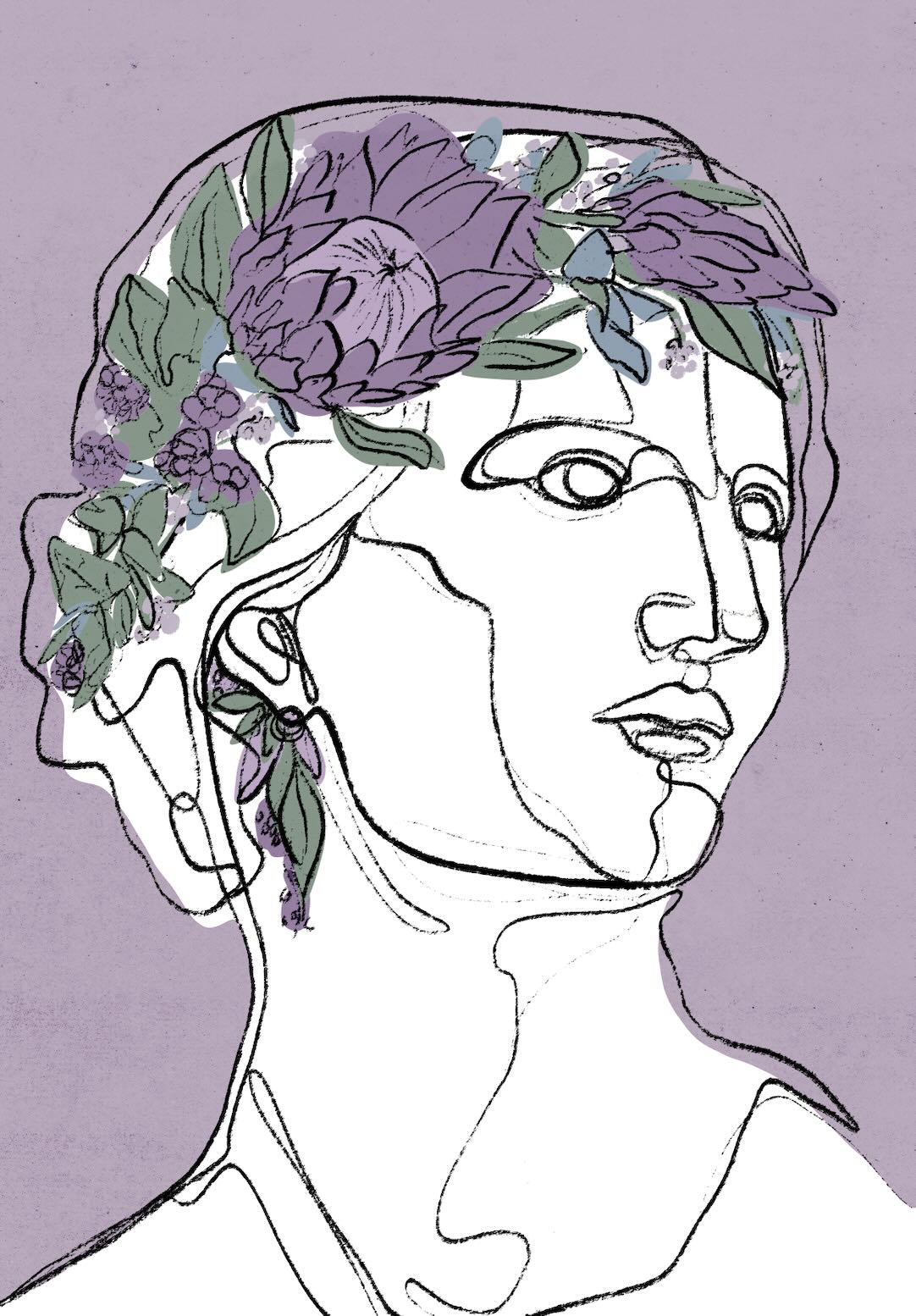 This elegant portrait pairs flowing linework with lilac flowers and soft green foliage, creating a refined artwork that feels feminine, calm and contemporary. The muted palette gives it a gentle decorative presence, making it ideal for bedrooms, dressing rooms, lounges or serene hallway spaces. It suits modern, romantic and softly styled interiors particularly well, adding a graceful focal point that brings colour, softness and an artistic touch without overpowering the room.