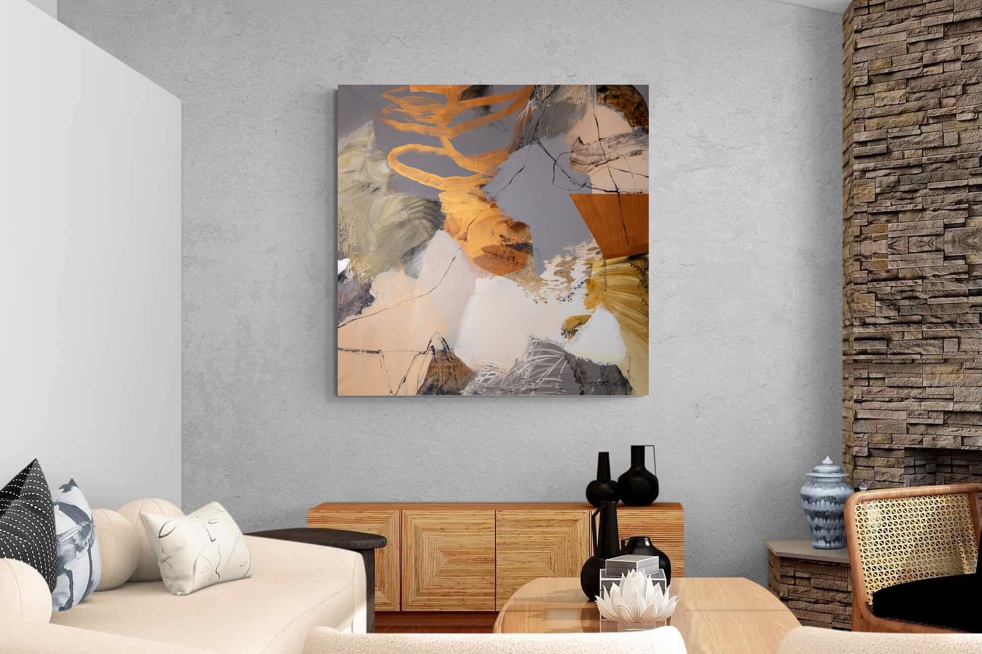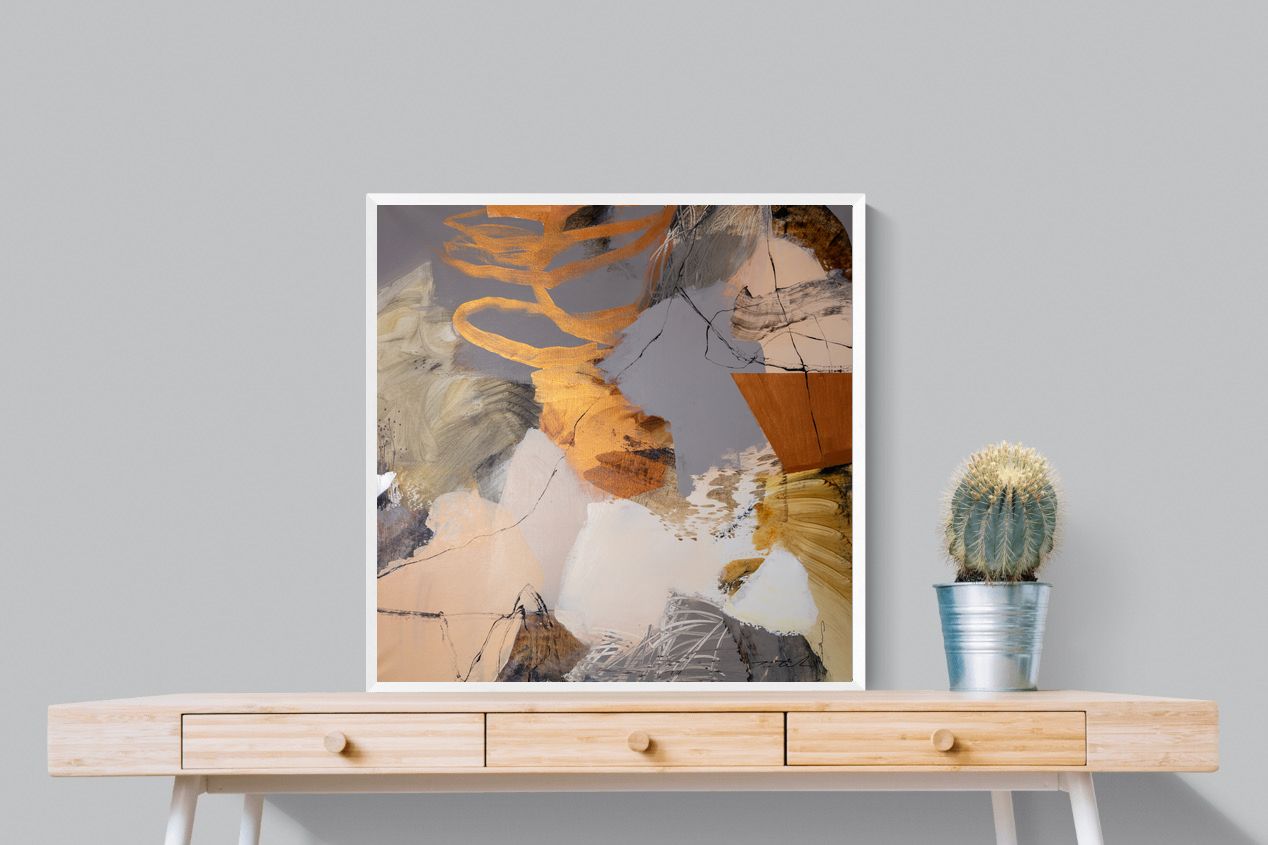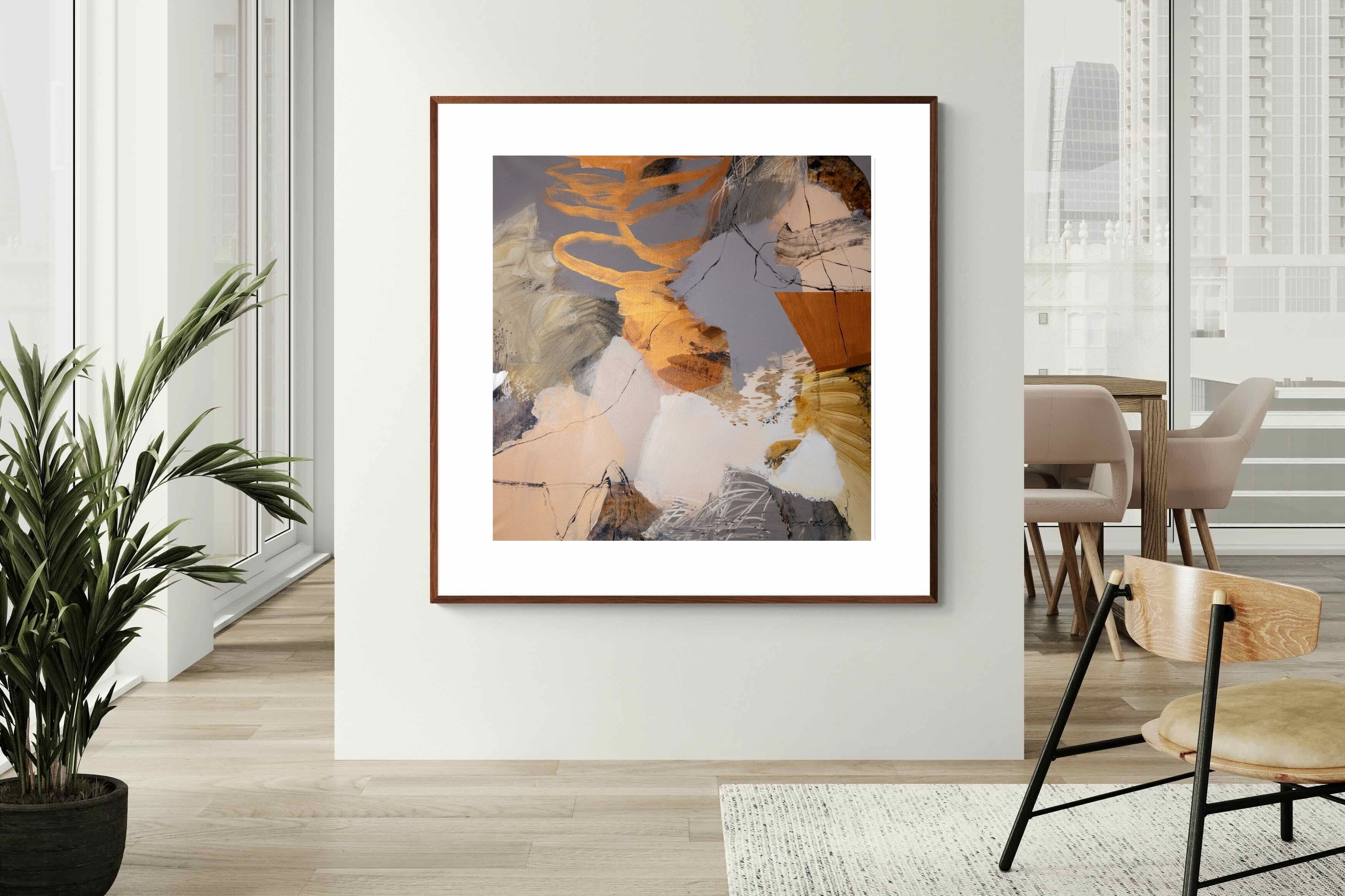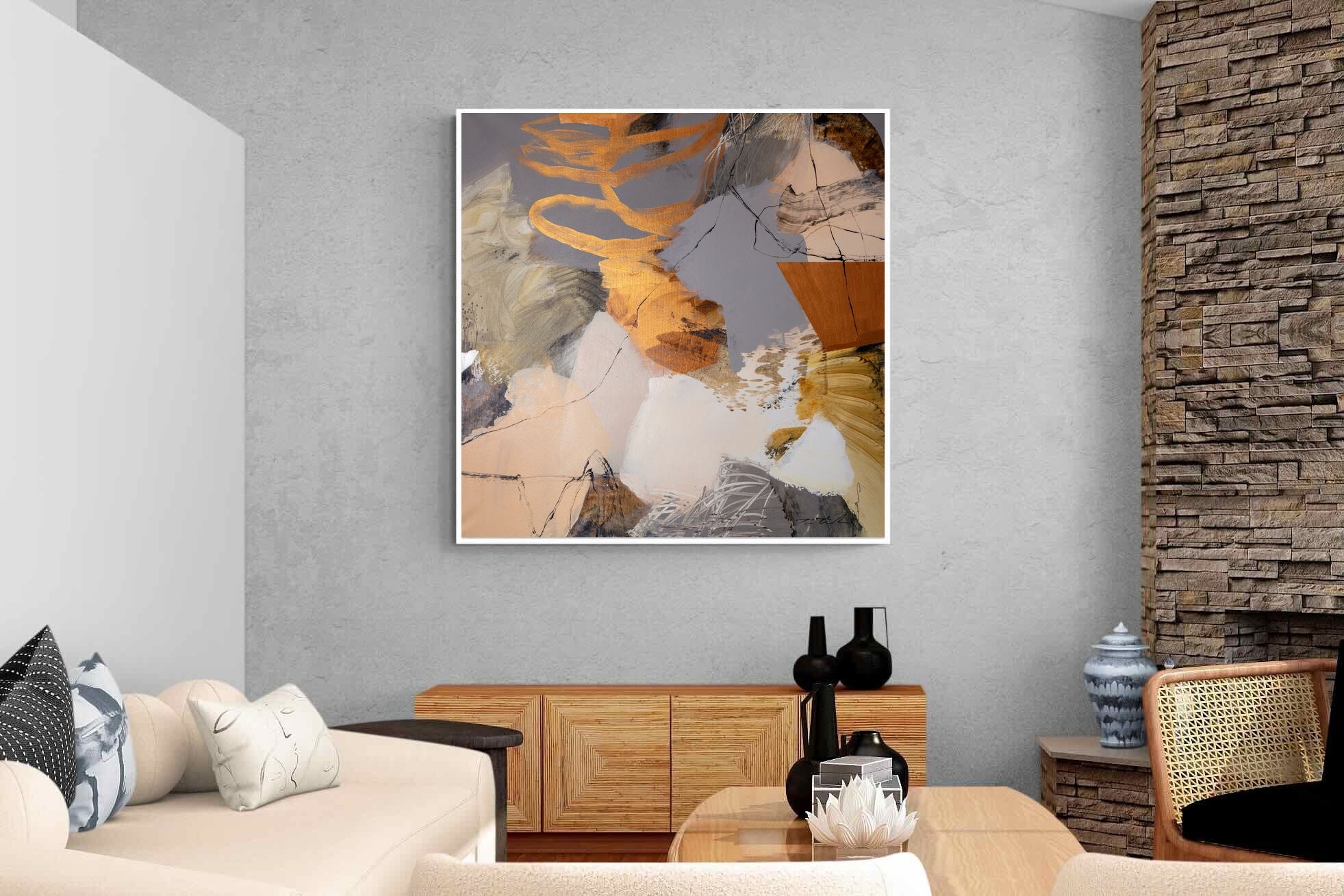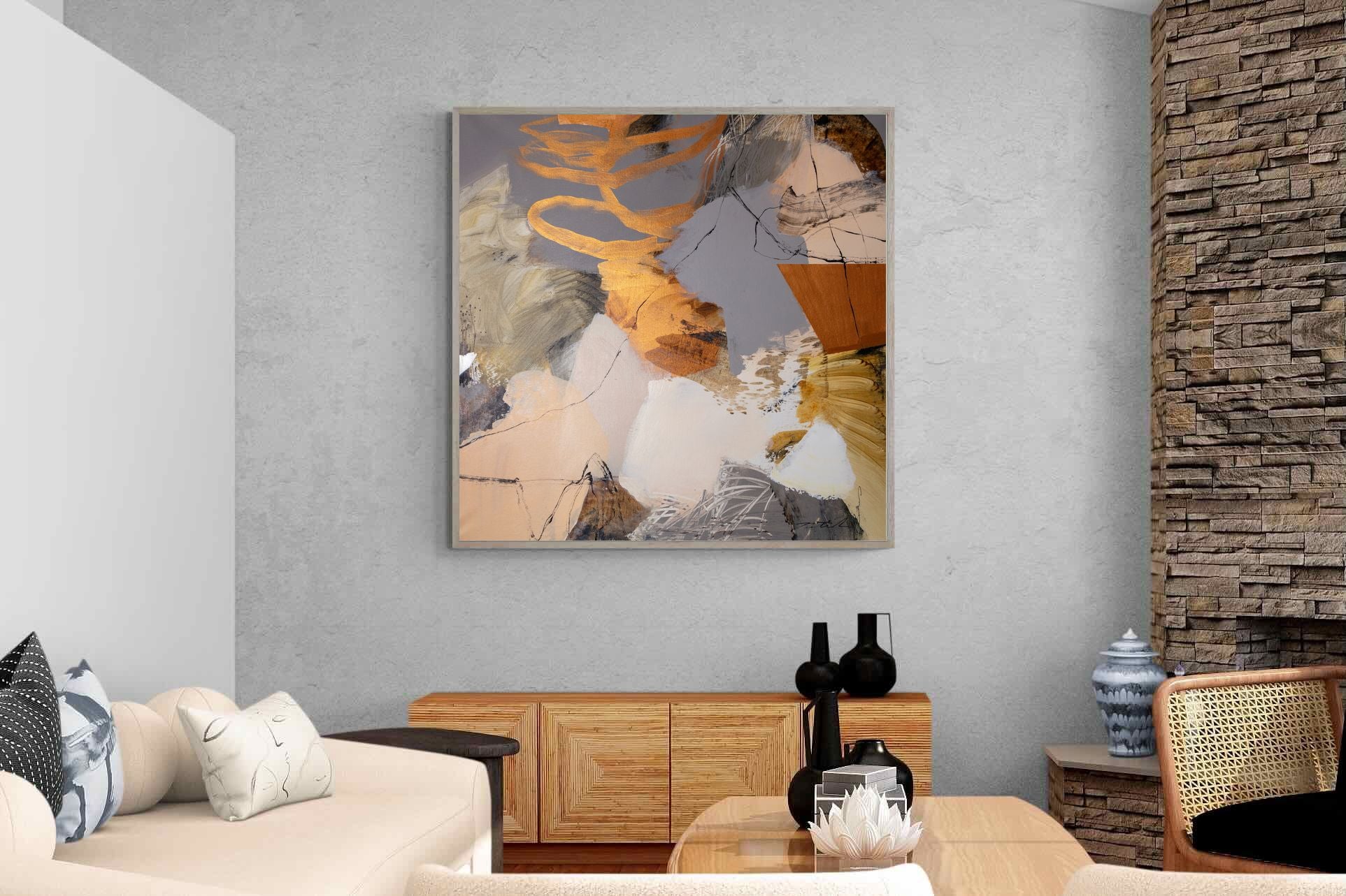Gilded Drift combines warm gold accents with cool grey and cream tones, creating a refined abstract artwork with depth and subtle contrast. The layered brushwork adds quiet energy without overpowering a space. Ideal for modern, luxury or transitional interiors, this piece works beautifully above sofas, sideboards or in stylish home offices where understated elegance is key.