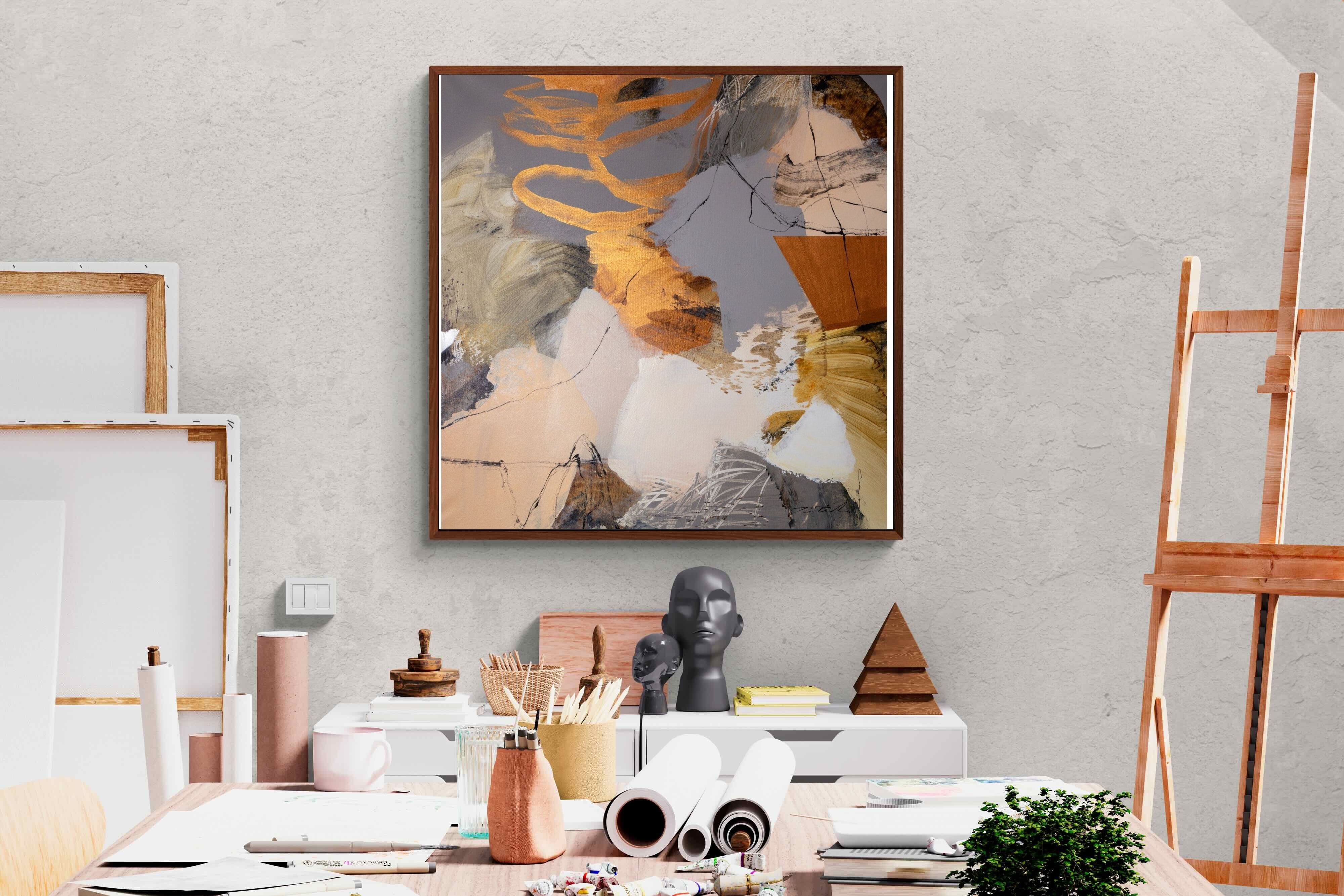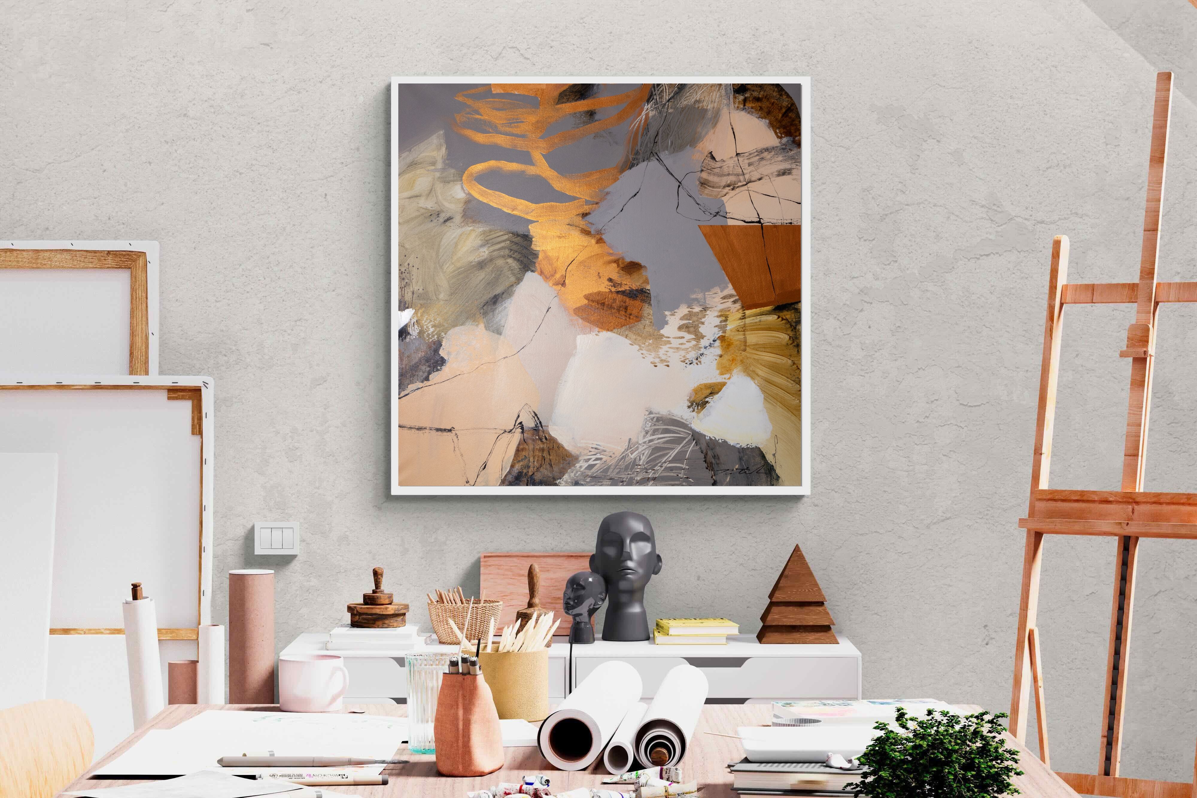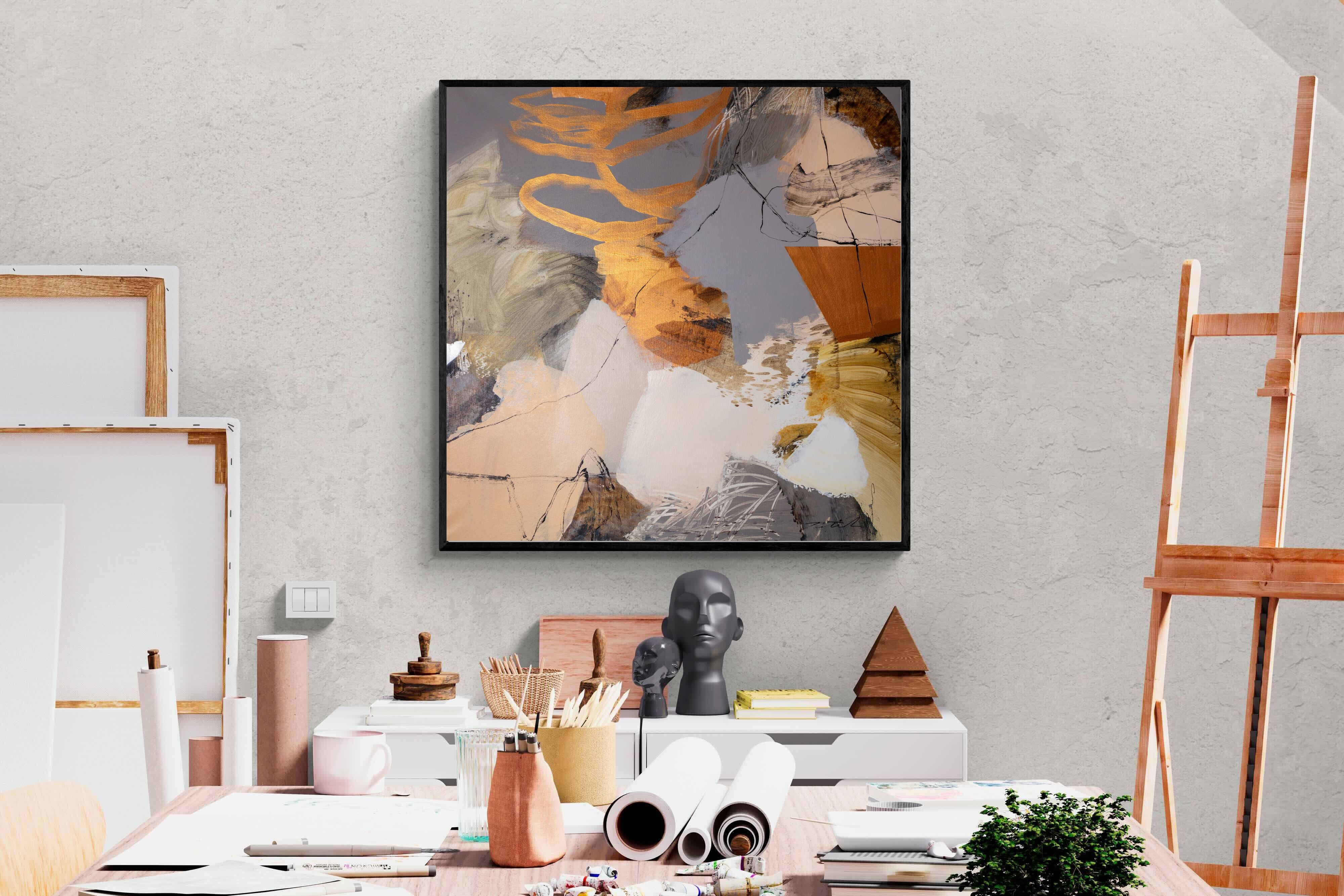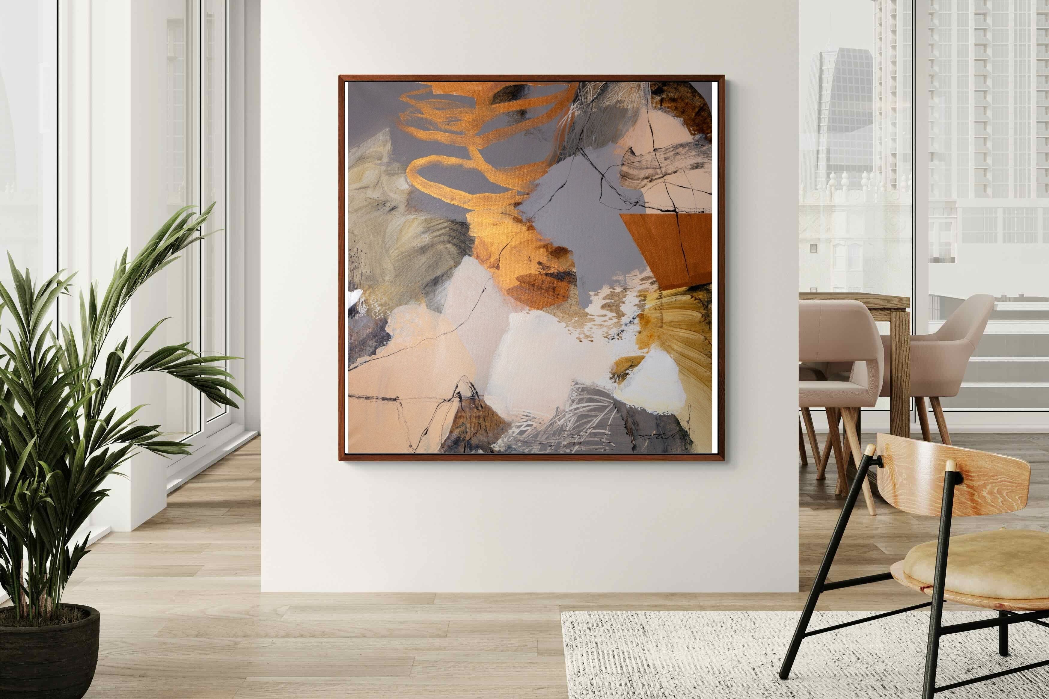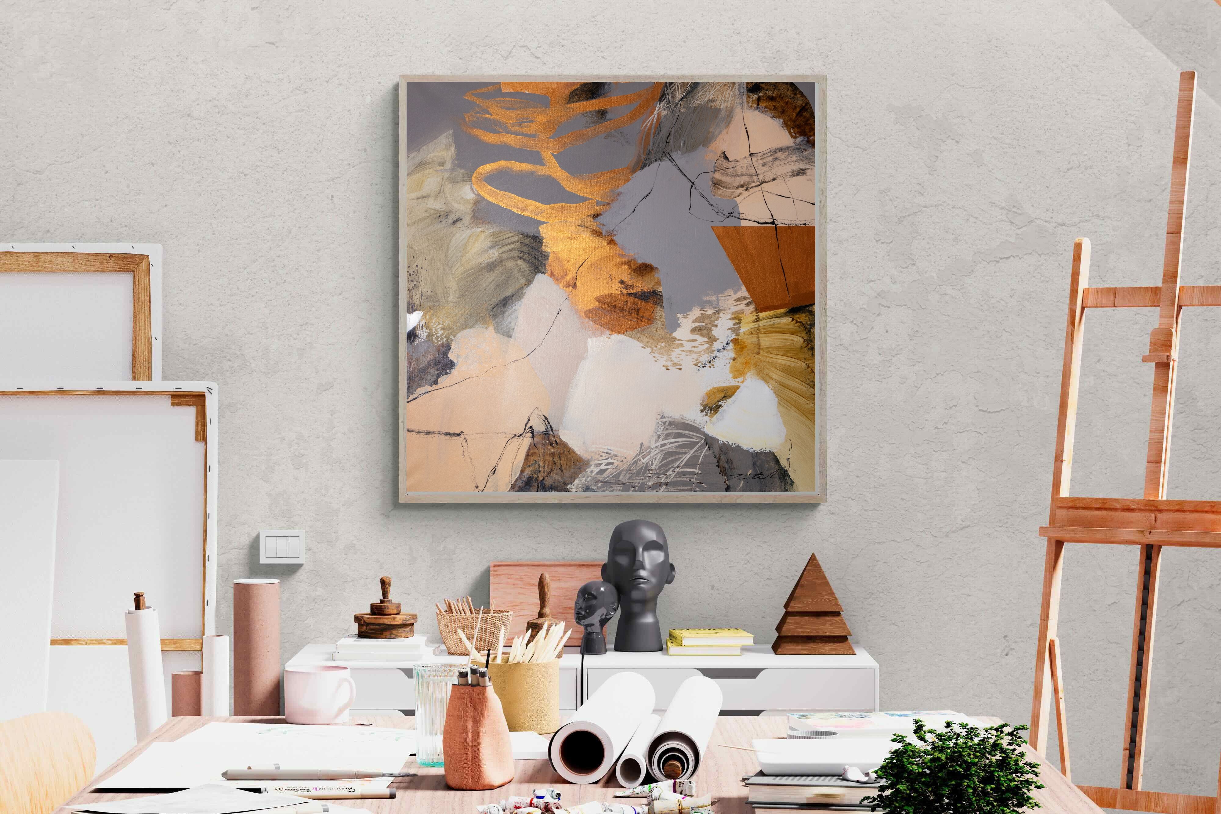 Gilded Drift combines warm gold accents with cool grey and cream tones, creating a refined abstract artwork with depth and subtle contrast. The layered brushwork adds quiet energy without overpowering a space. Ideal for modern, luxury or transitional interiors, this piece works beautifully above sofas, sideboards or in stylish home offices where understated elegance is key.