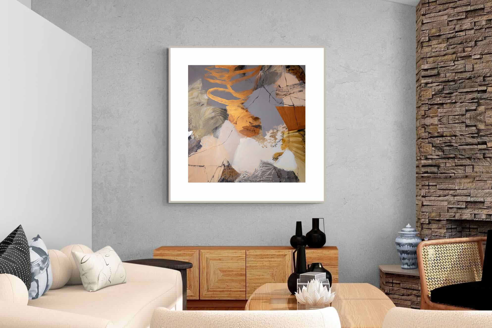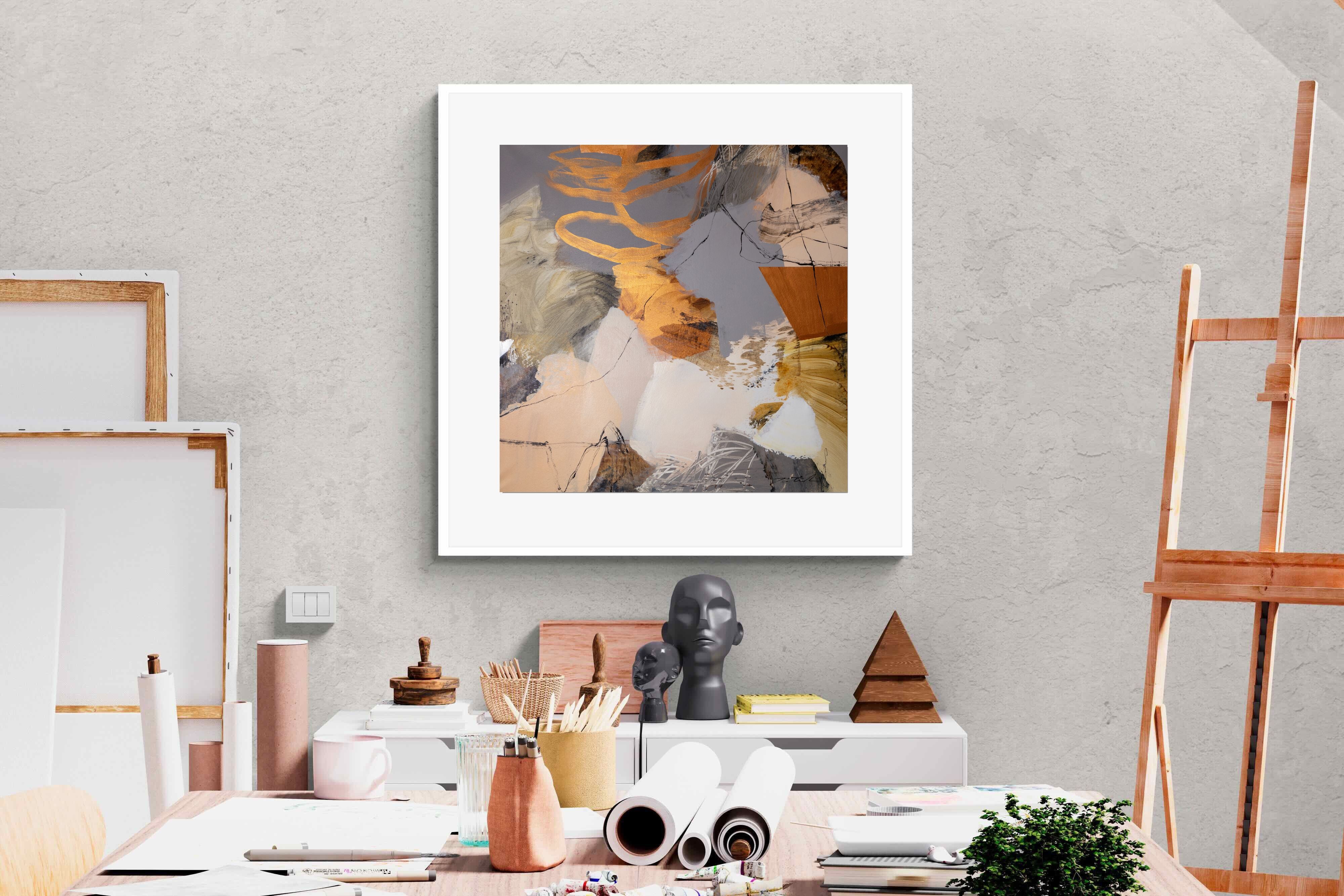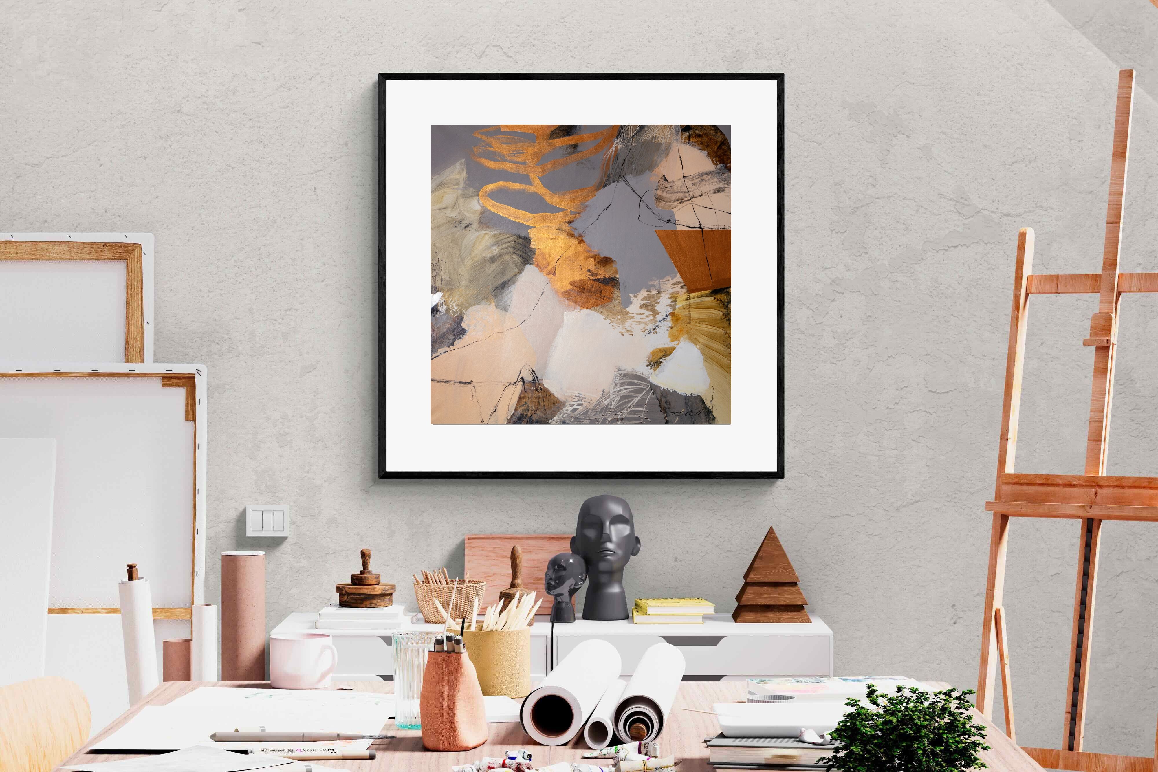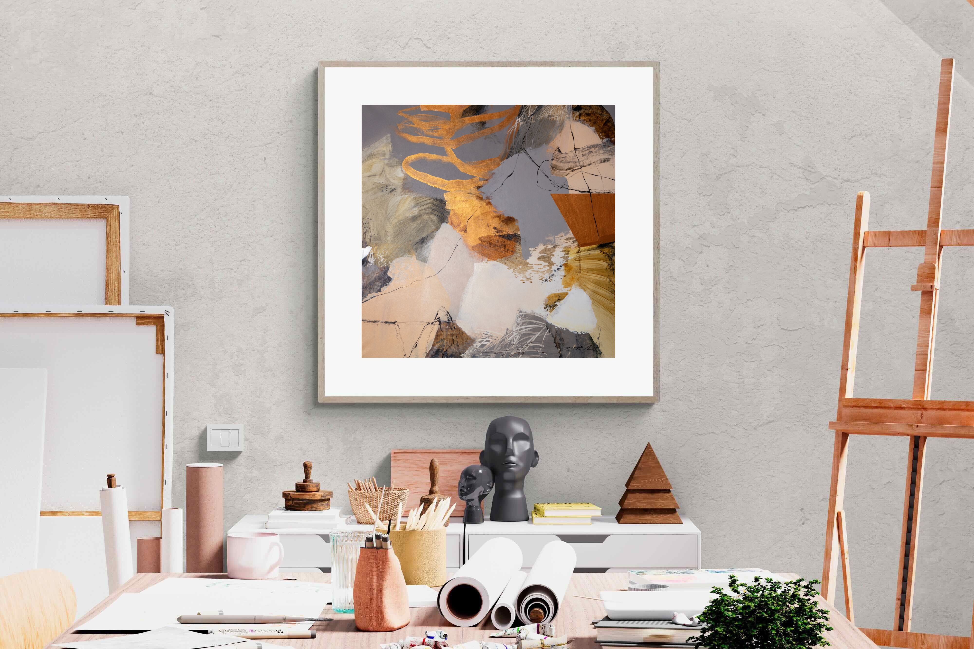 Gilded Drift combines warm gold accents with cool grey and cream tones, creating a refined abstract artwork with depth and subtle contrast. The layered brushwork adds quiet energy without overpowering a space. Ideal for modern, luxury or transitional interiors, this piece works beautifully above sofas, sideboards or in stylish home offices where understated elegance is key.