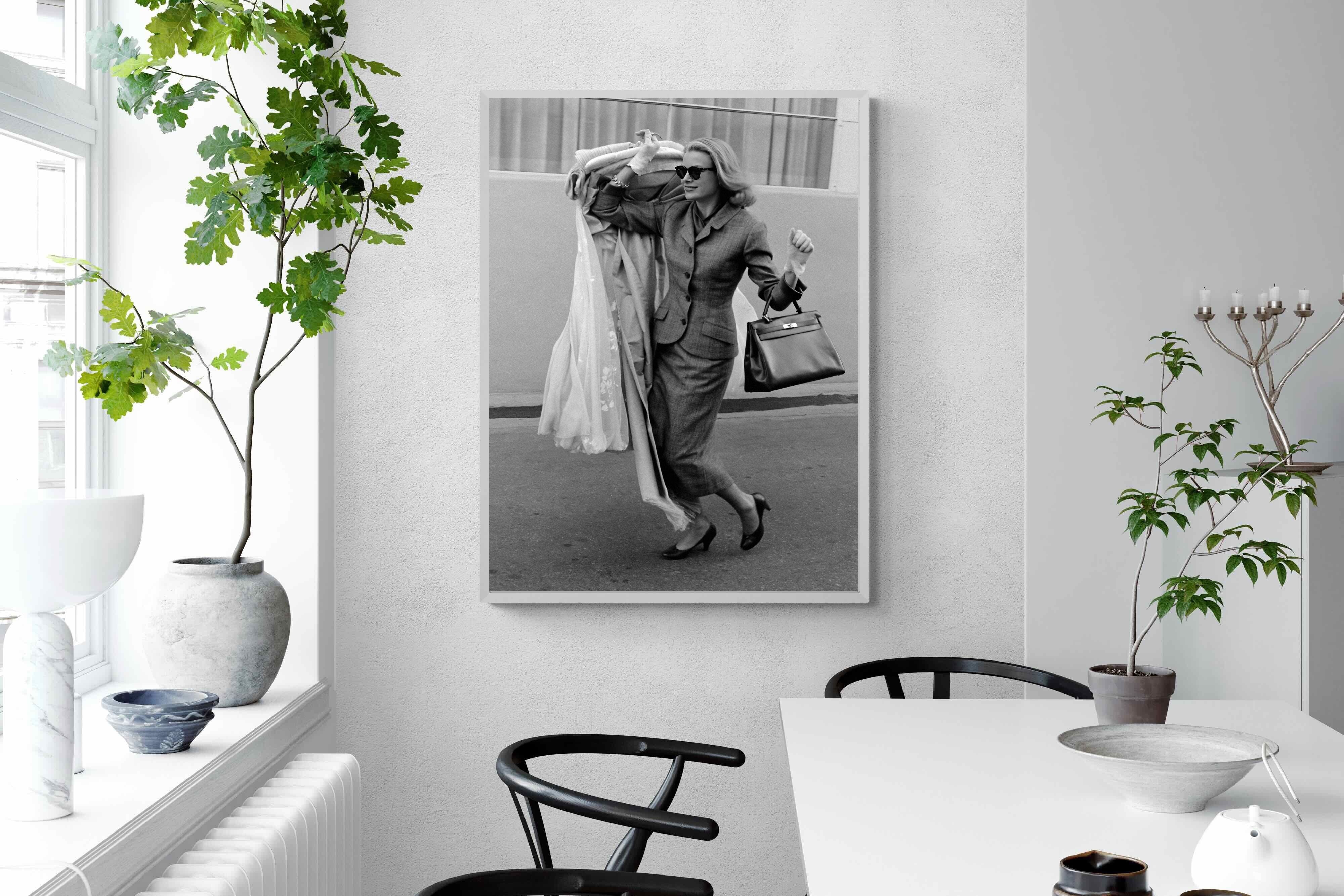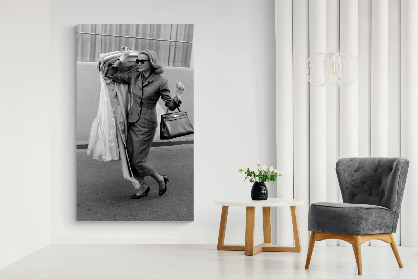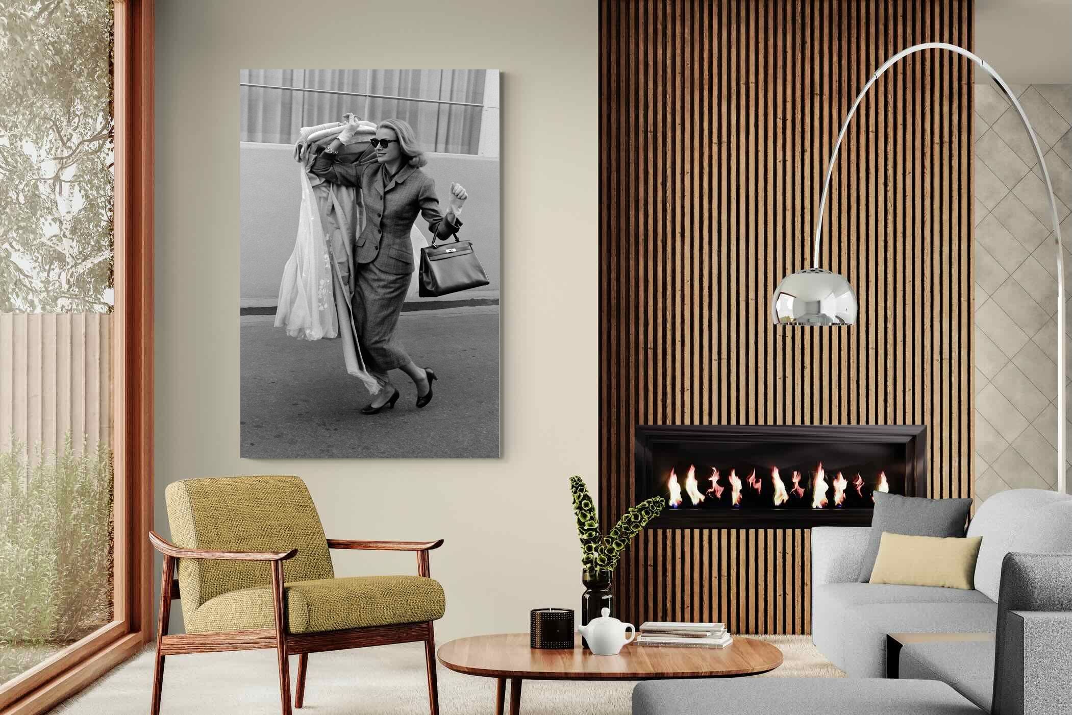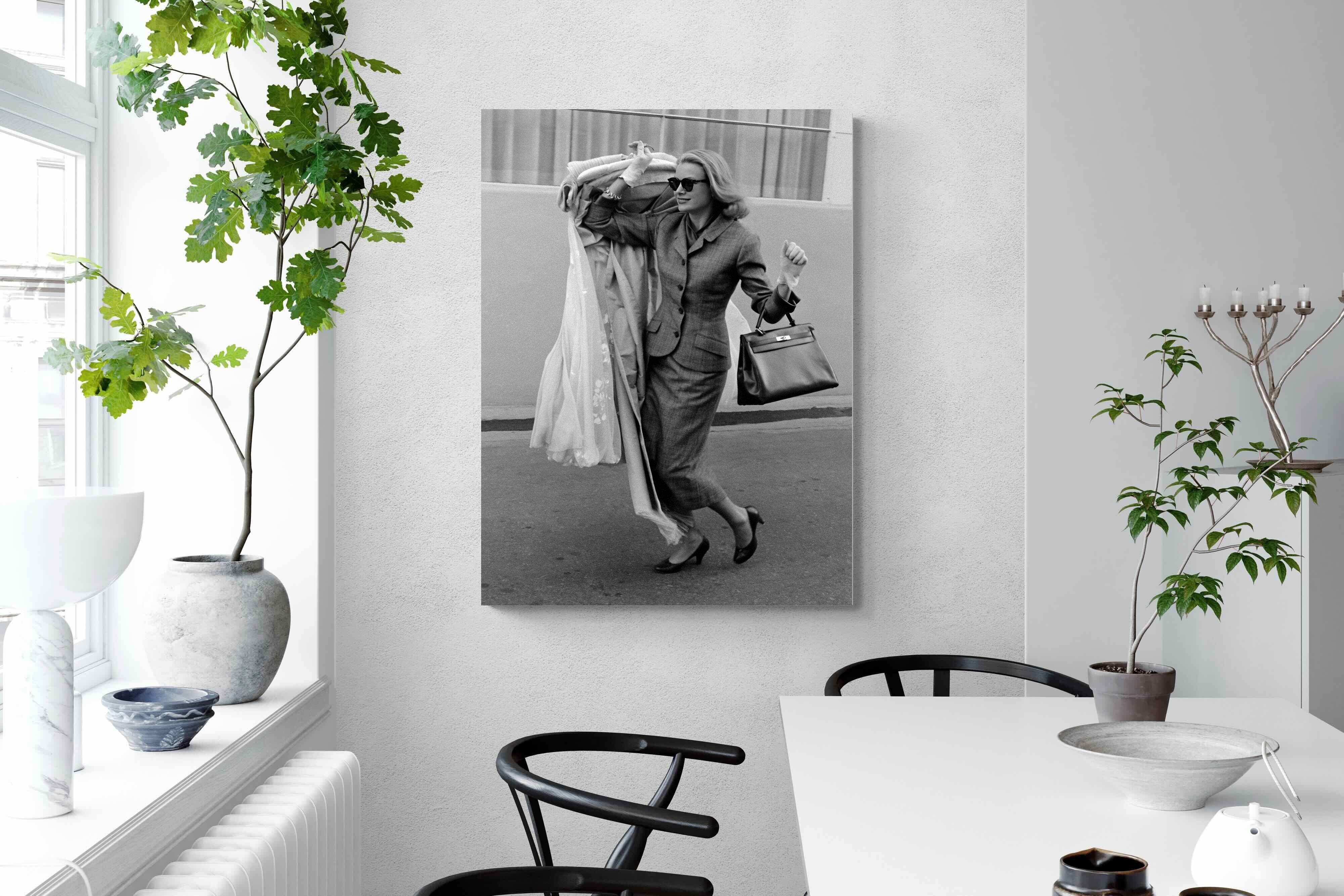This iconic black-and-white photograph captures the effortless mid-century elegance of Grace Kelly, with graceful movement, tailored styling and understated glamour. The clean composition make it a striking addition to contemporary interiors, particularly bedrooms, dressing rooms or sophisticated living spaces. Its timeless aesthetic pairs beautifully with neutral palettes and modern furnishings, adding refinement, femininity and classic style without overwhelming the room.