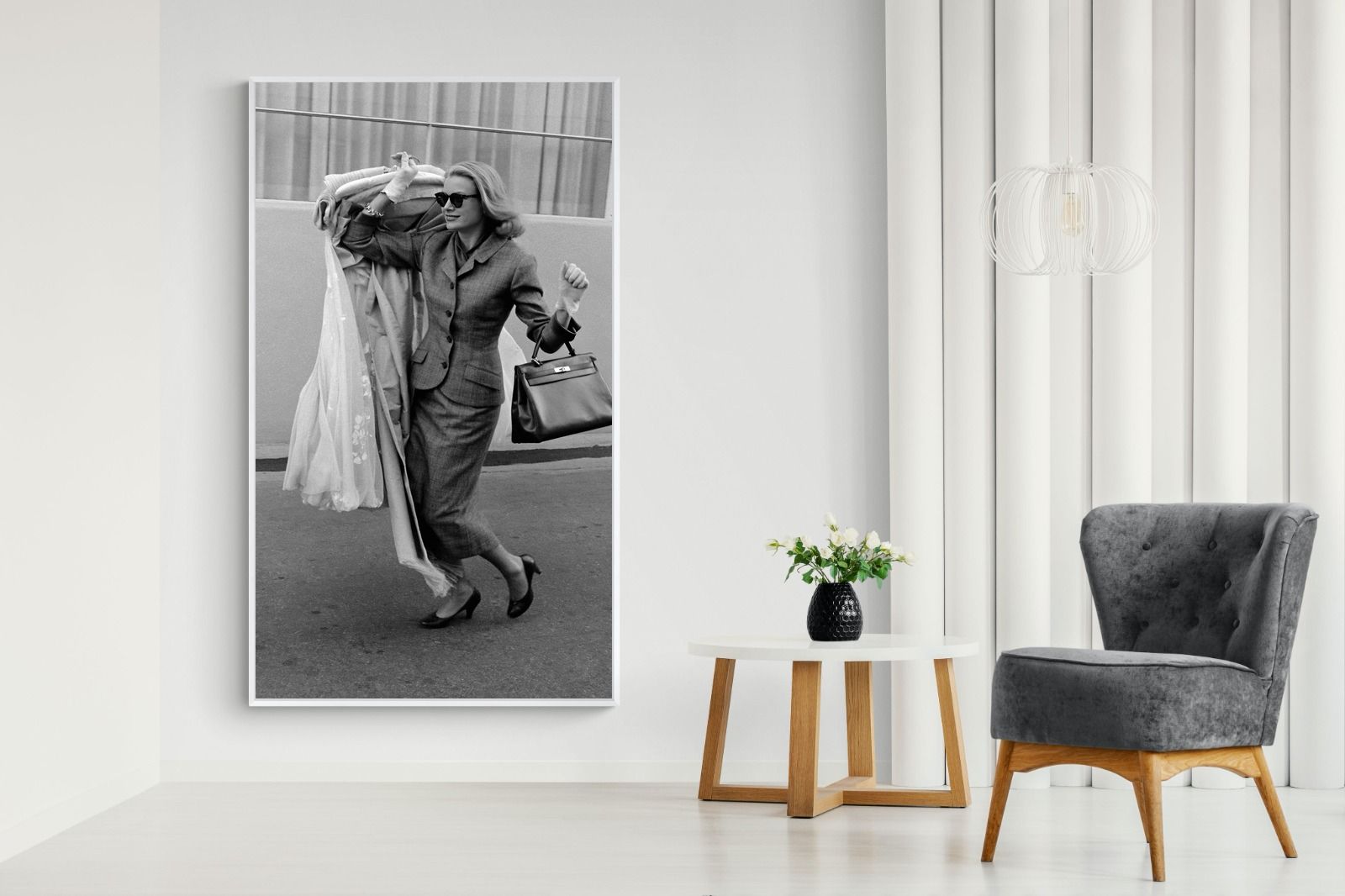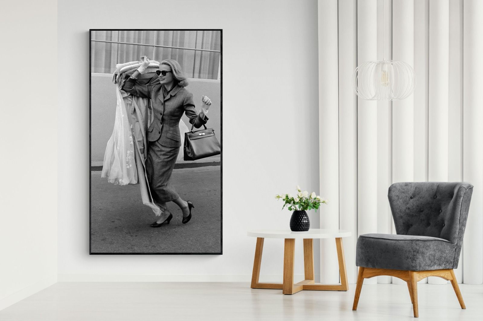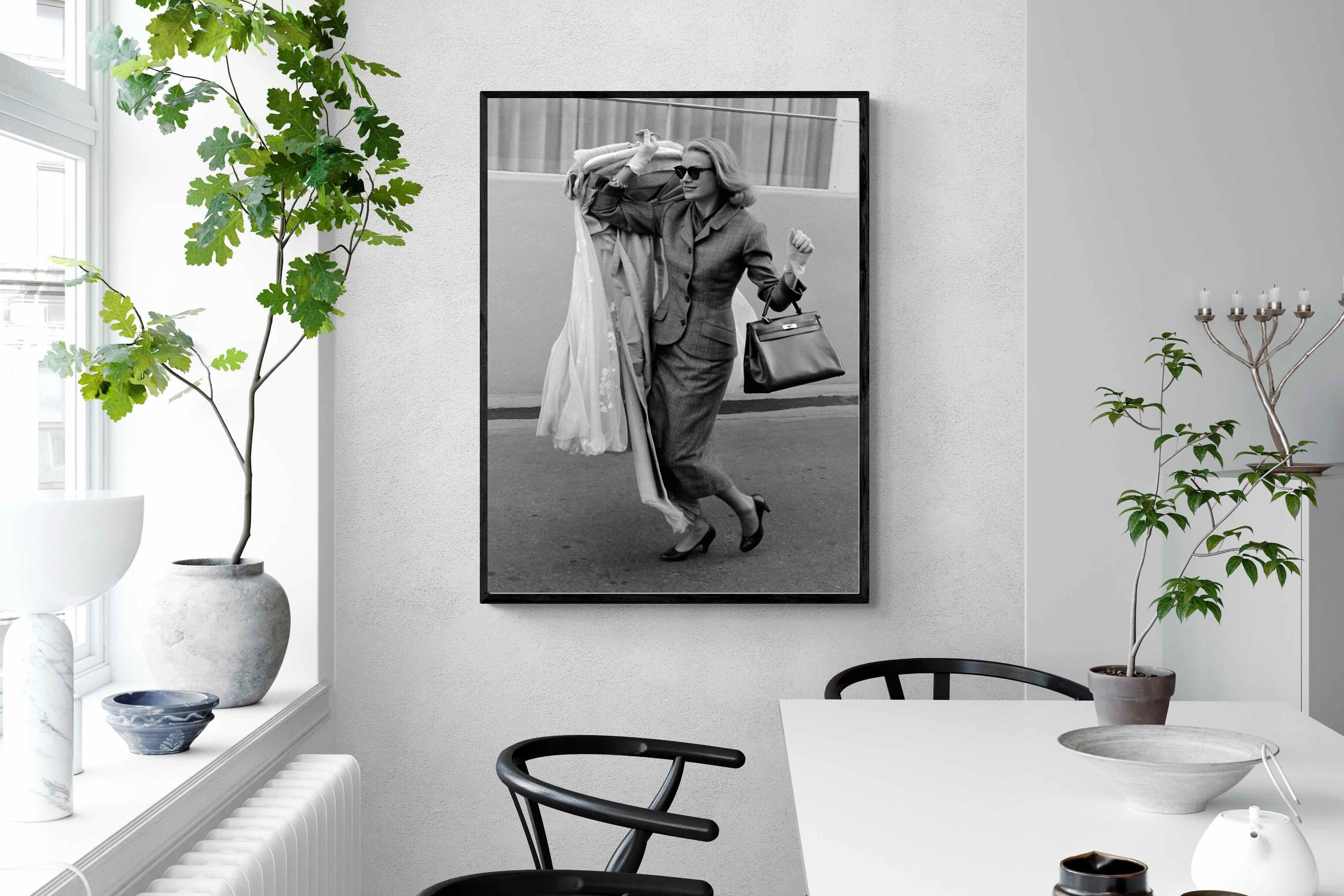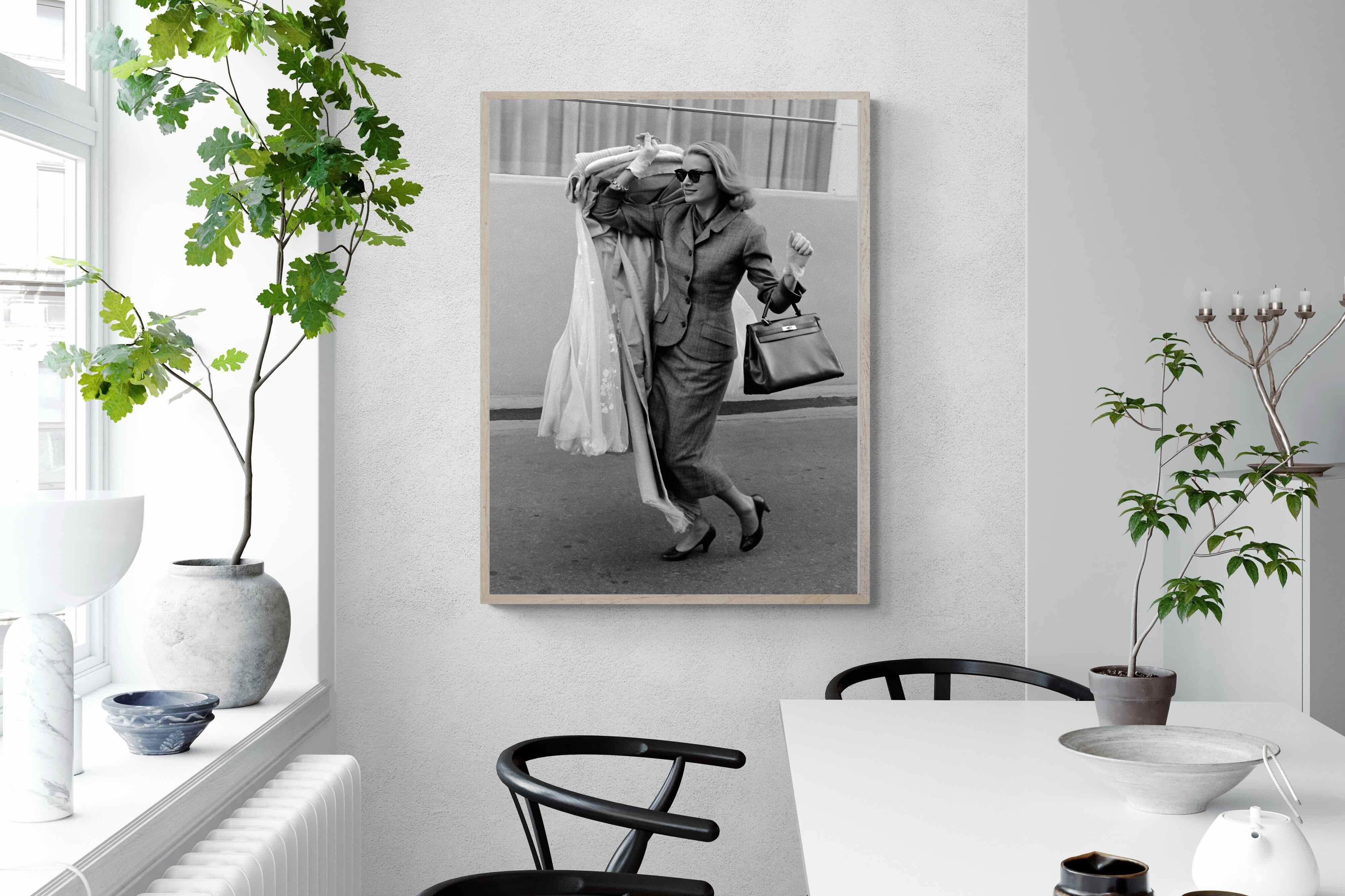 This iconic black-and-white photograph captures the effortless mid-century elegance of Grace Kelly, with graceful movement, tailored styling and understated glamour. The clean composition make it a striking addition to contemporary interiors, particularly bedrooms, dressing rooms or sophisticated living spaces. Its timeless aesthetic pairs beautifully with neutral palettes and modern furnishings, adding refinement, femininity and classic style without overwhelming the room.