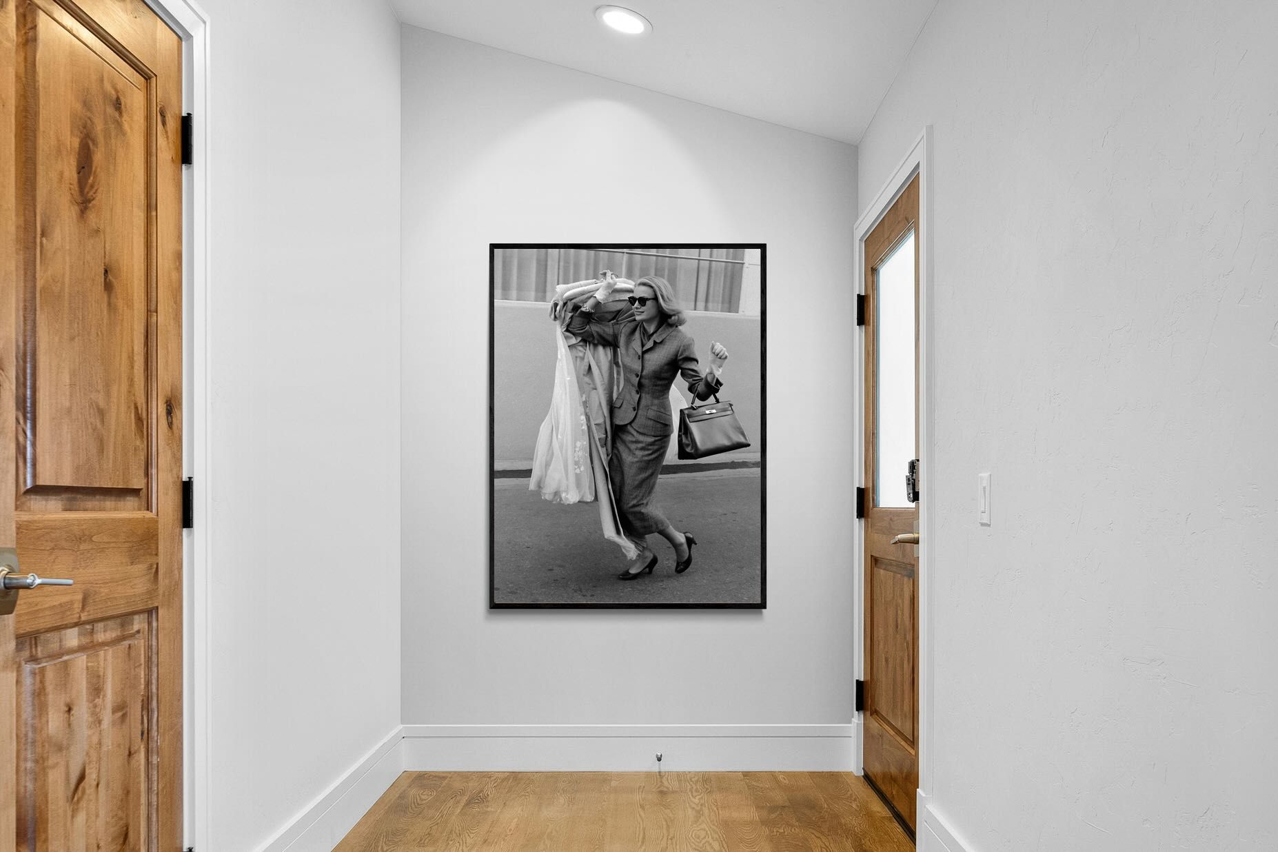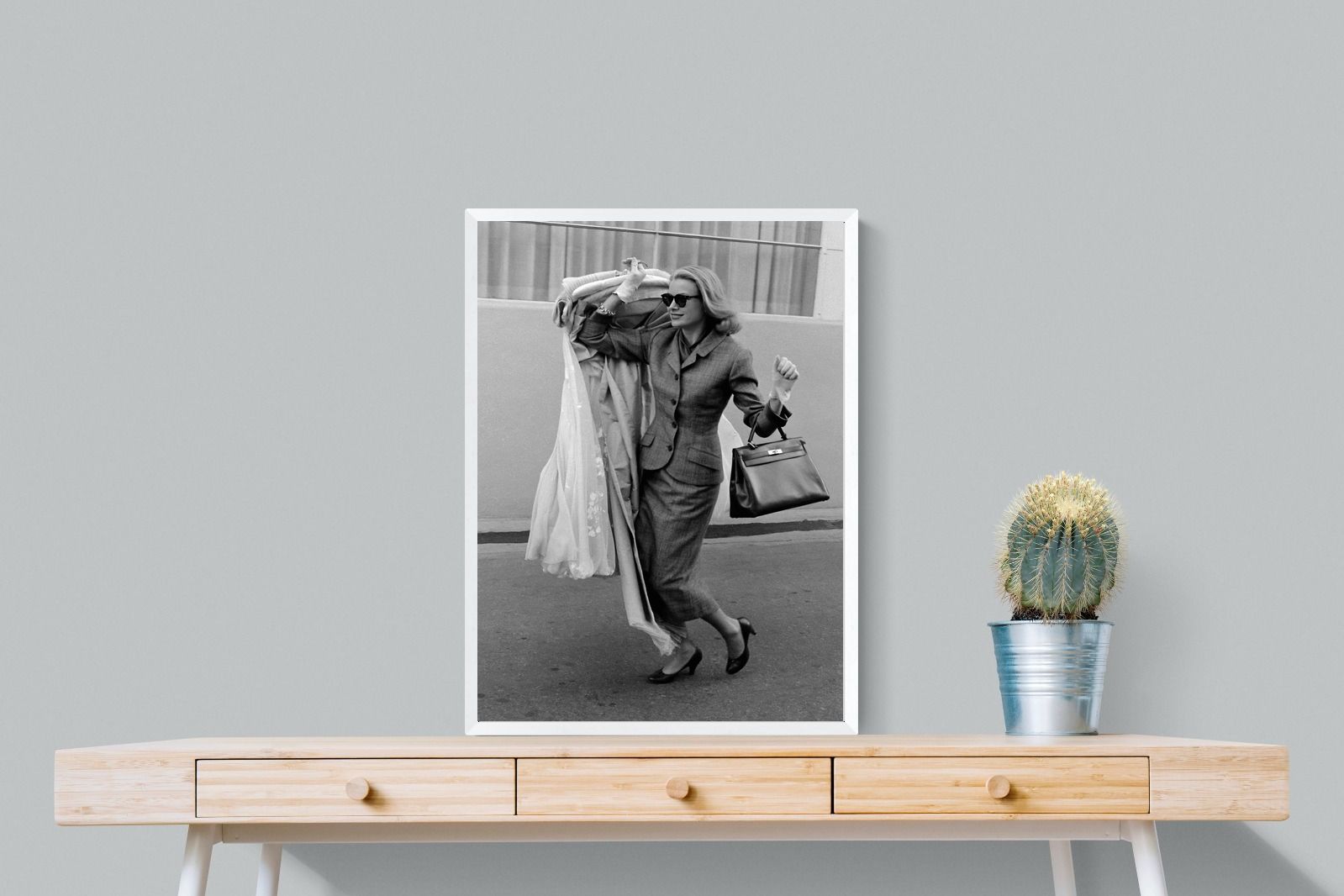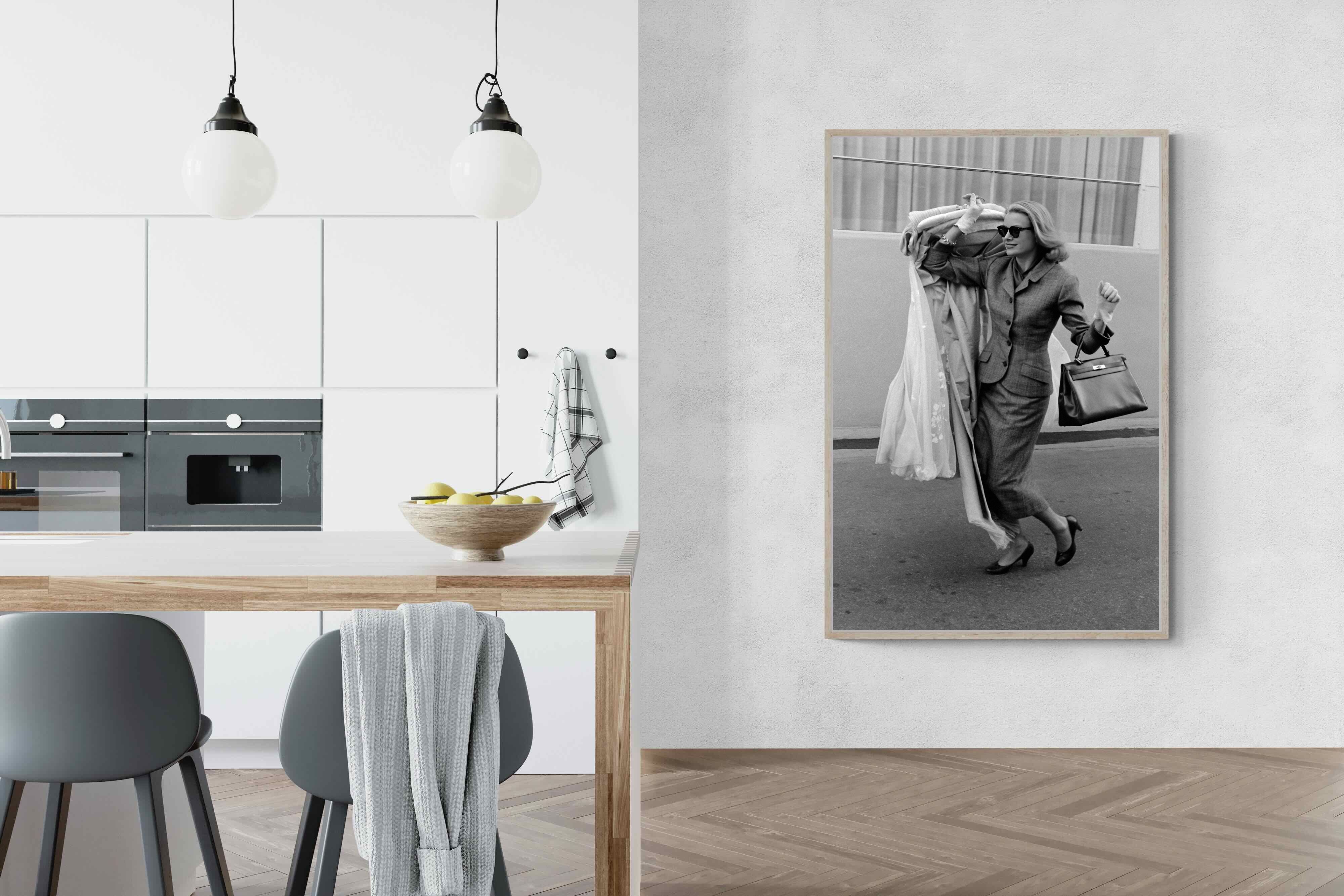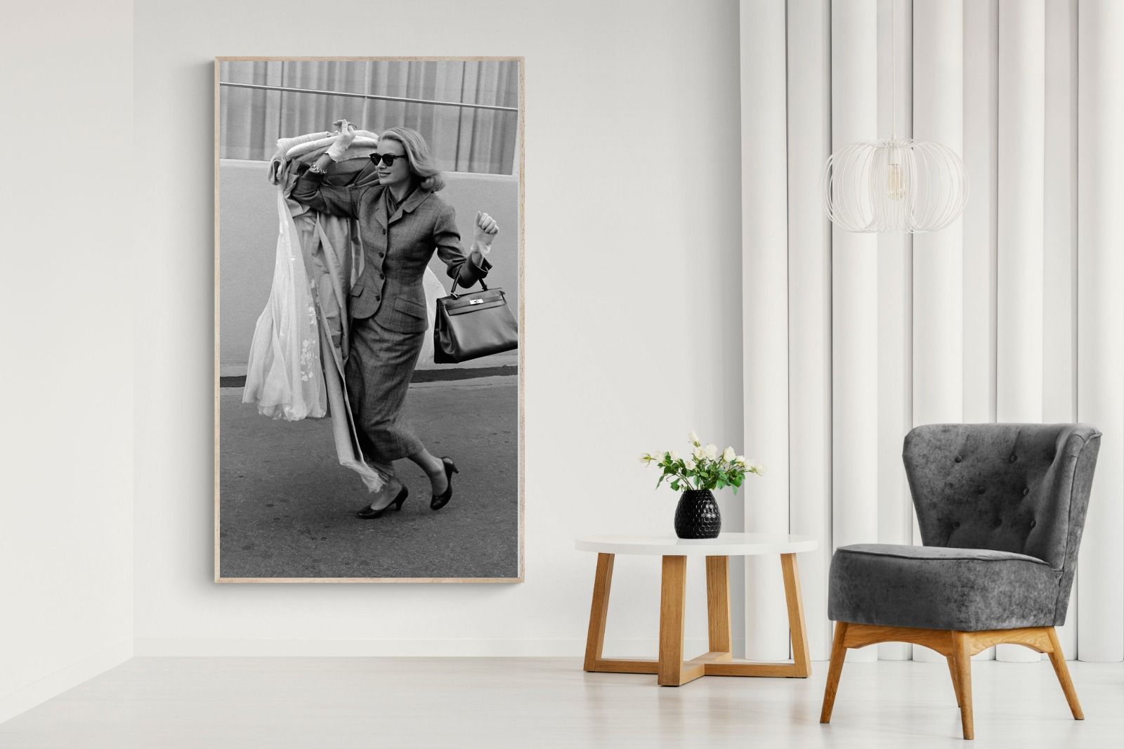 This iconic black-and-white photograph captures the effortless mid-century elegance of Grace Kelly, with graceful movement, tailored styling and understated glamour. The clean composition make it a striking addition to contemporary interiors, particularly bedrooms, dressing rooms or sophisticated living spaces. Its timeless aesthetic pairs beautifully with neutral palettes and modern furnishings, adding refinement, femininity and classic style without overwhelming the room.
