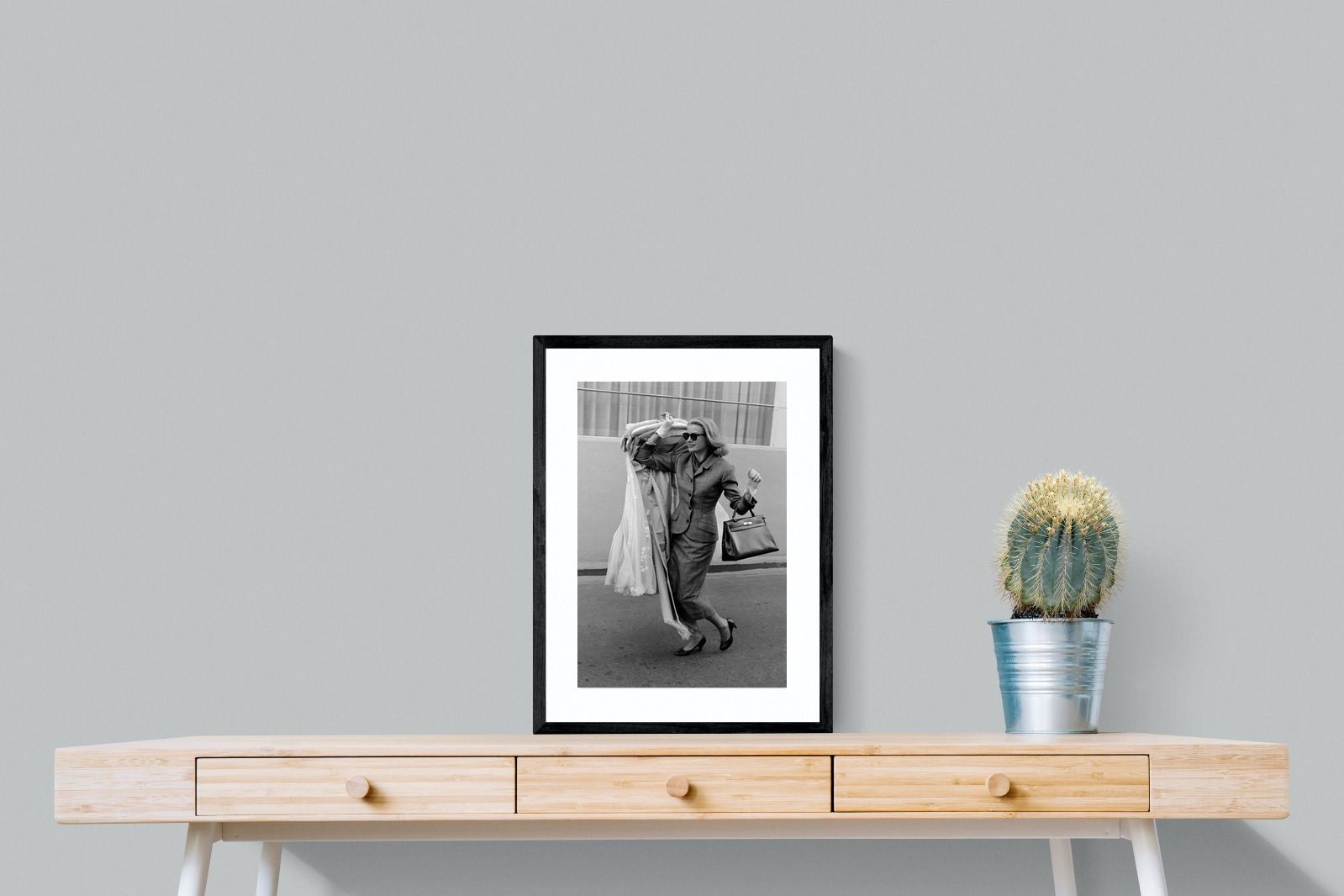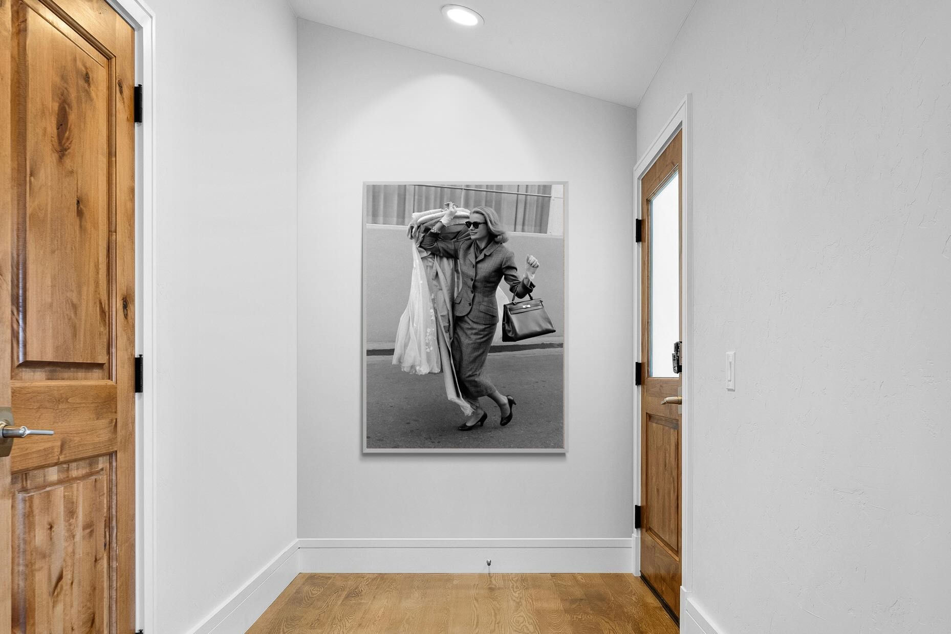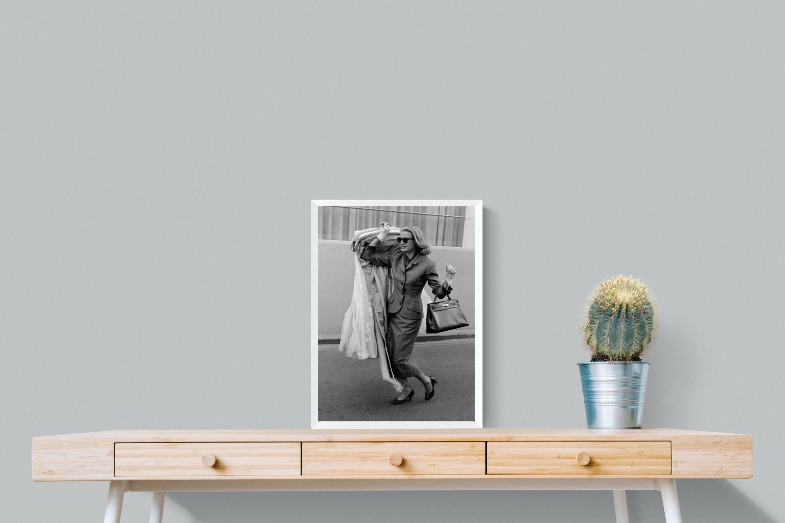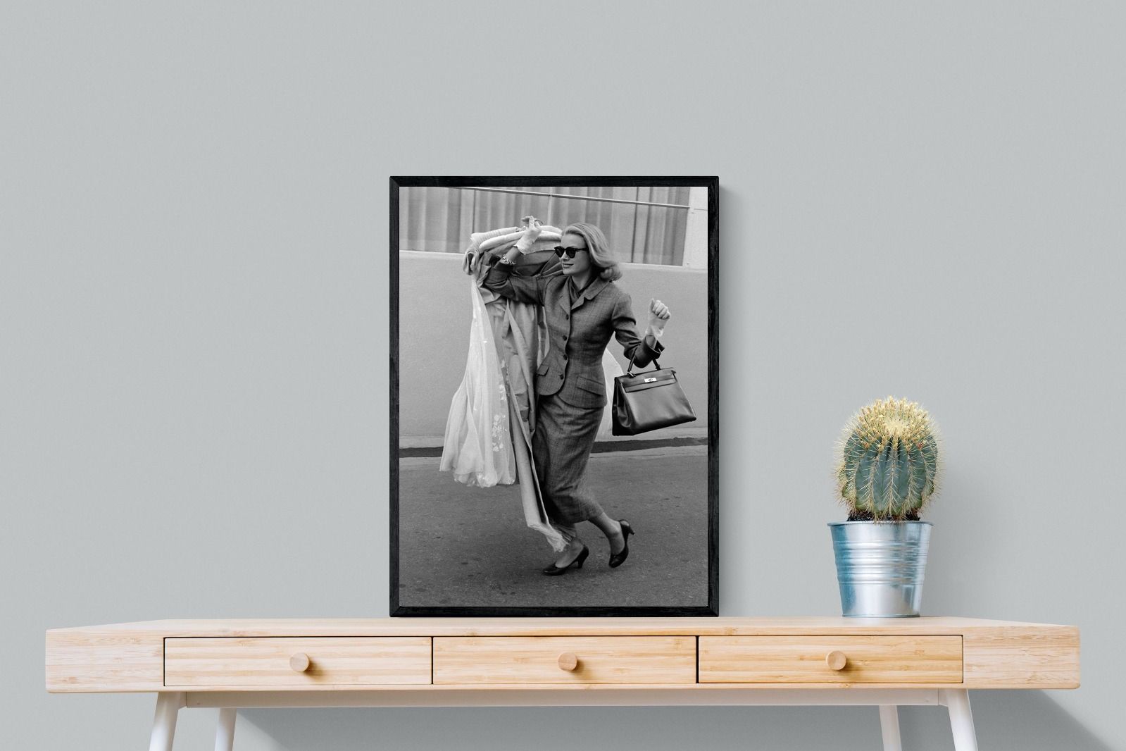 This iconic black-and-white photograph captures the effortless mid-century elegance of Grace Kelly, with graceful movement, tailored styling and understated glamour. The clean composition make it a striking addition to contemporary interiors, particularly bedrooms, dressing rooms or sophisticated living spaces. Its timeless aesthetic pairs beautifully with neutral palettes and modern furnishings, adding refinement, femininity and classic style without overwhelming the room.