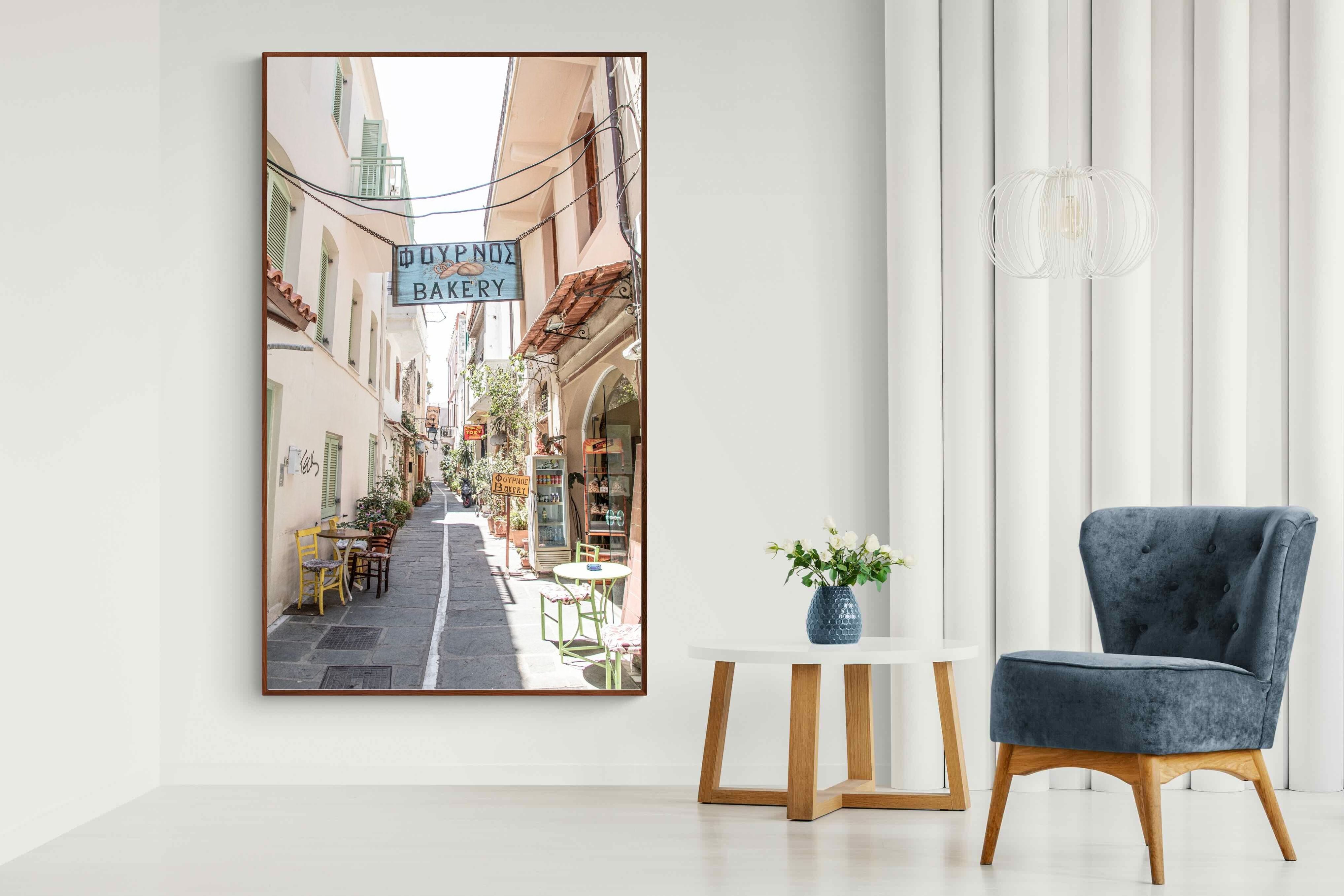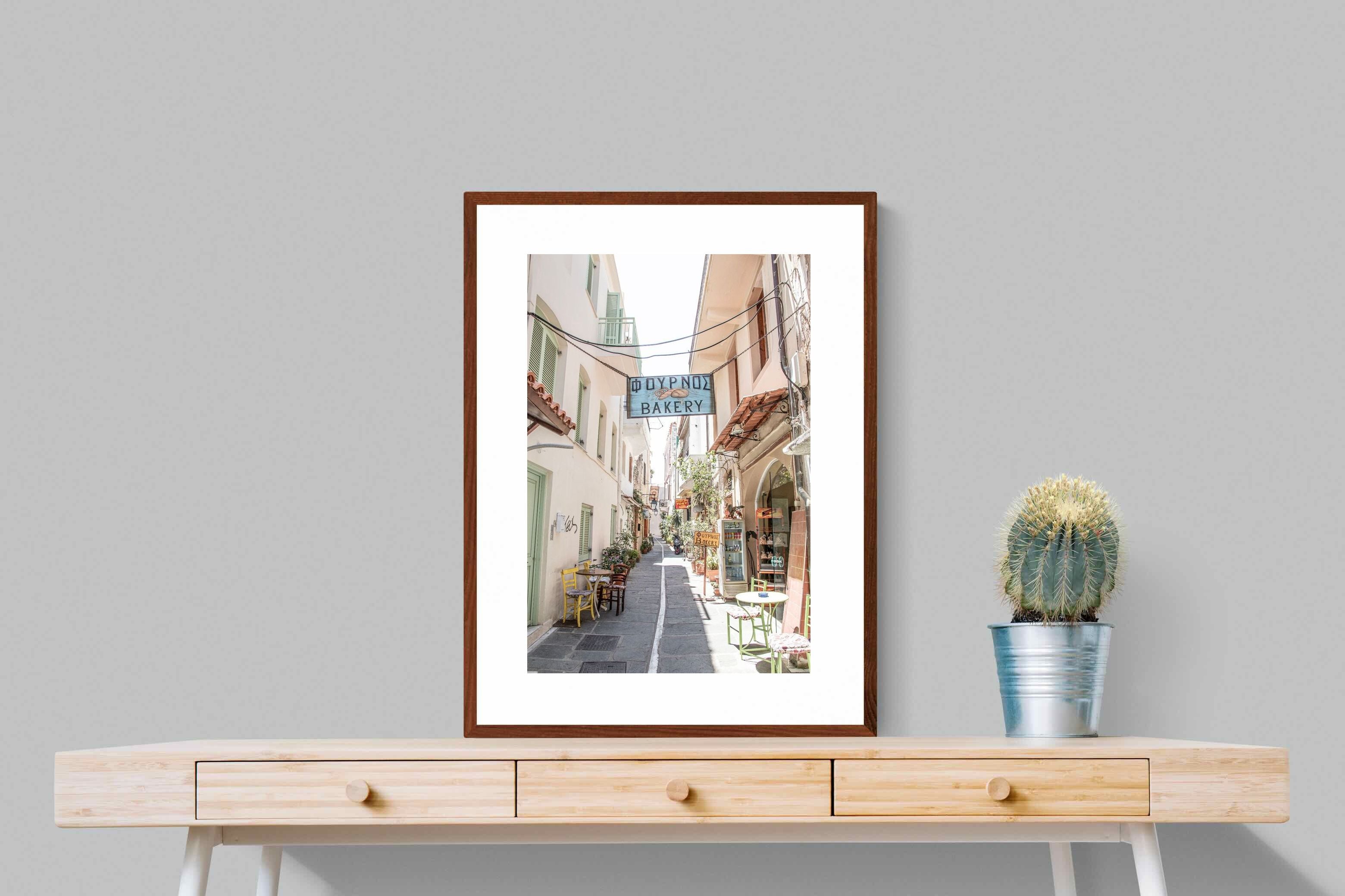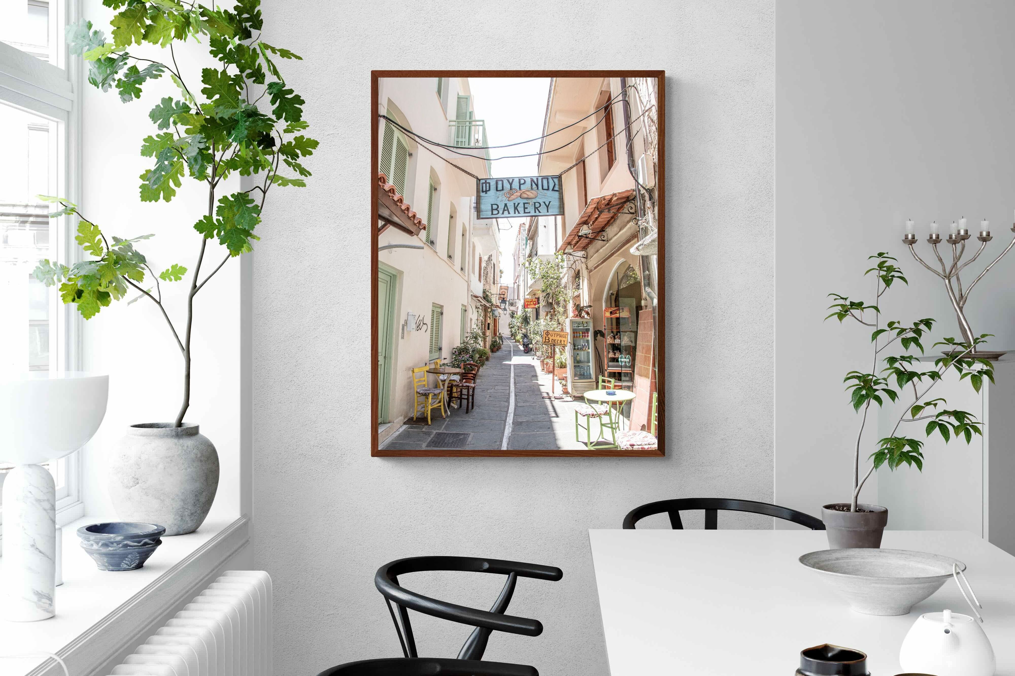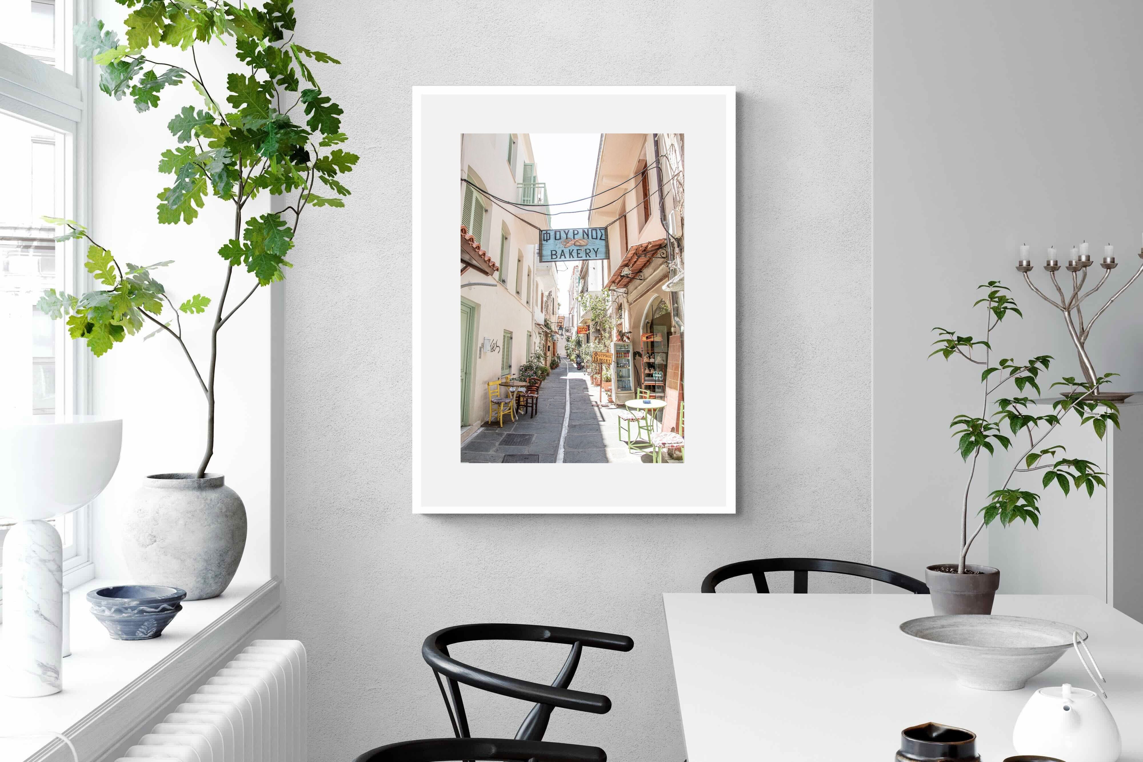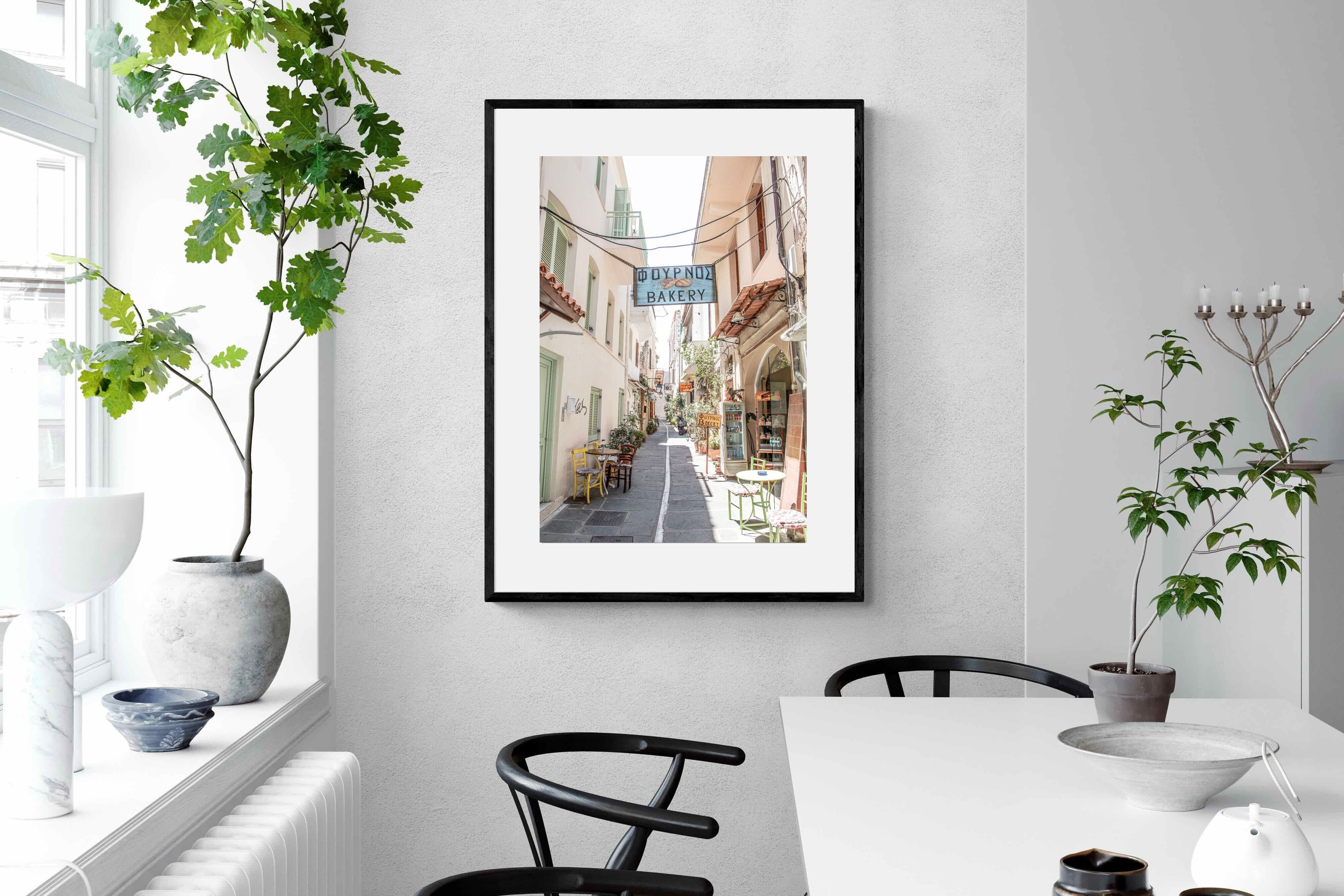 Greek Bakery Street Wall Art – Mediterranean Alleyway Photography Print