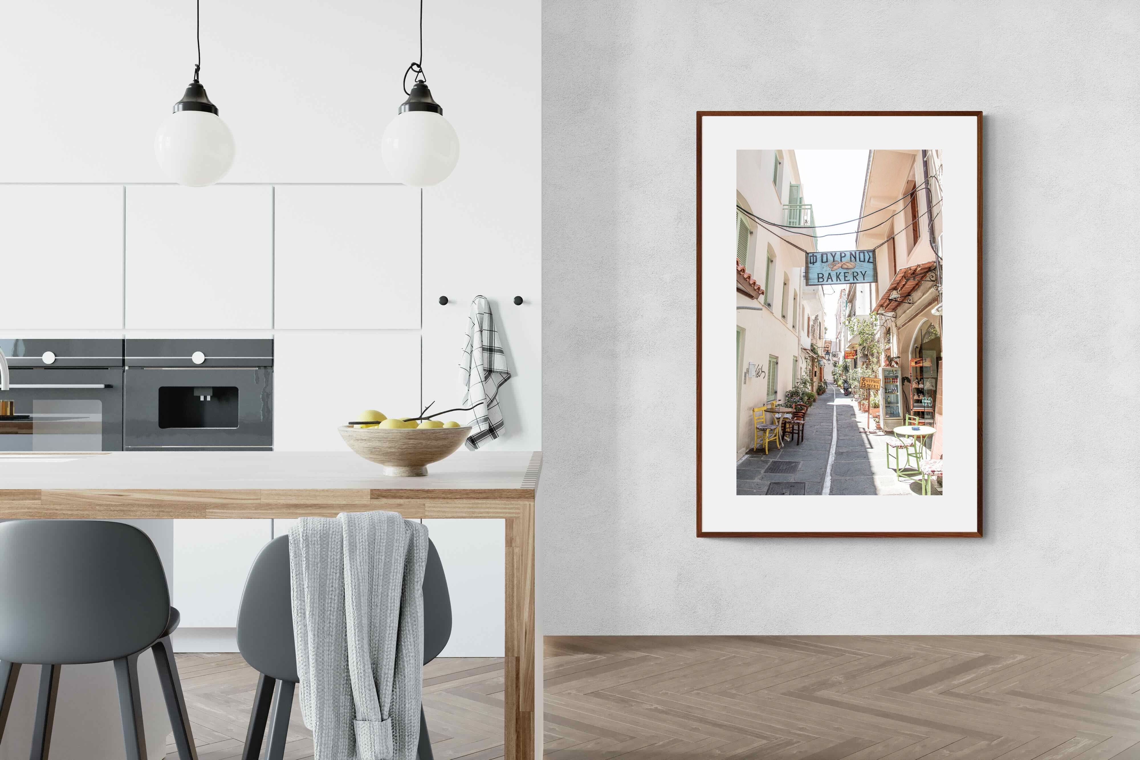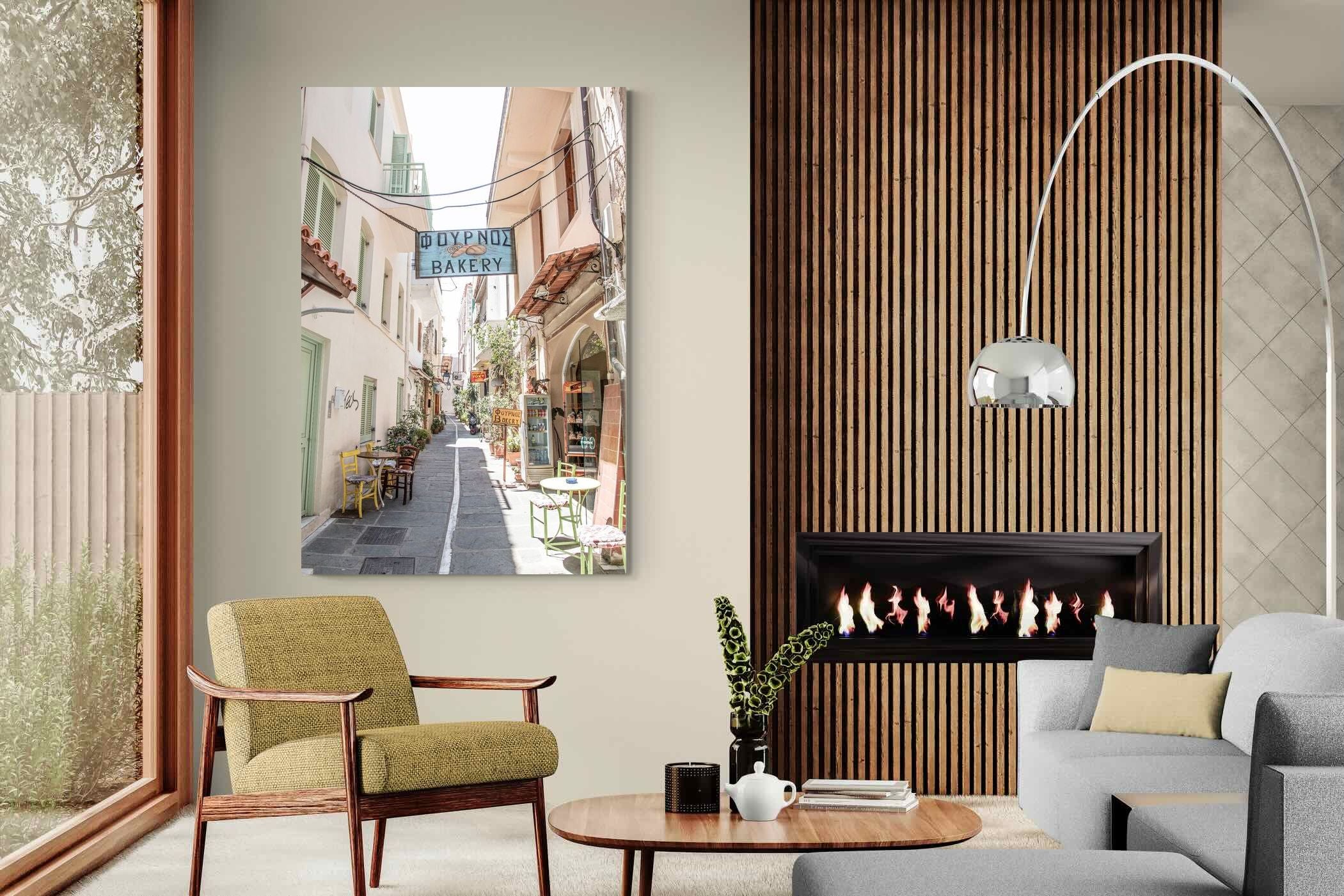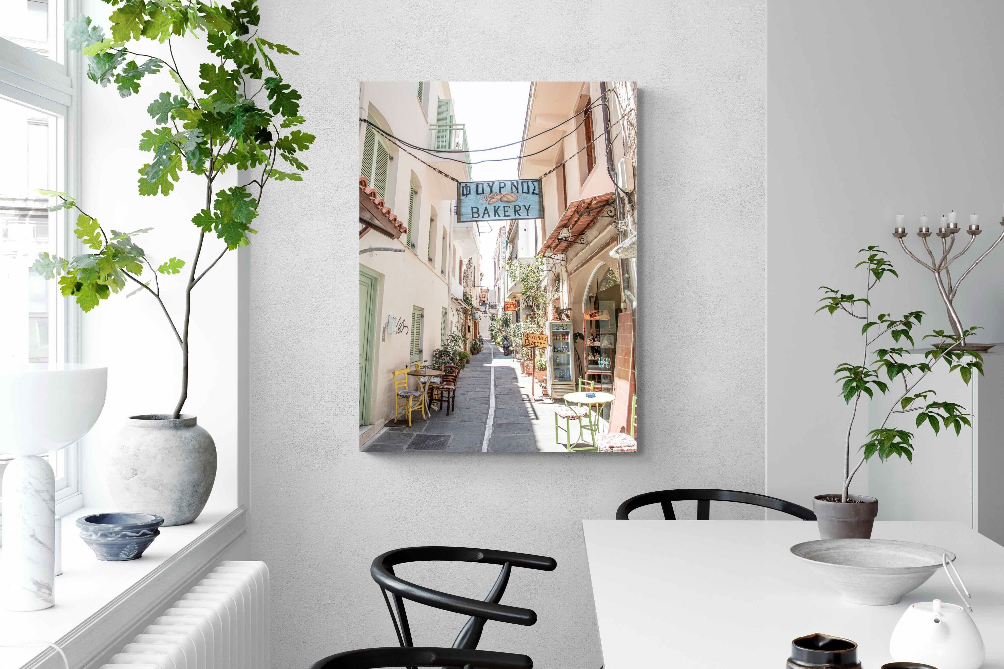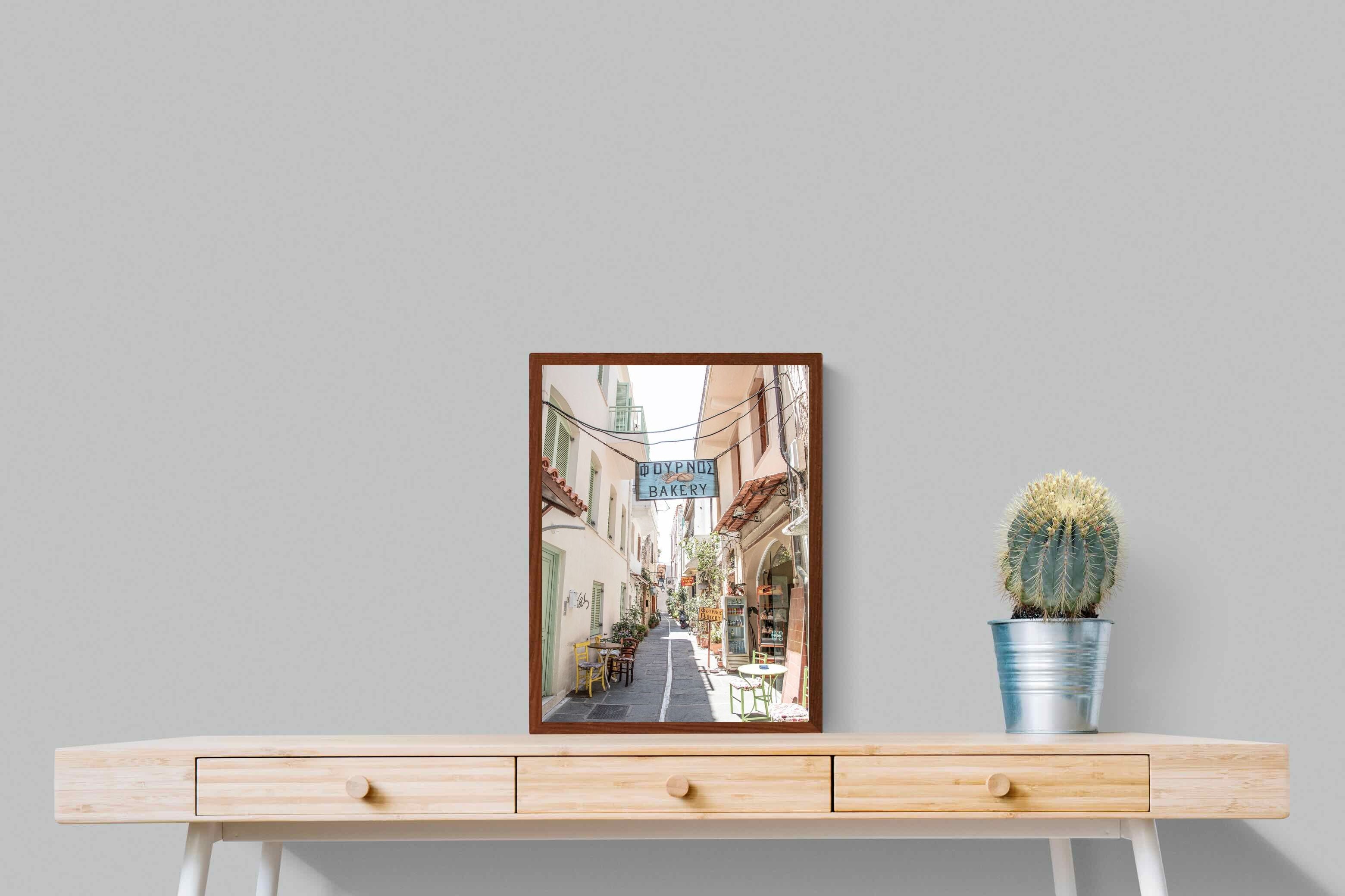 Greek Bakery Street Wall Art – Mediterranean Alleyway Photography Print