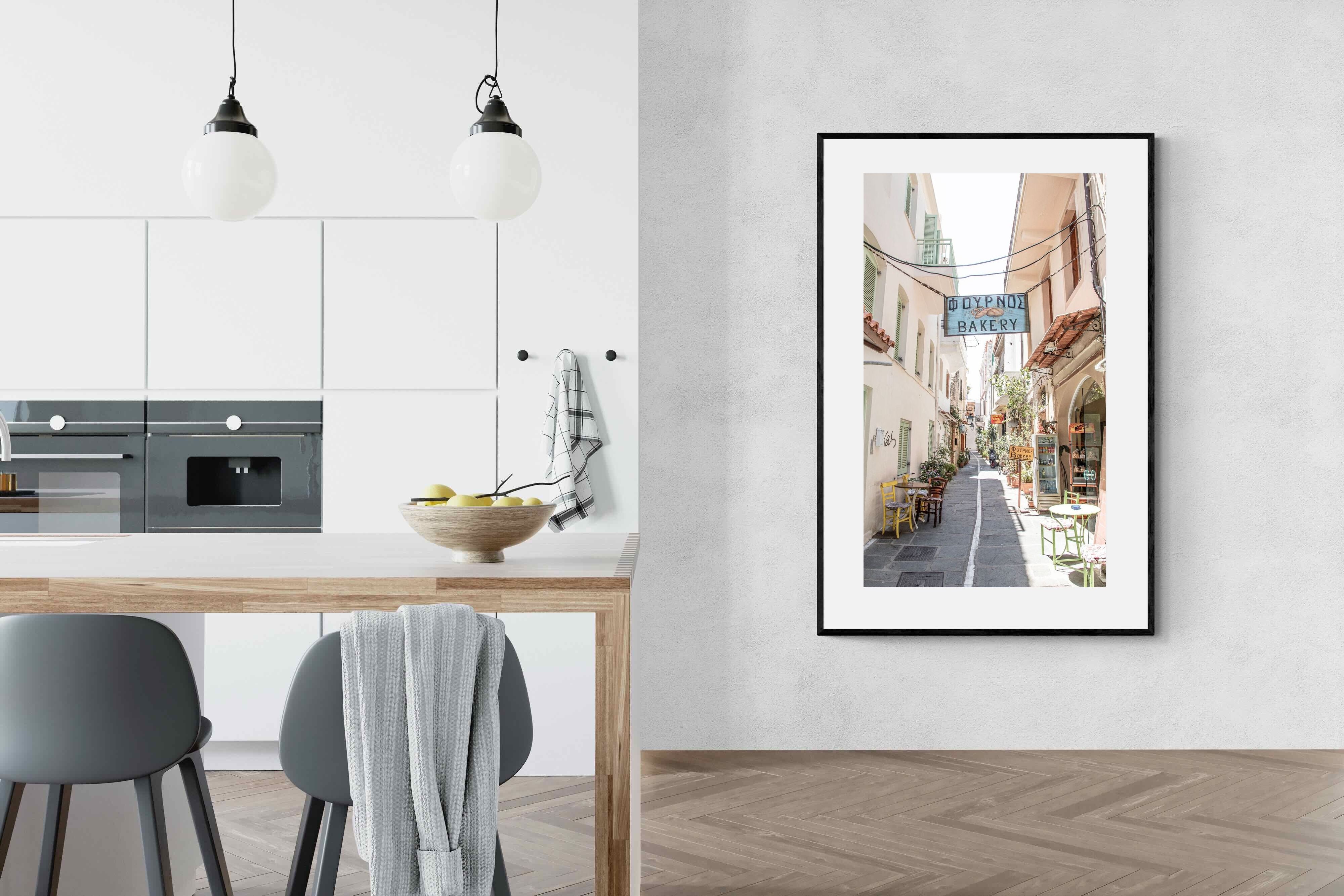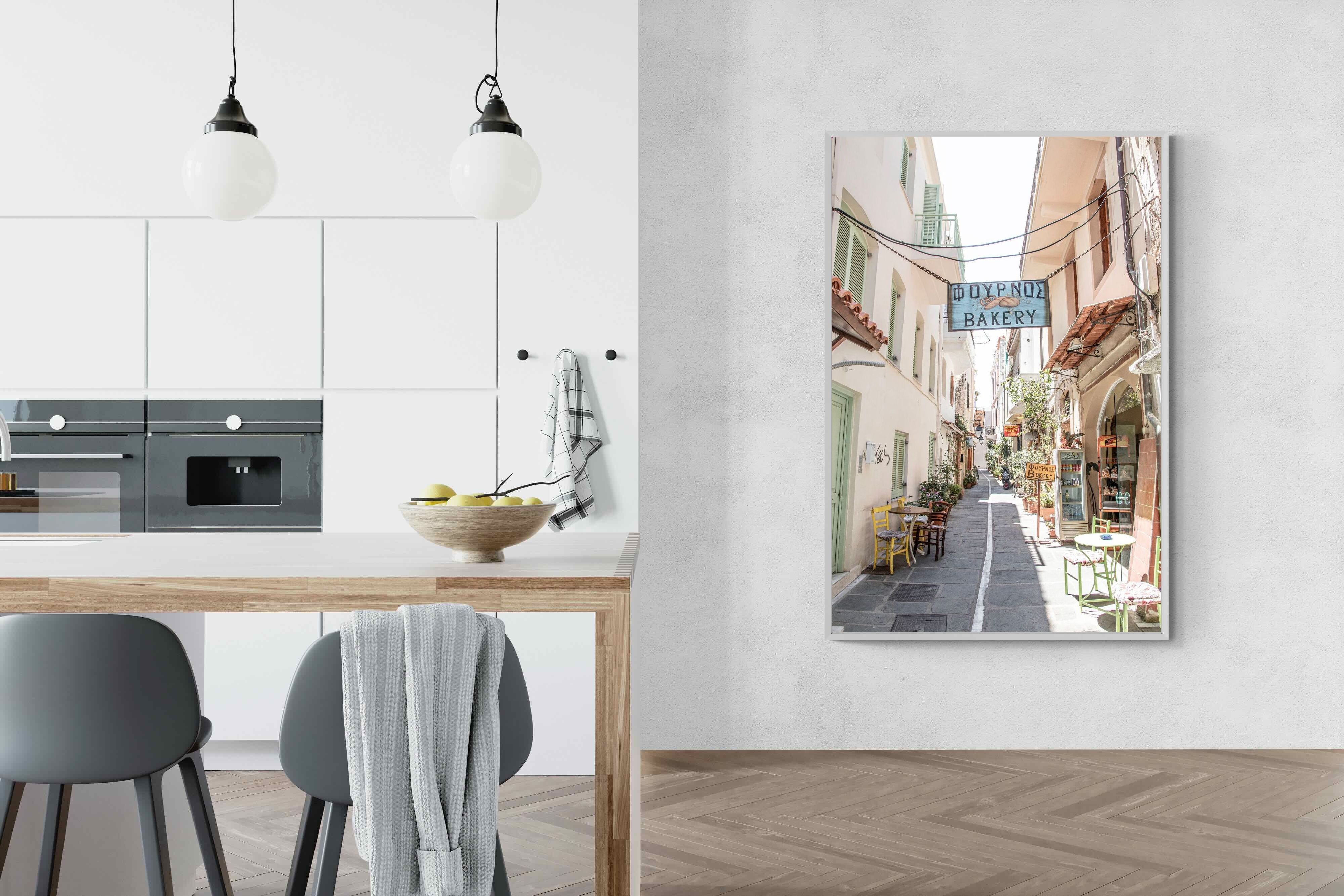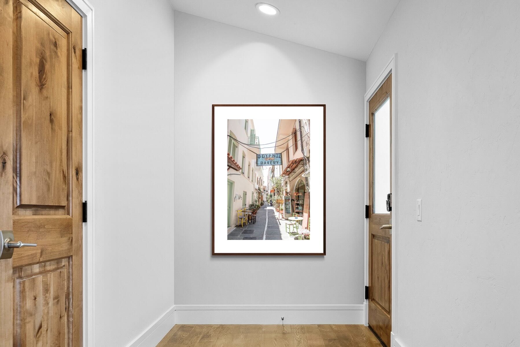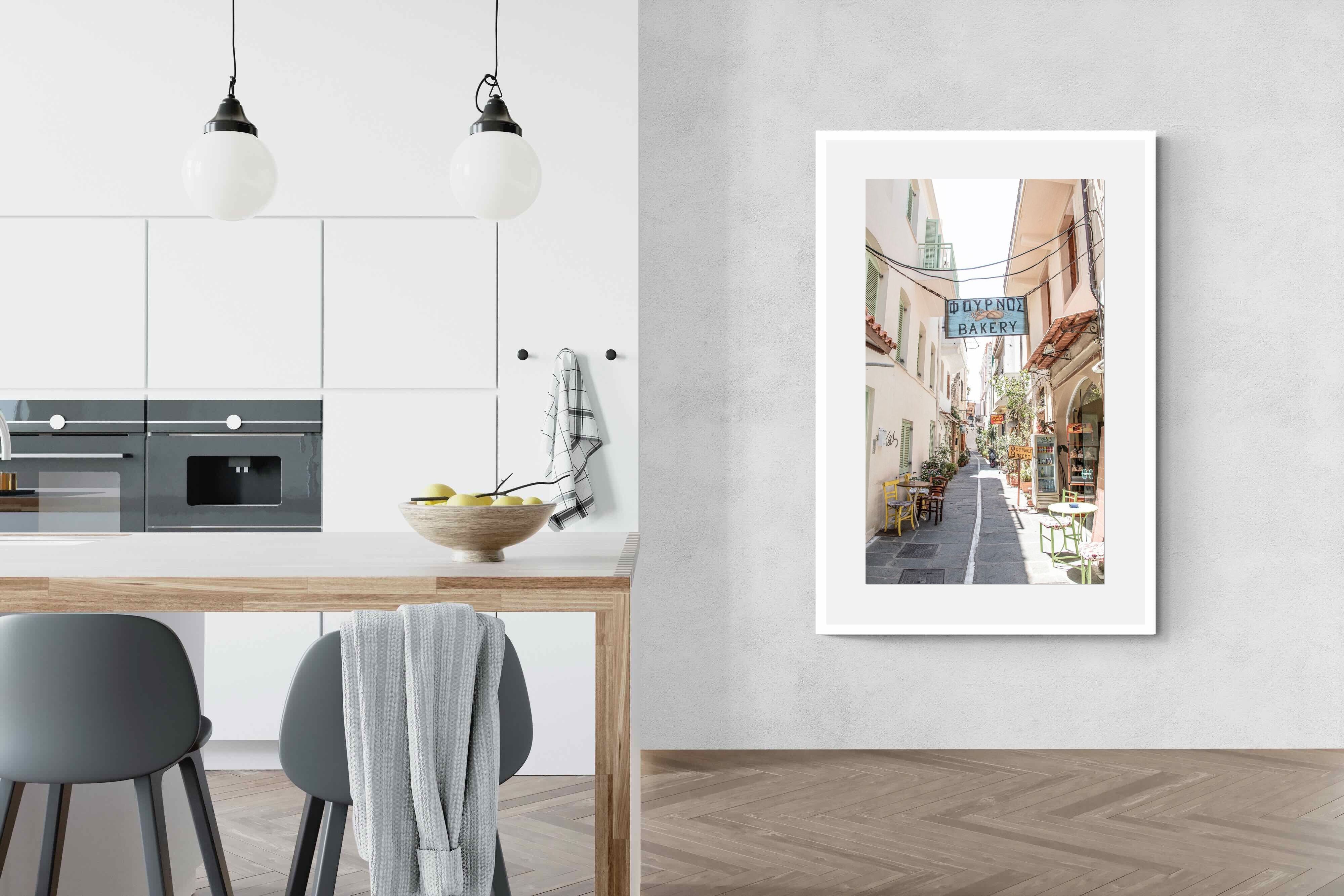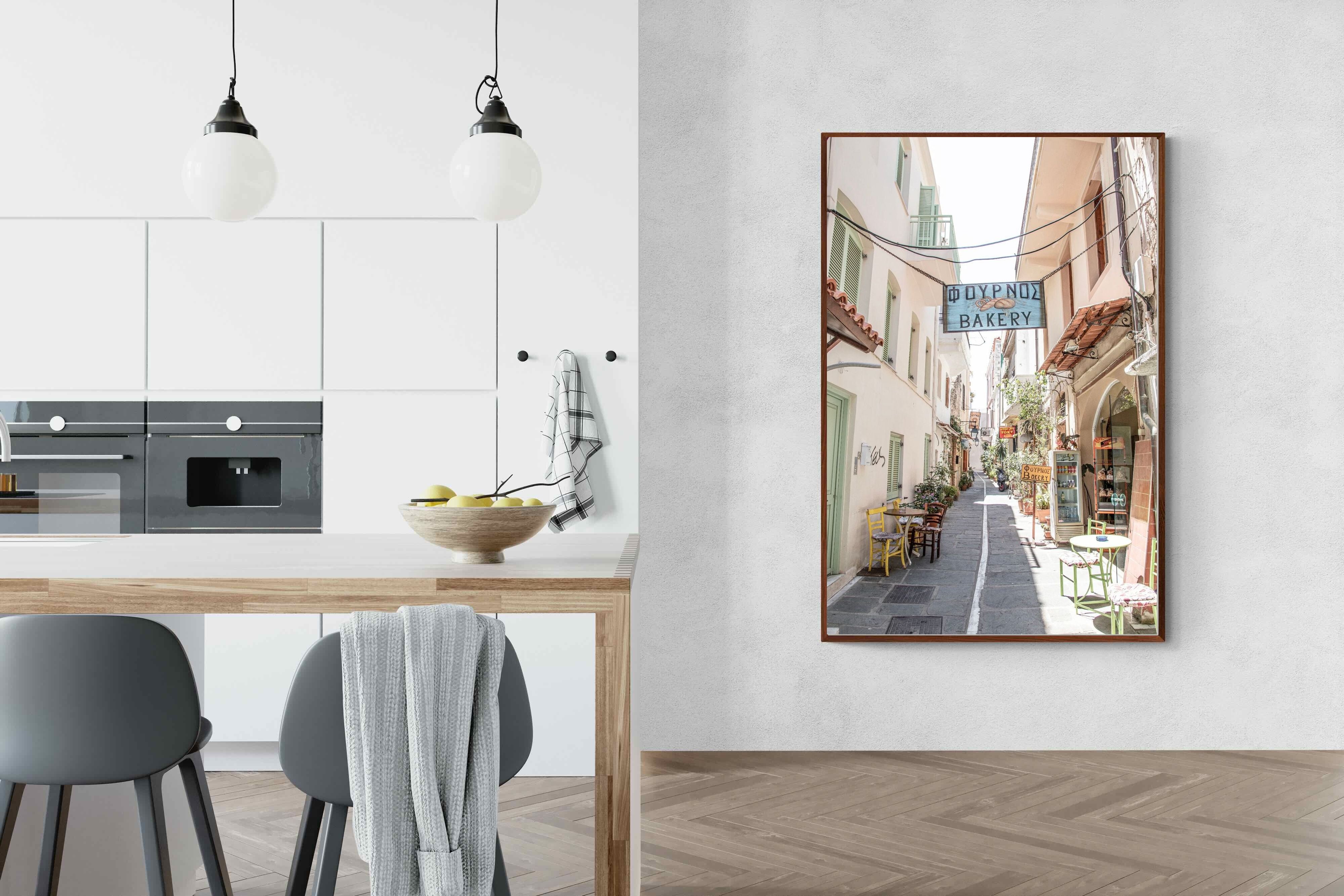 Greek Bakery Street Wall Art – Mediterranean Alleyway Photography Print