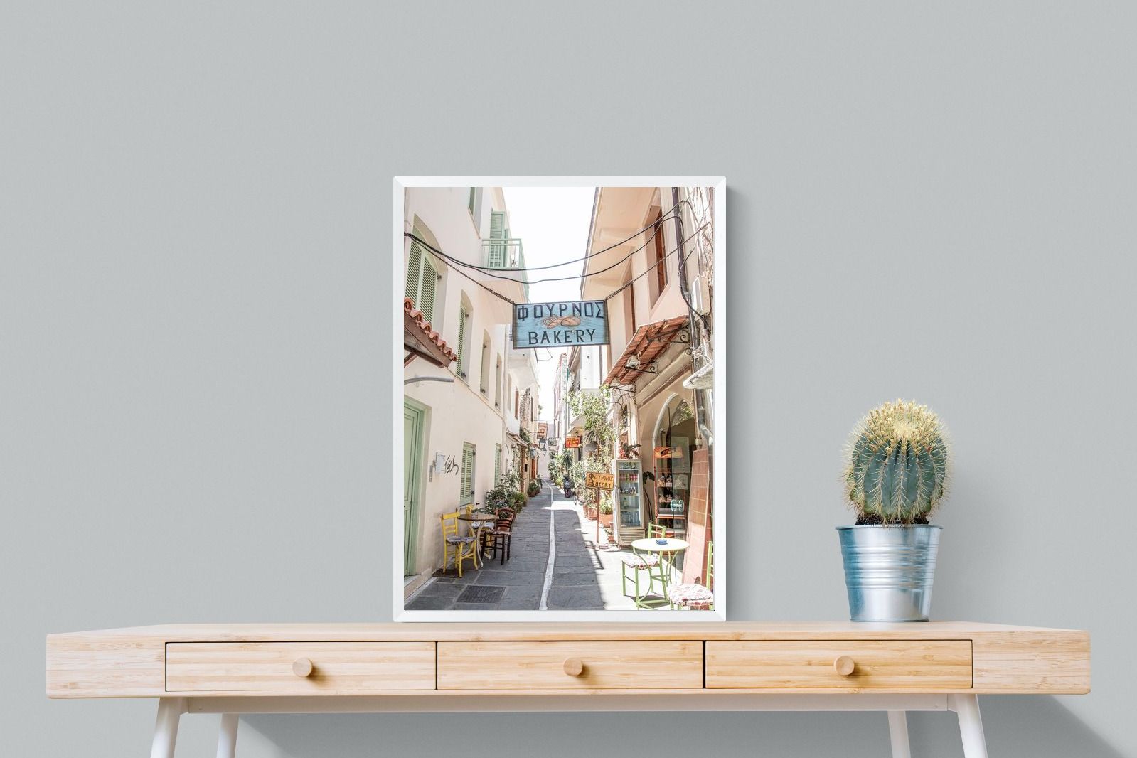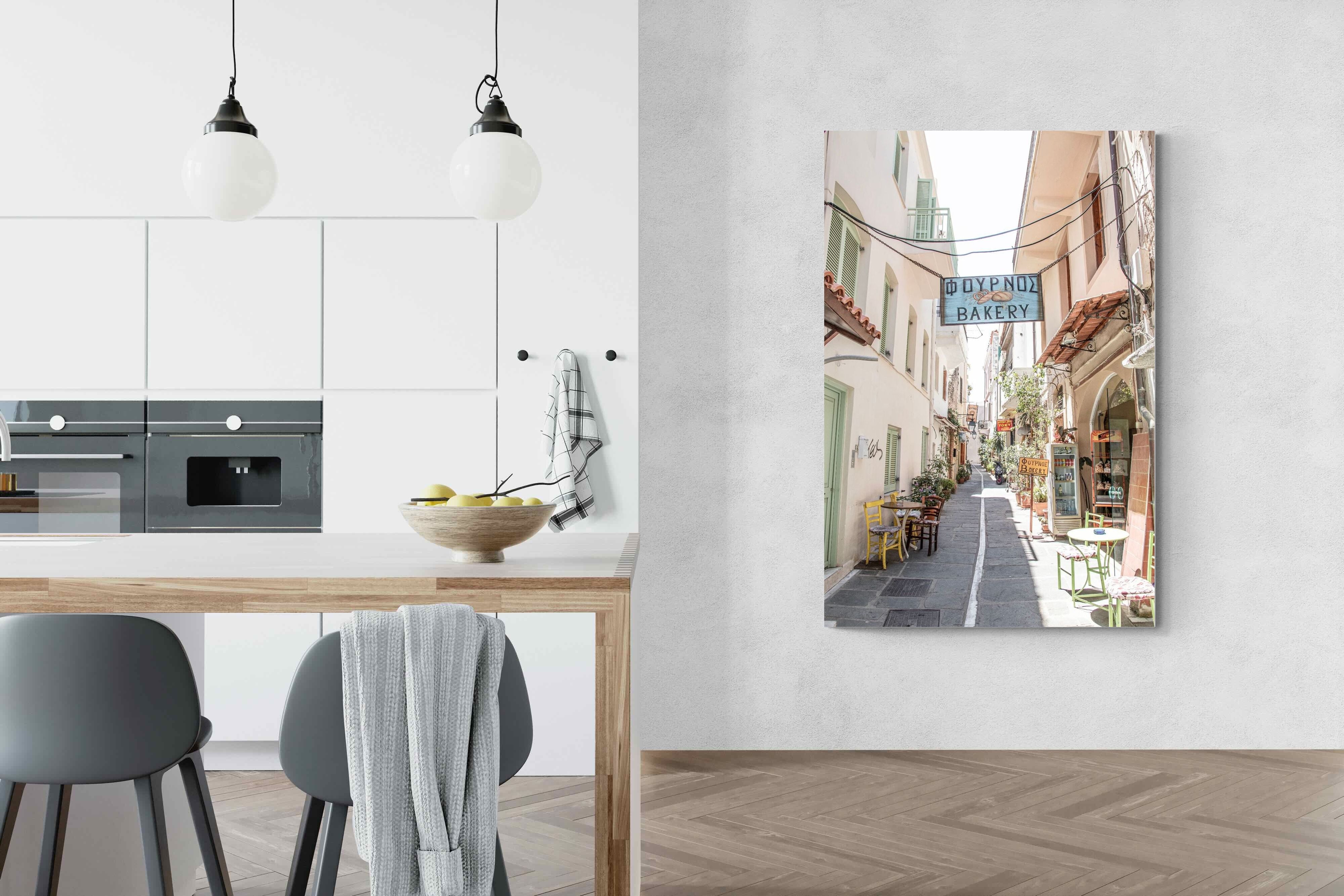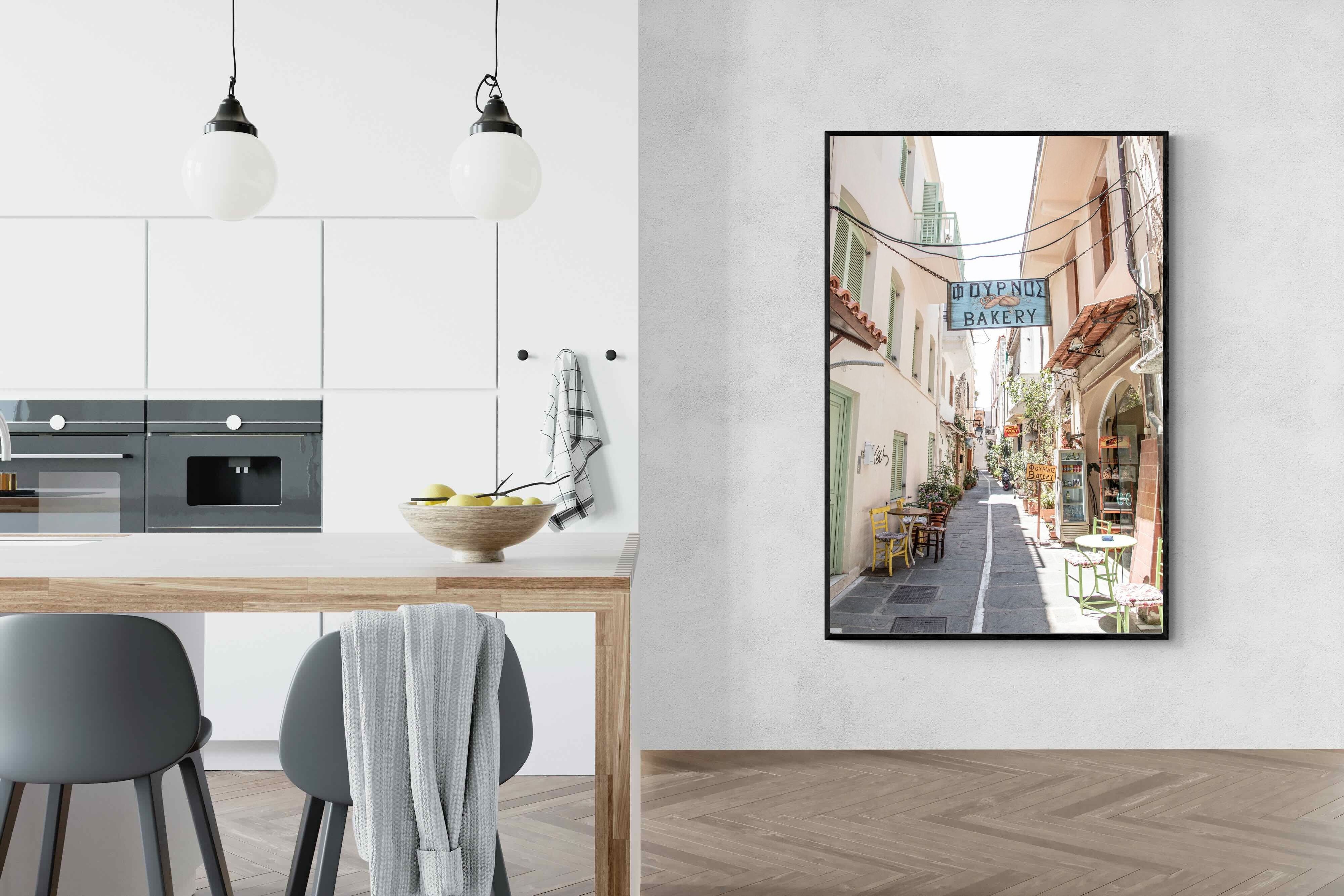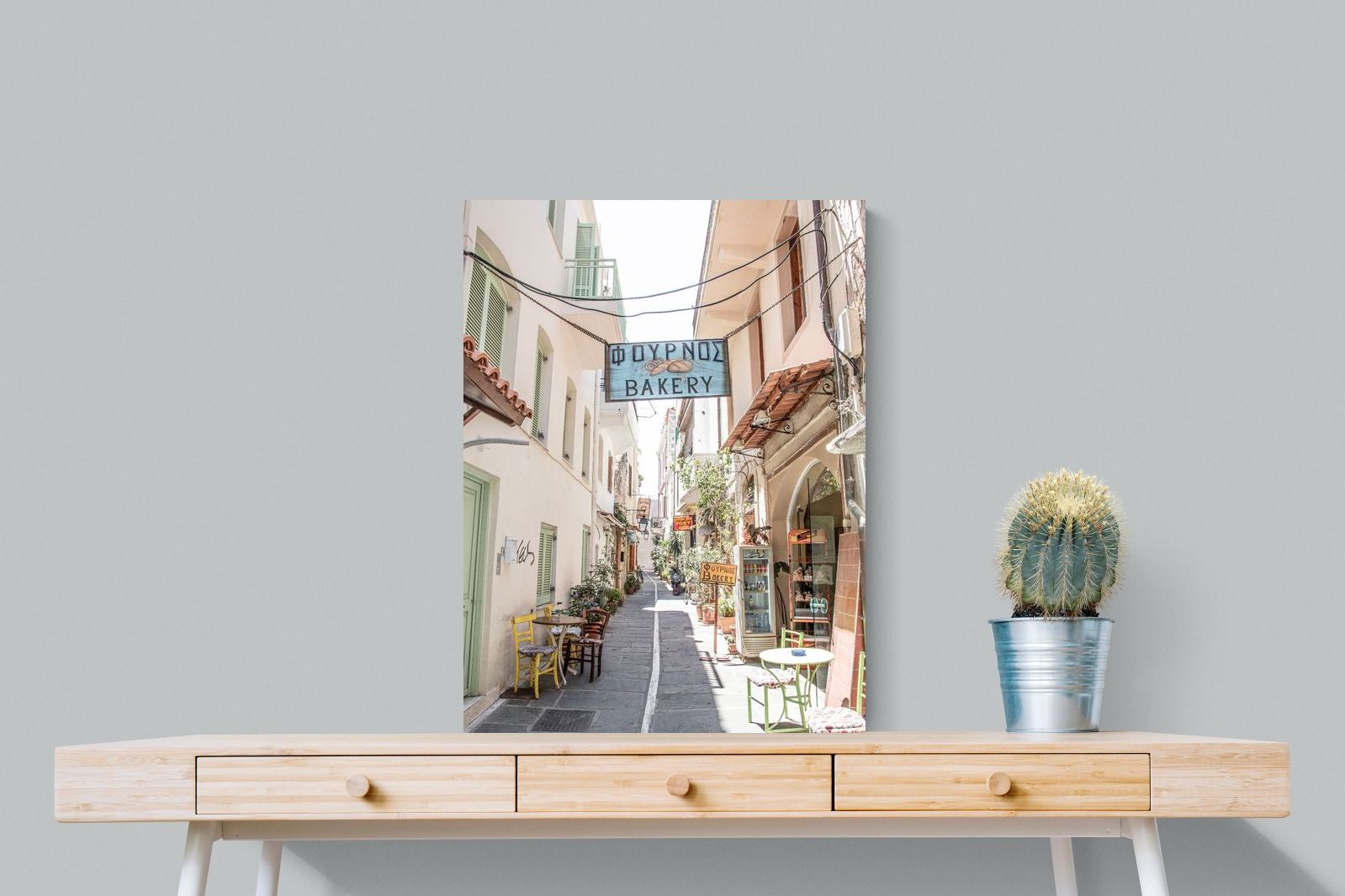 Greek Bakery Street Wall Art – Mediterranean Alleyway Photography Print