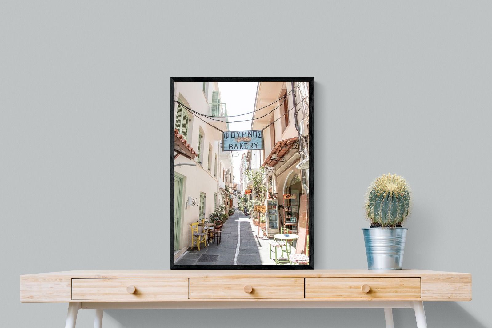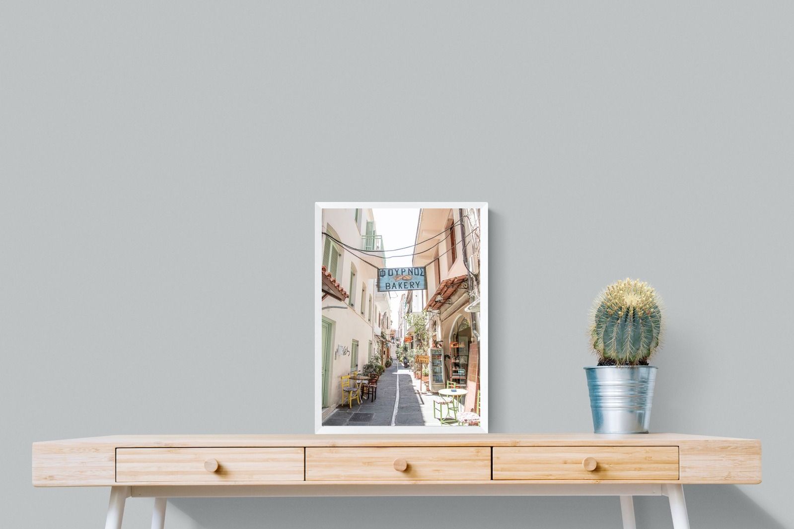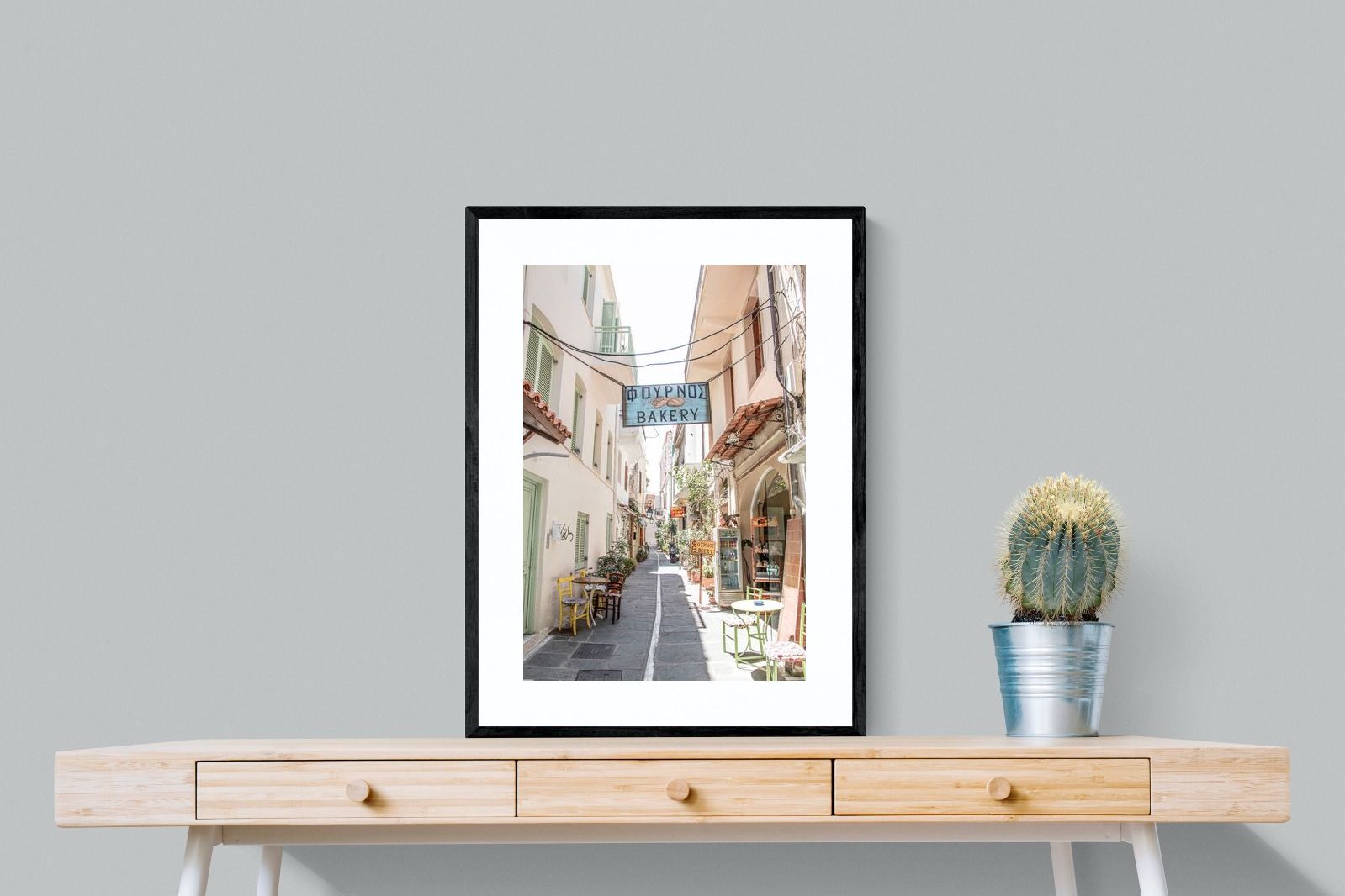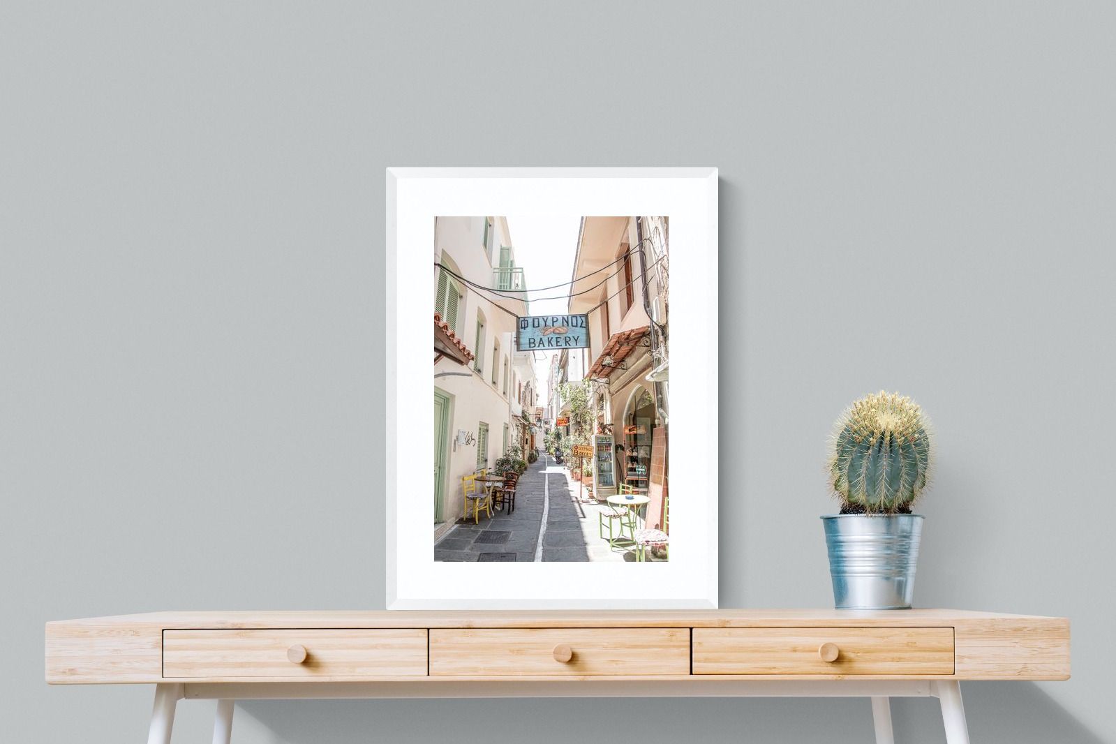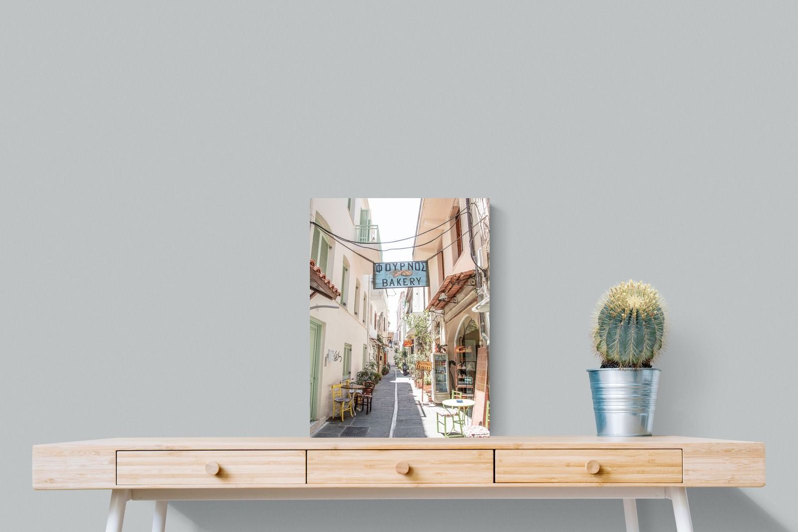 Greek Bakery Street Wall Art – Mediterranean Alleyway Photography Print