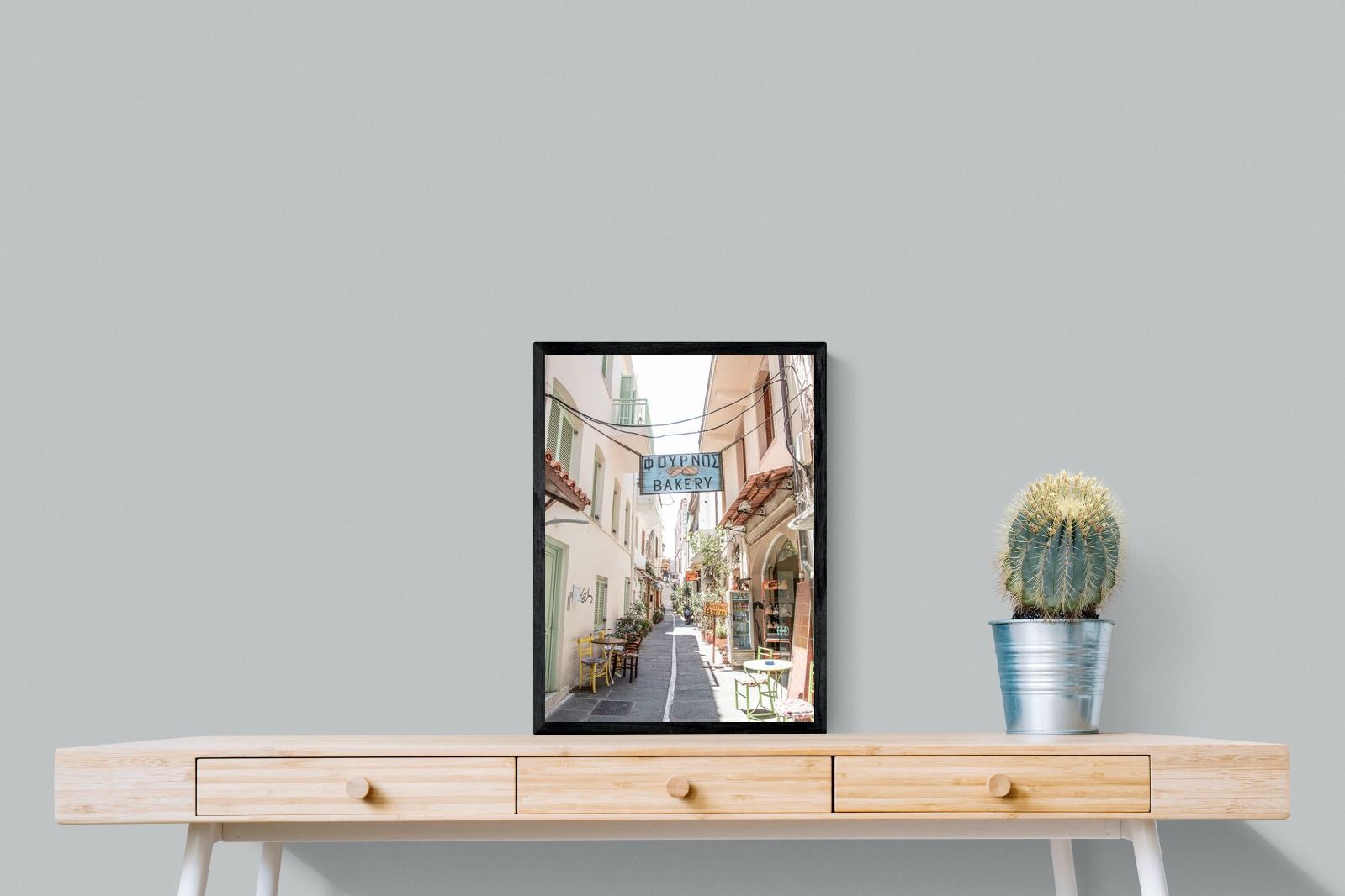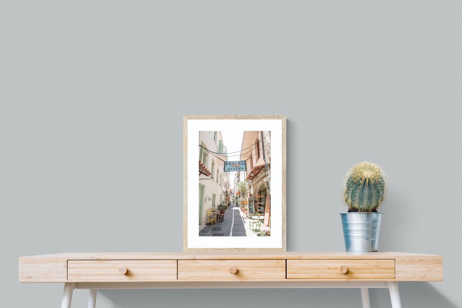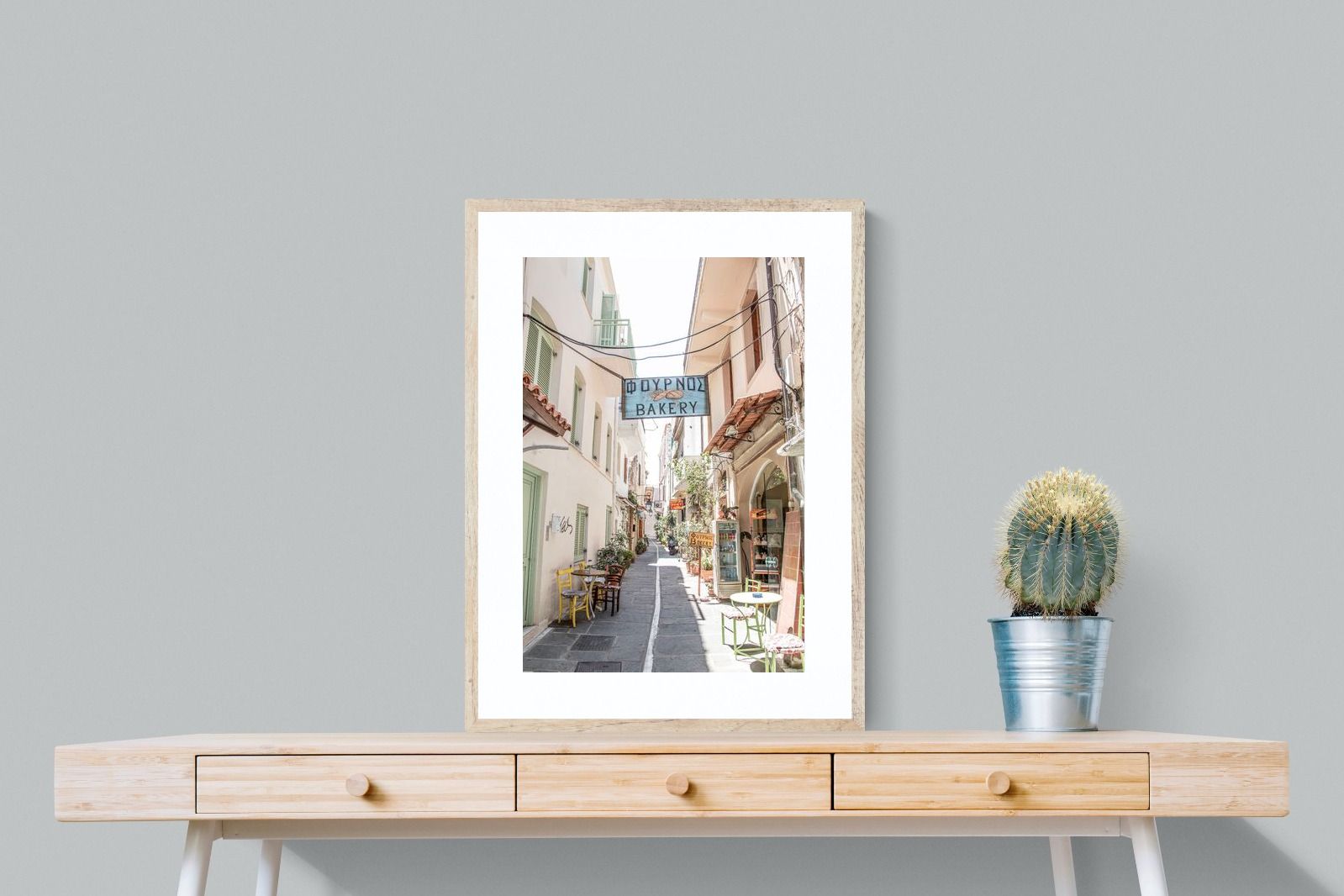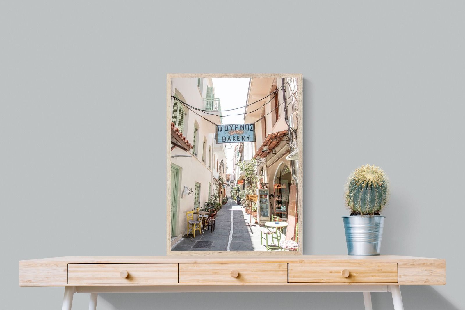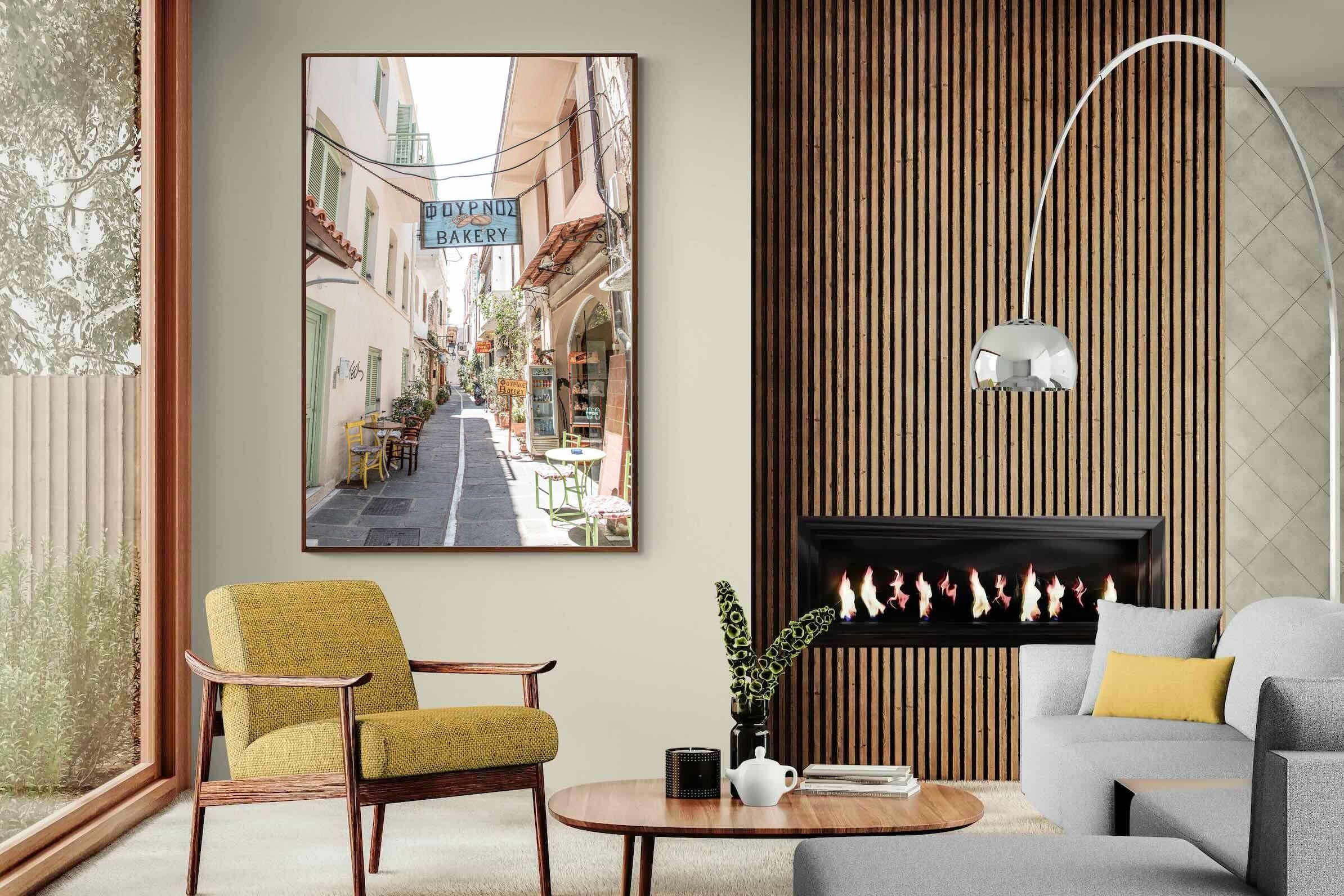 Greek Bakery Street Wall Art – Mediterranean Alleyway Photography Print