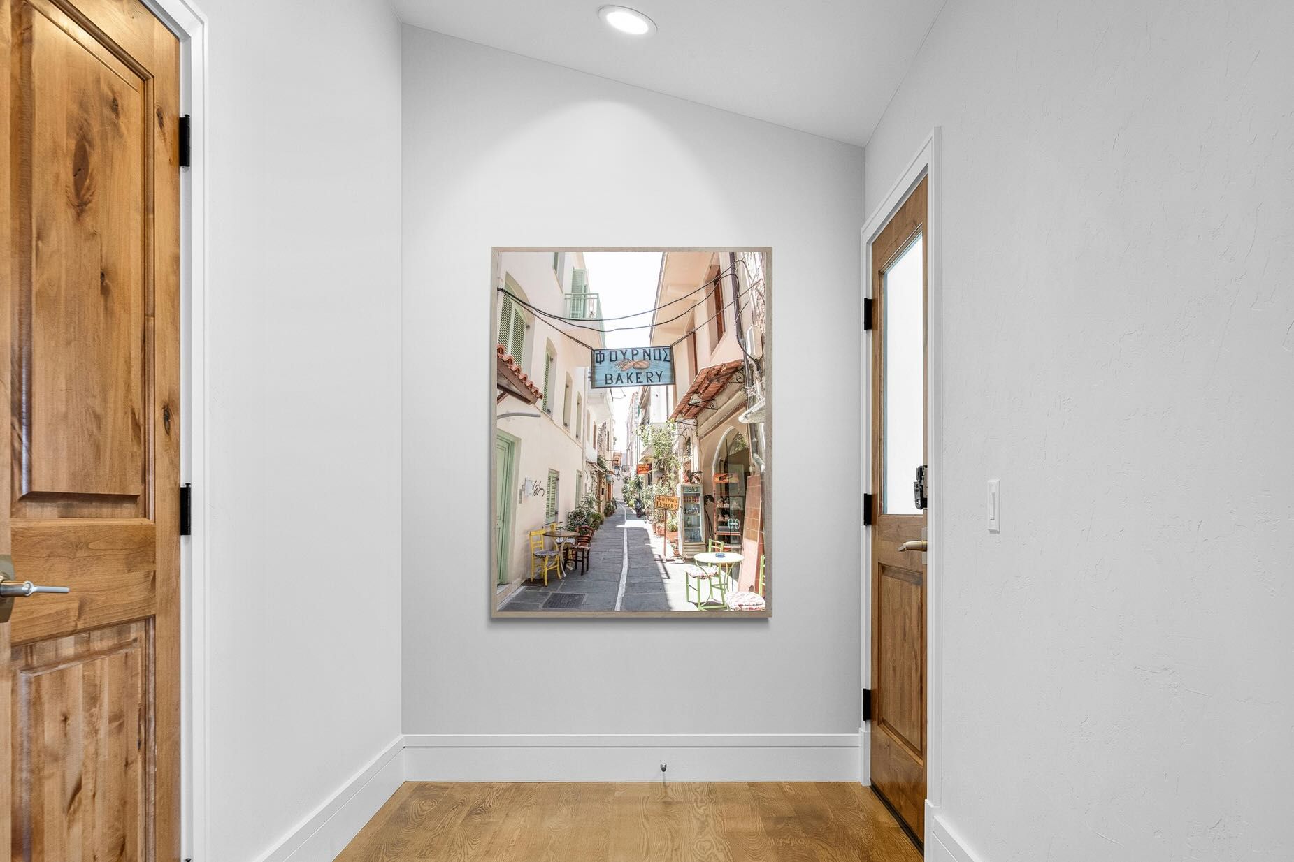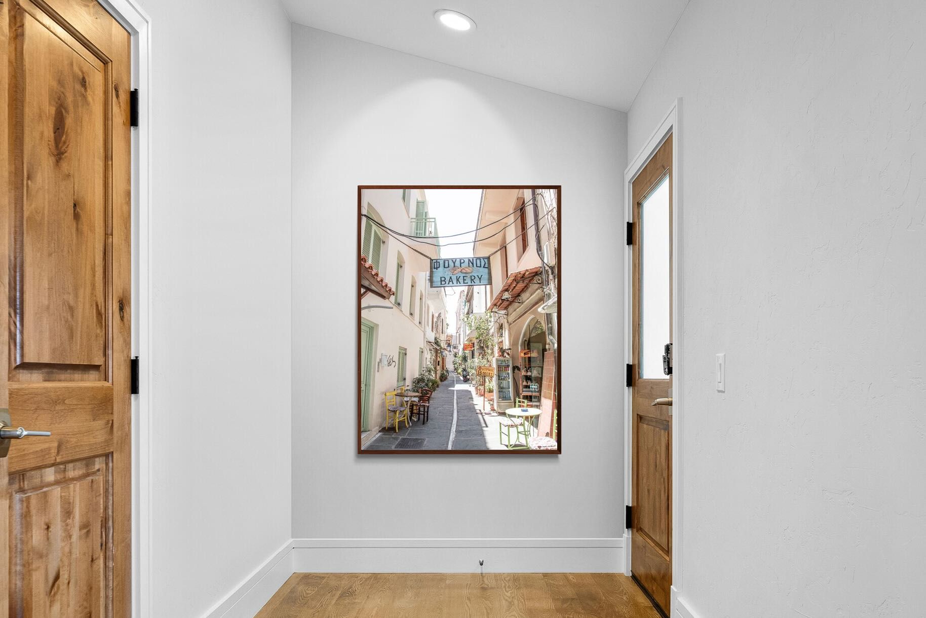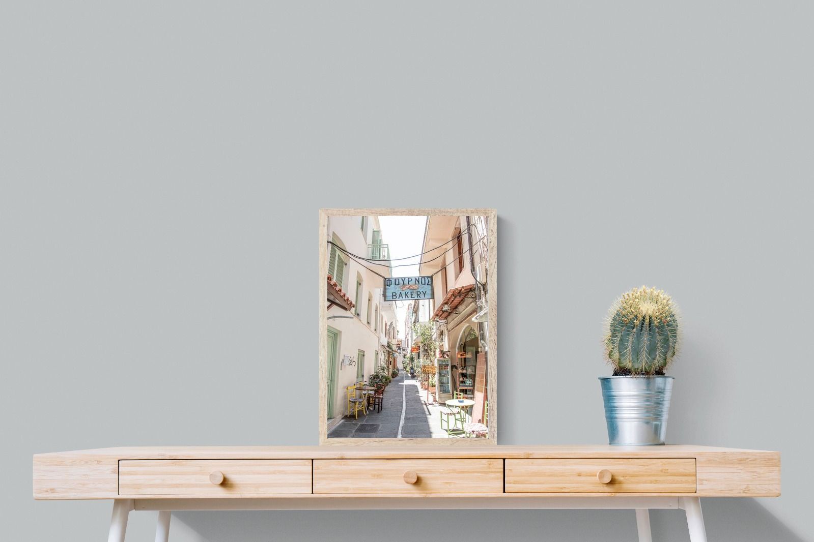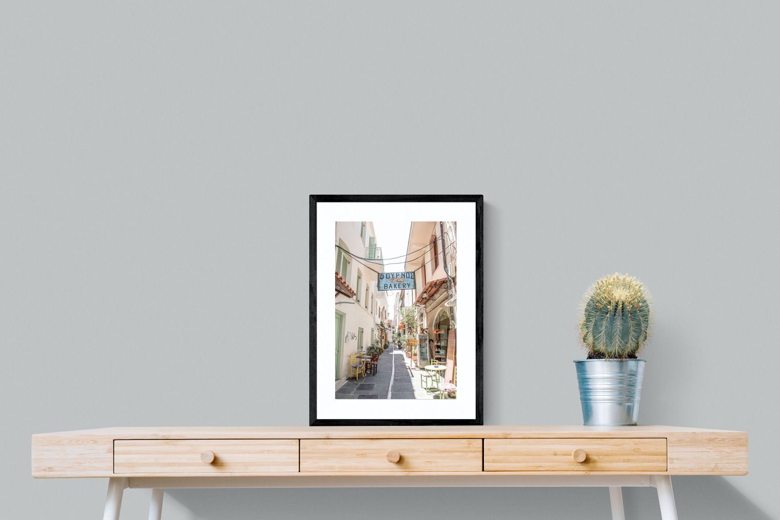 Greek Bakery Street Wall Art – Mediterranean Alleyway Photography Print